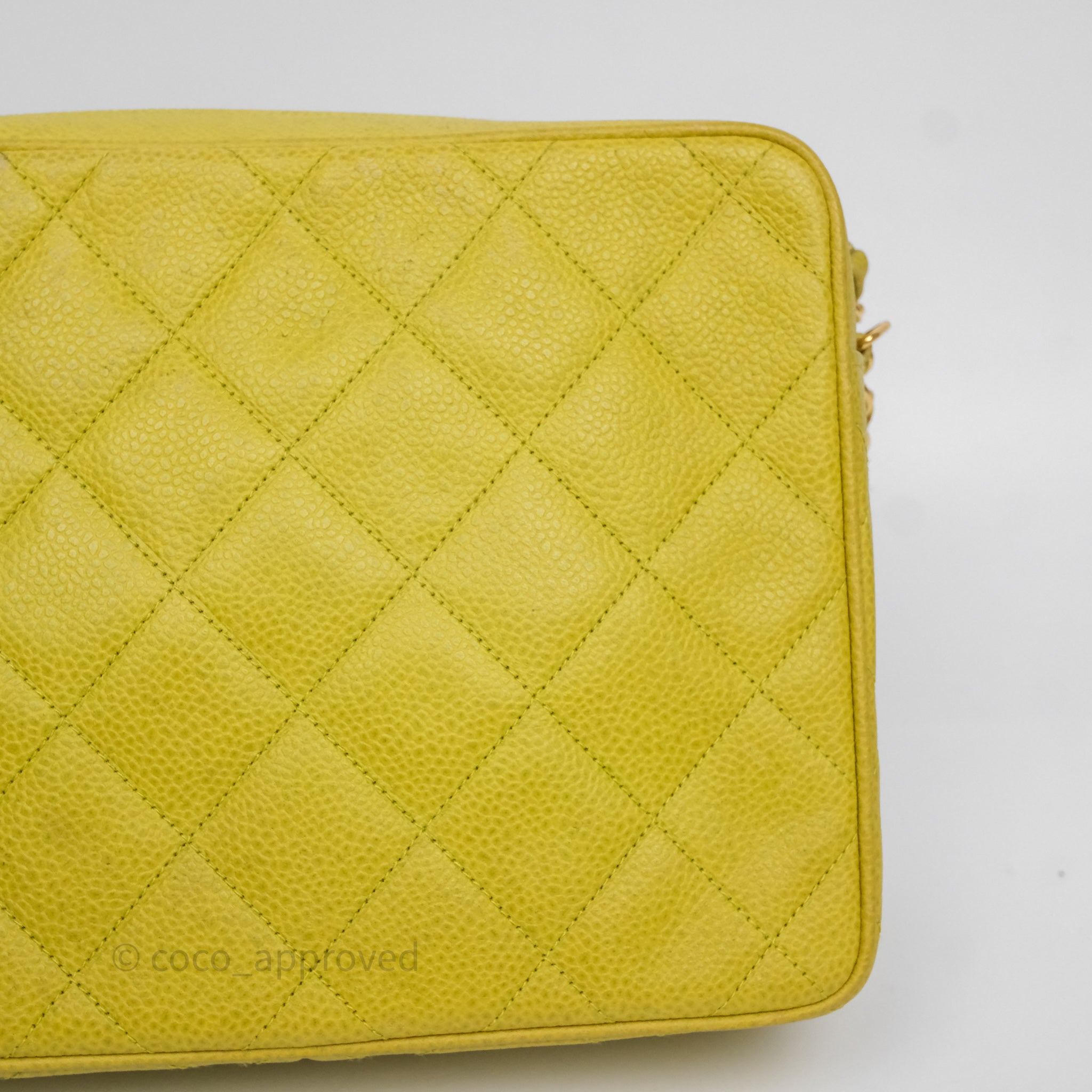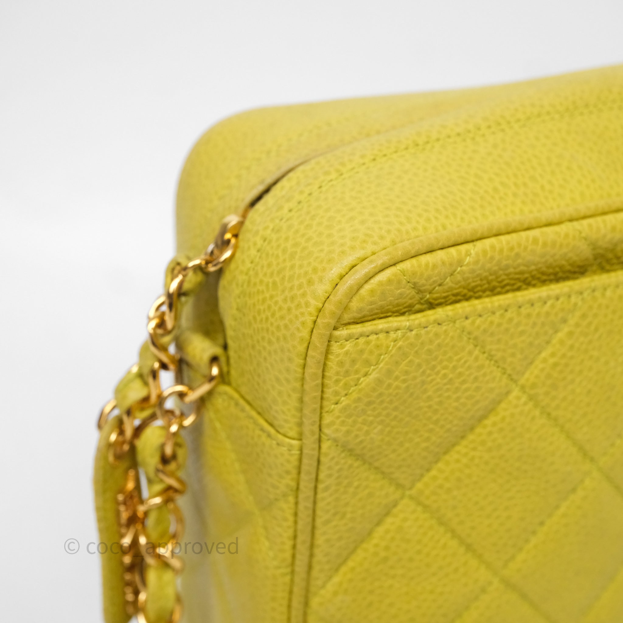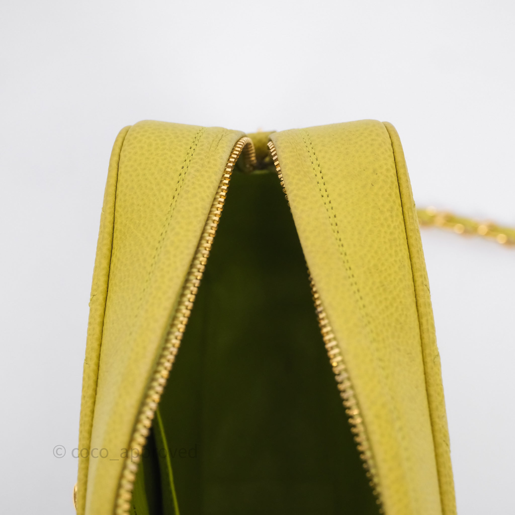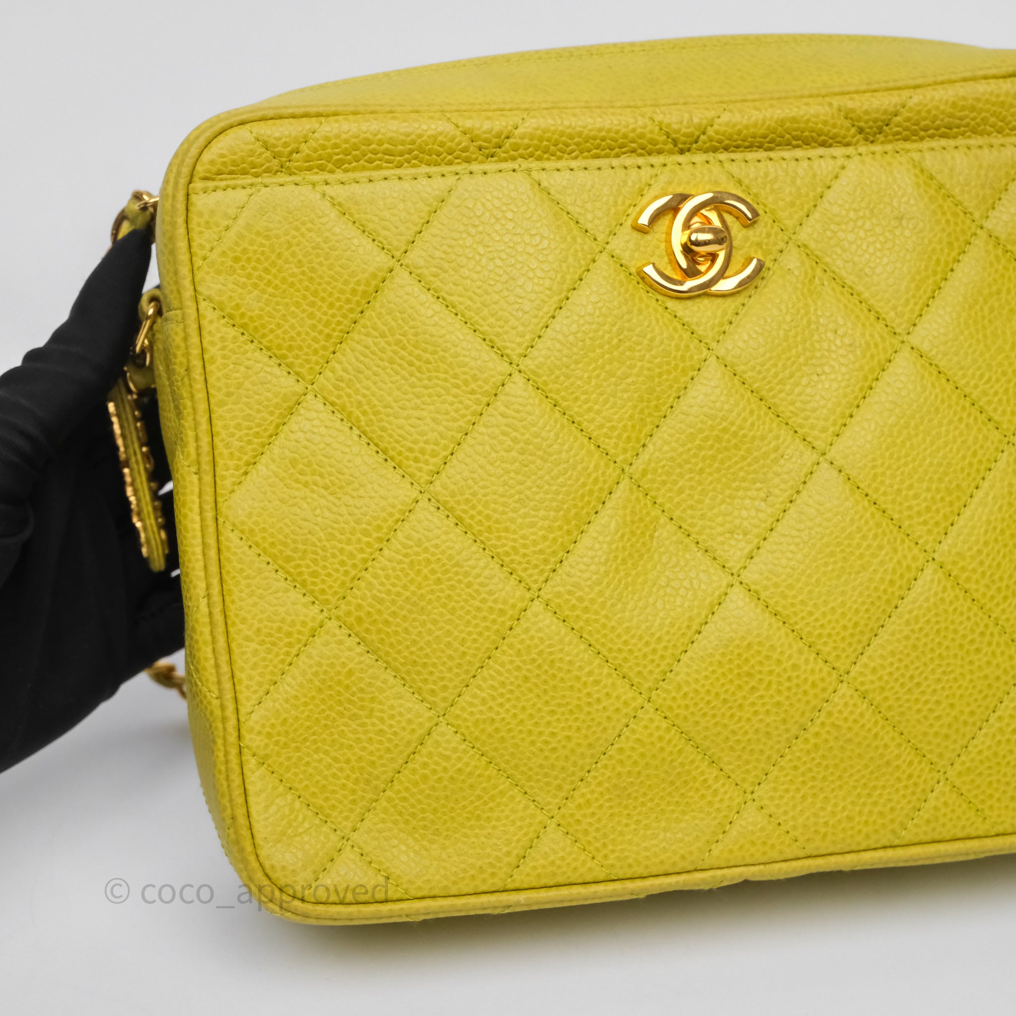 Chanel Vintage Quilted Camera Bag Green Yellow Caviar Gold Hardware