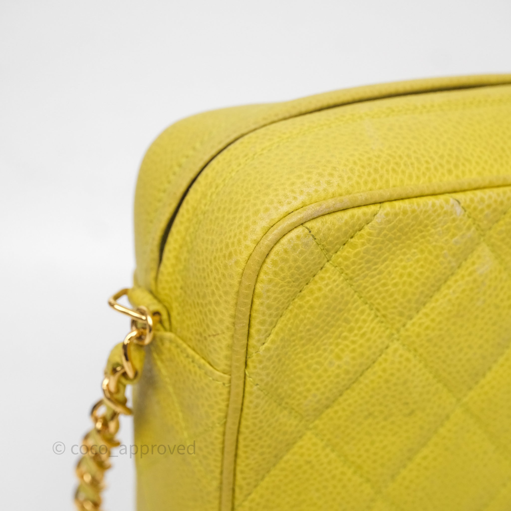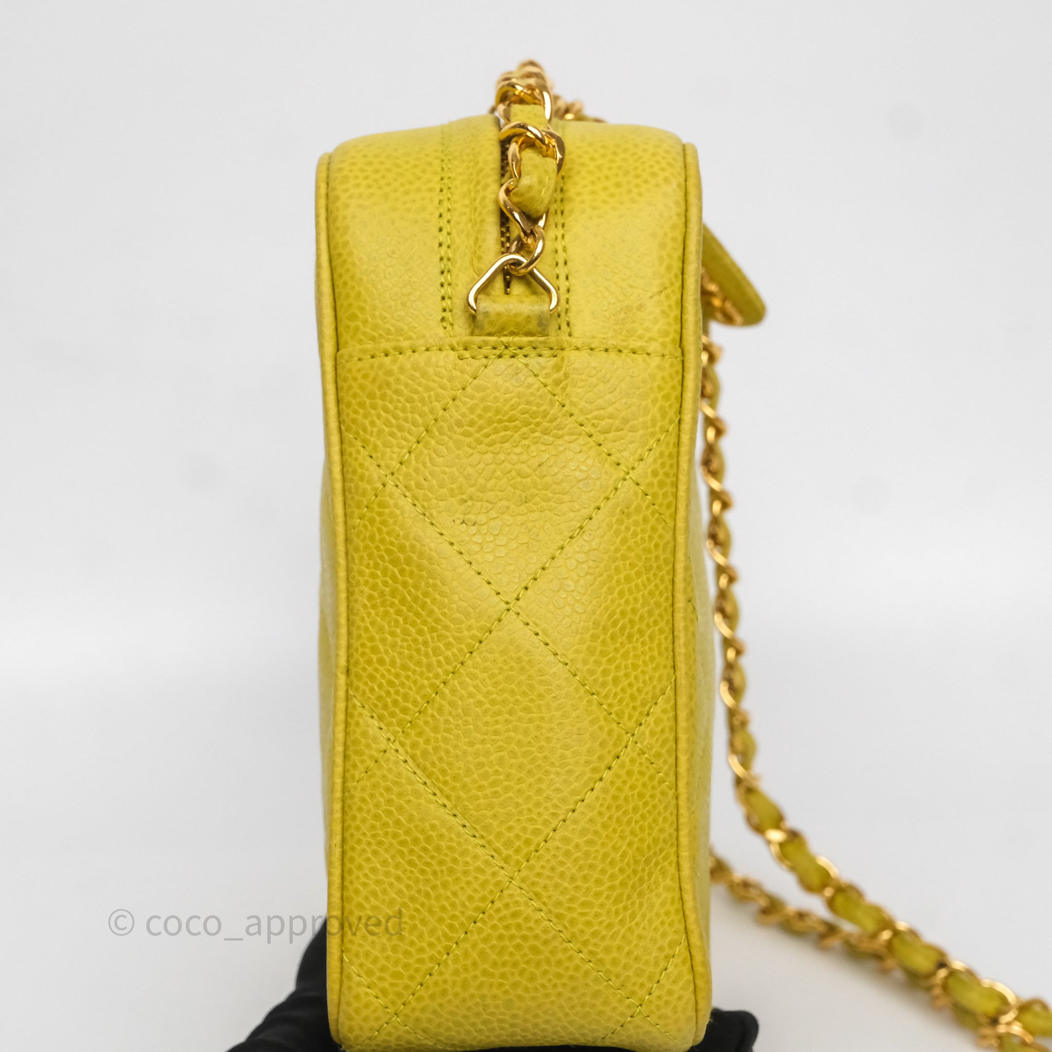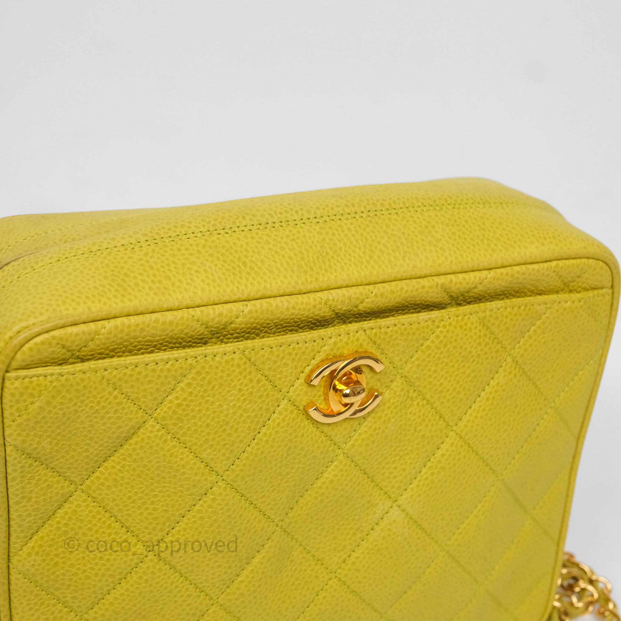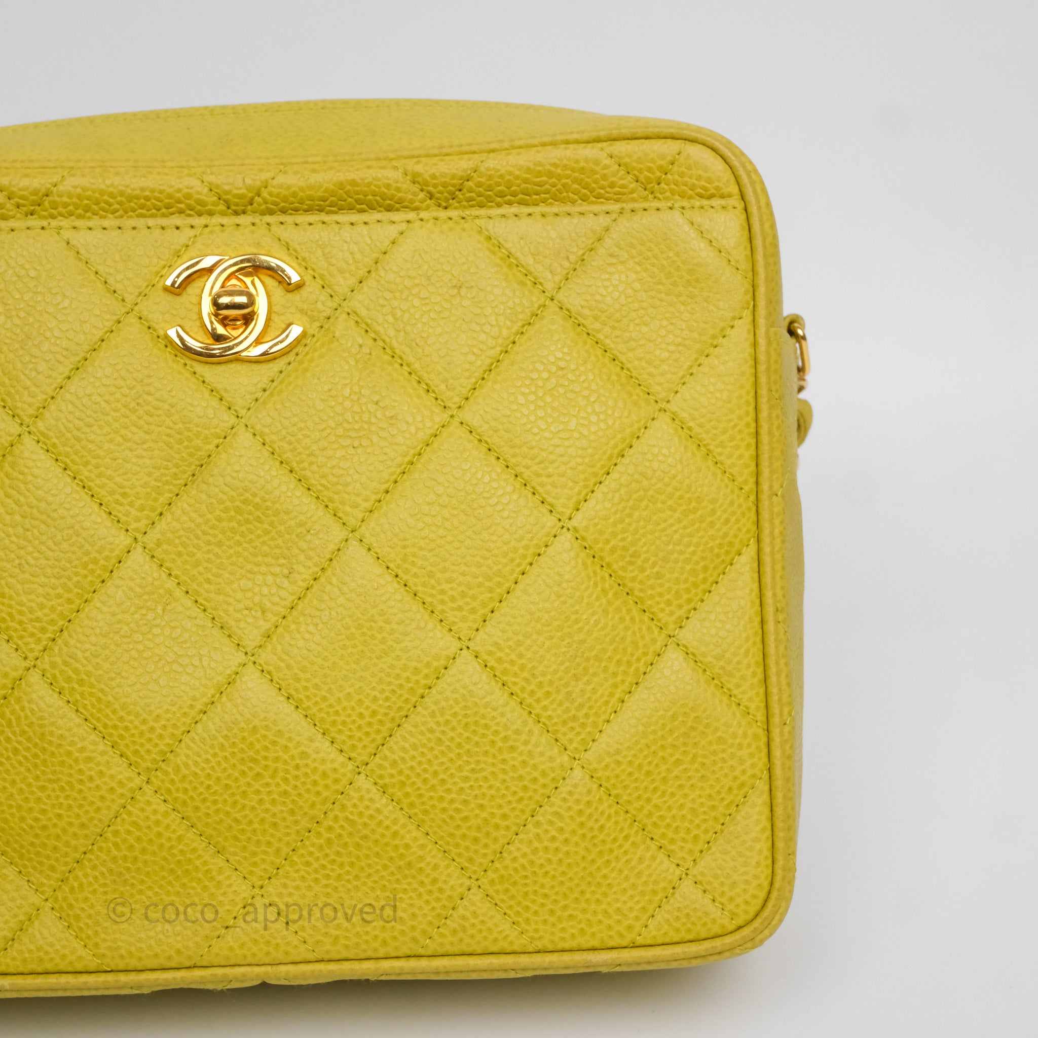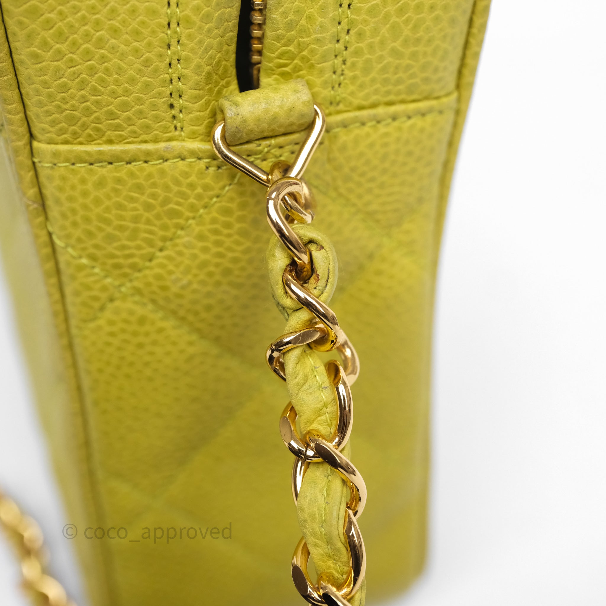 Chanel Vintage Quilted Camera Bag Green Yellow Caviar Gold Hardware