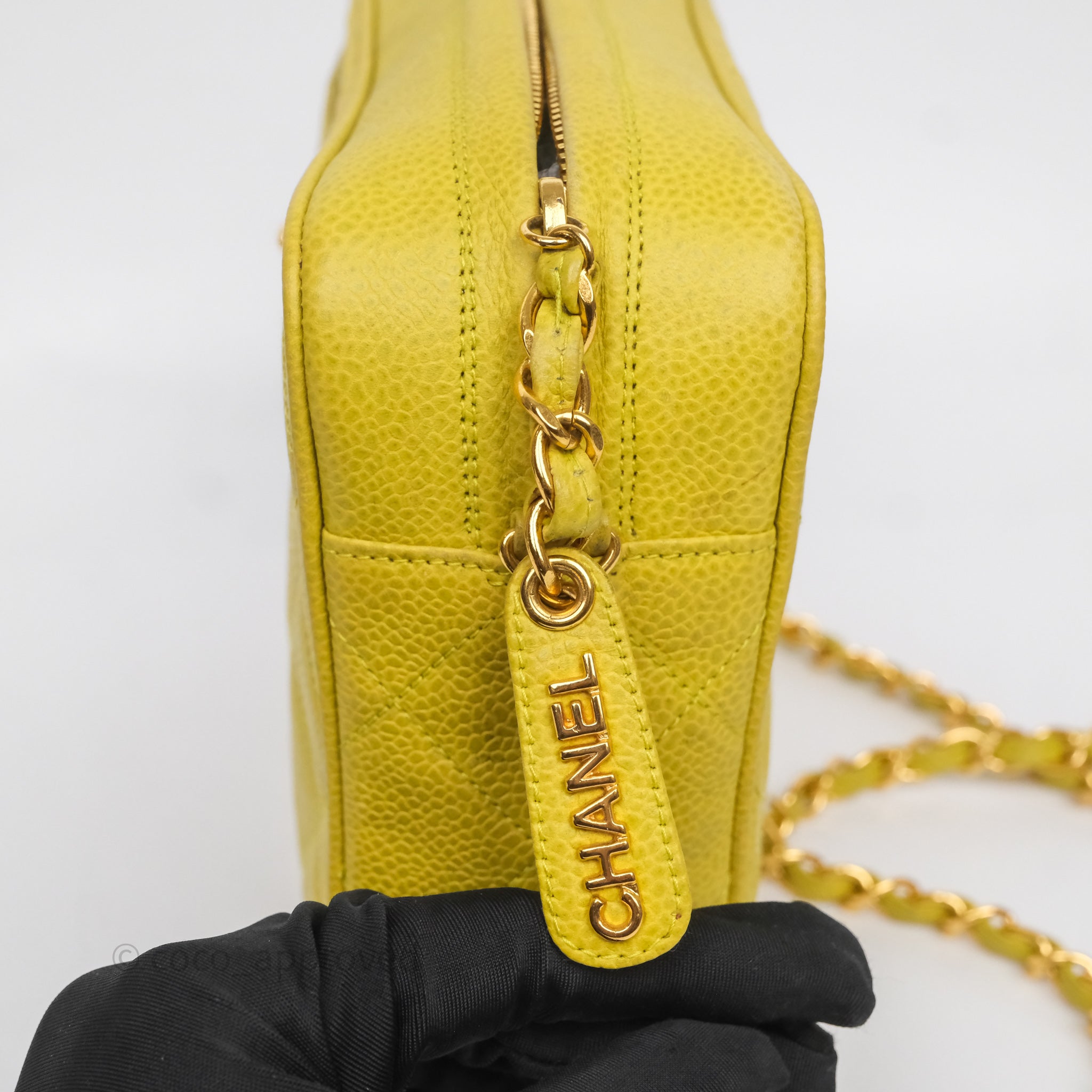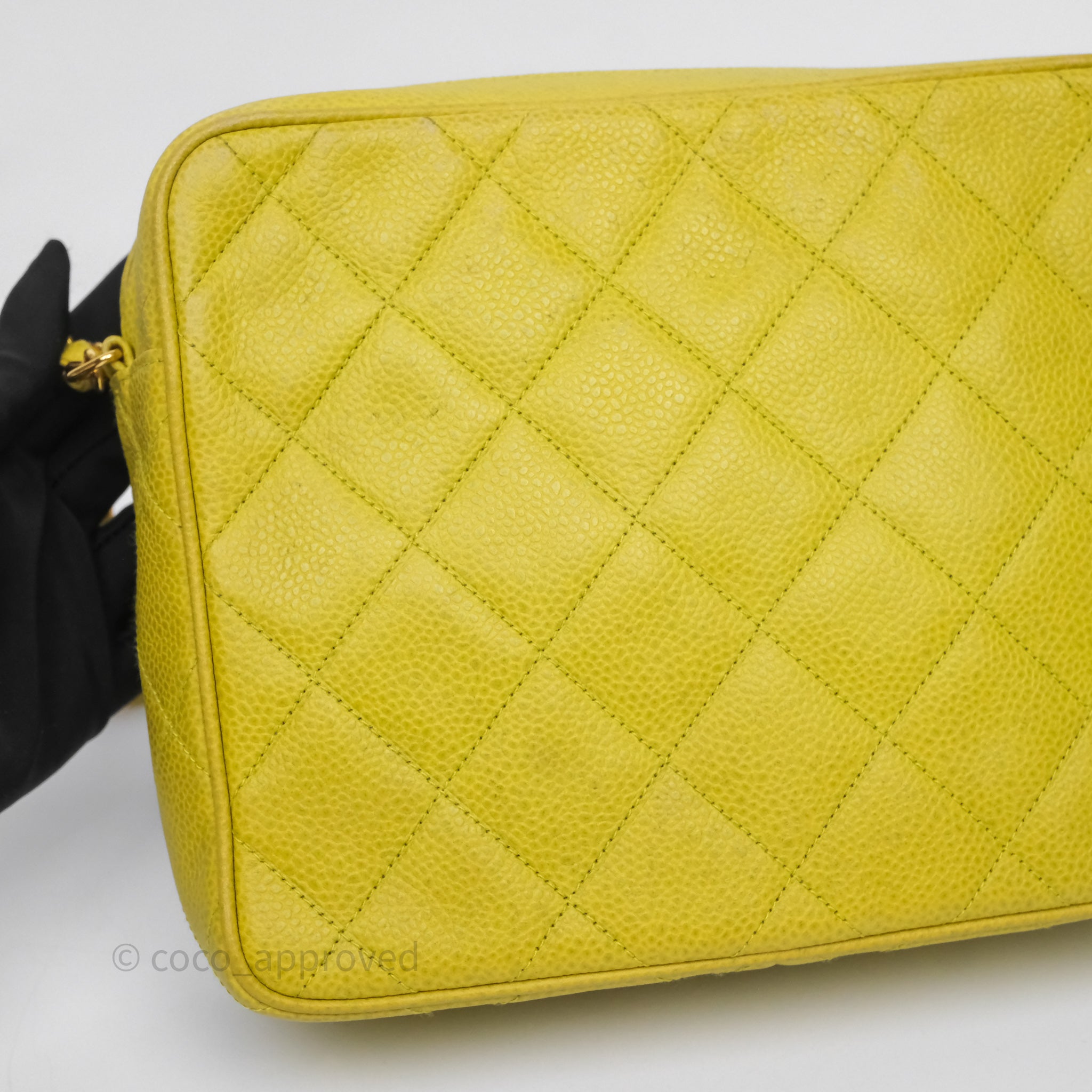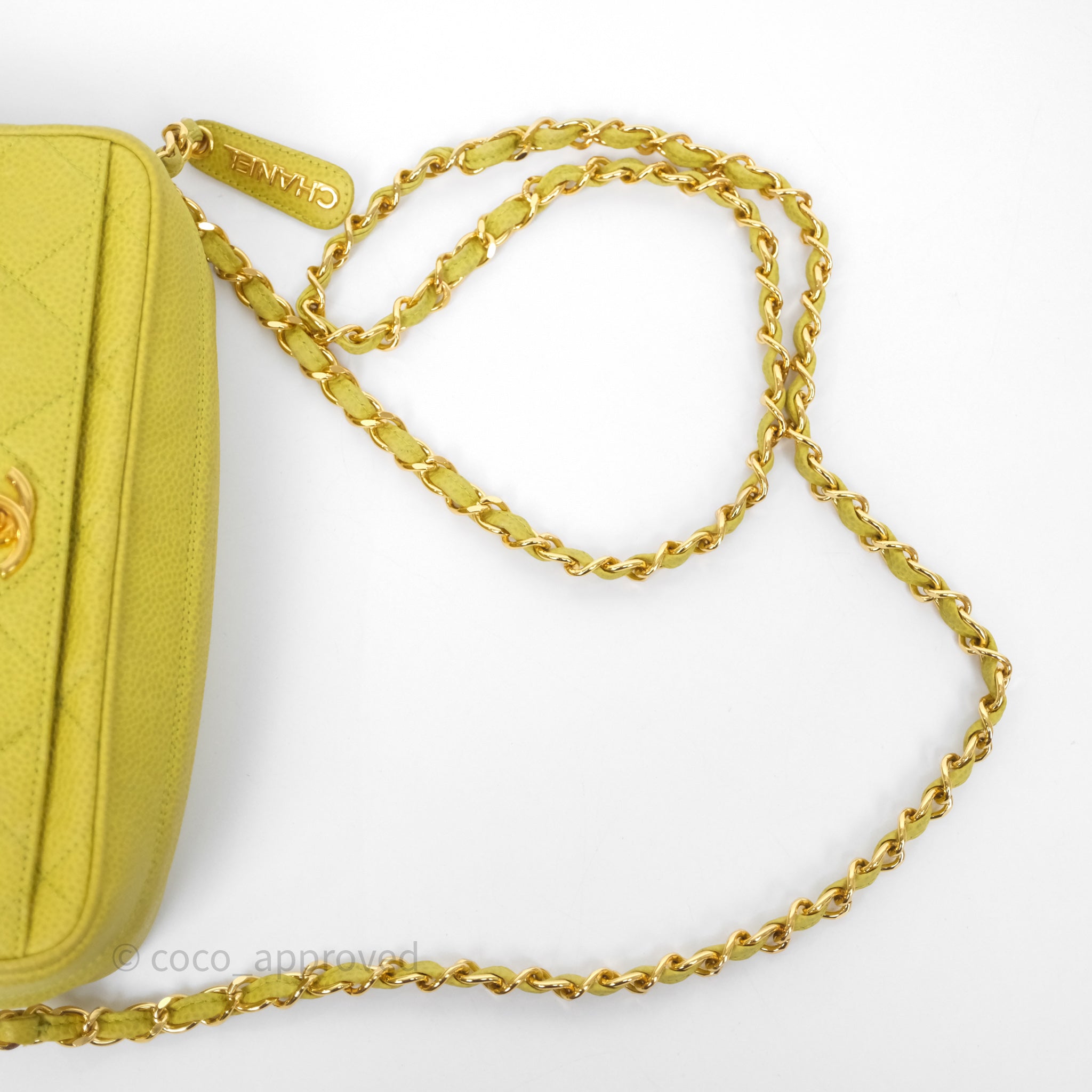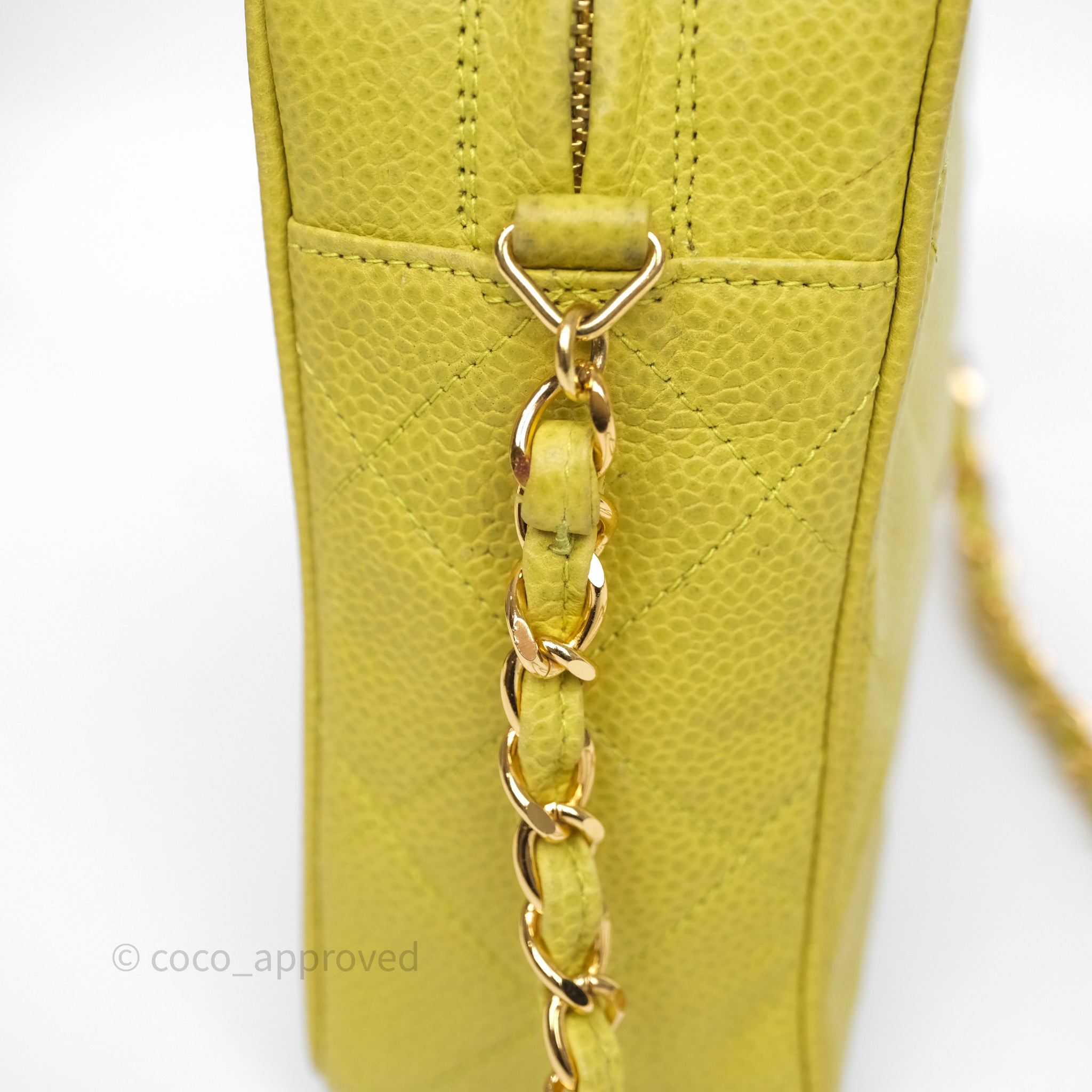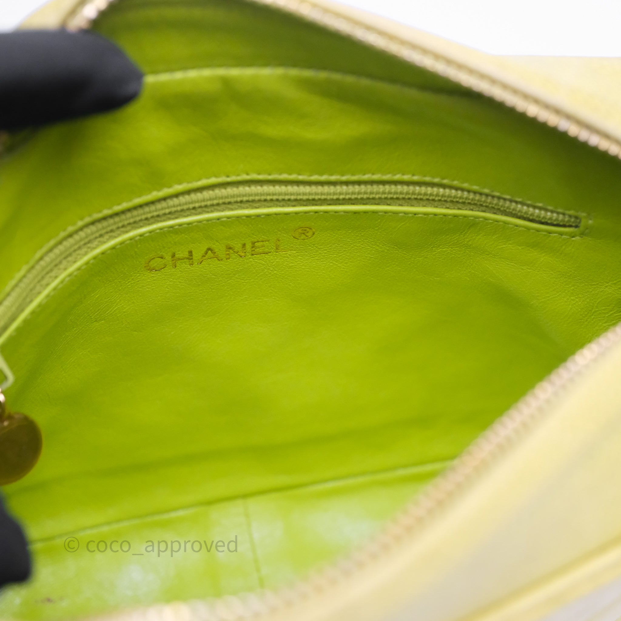 Chanel Vintage Quilted Camera Bag Green Yellow Caviar Gold Hardware