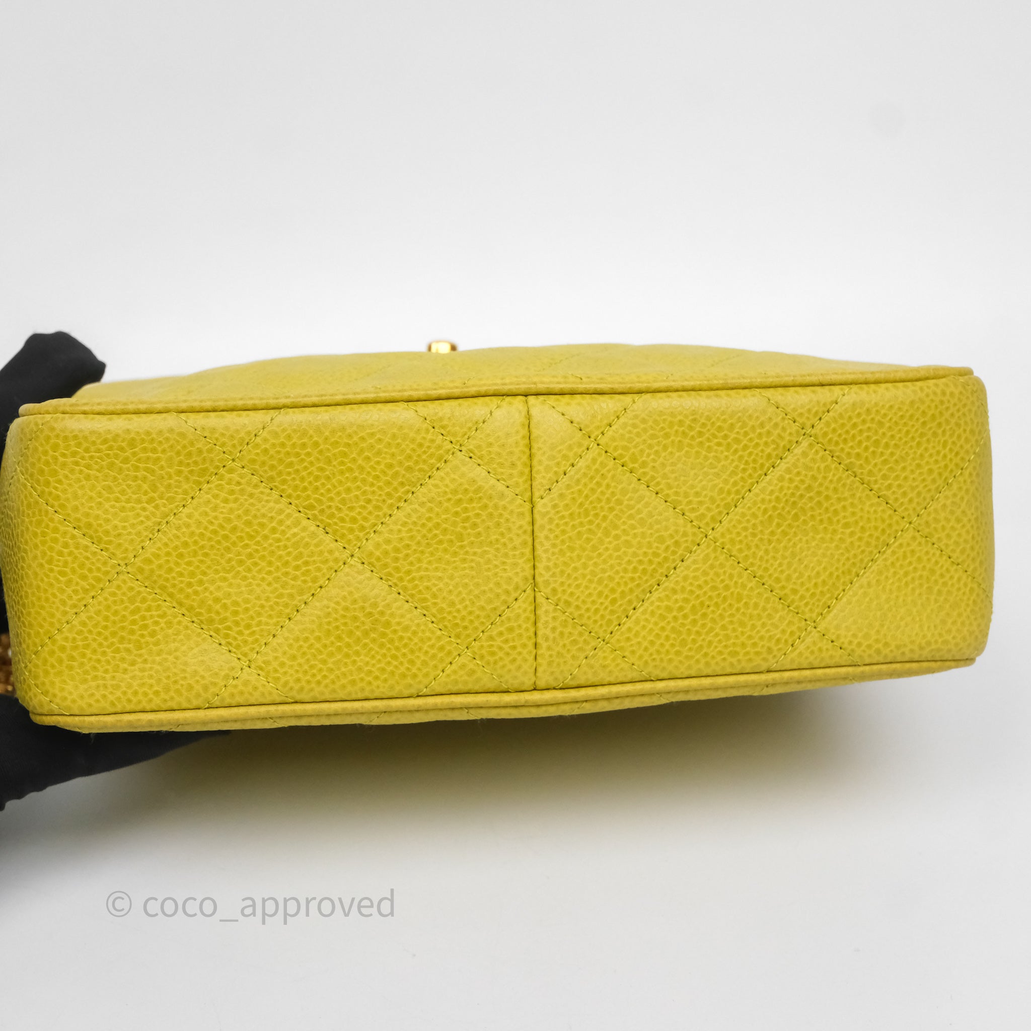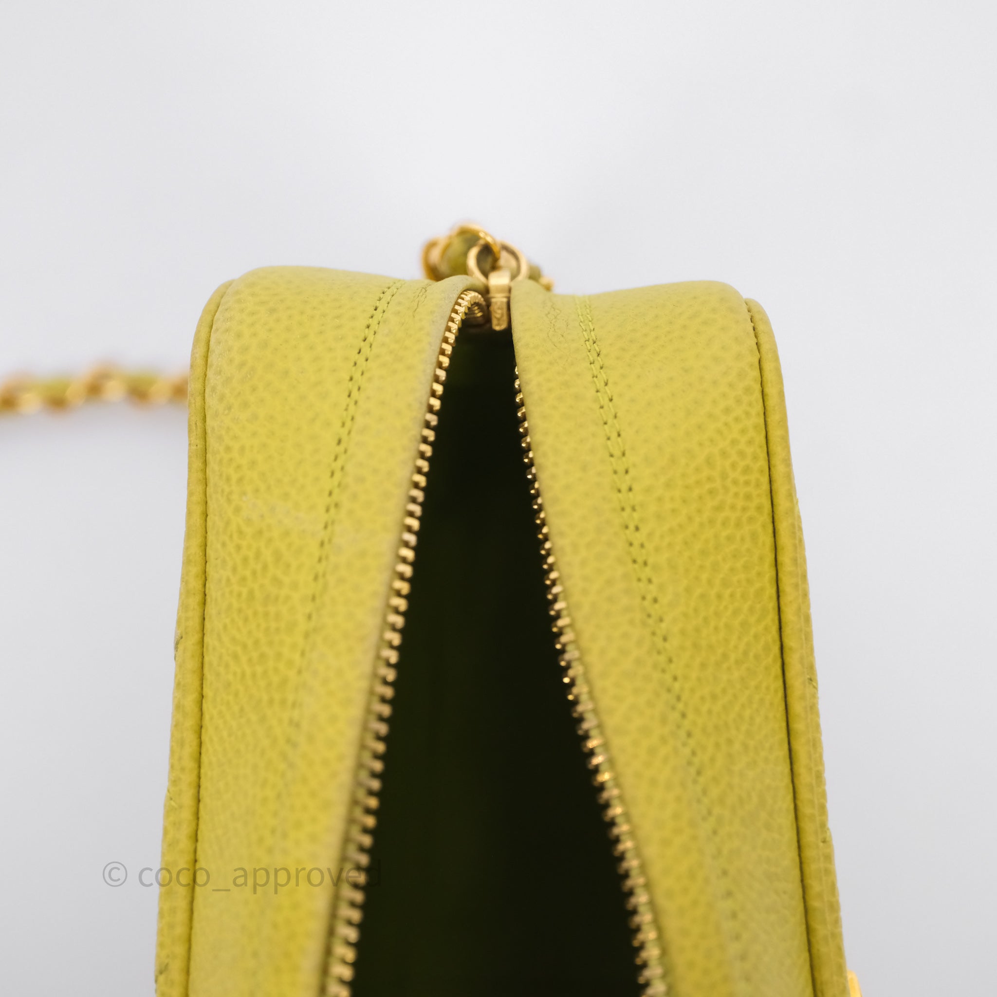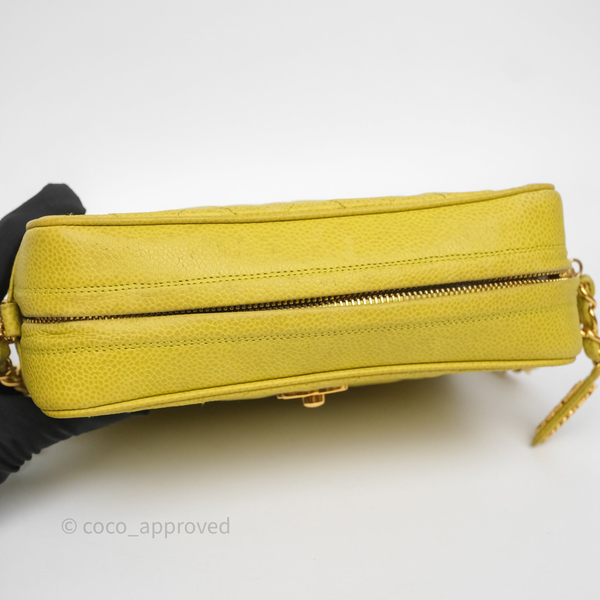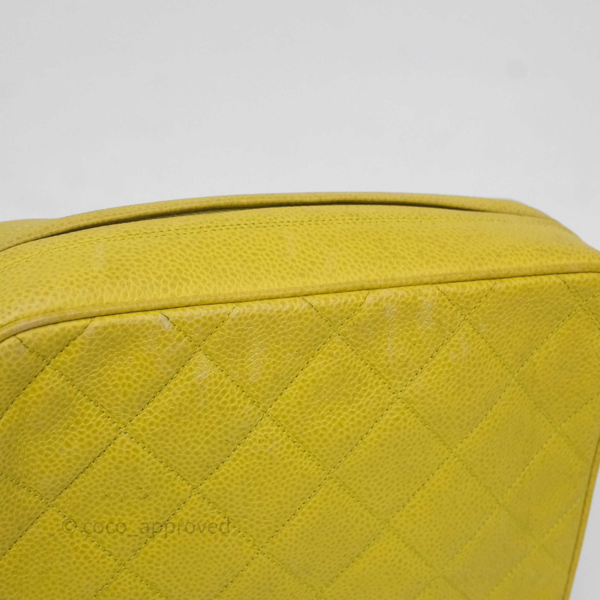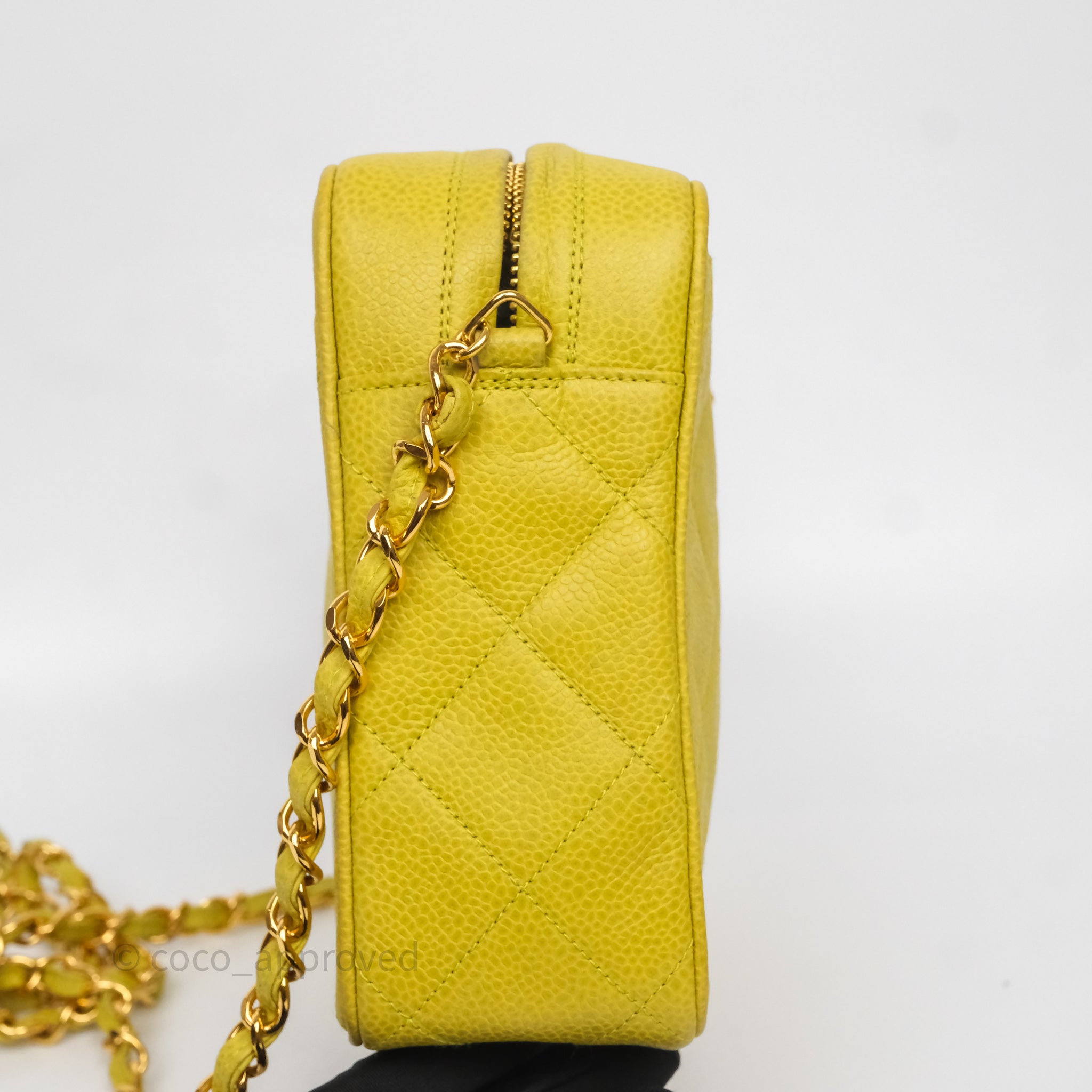 Chanel Vintage Quilted Camera Bag Green Yellow Caviar Gold Hardware