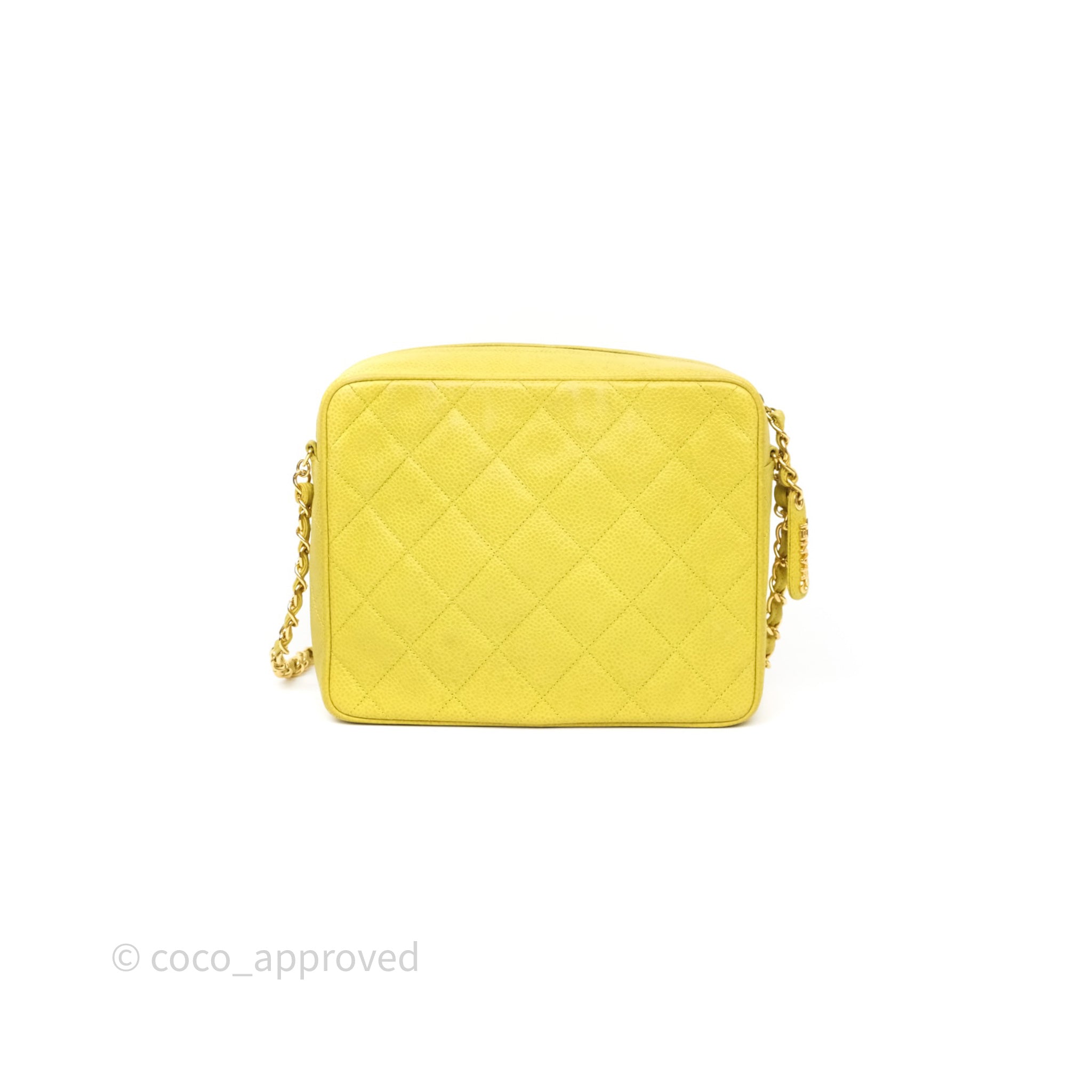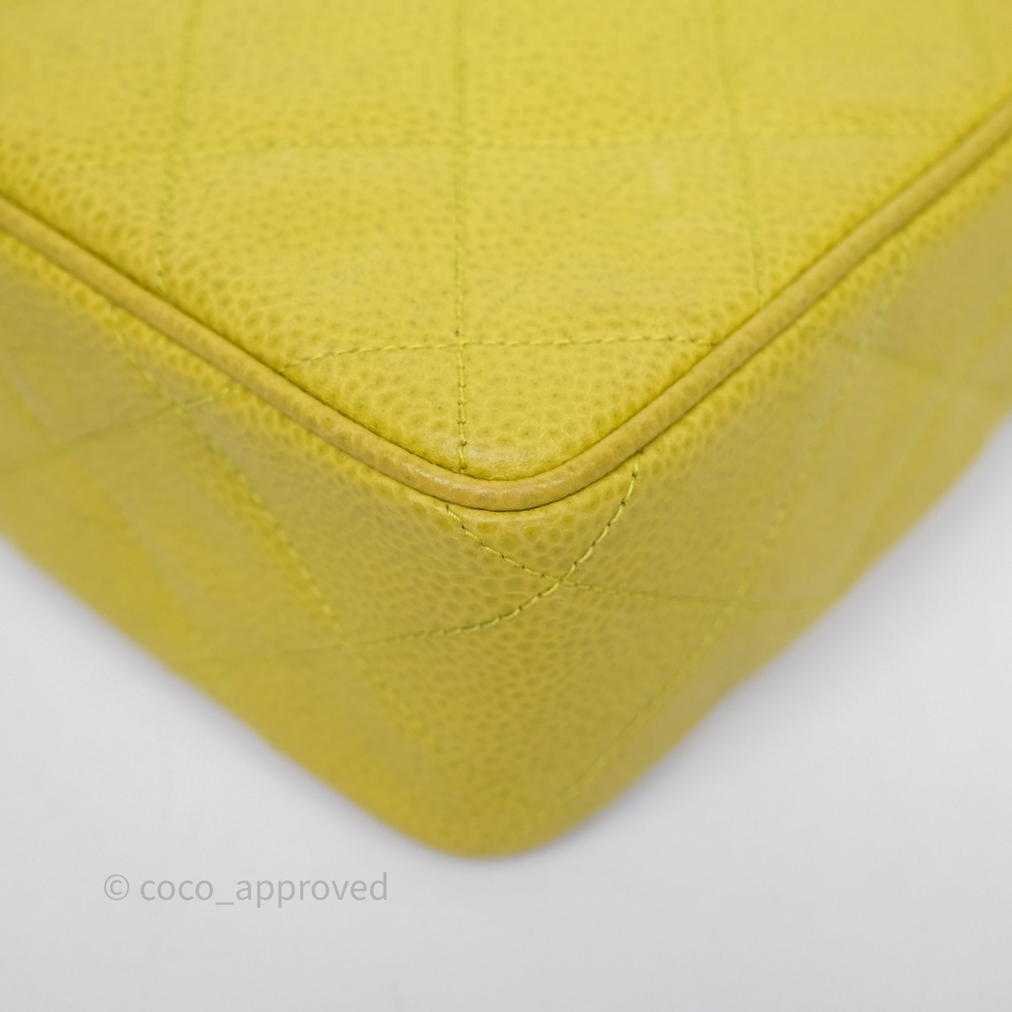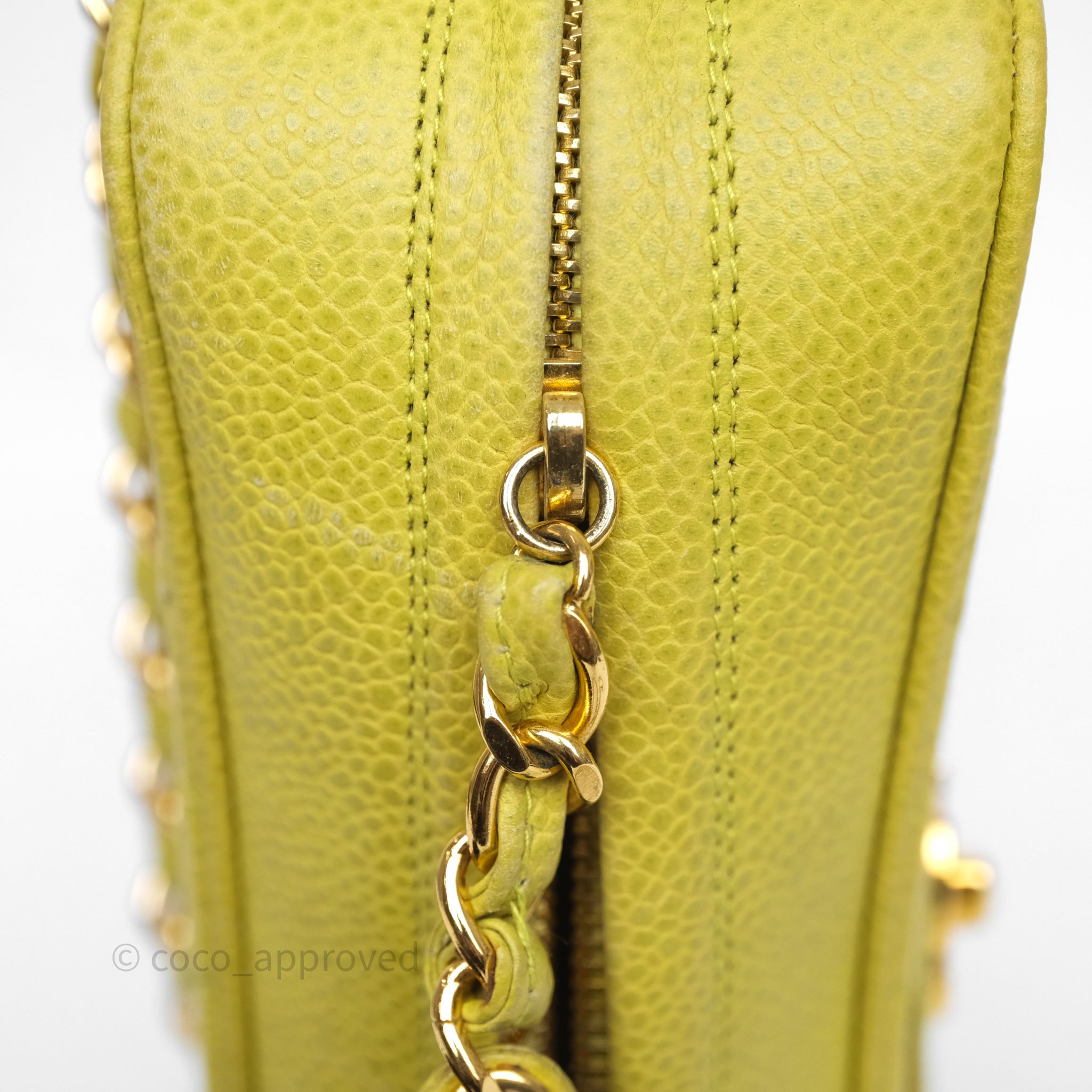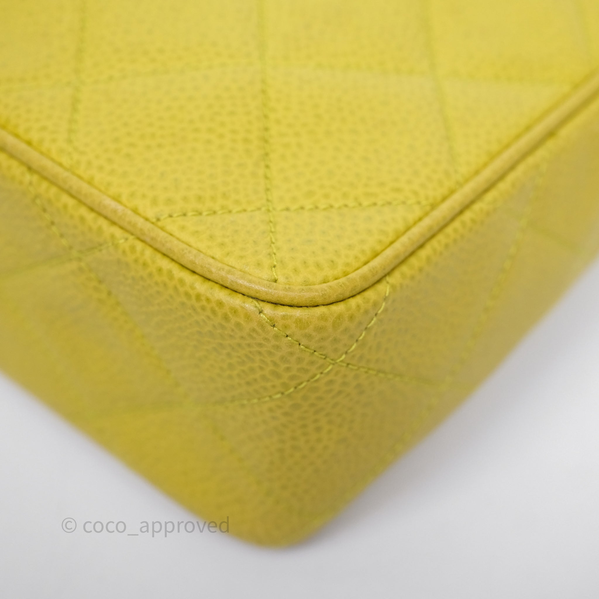 Chanel Vintage Quilted Camera Bag Green Yellow Caviar Gold Hardware
