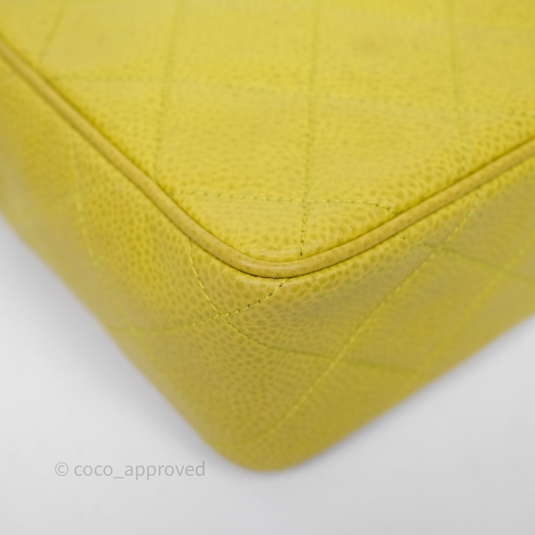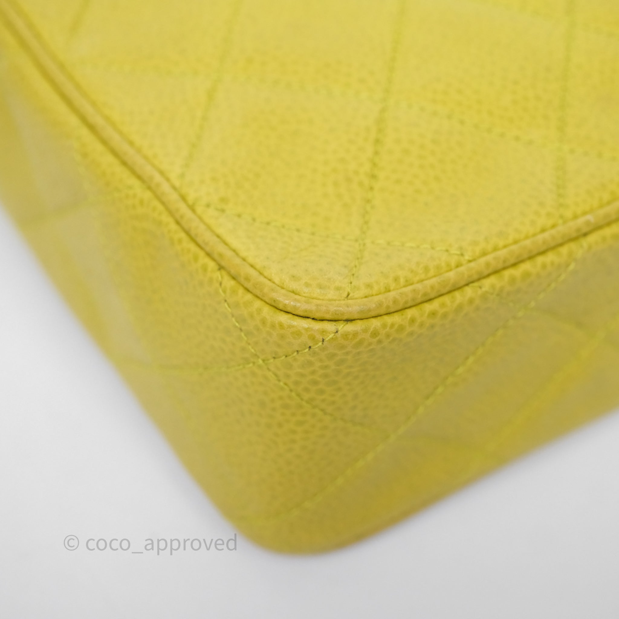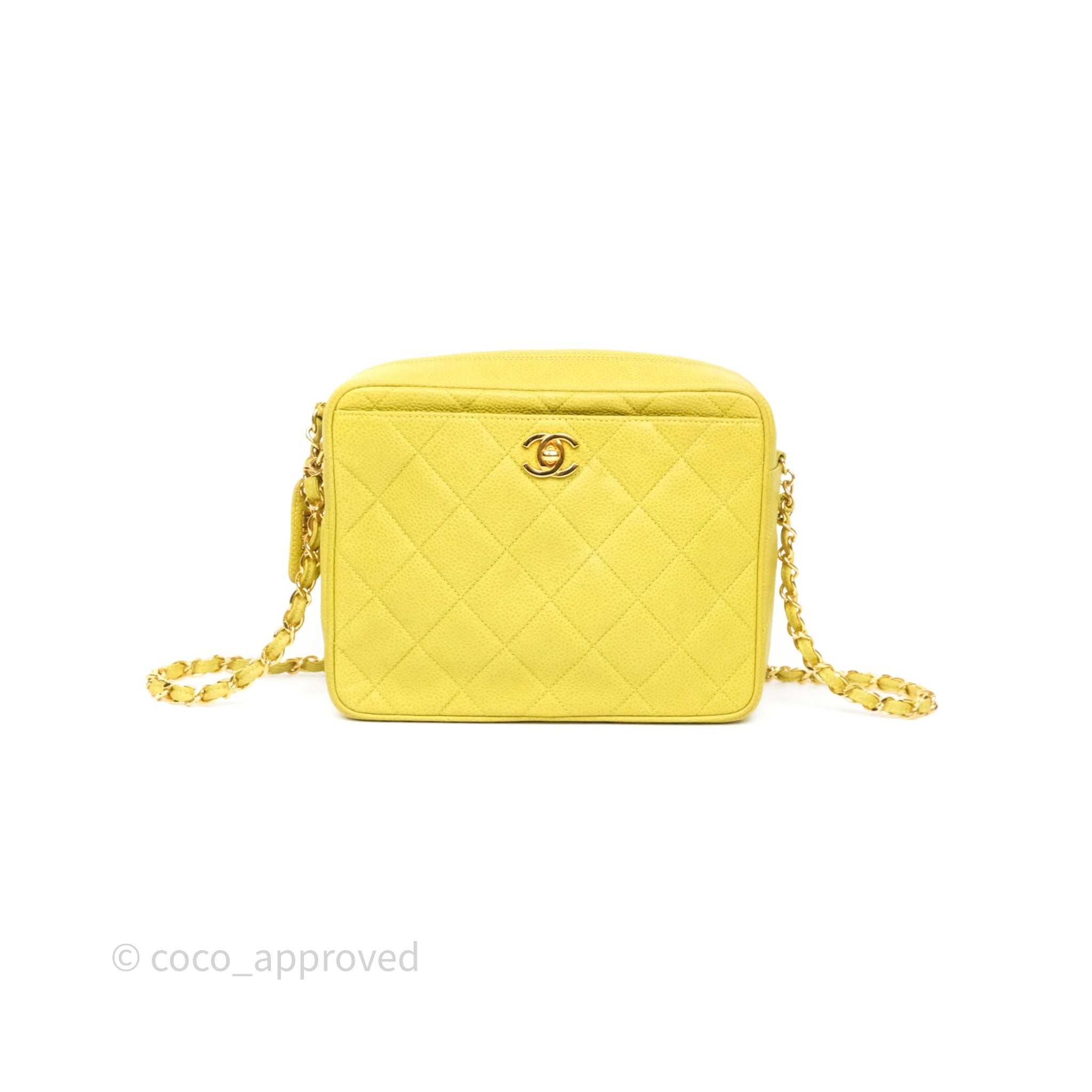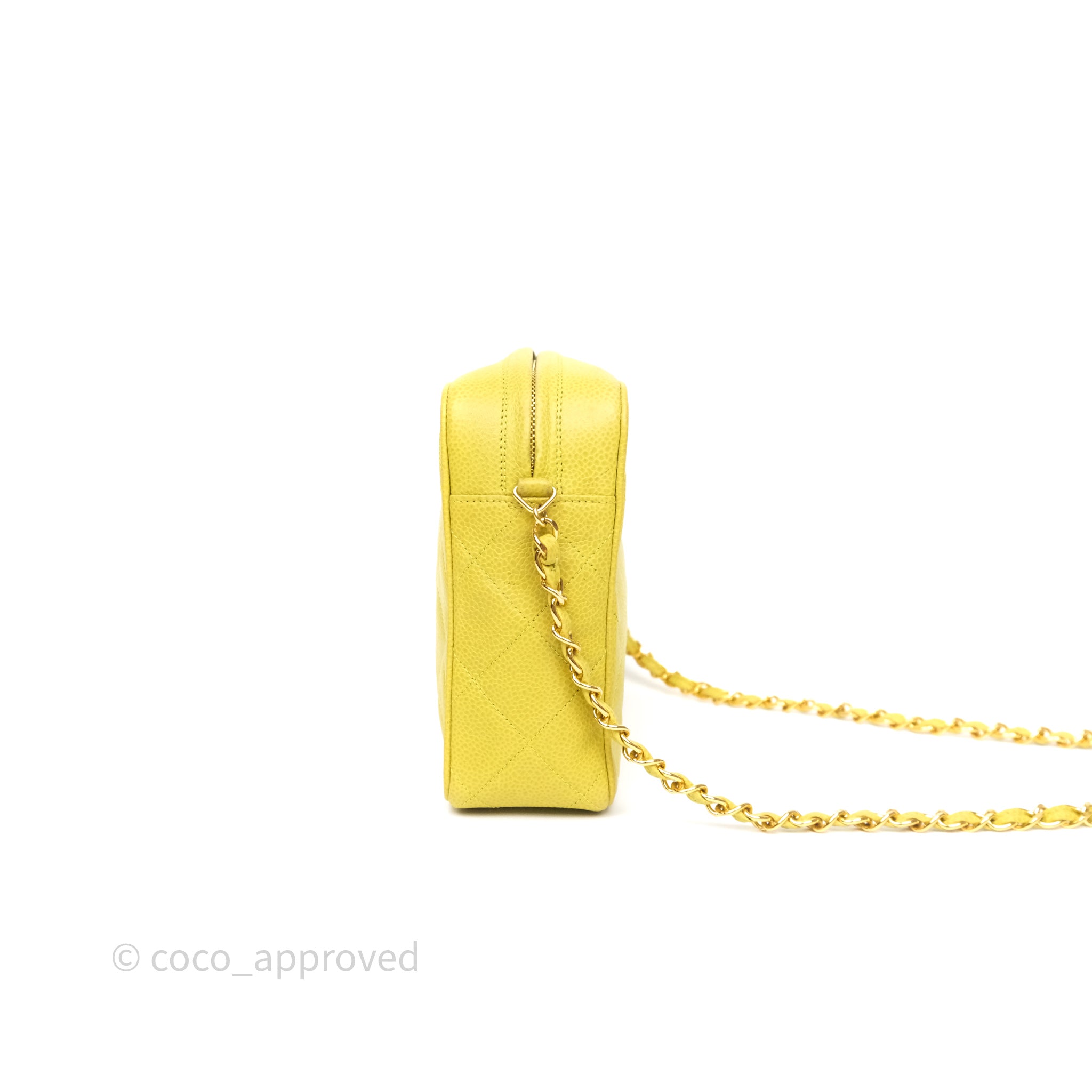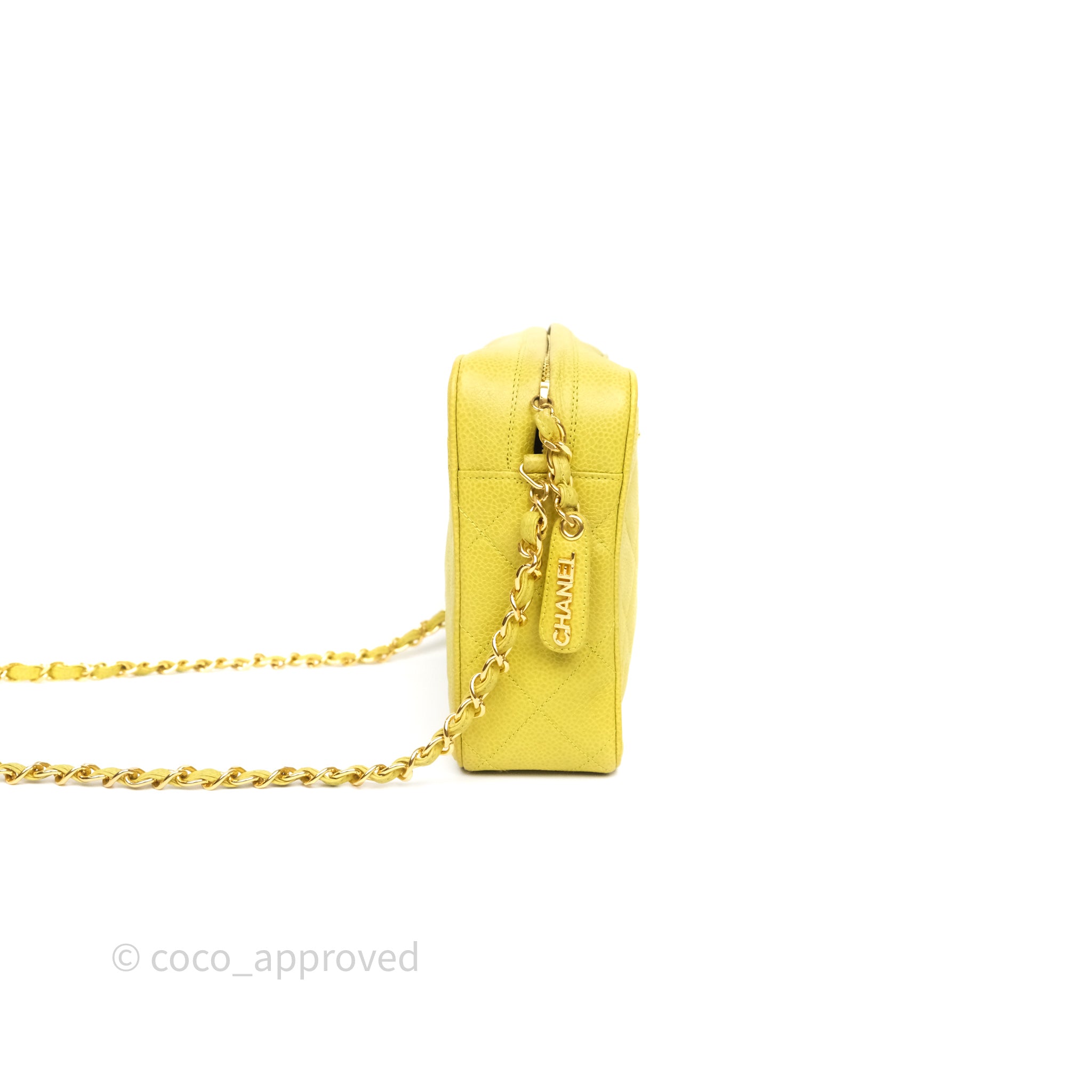 Chanel Vintage Quilted Camera Bag Green Yellow Caviar Gold Hardware