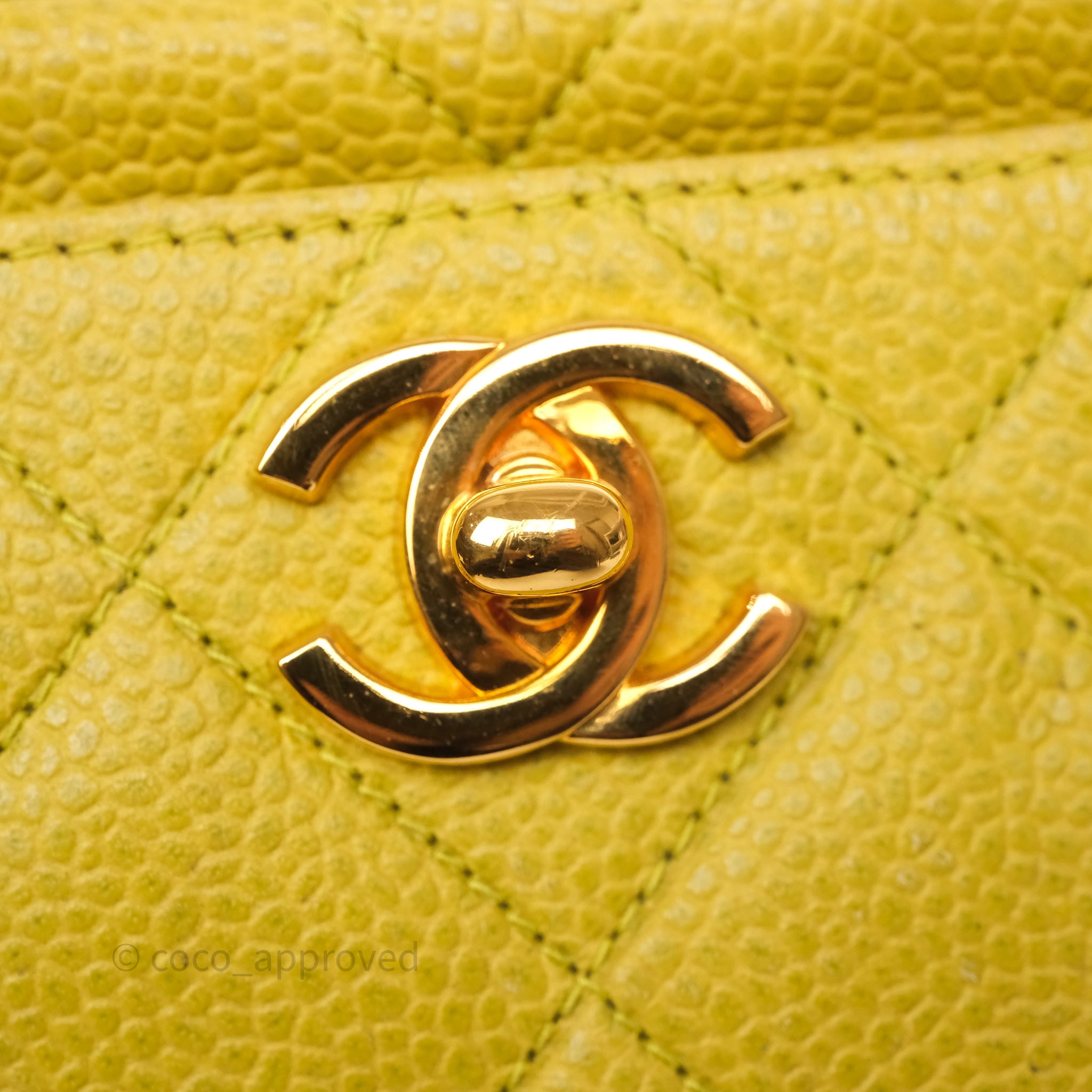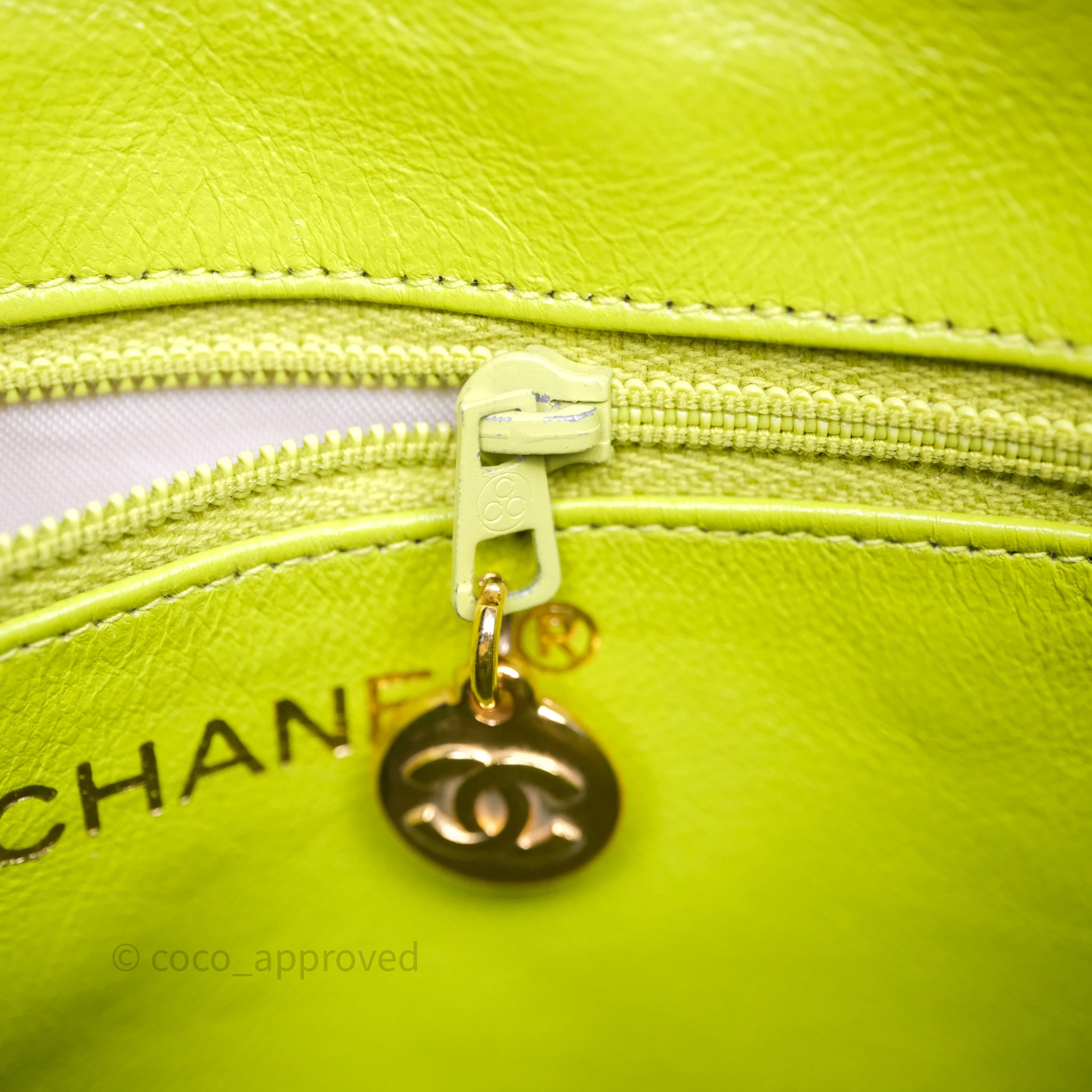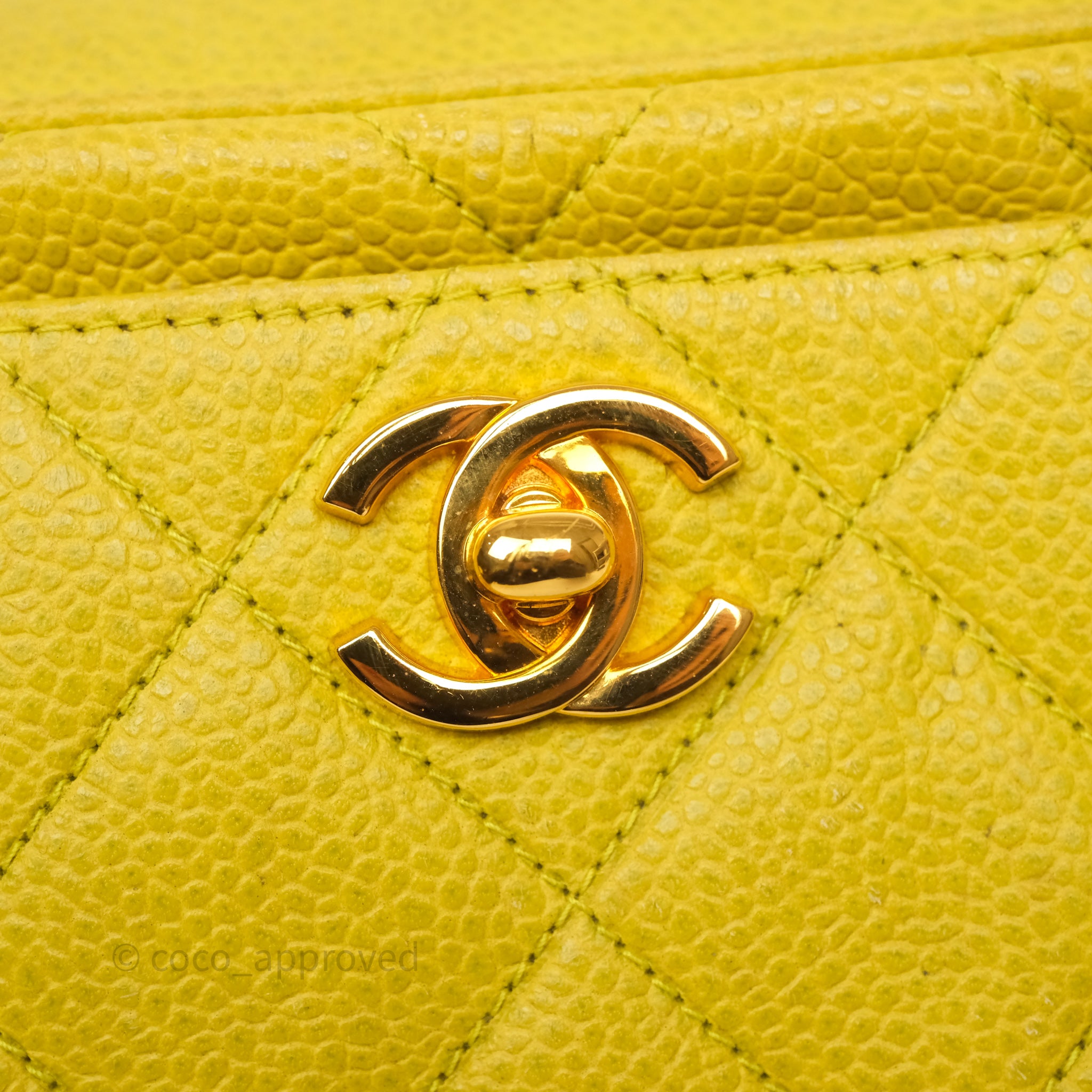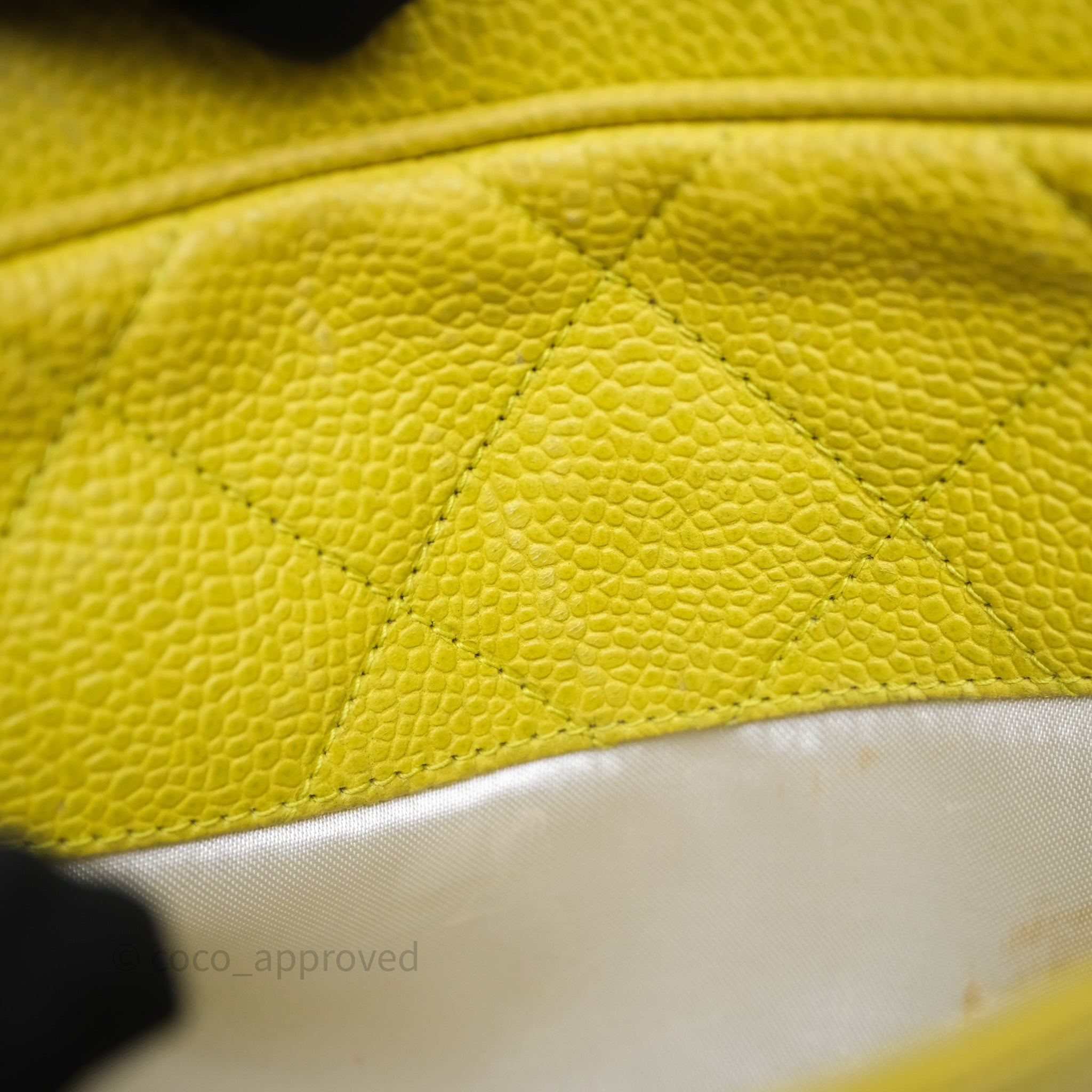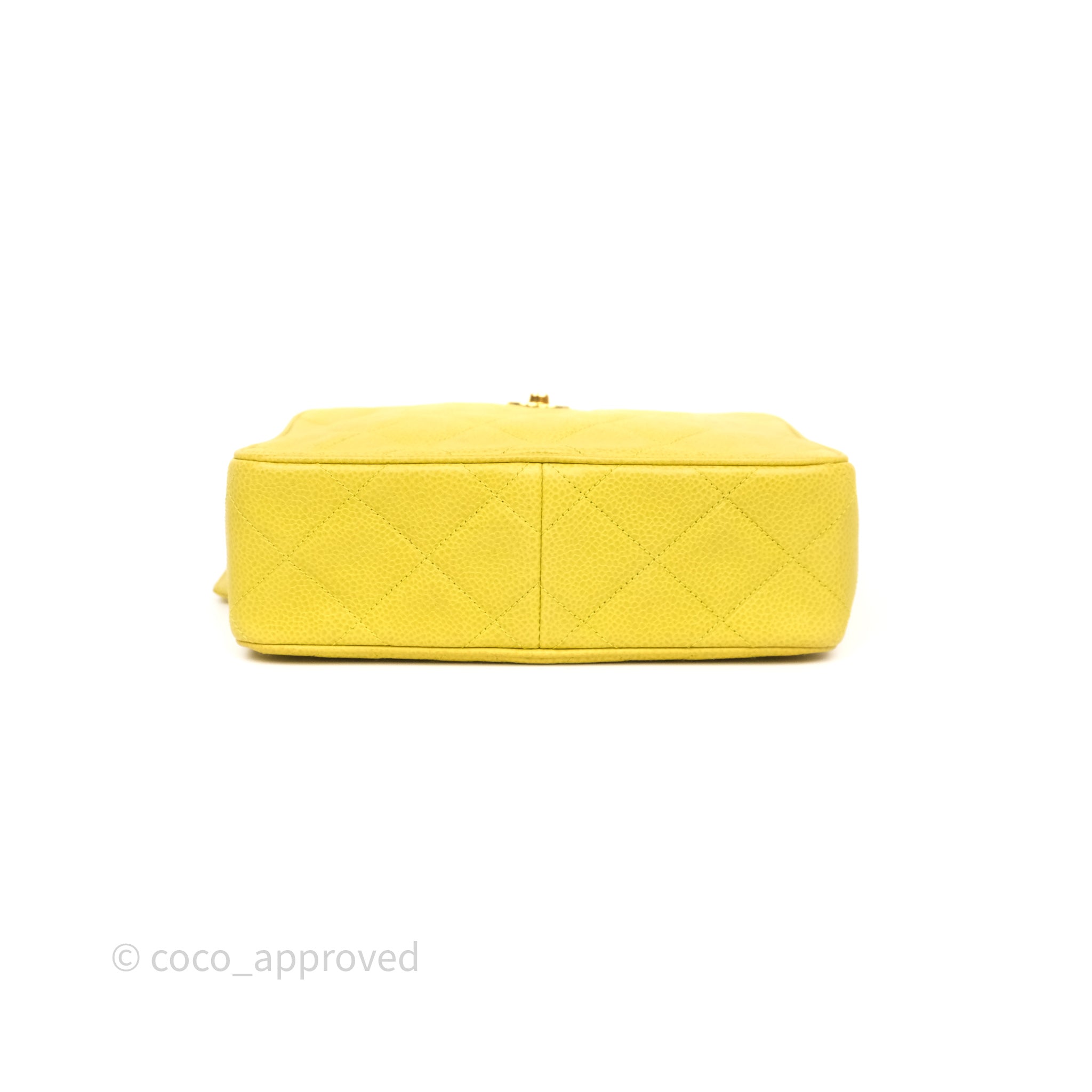 Chanel Vintage Quilted Camera Bag Green Yellow Caviar Gold Hardware