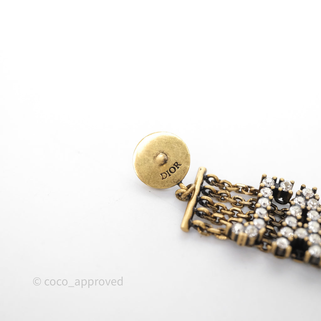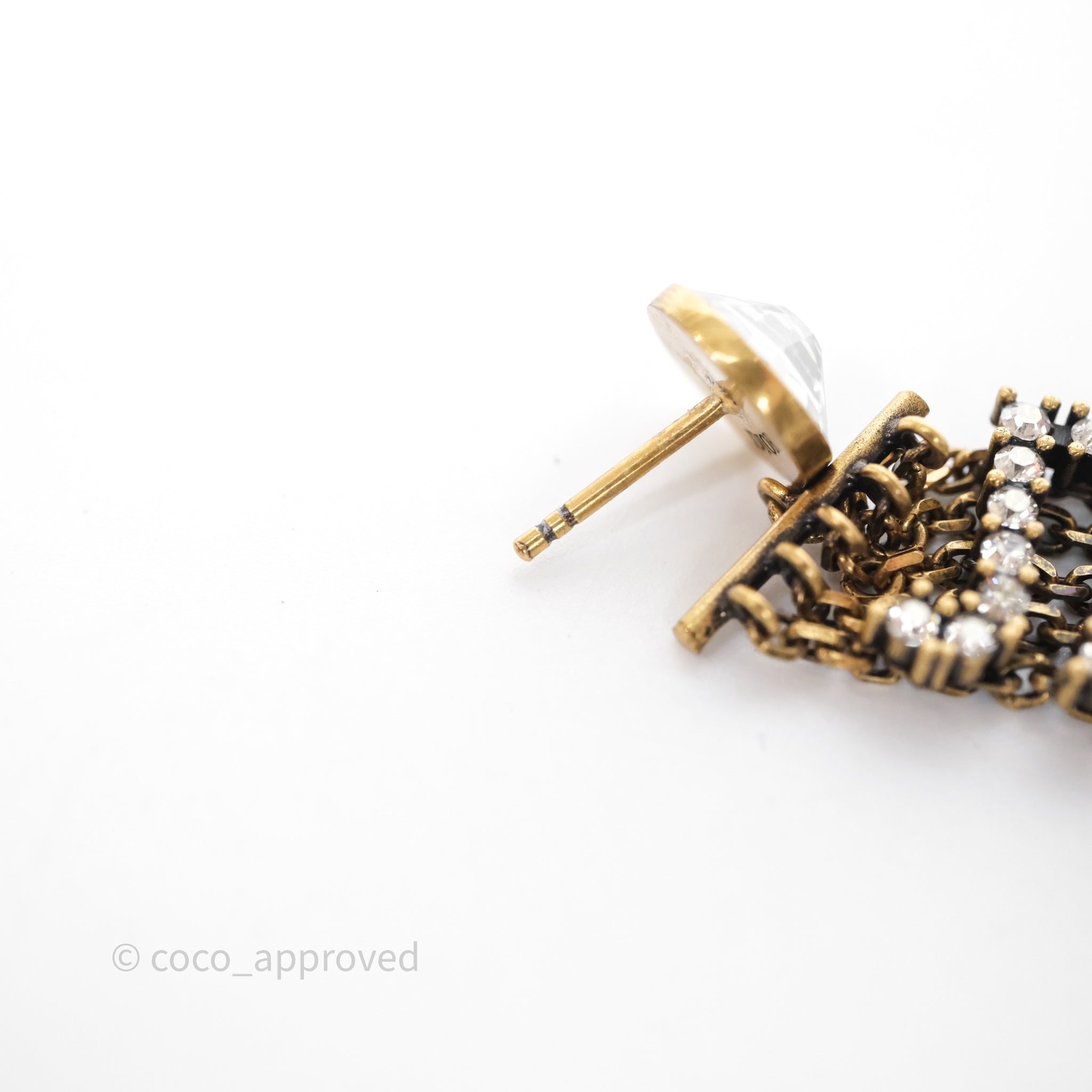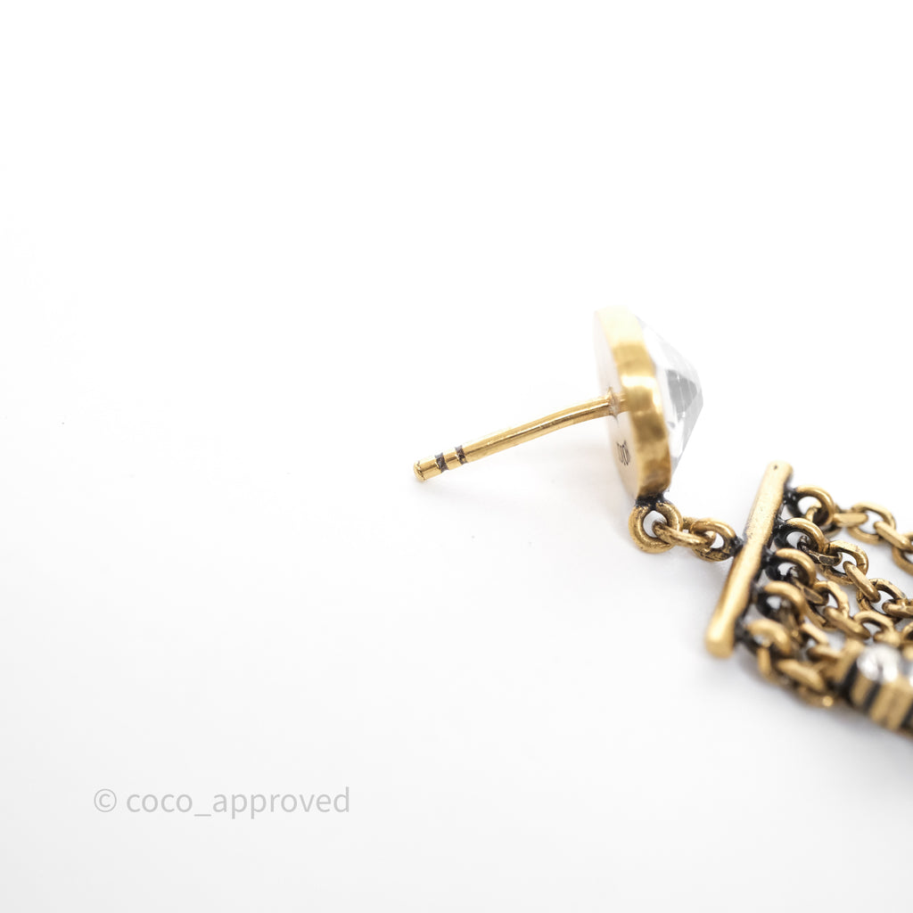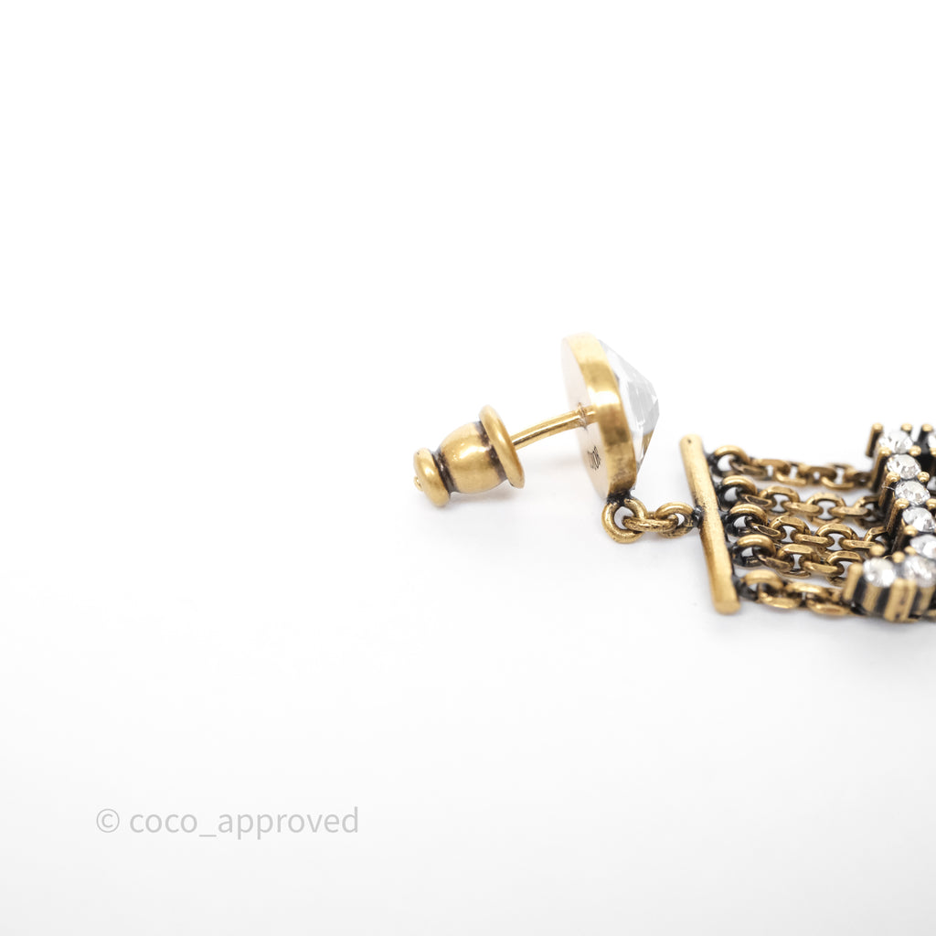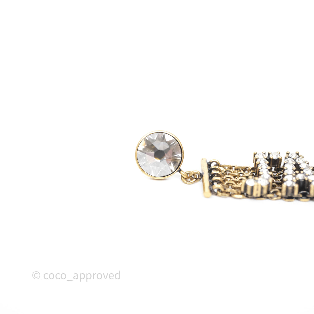 Christian Dior Crystal J'Adior Dangle Chain Earrings Gold Tone