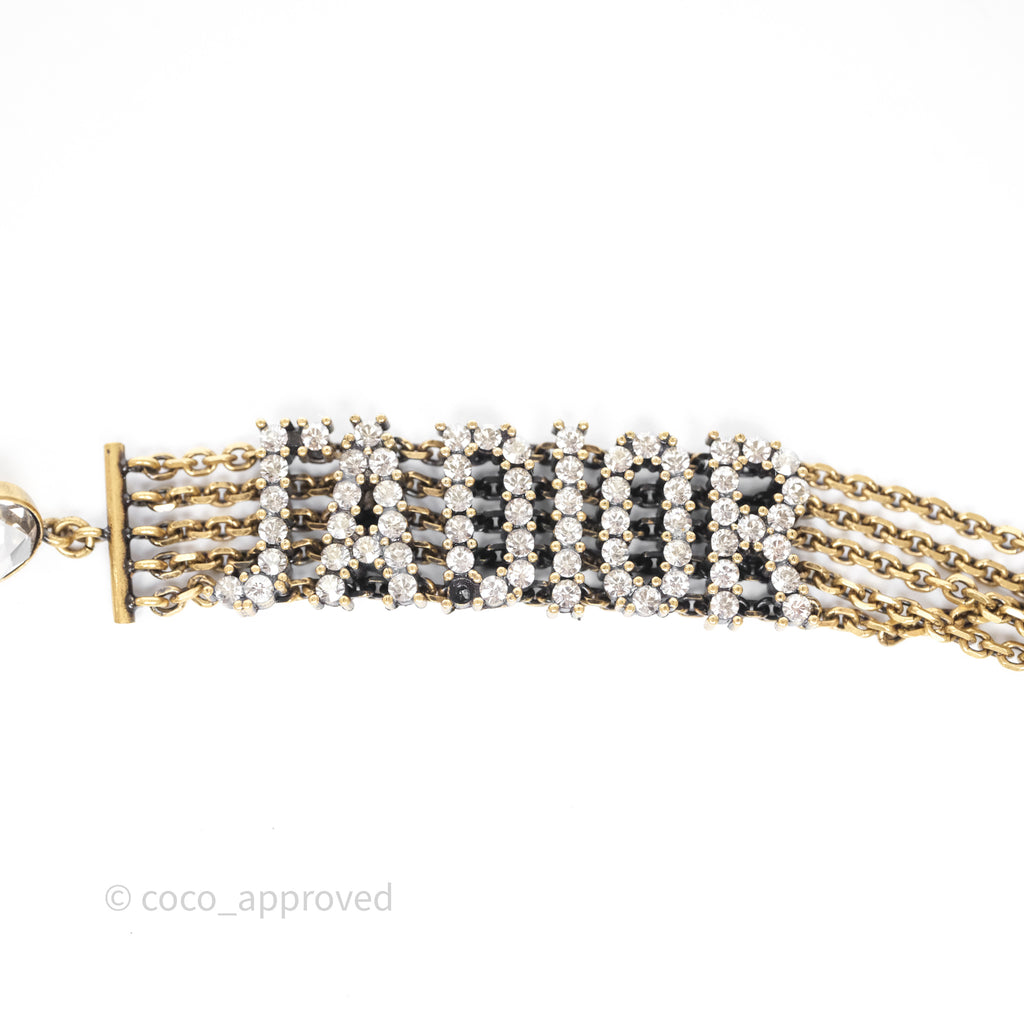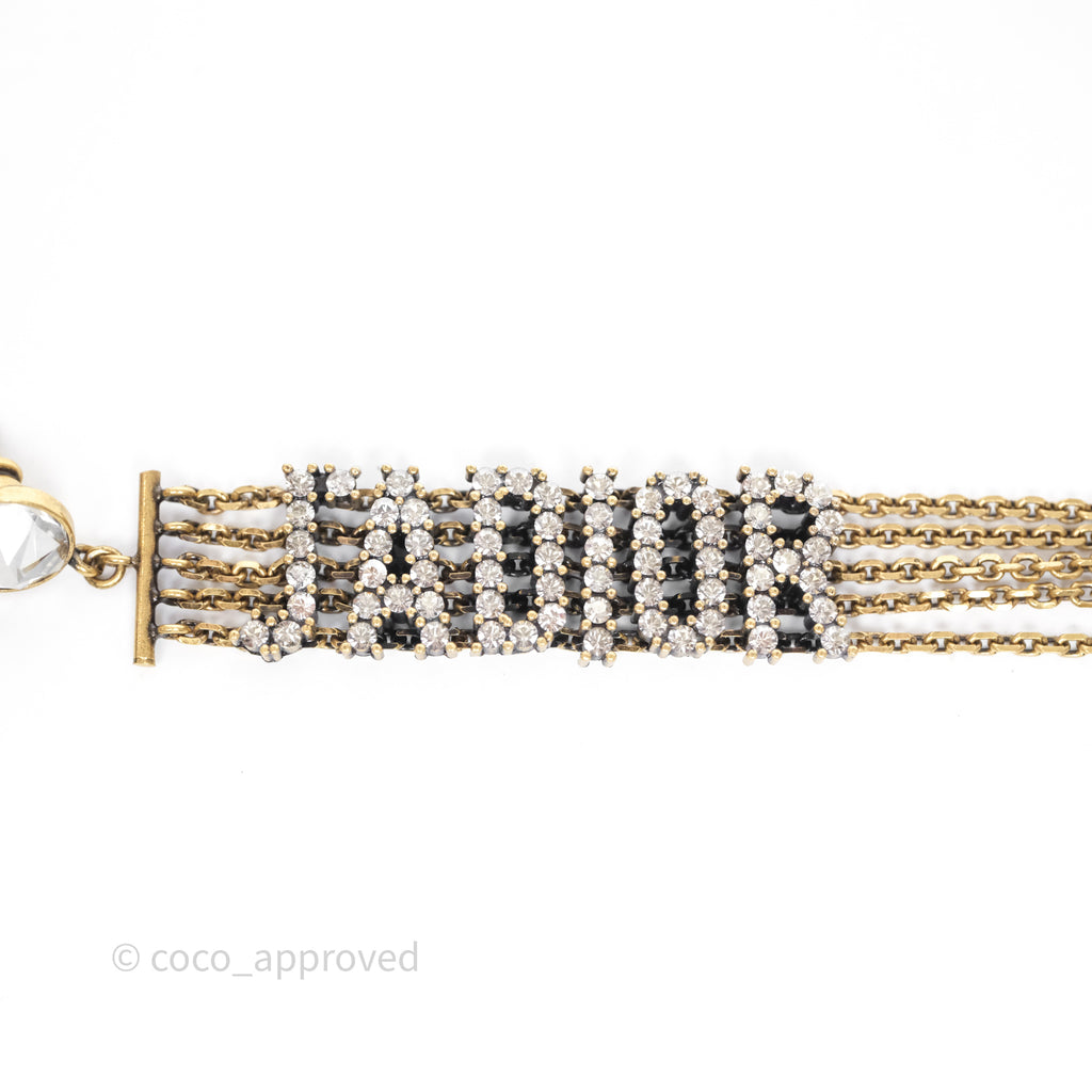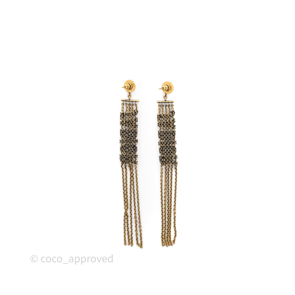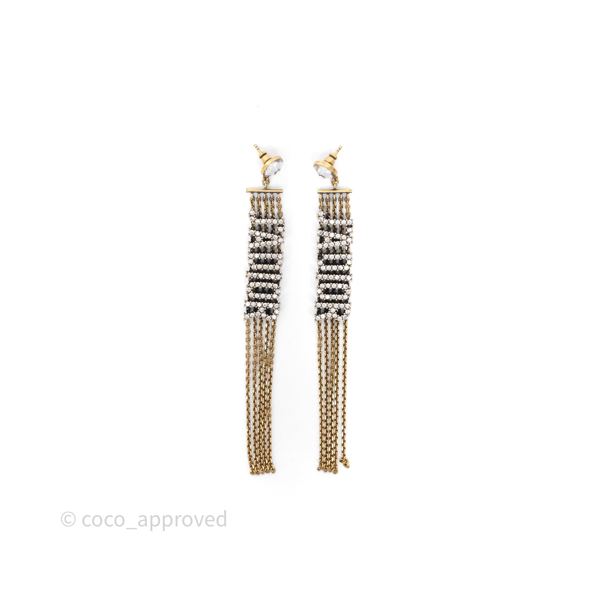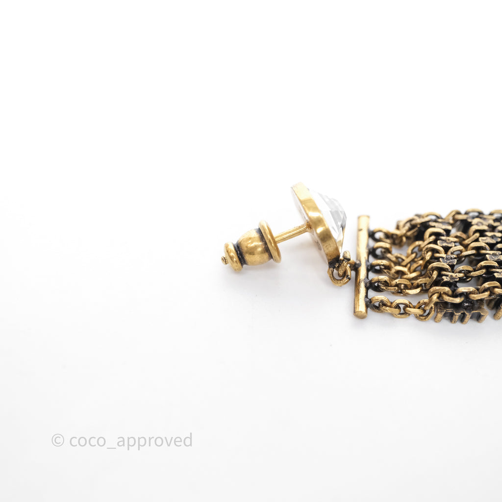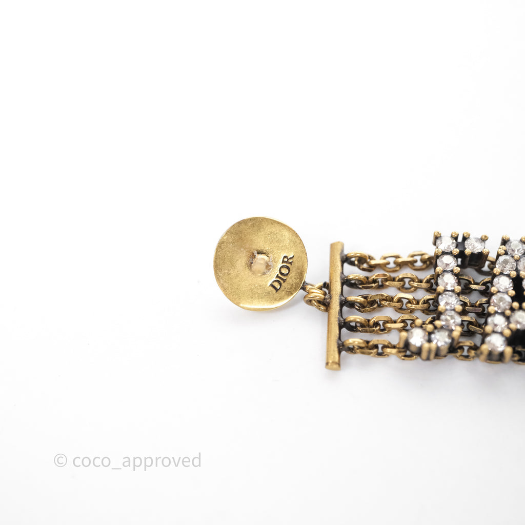 Christian Dior Crystal J'Adior Dangle Chain Earrings Gold Tone