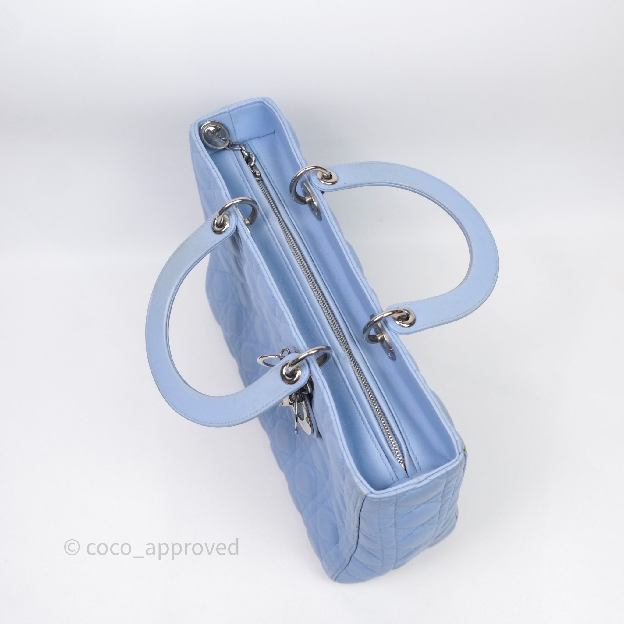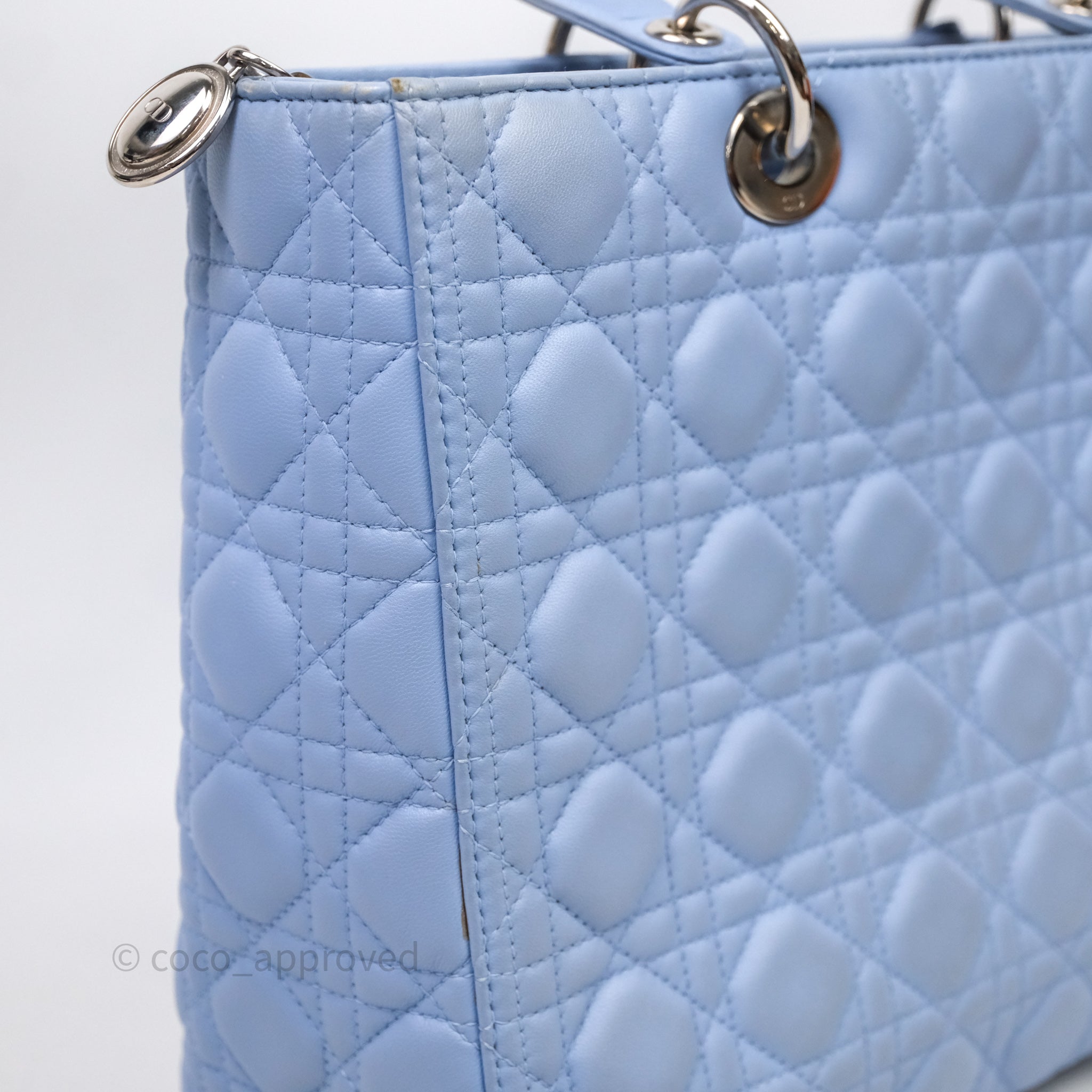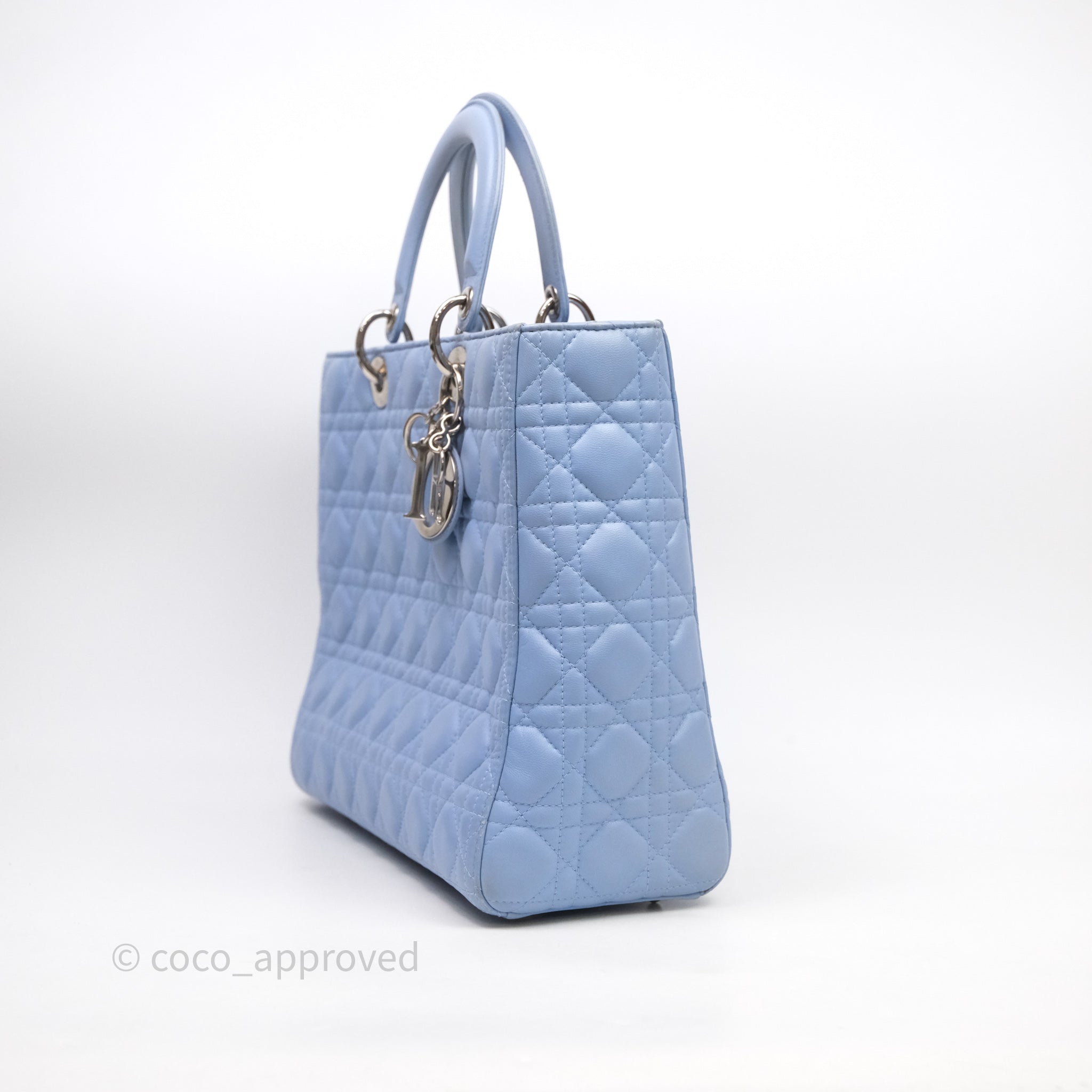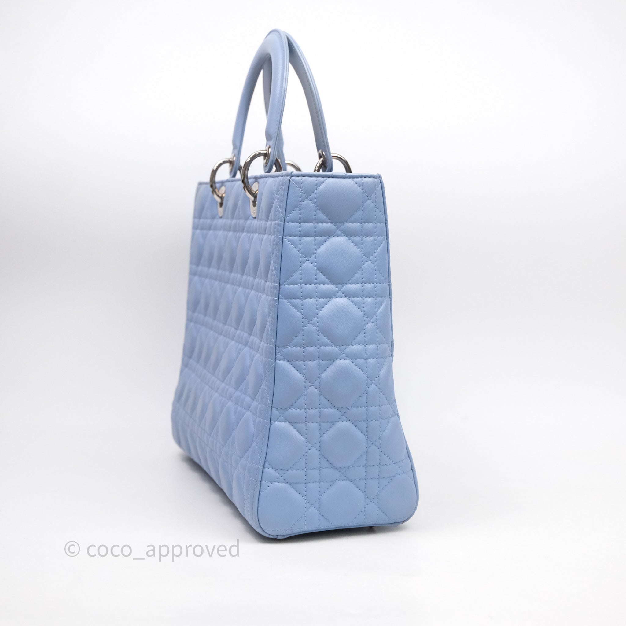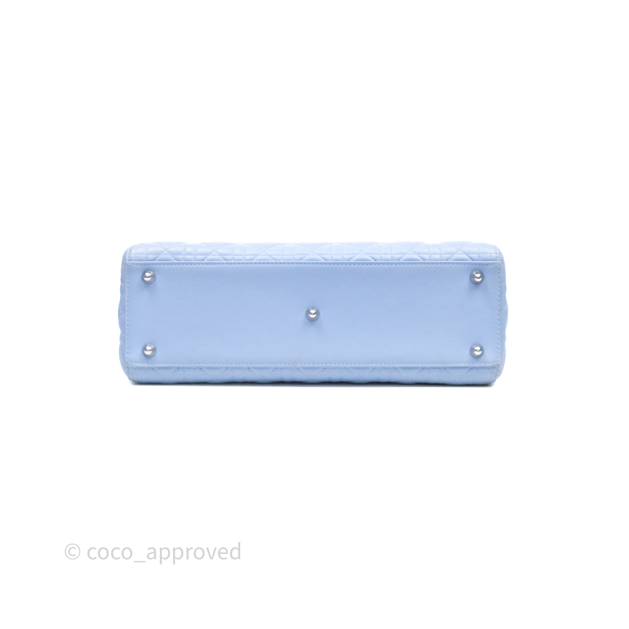 Christian Dior Large Lady Dior Cannage Blue Lambskin Silver Hardware