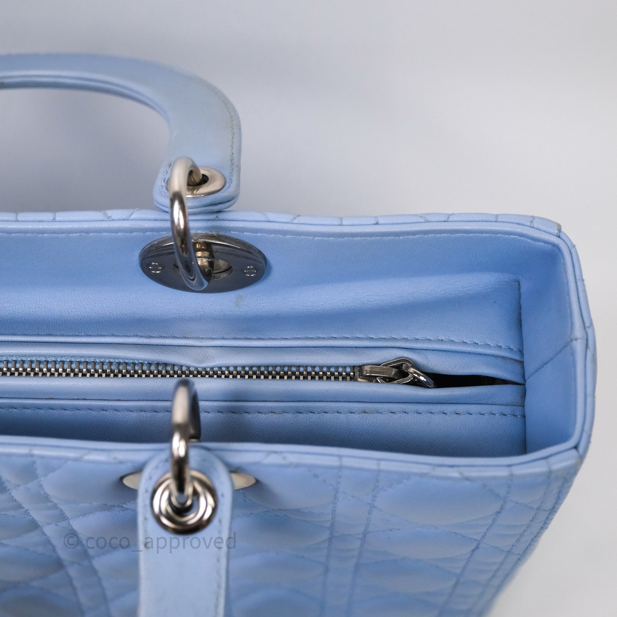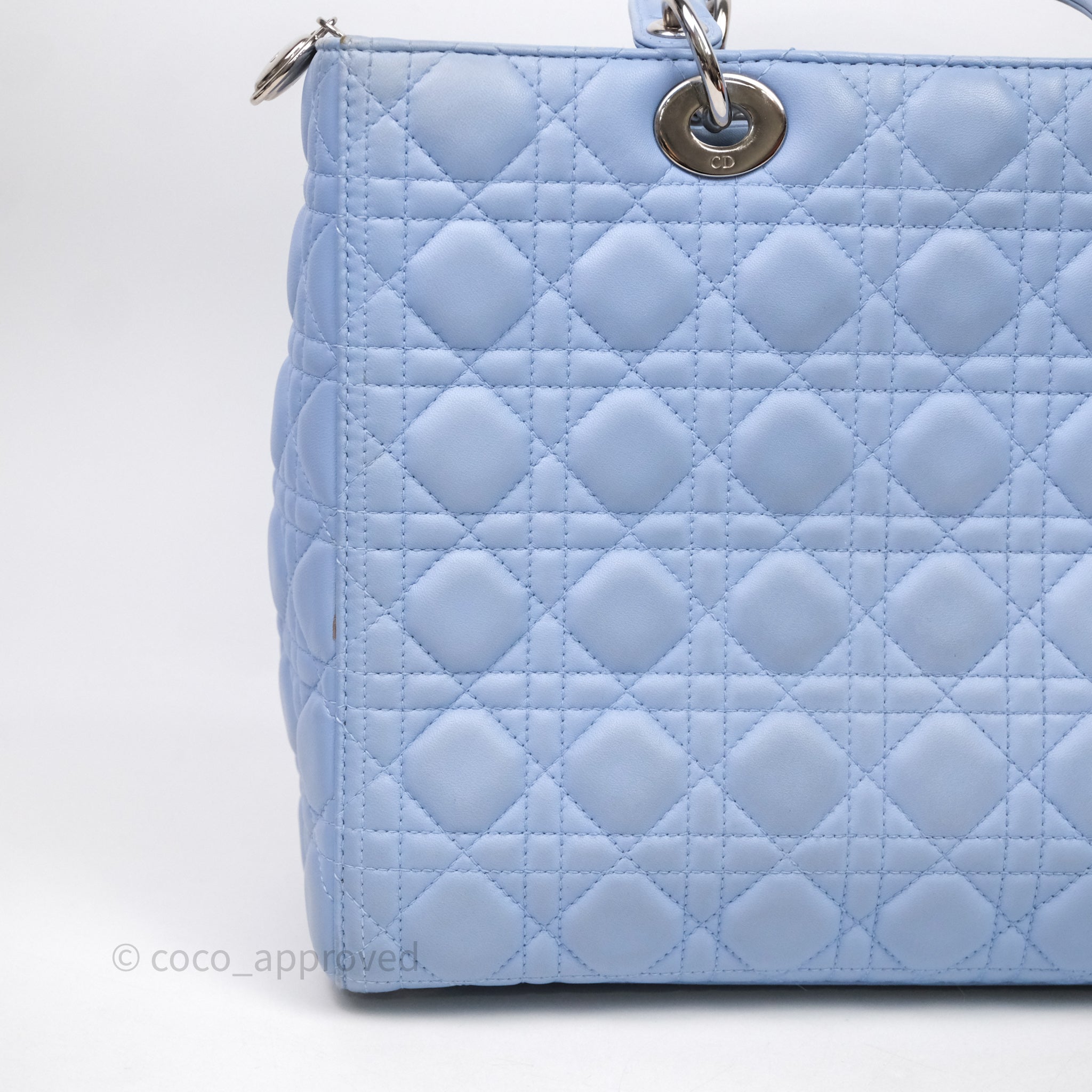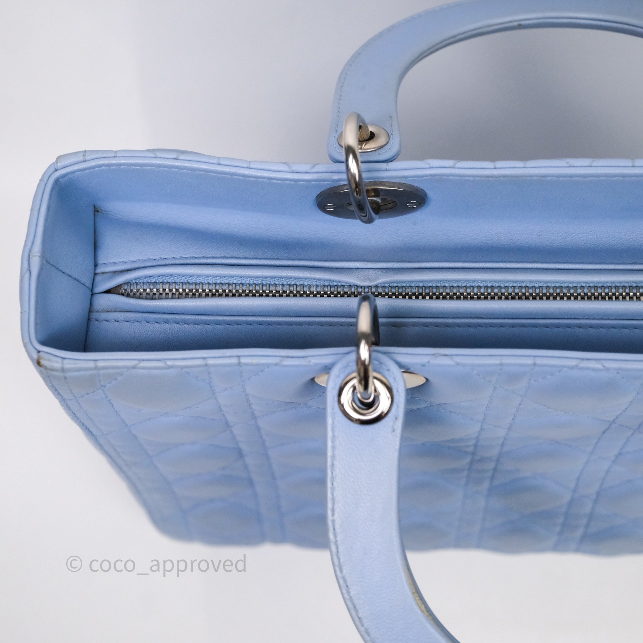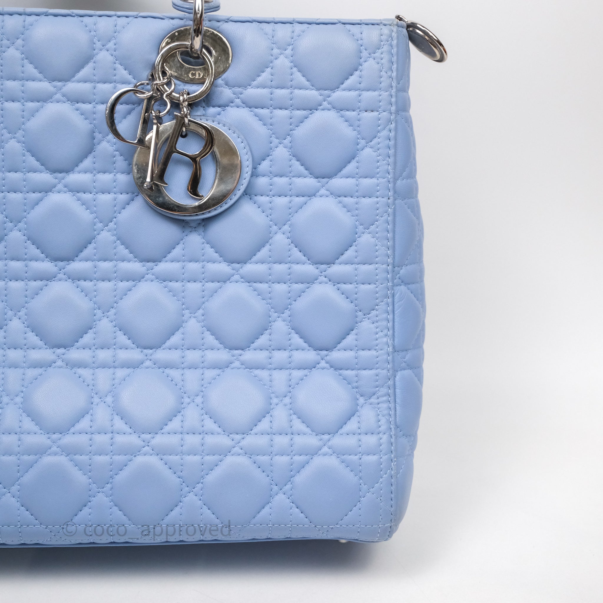 Christian Dior Large Lady Dior Cannage Blue Lambskin Silver Hardware
