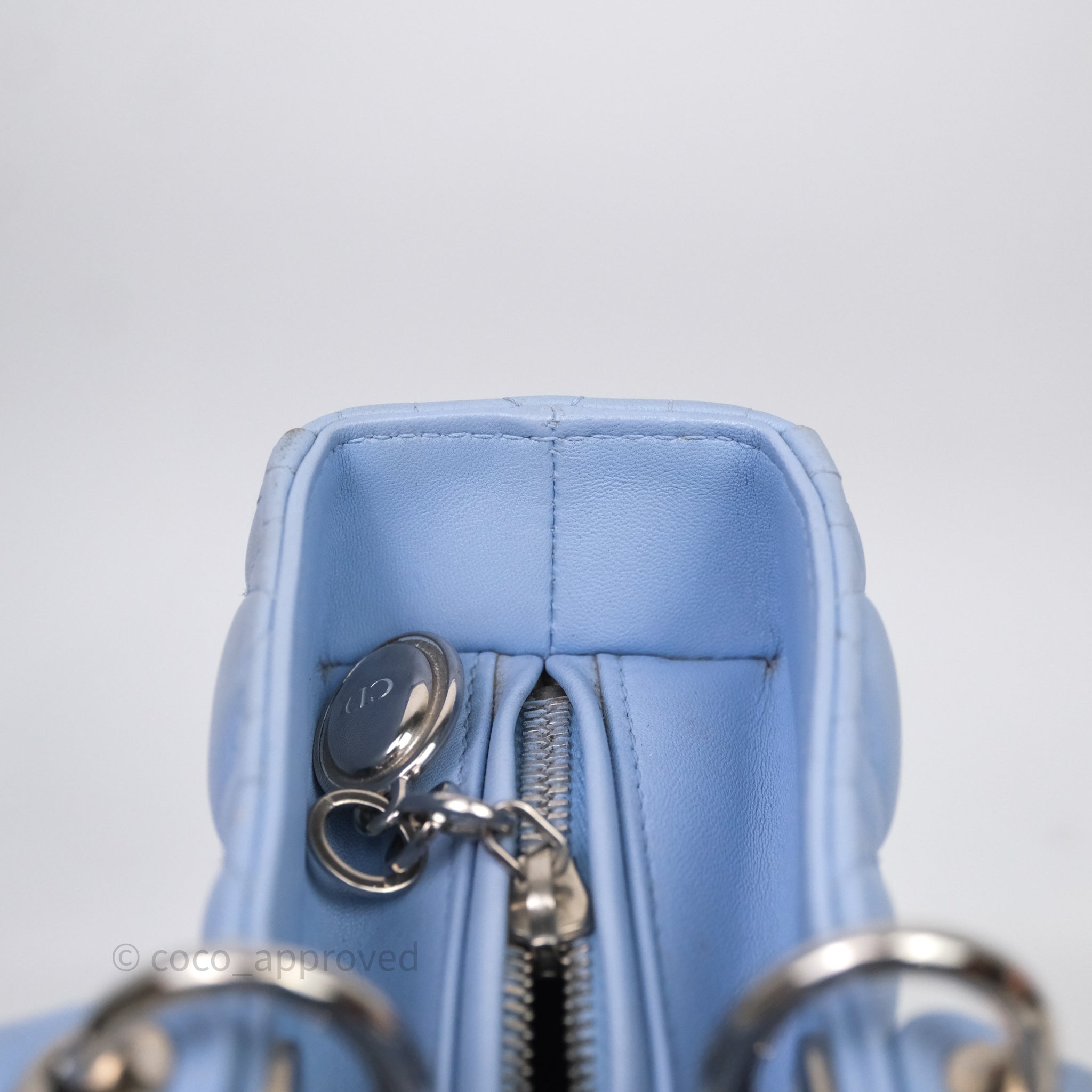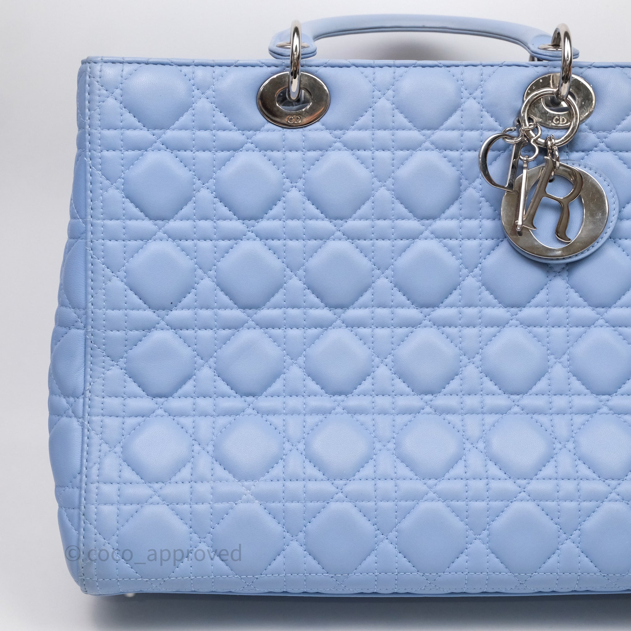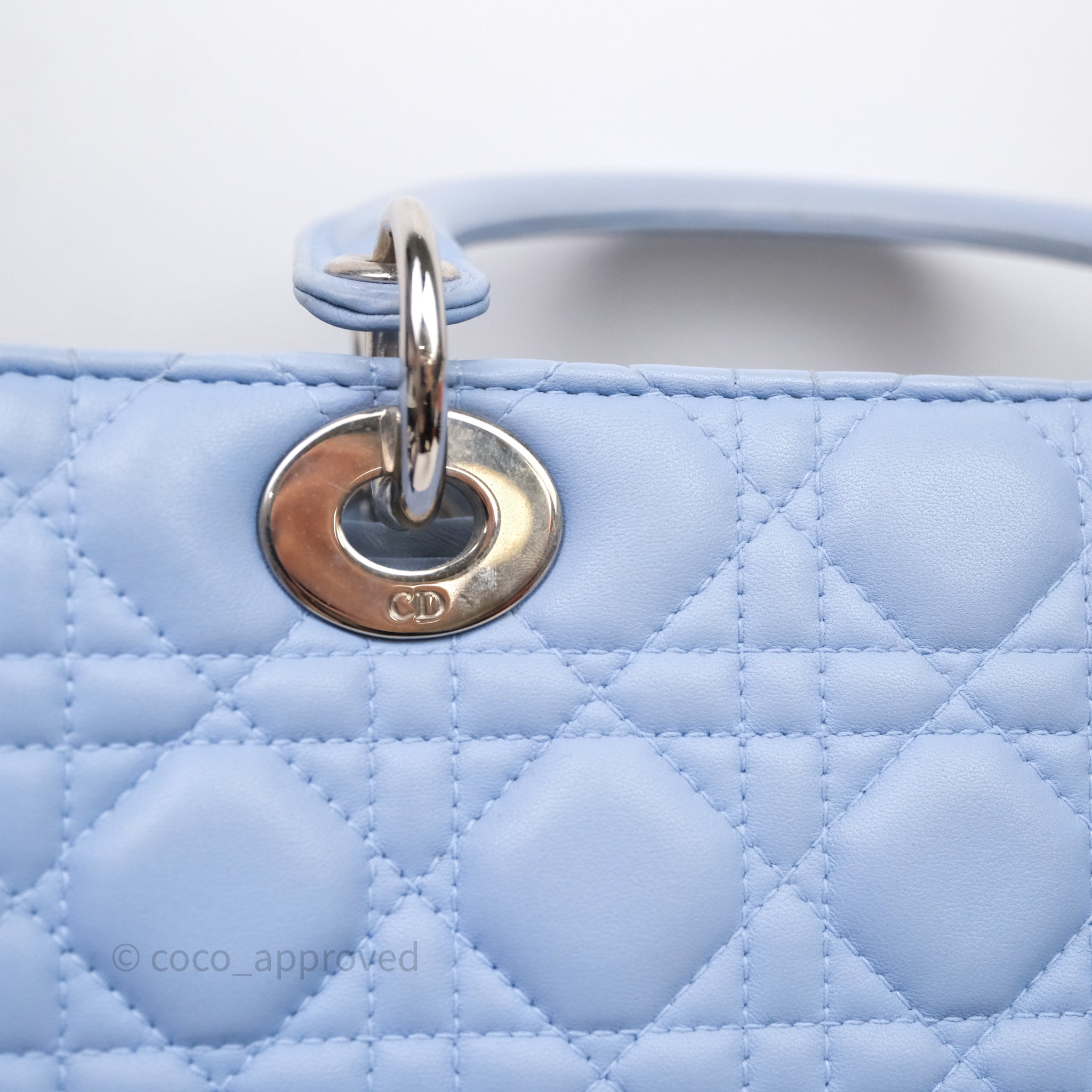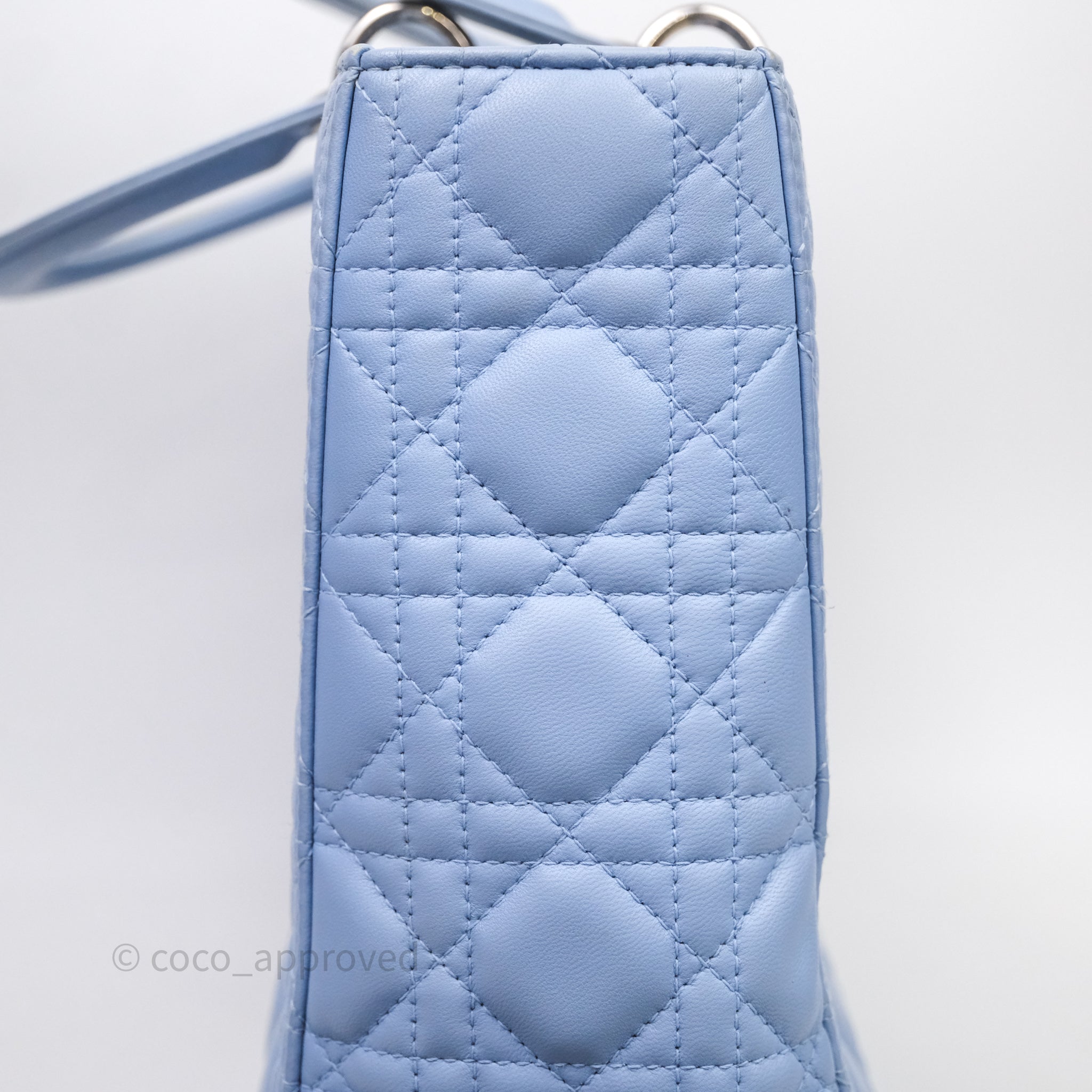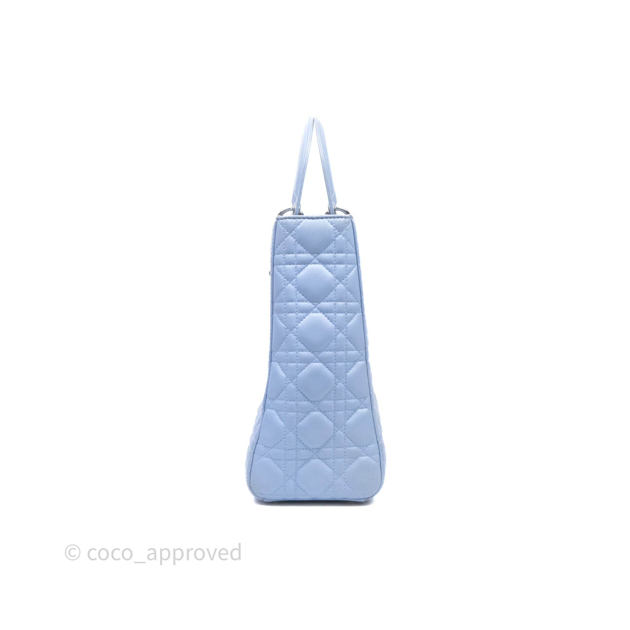 Christian Dior Large Lady Dior Cannage Blue Lambskin Silver Hardware