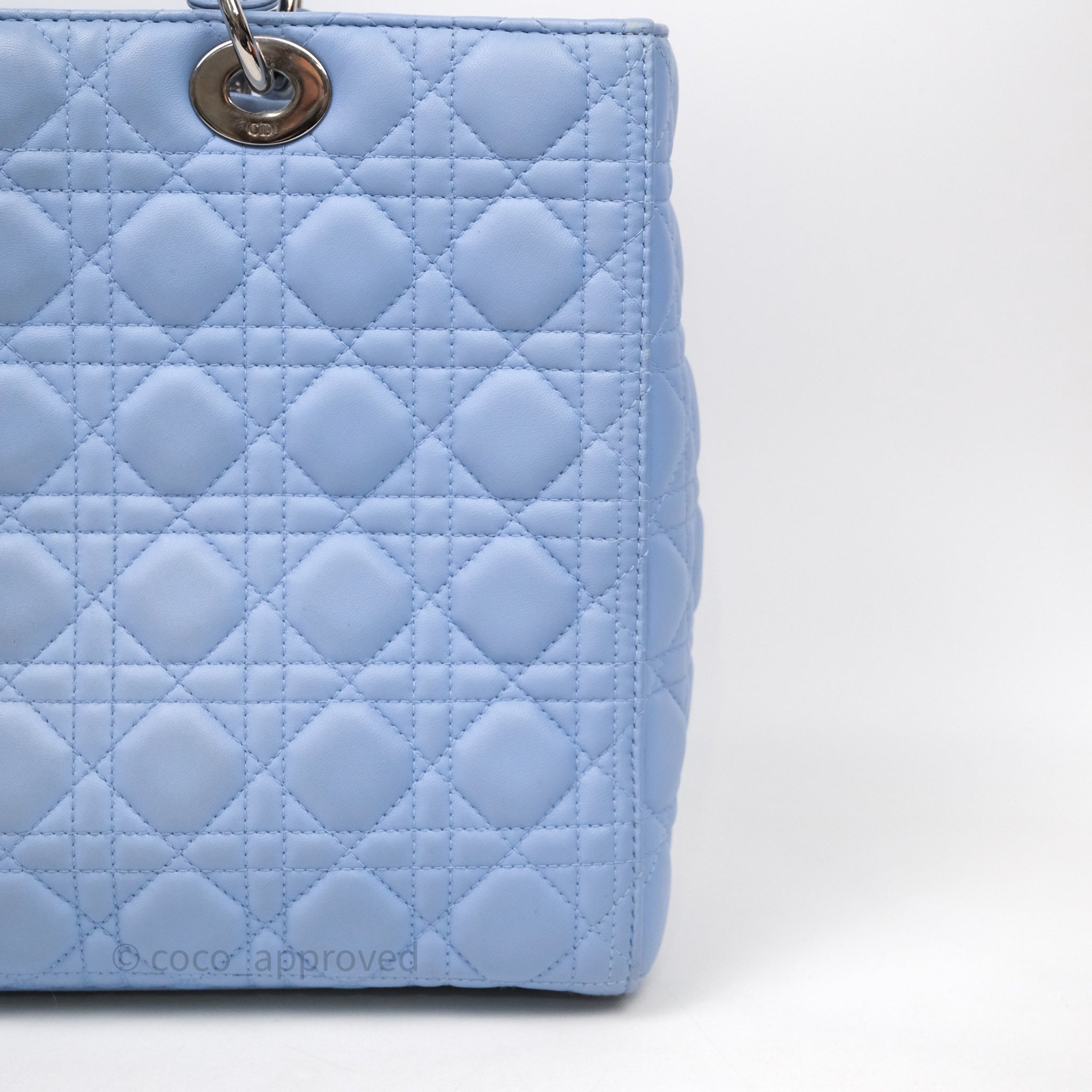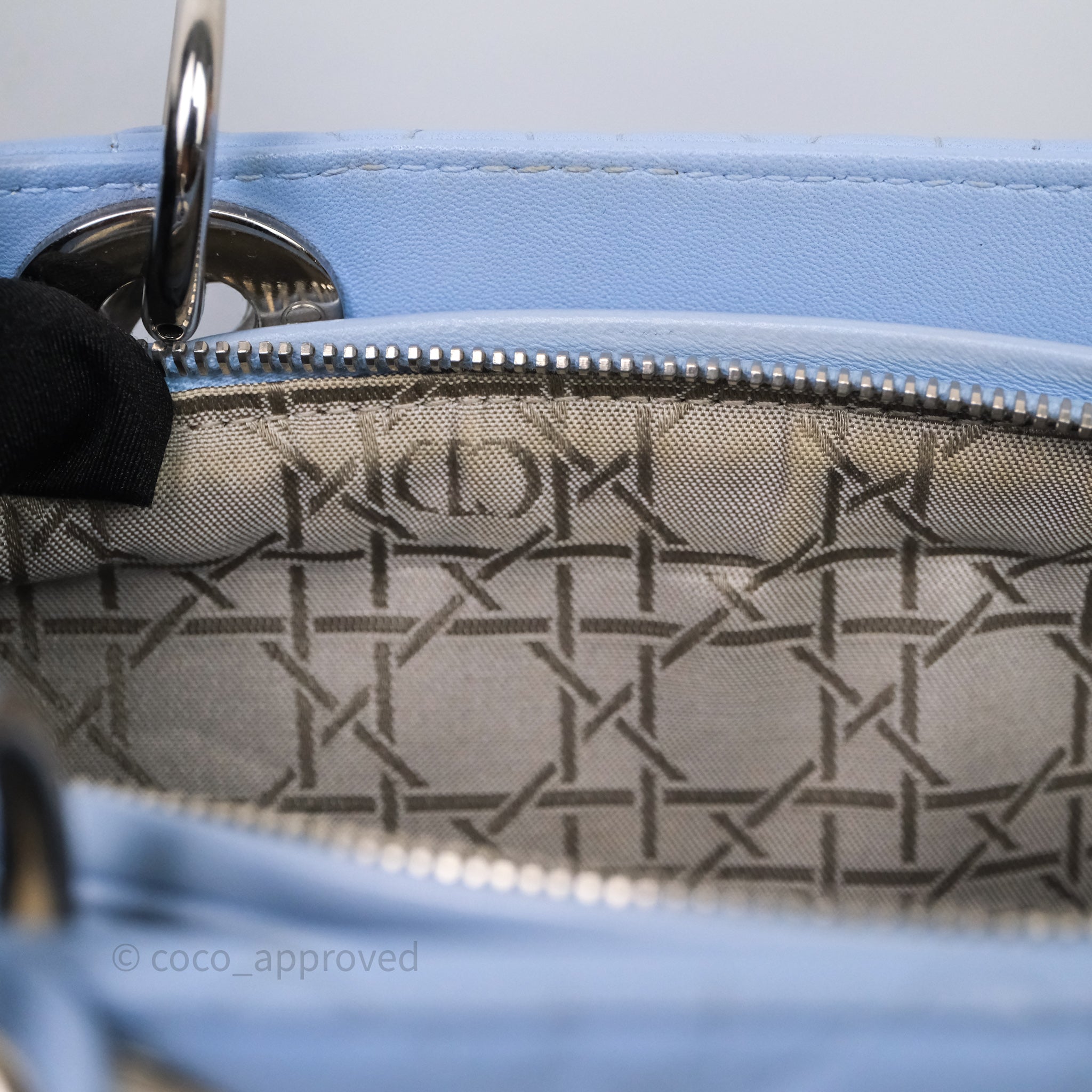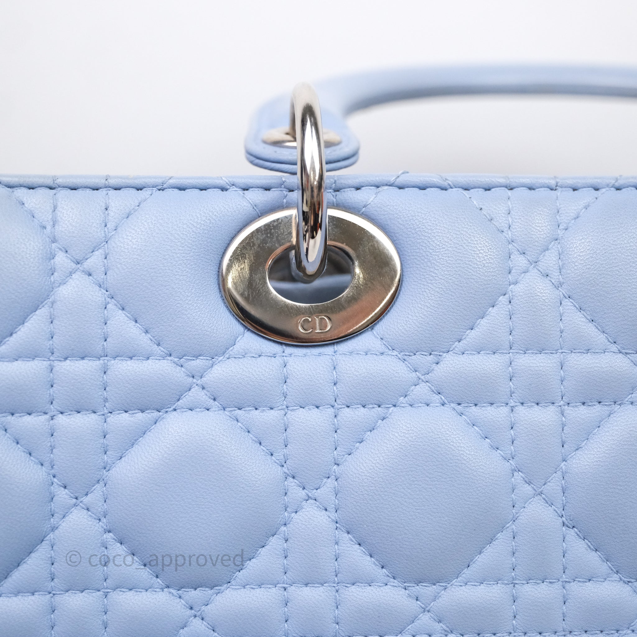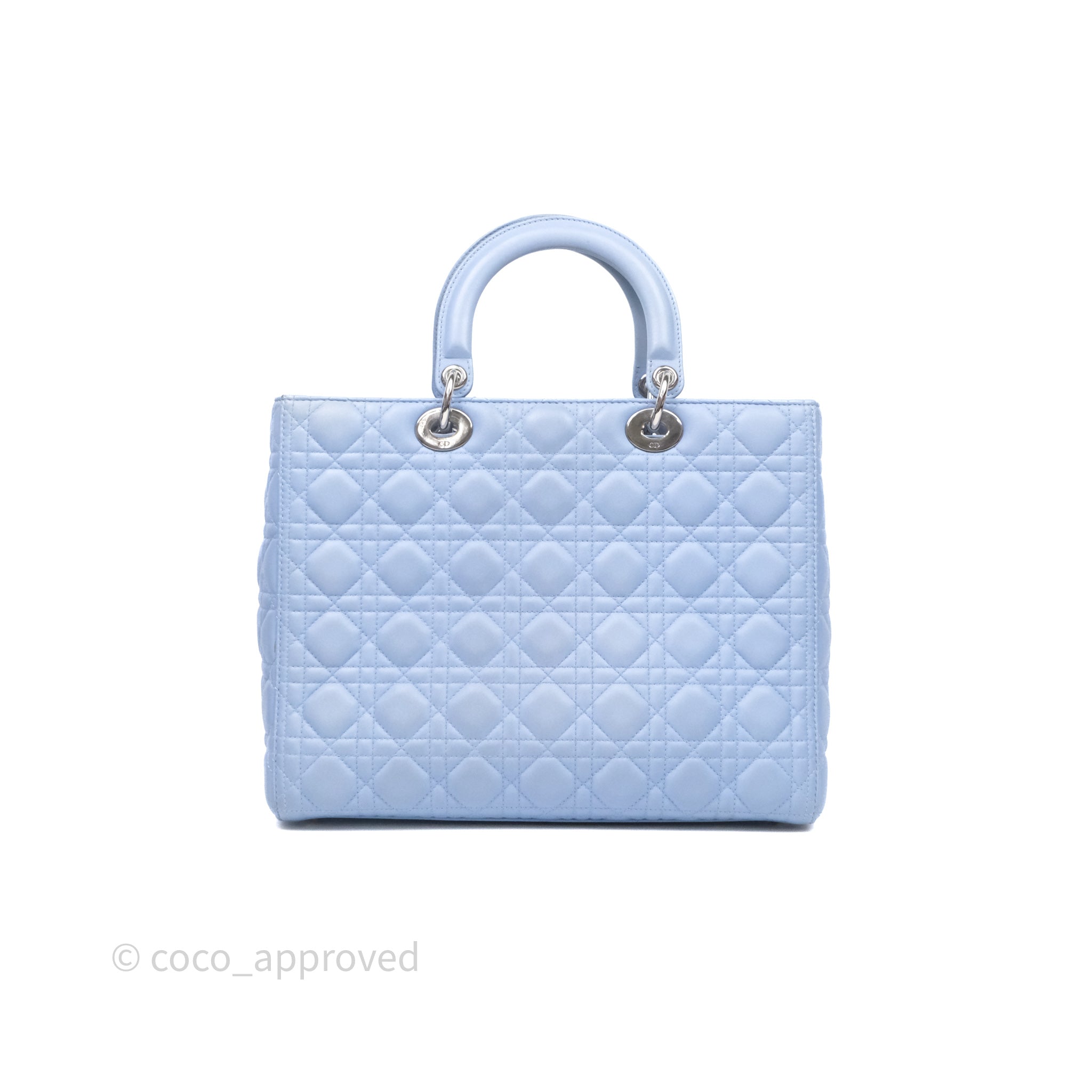 Christian Dior Large Lady Dior Cannage Blue Lambskin Silver Hardware