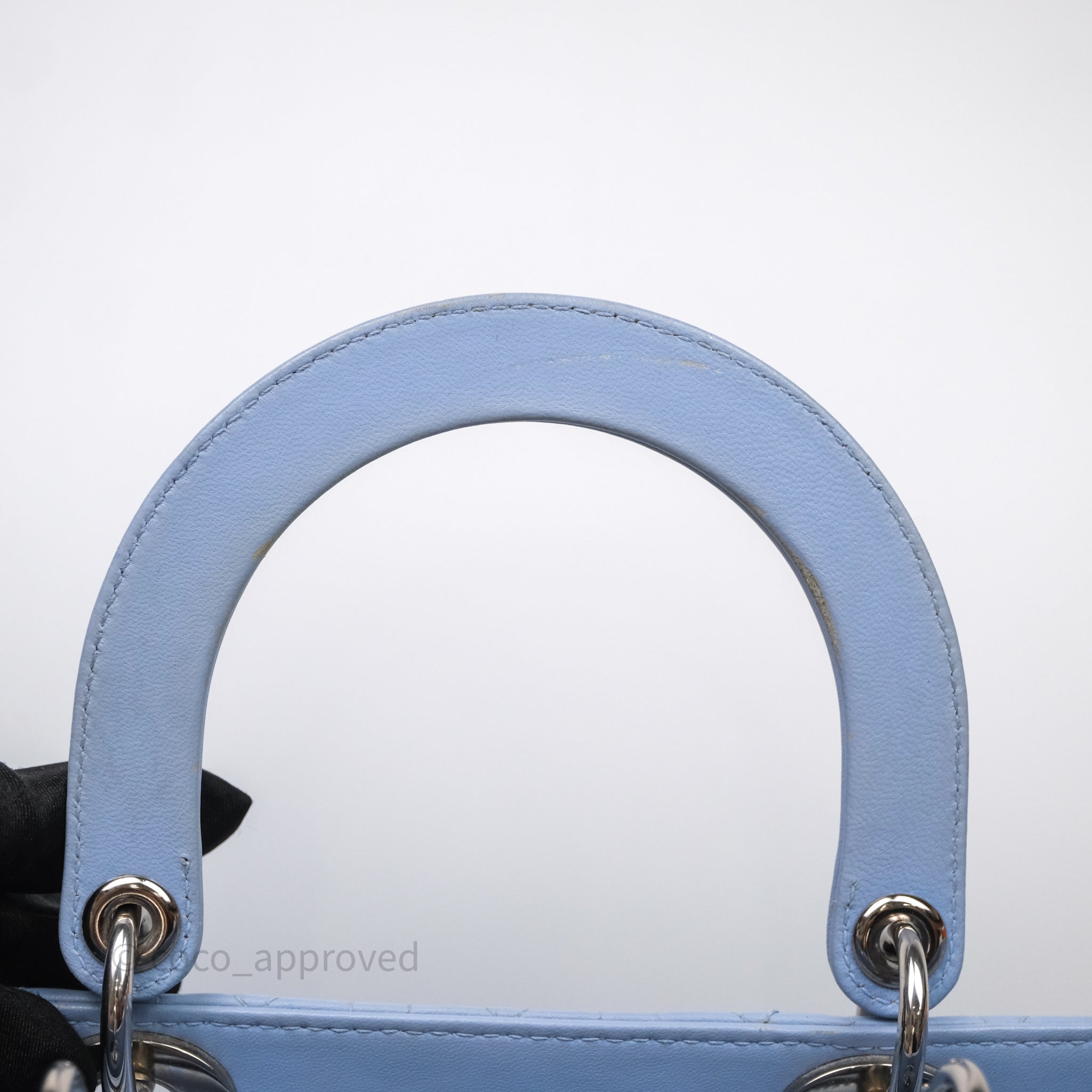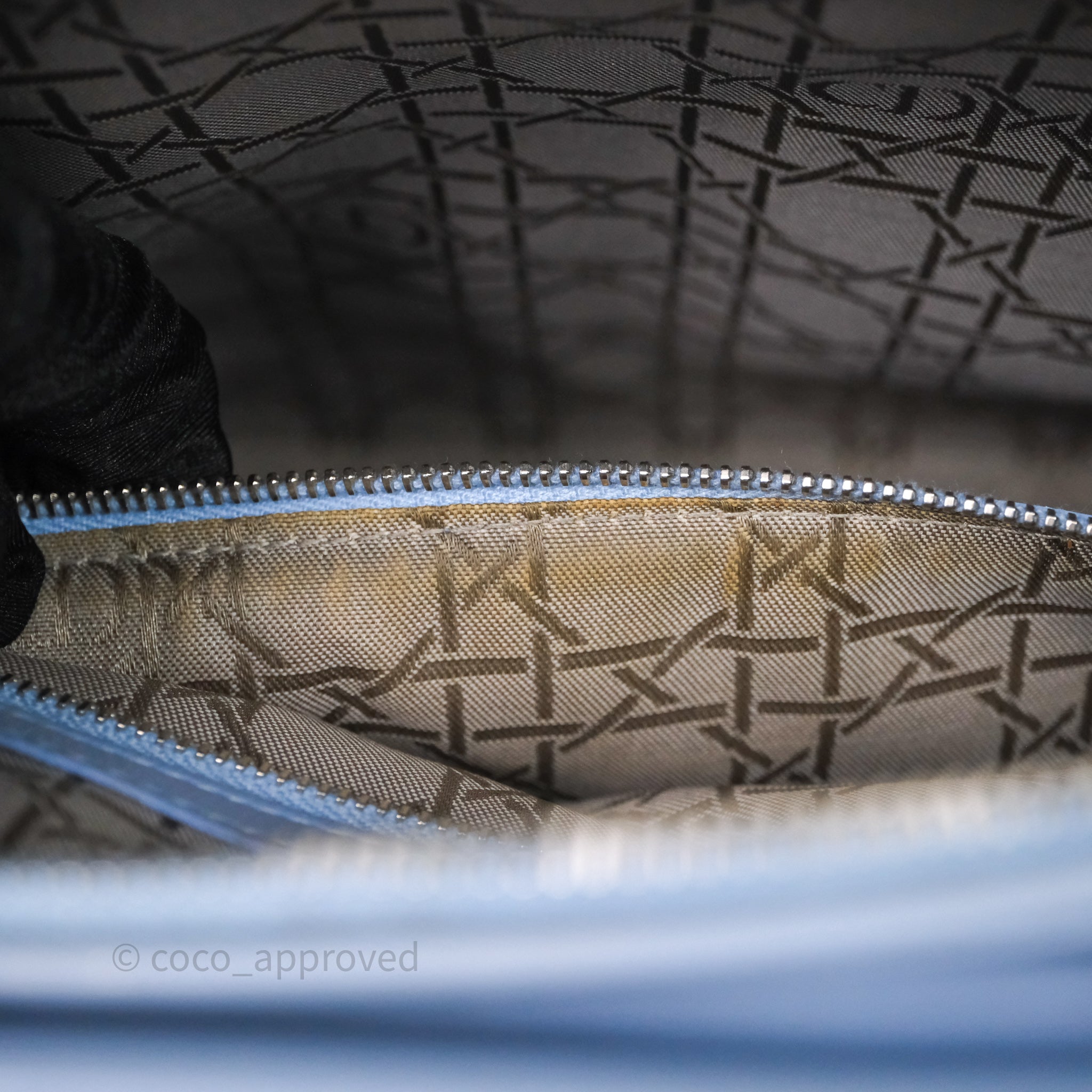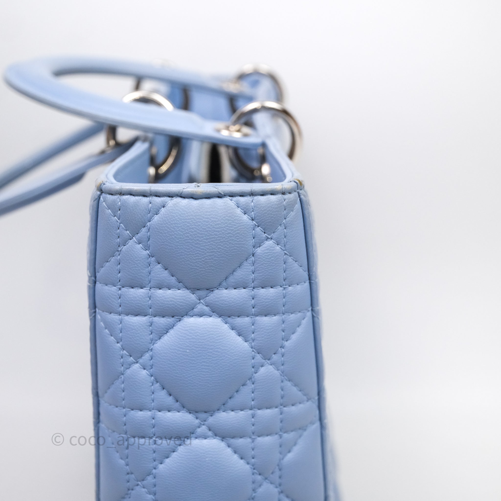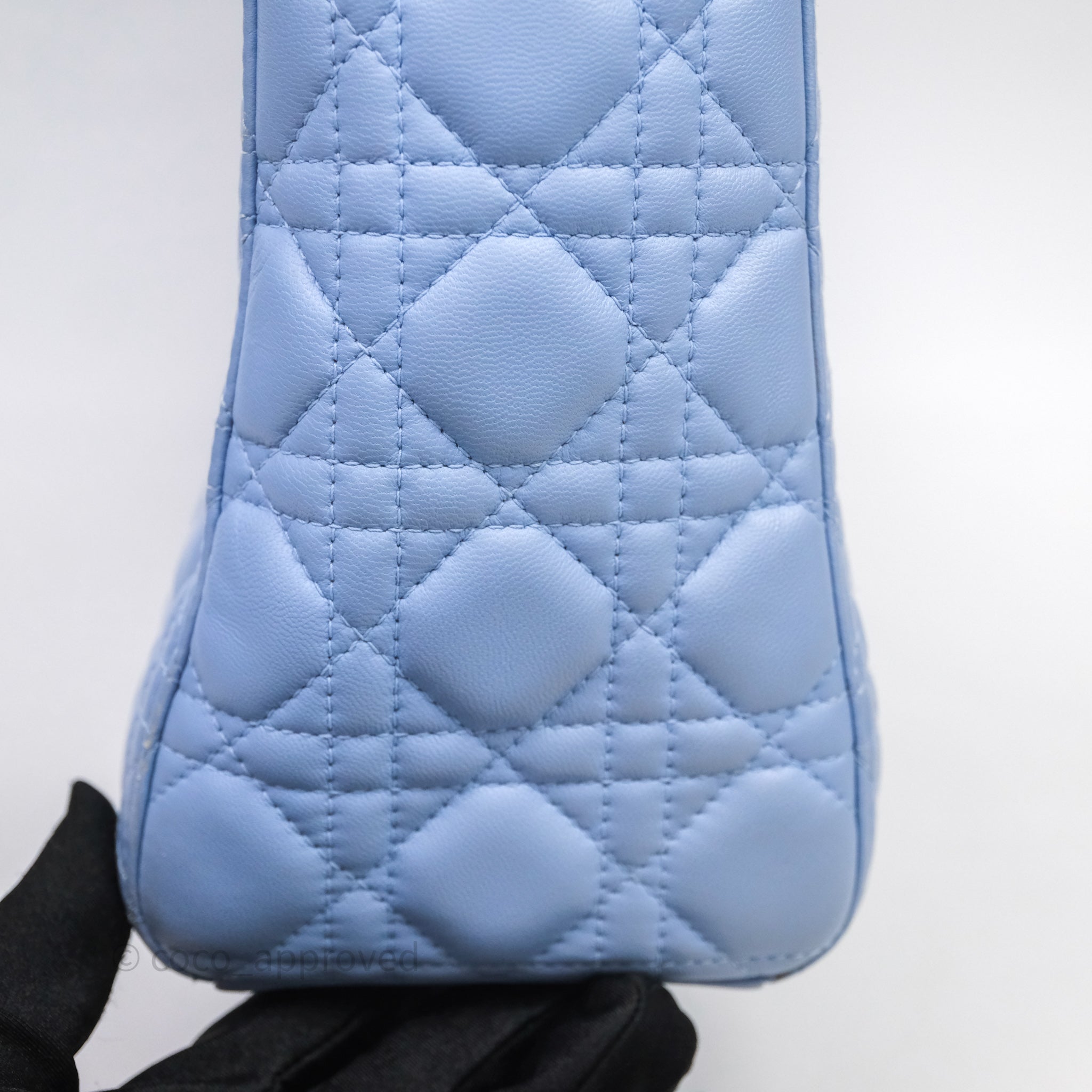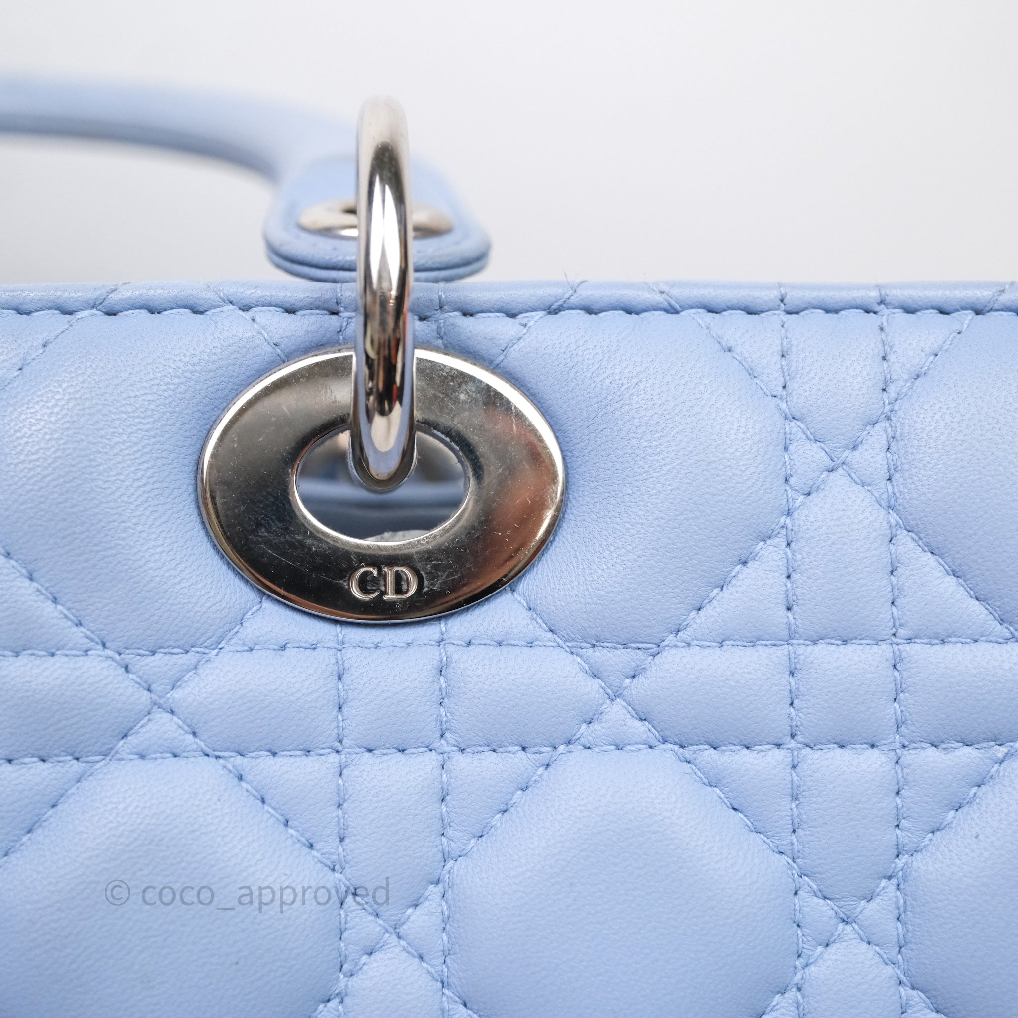 Christian Dior Large Lady Dior Cannage Blue Lambskin Silver Hardware