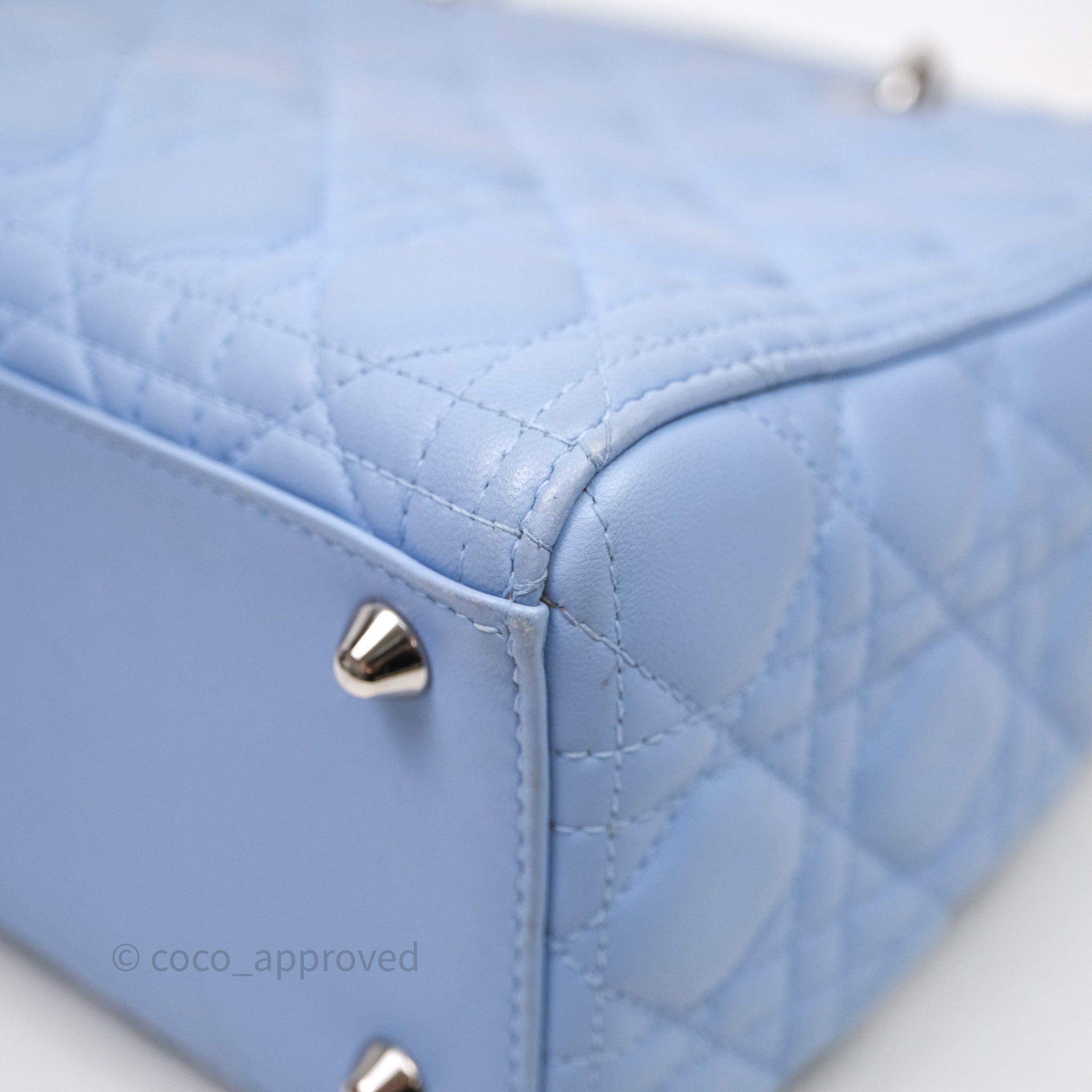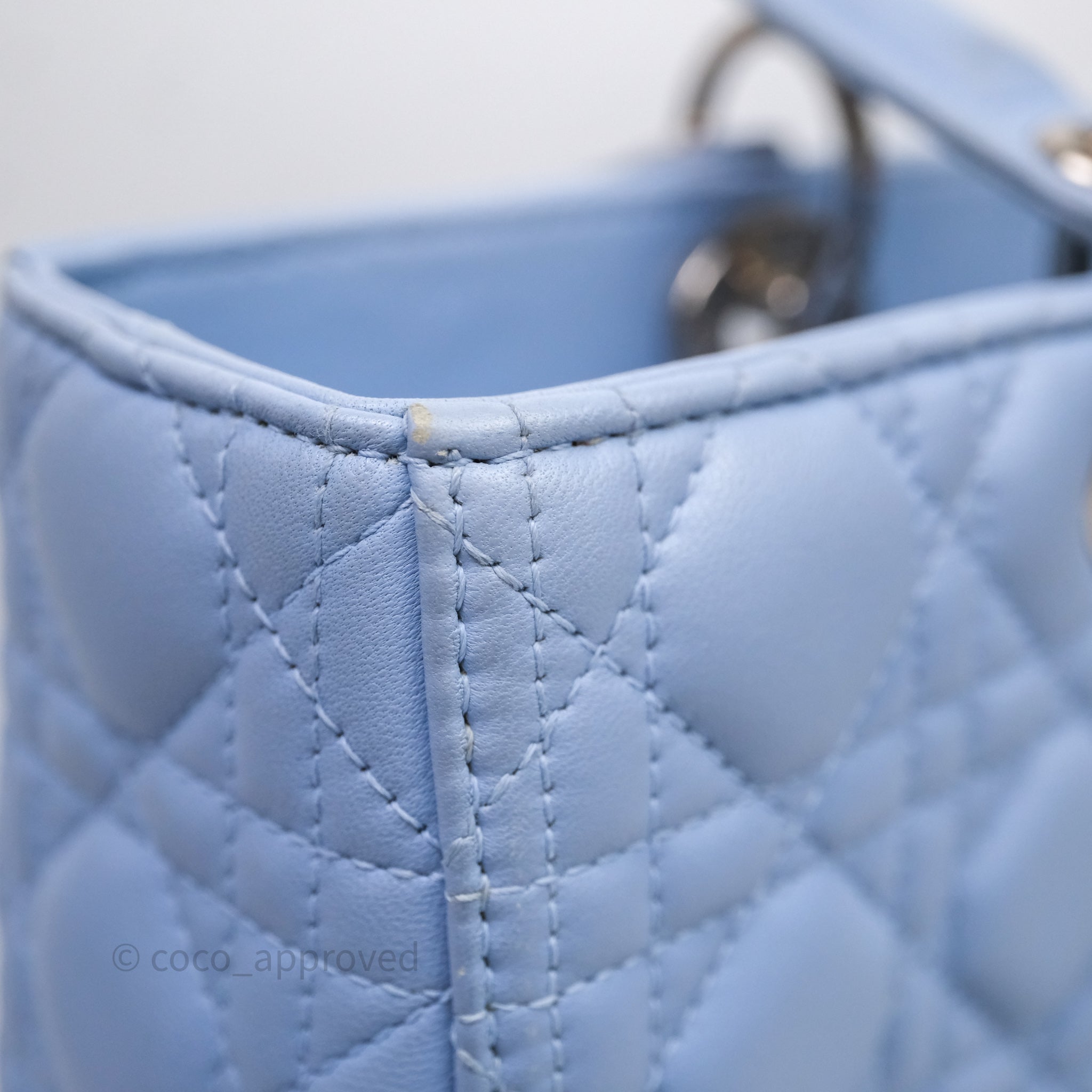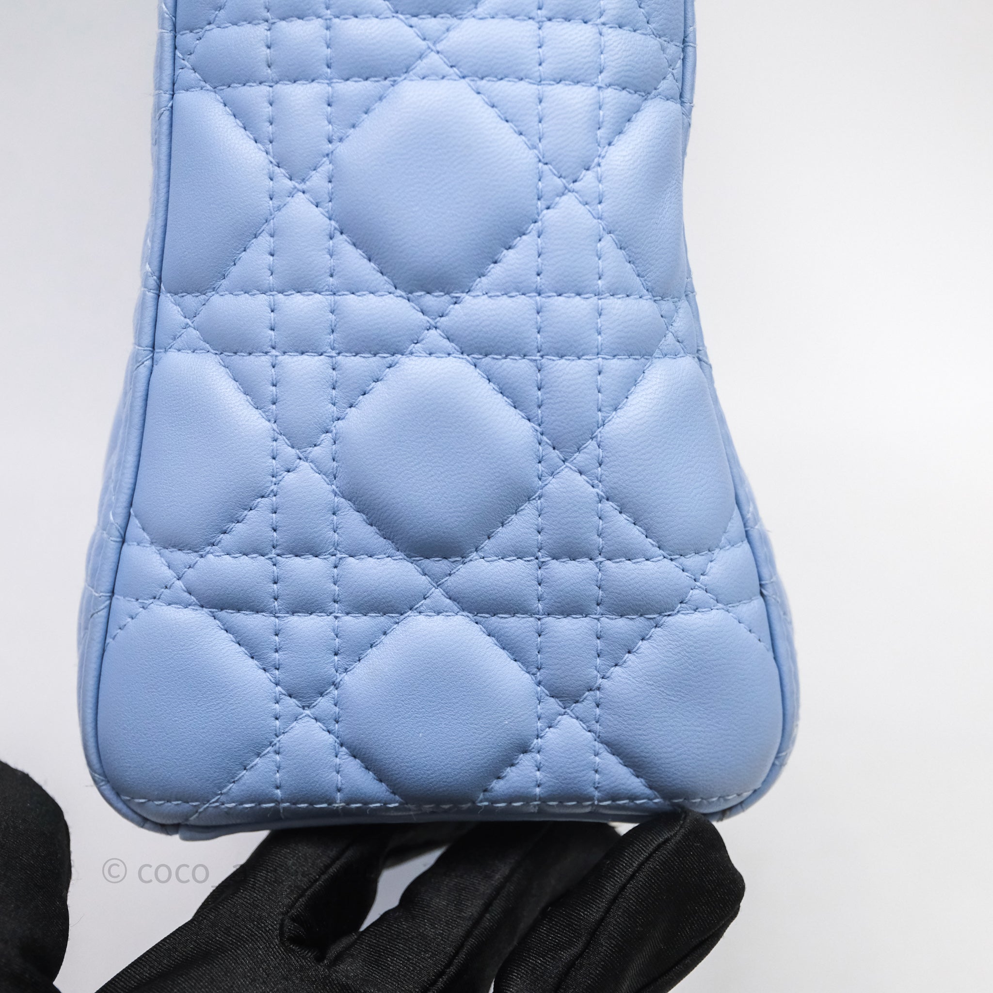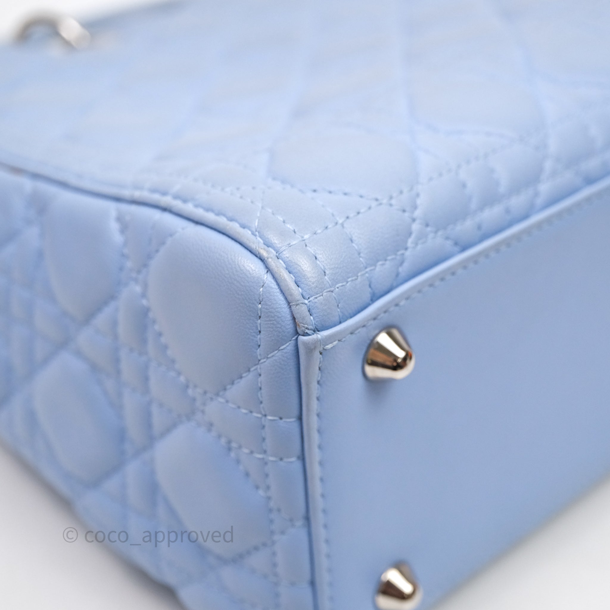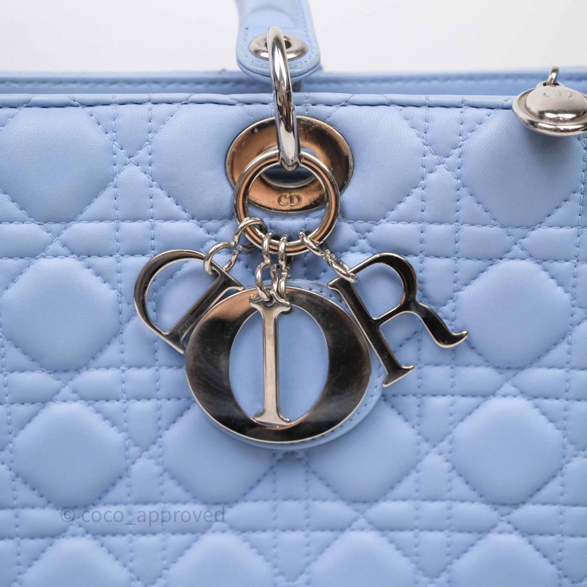 Christian Dior Large Lady Dior Cannage Blue Lambskin Silver Hardware