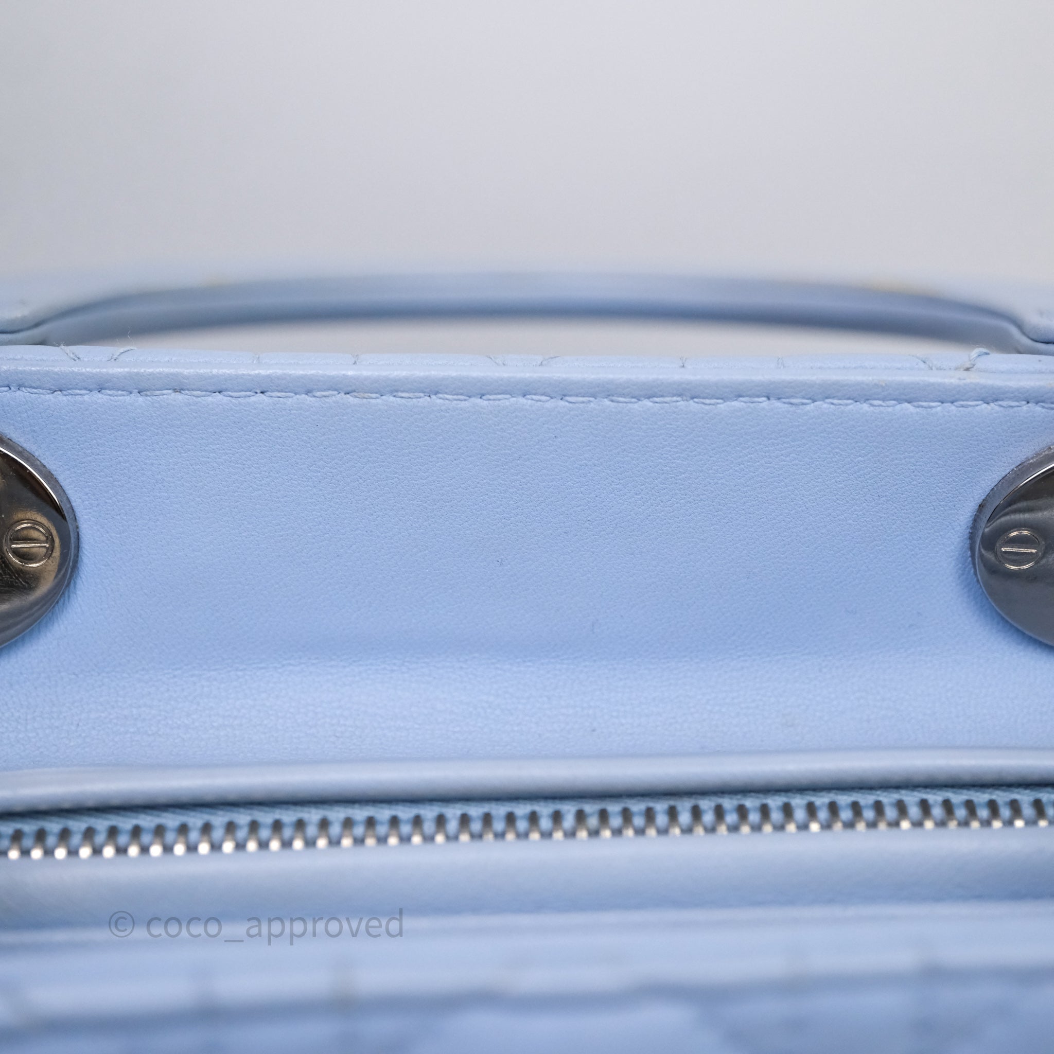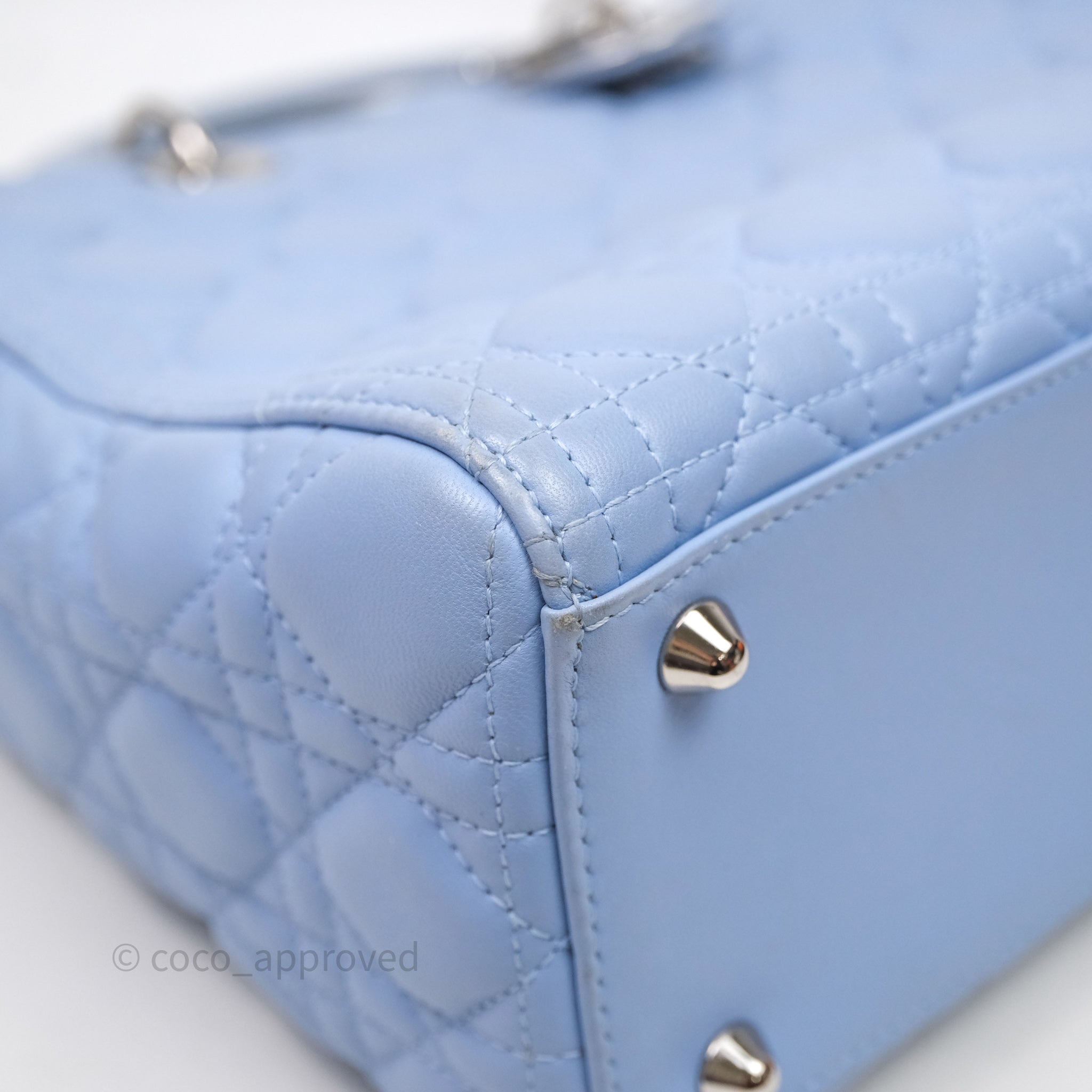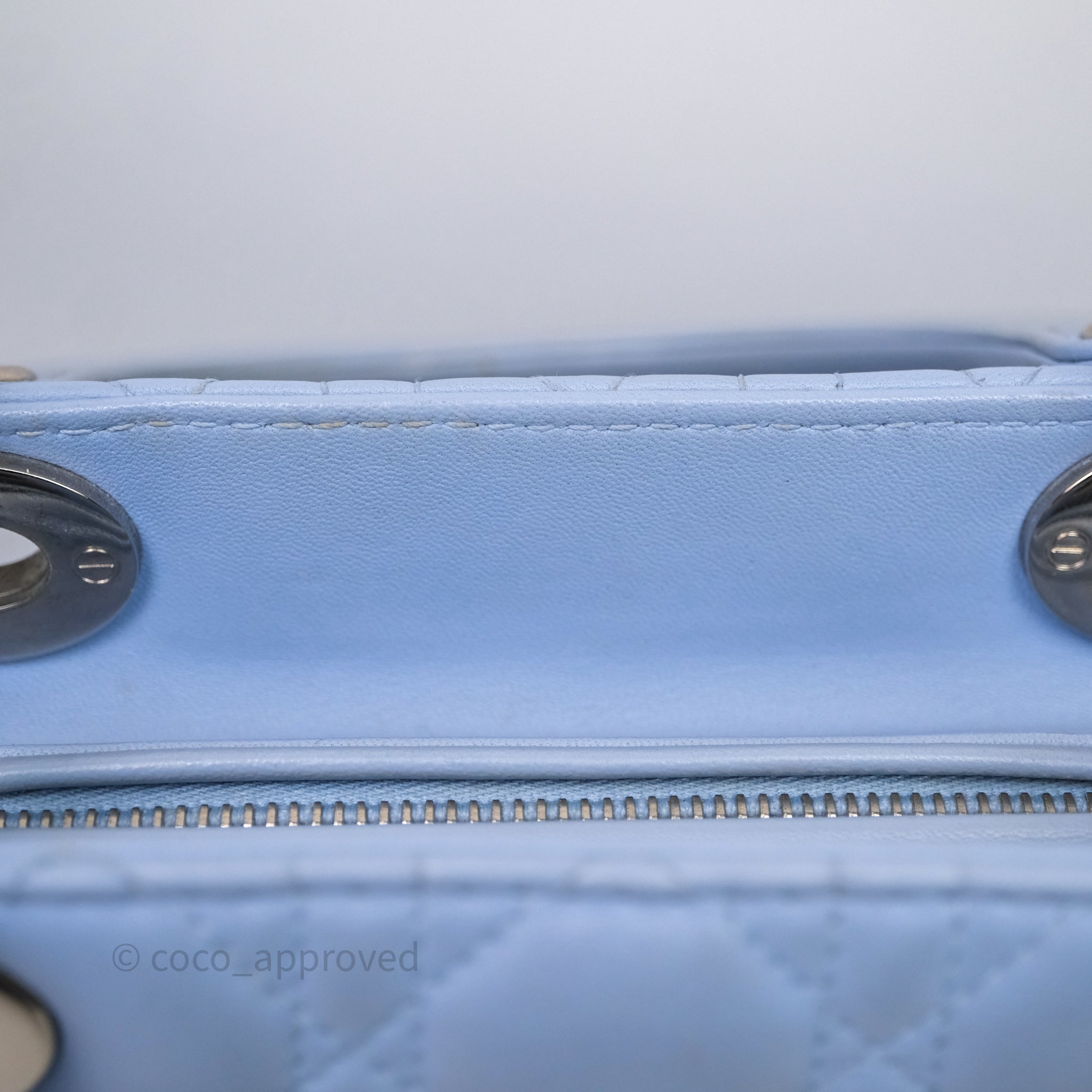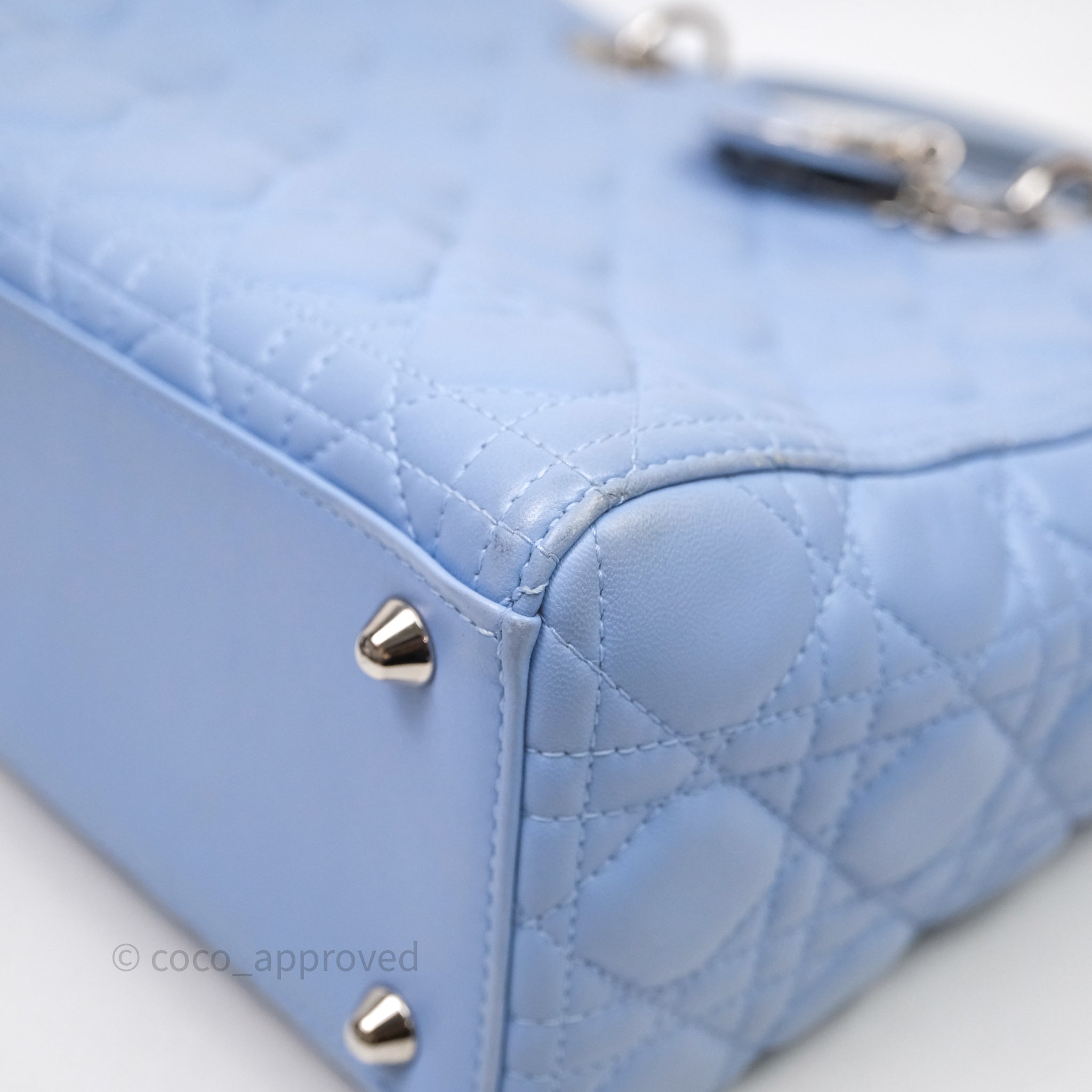 Christian Dior Large Lady Dior Cannage Blue Lambskin Silver Hardware