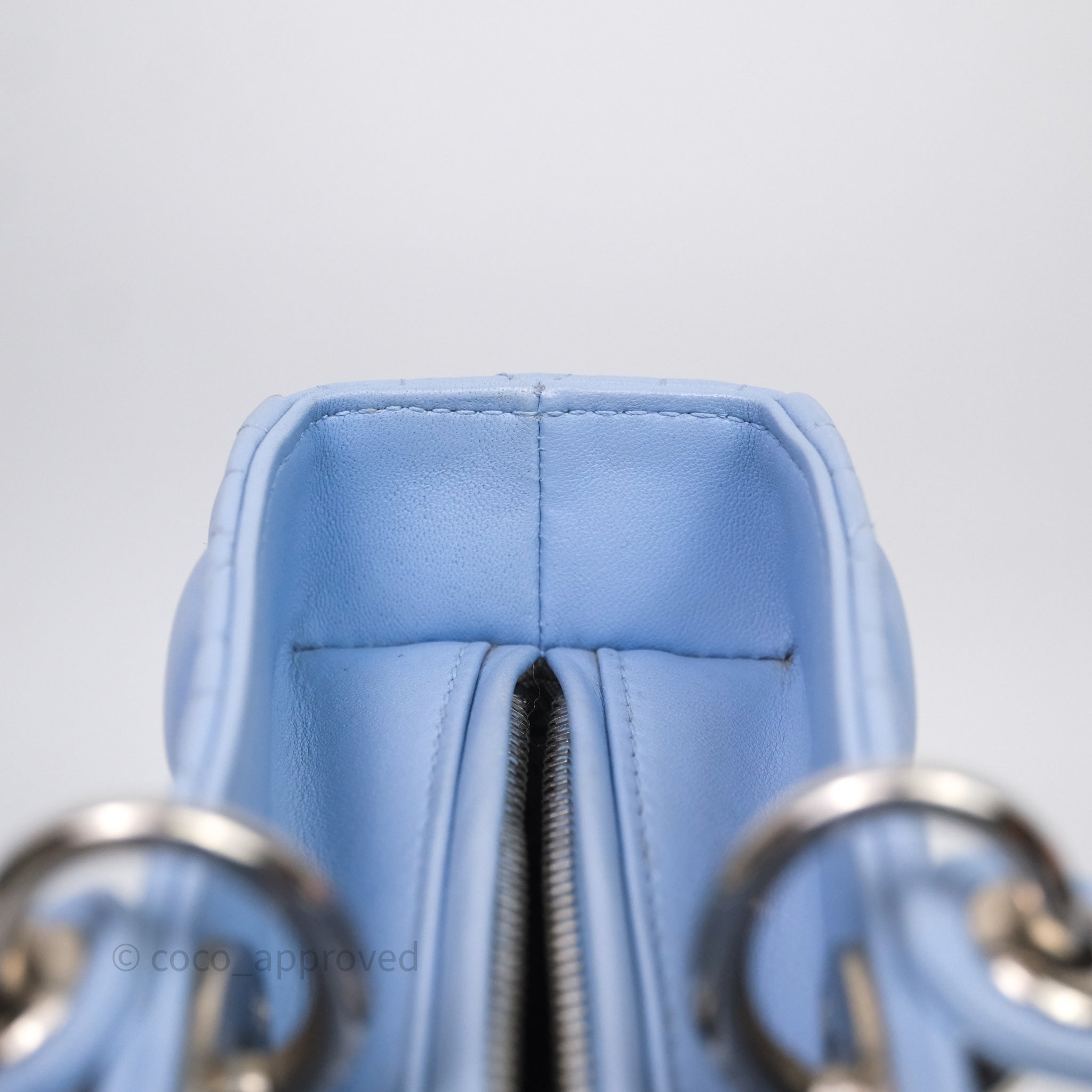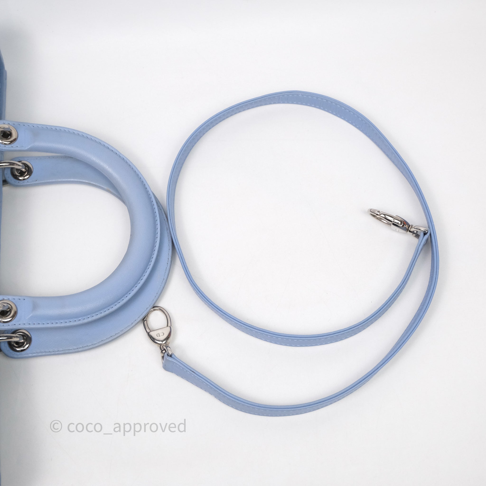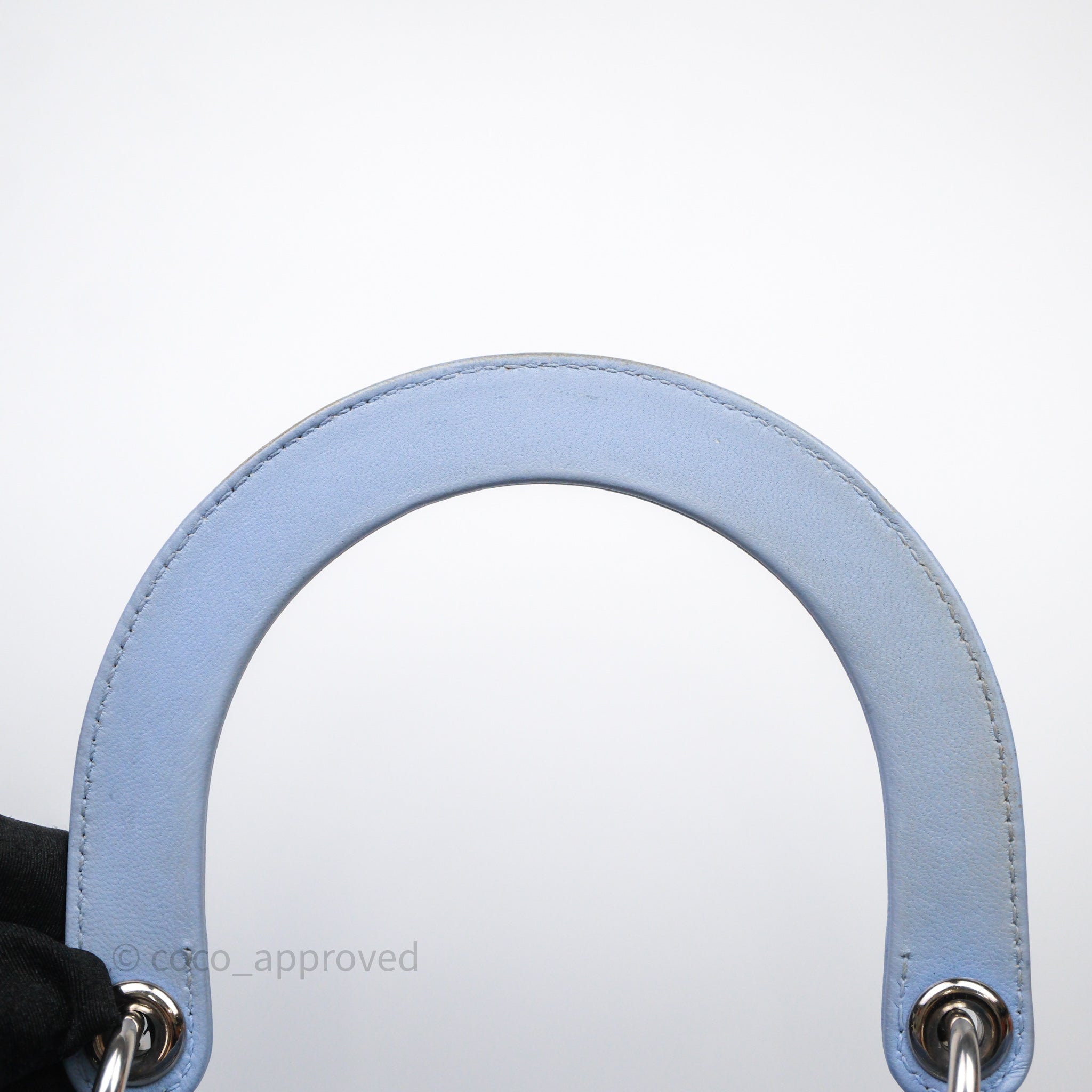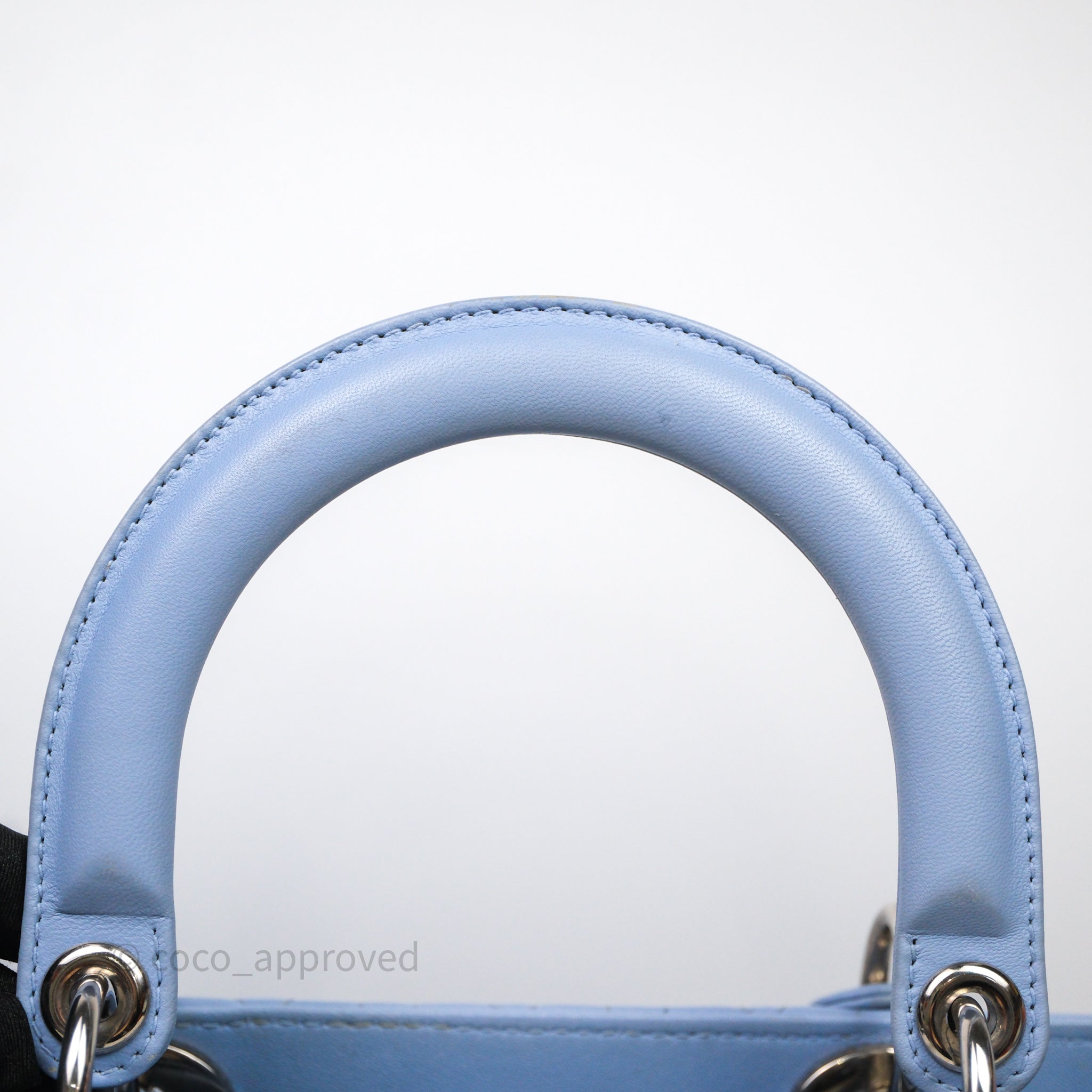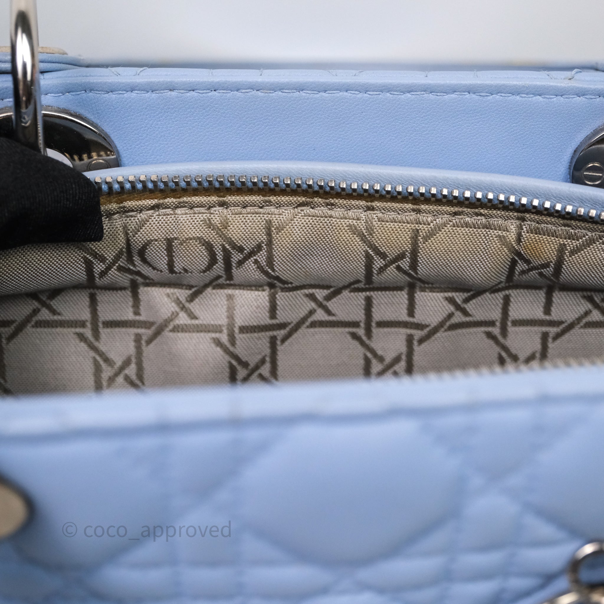 Christian Dior Large Lady Dior Cannage Blue Lambskin Silver Hardware