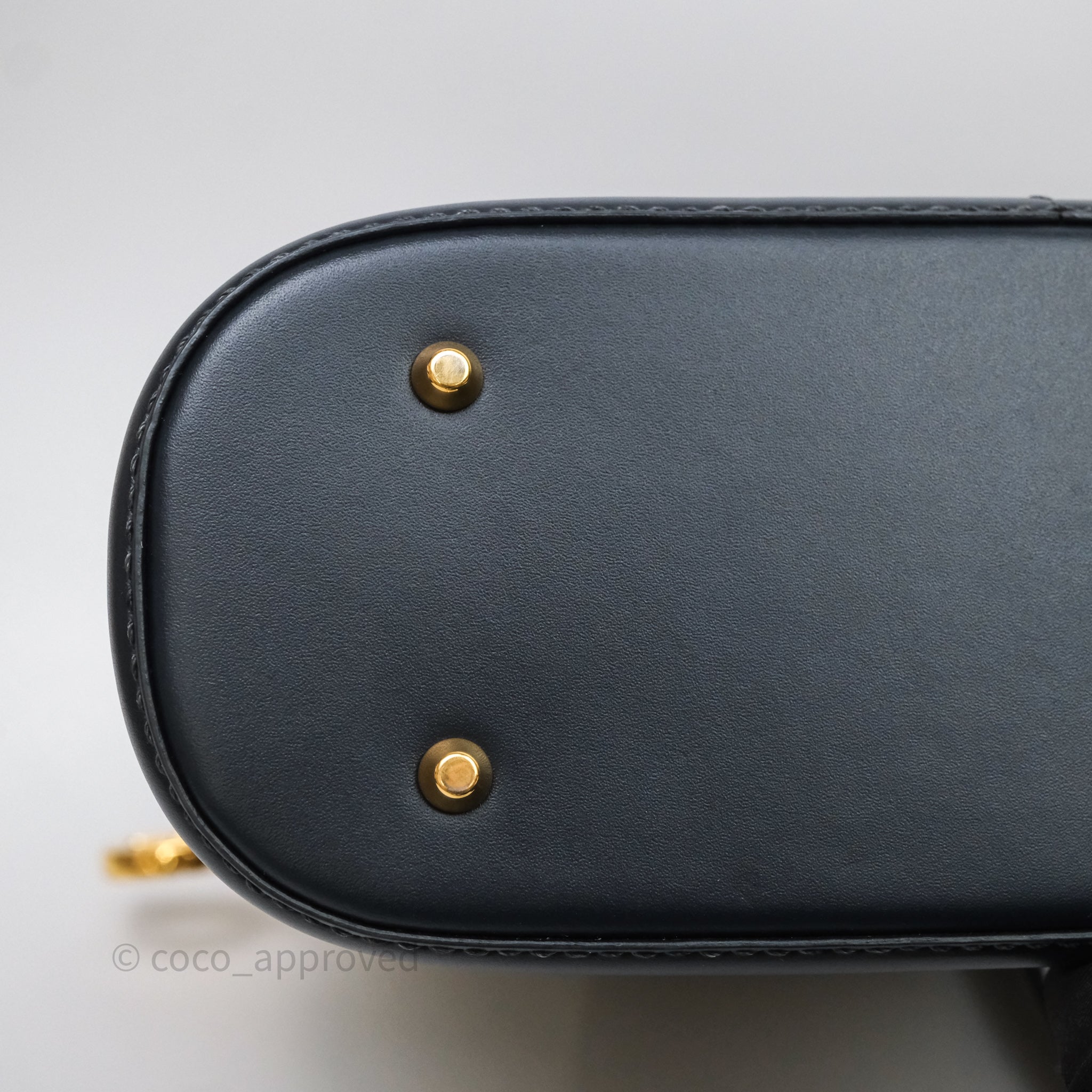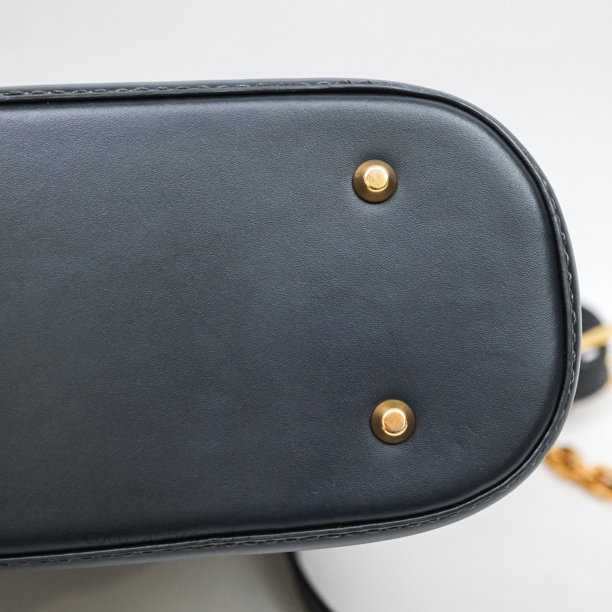 9.4/10 excellent to mint condition. Hairlines on hardwares. Marks in interior. Light dent on bottom.