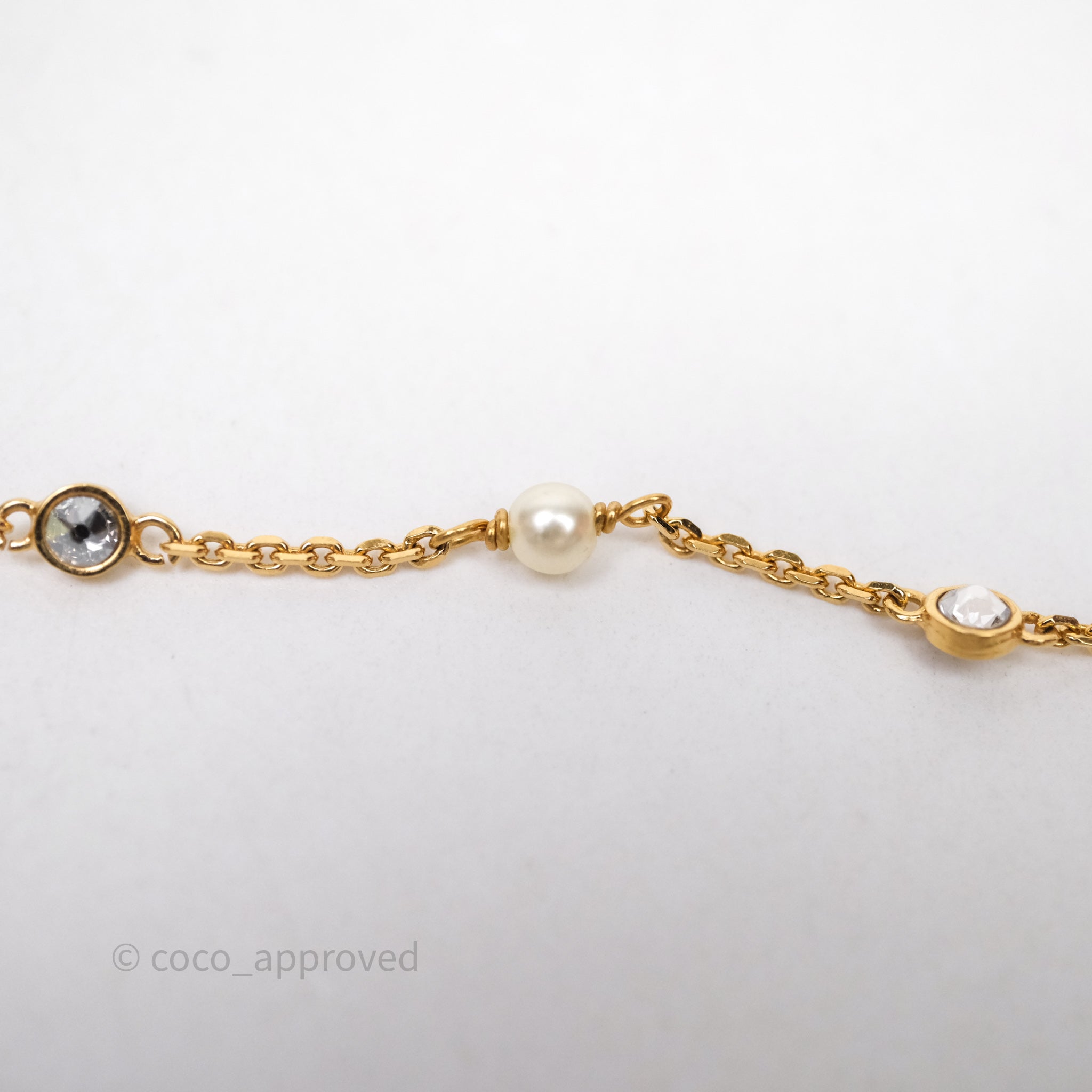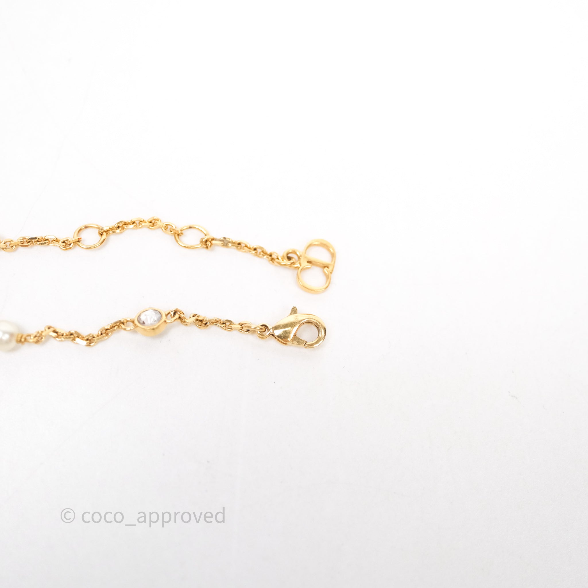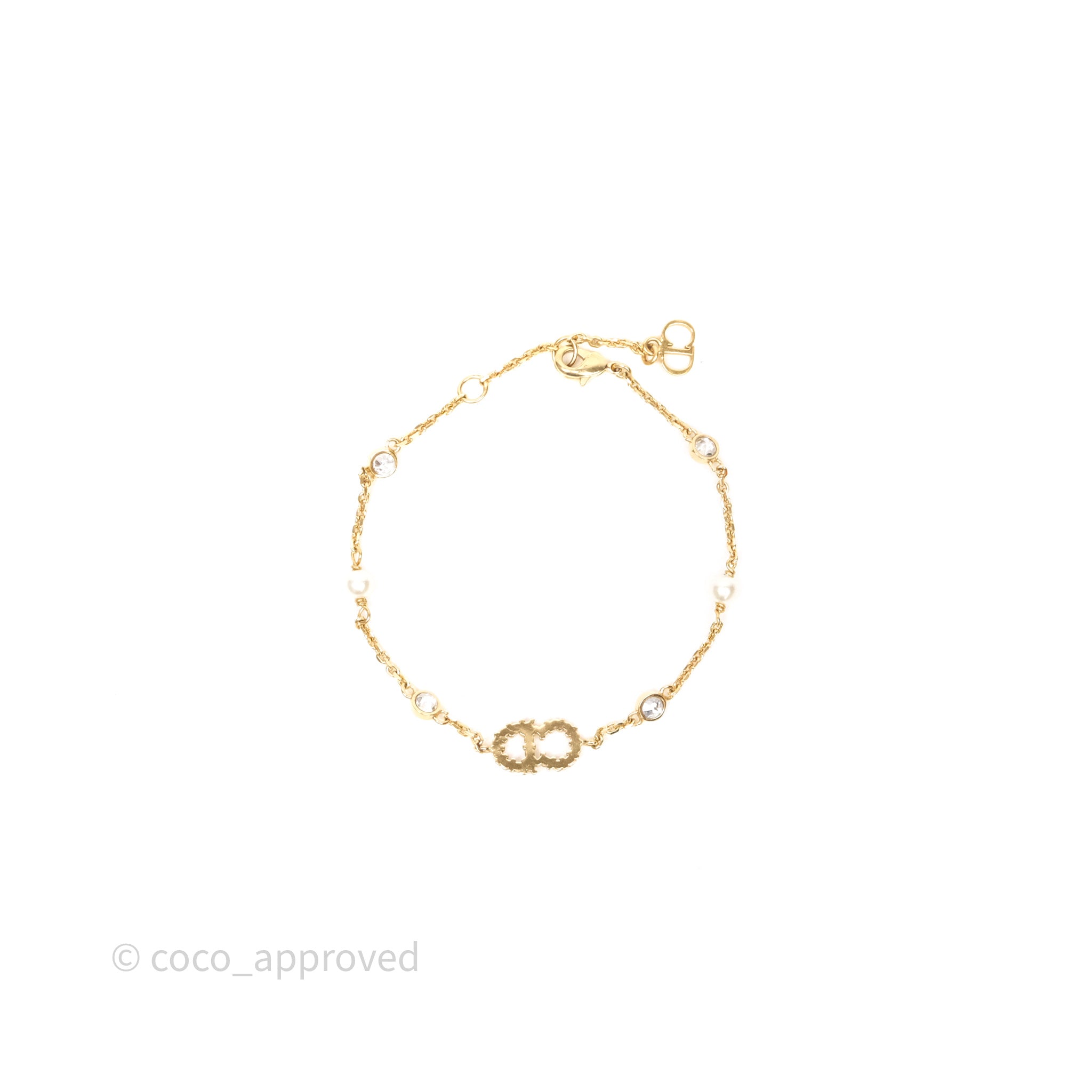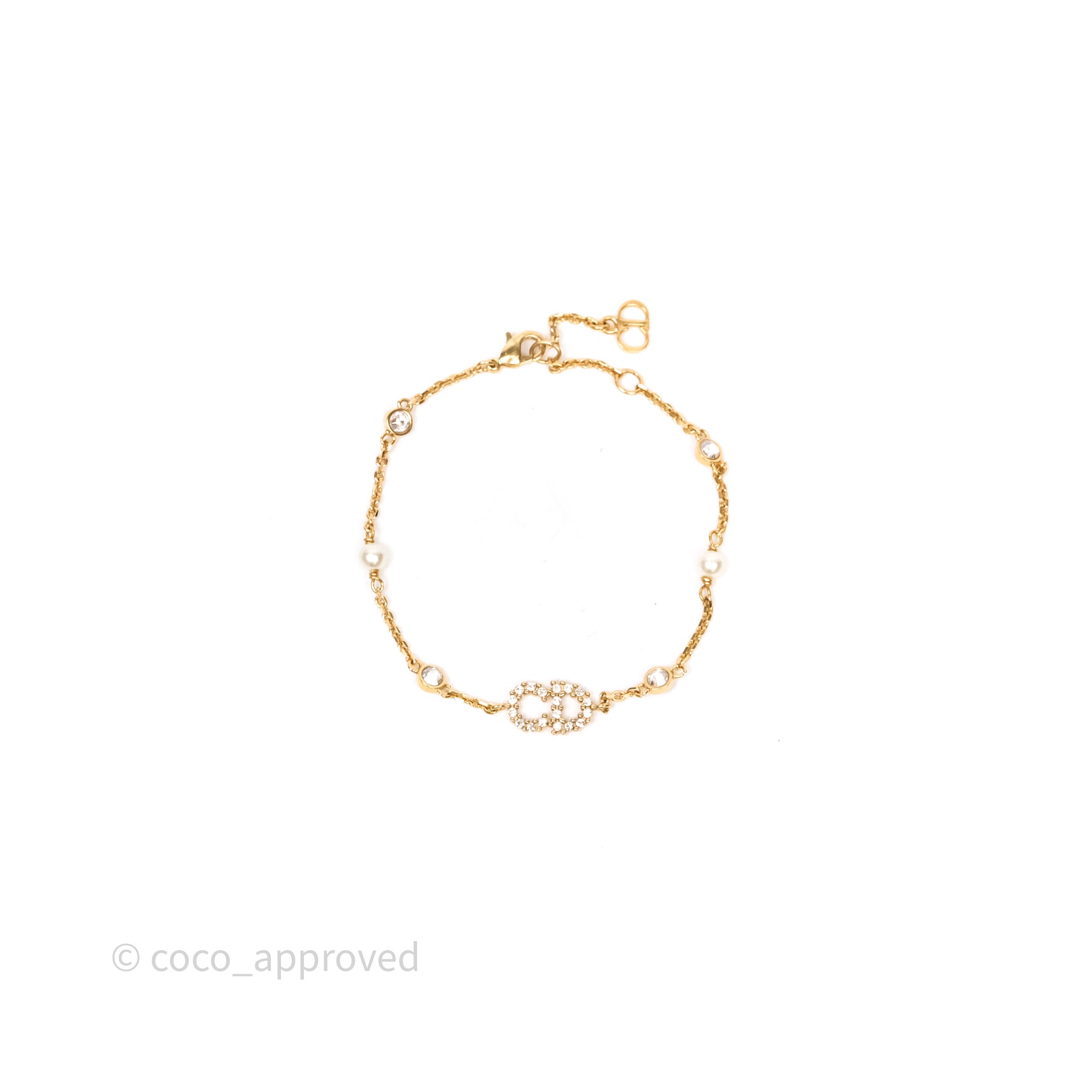 Christian Dior Metal Crystal Pearl CD Bracelet Gold Tone
