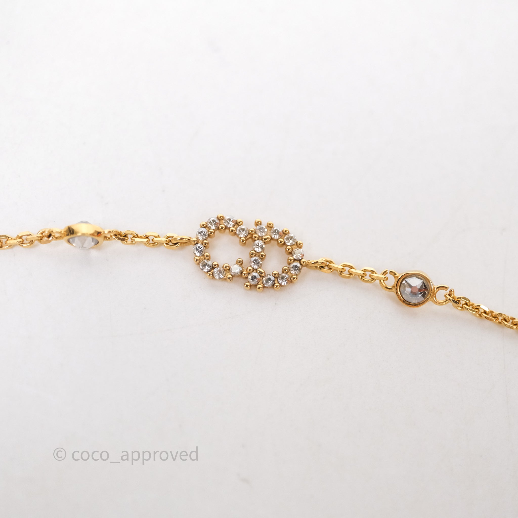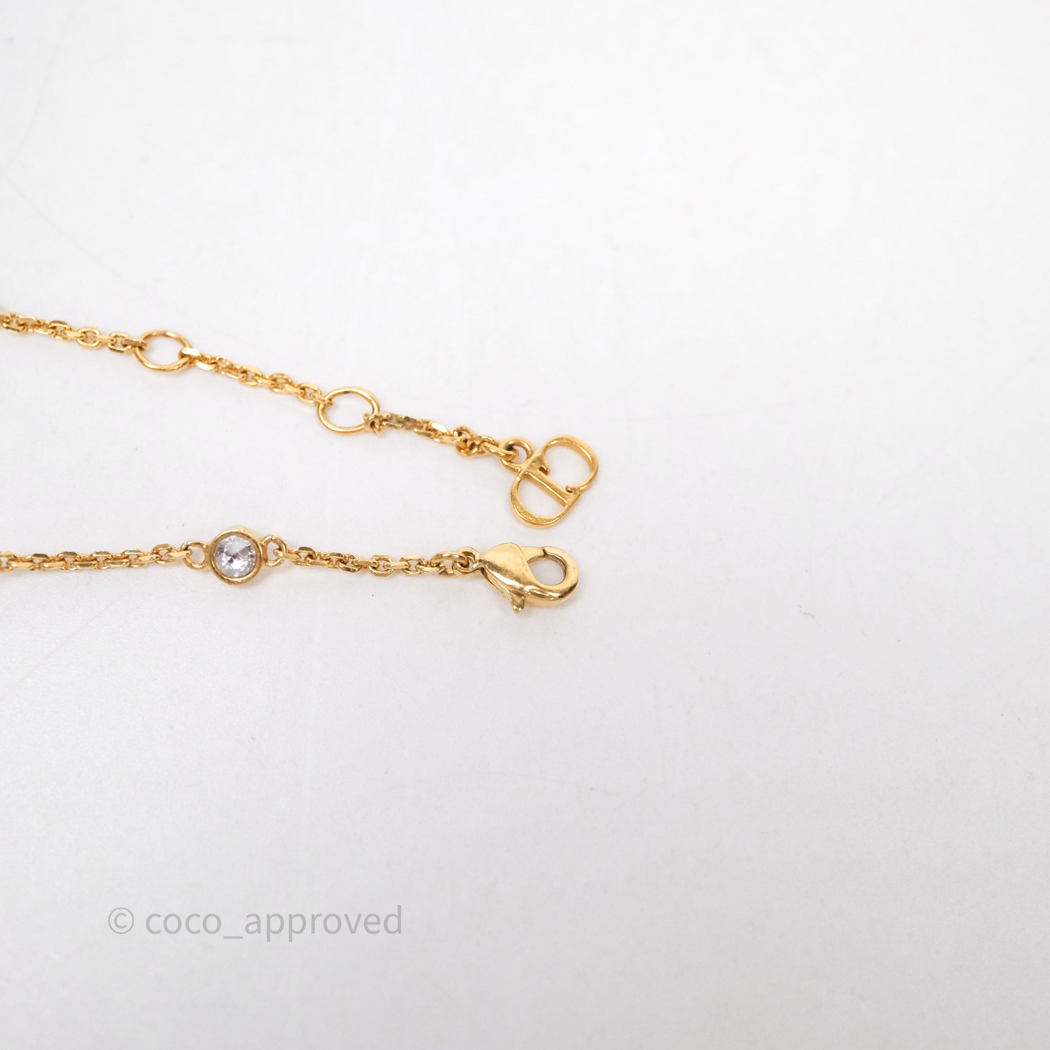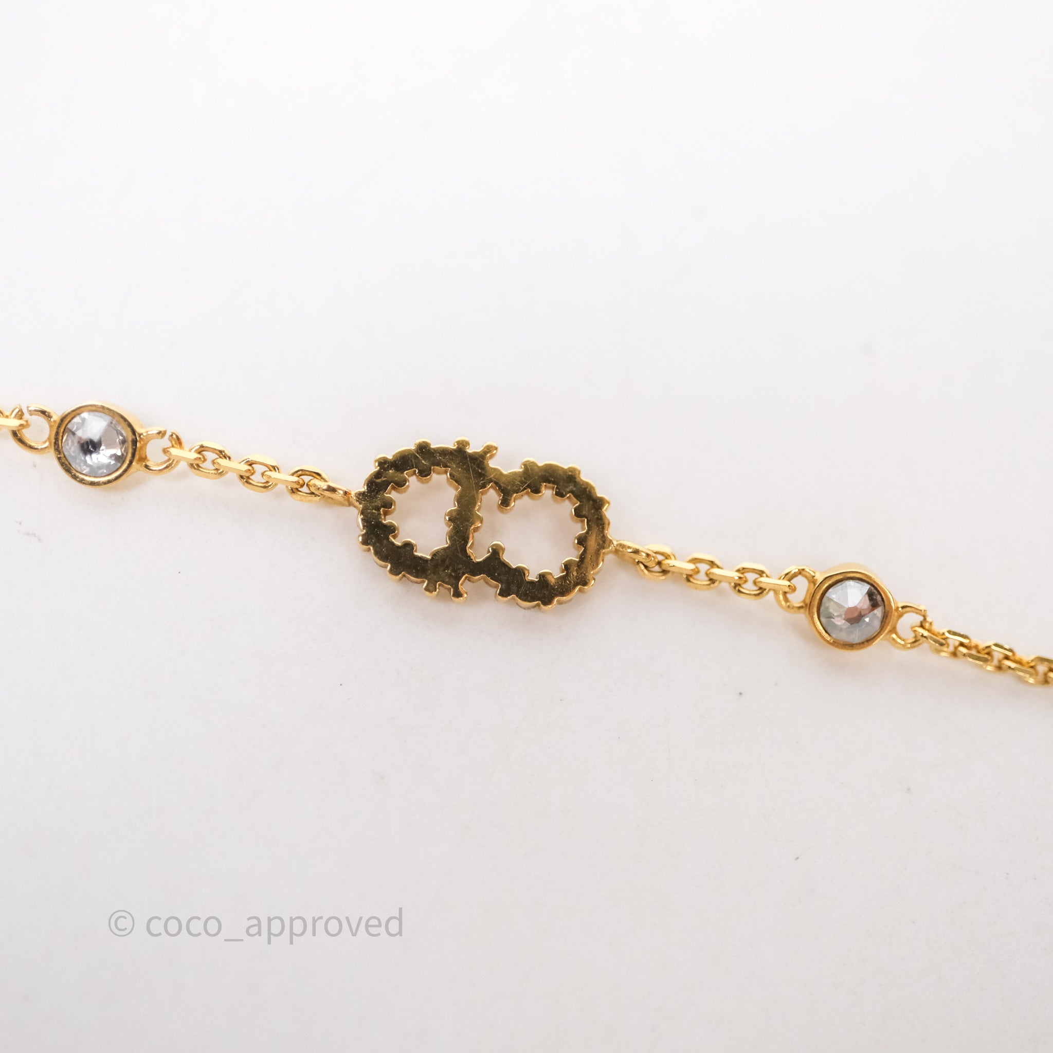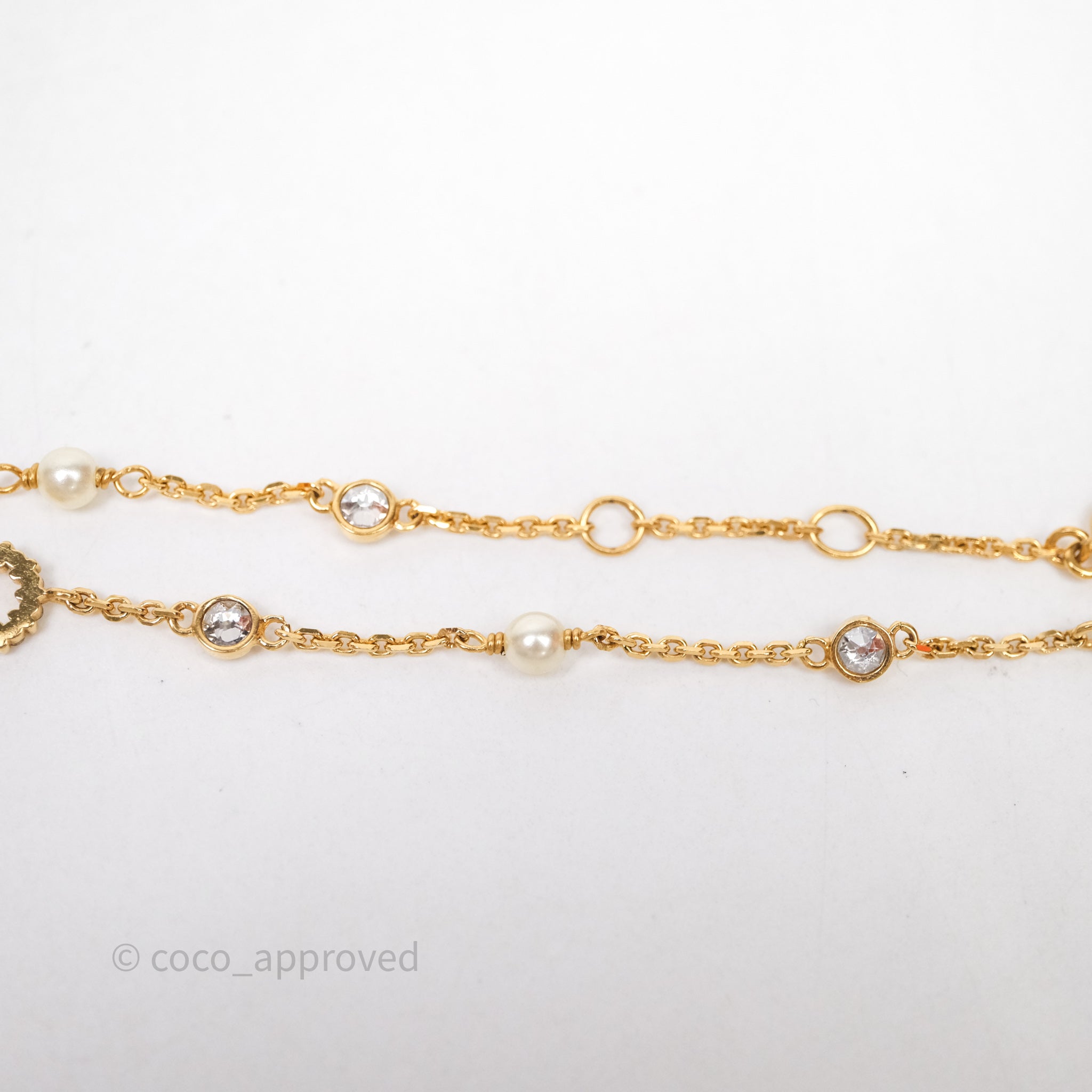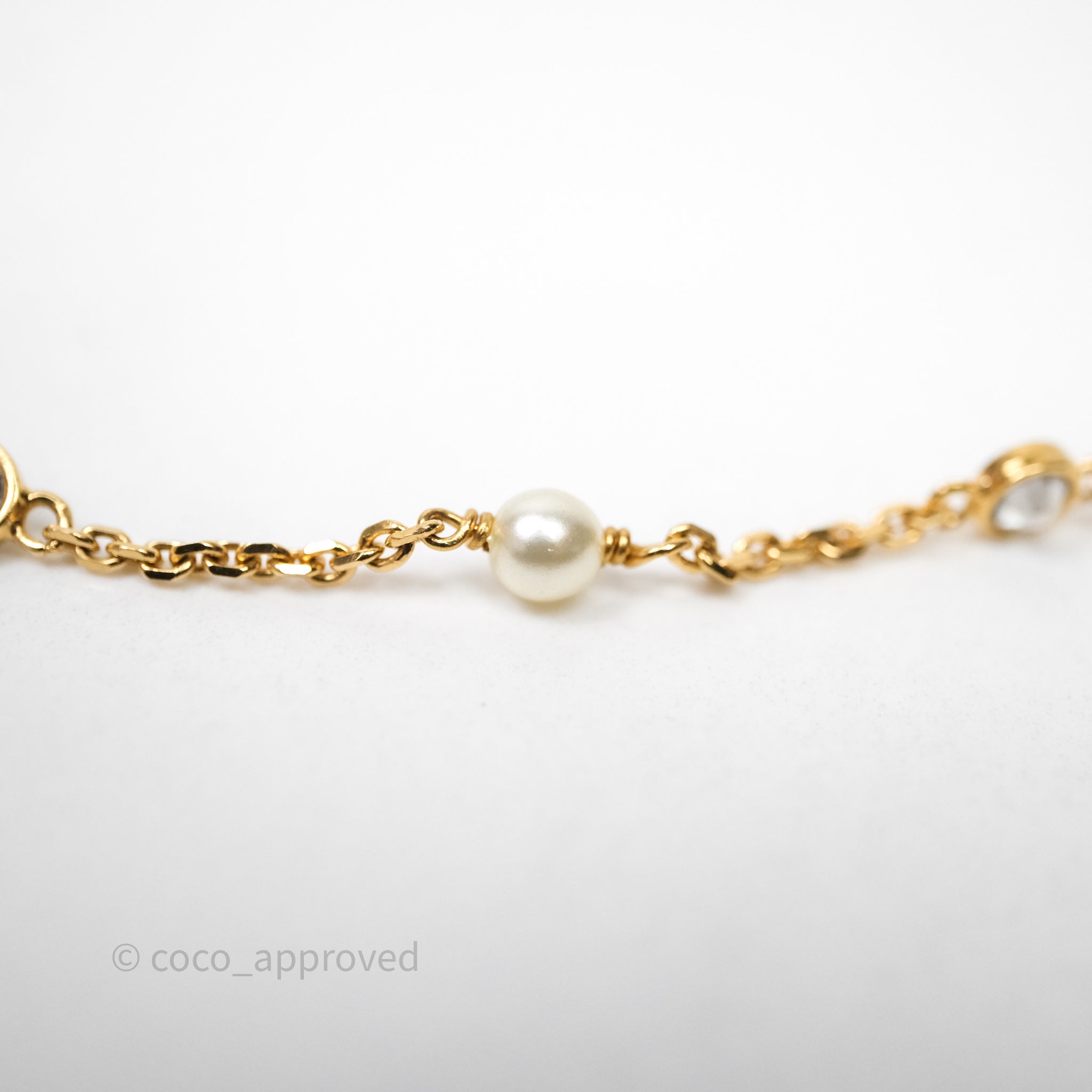 Christian Dior Metal Crystal Pearl CD Bracelet Gold Tone