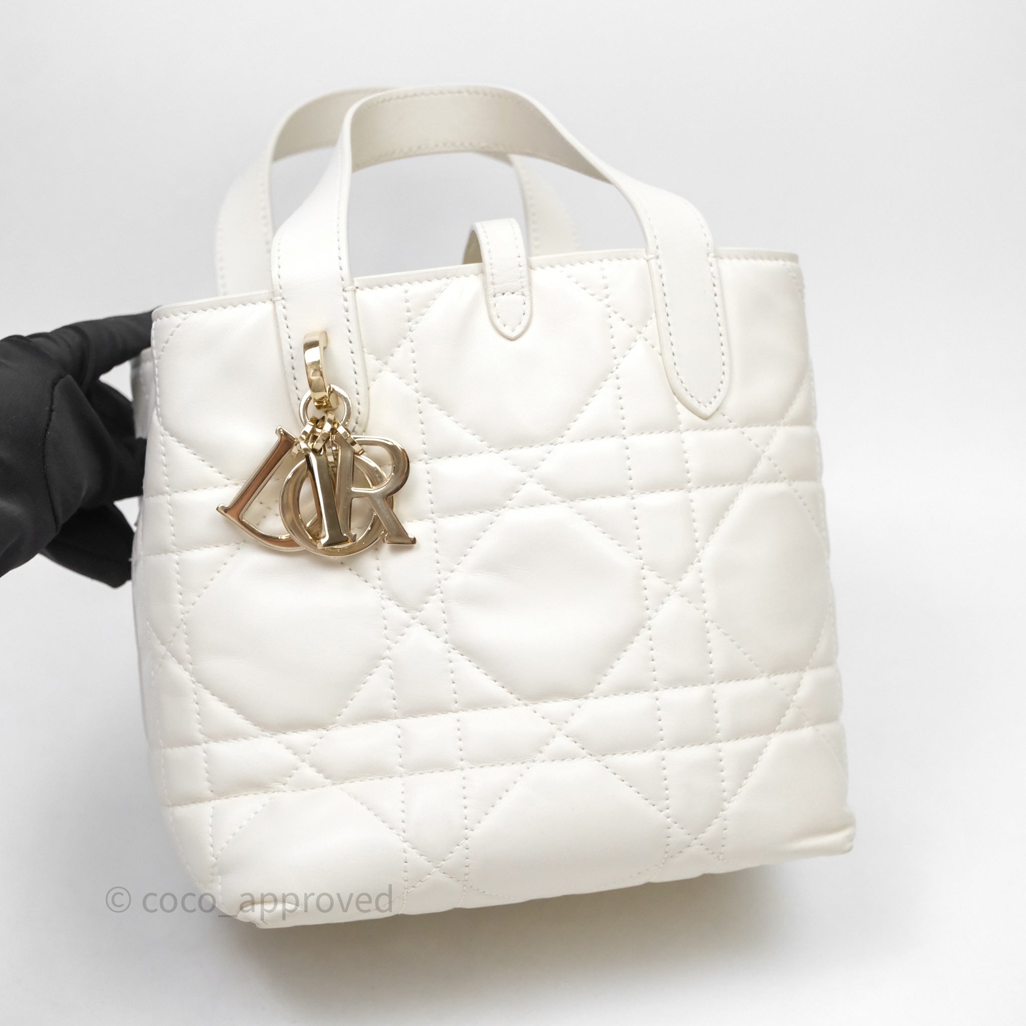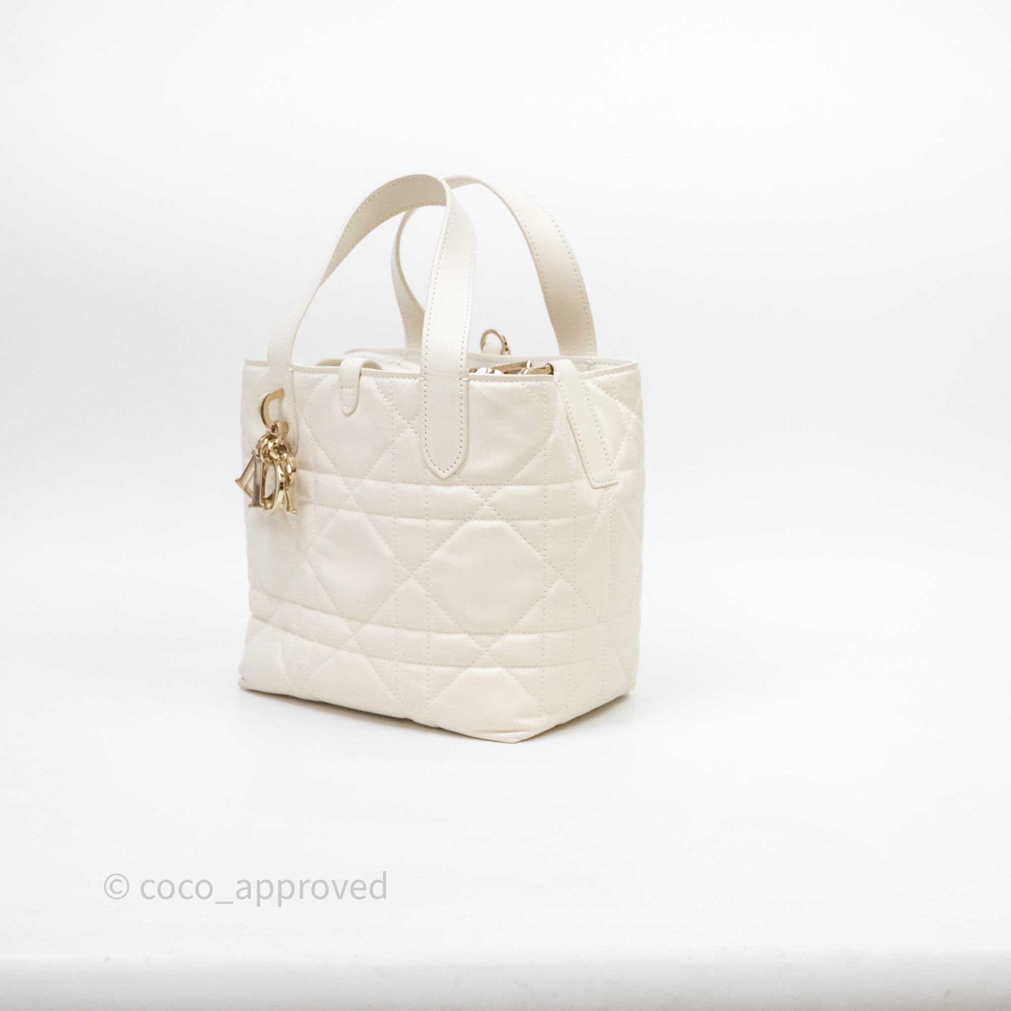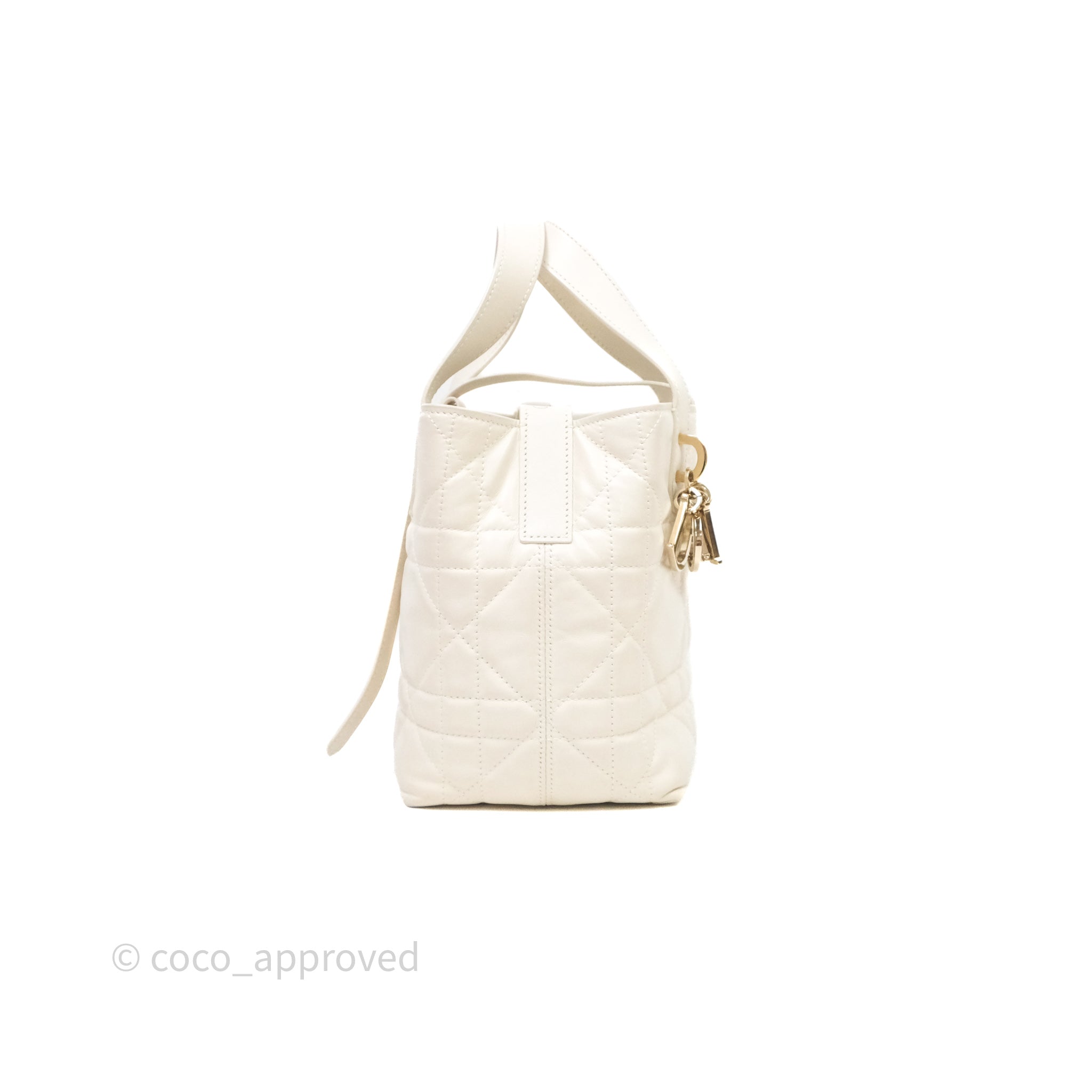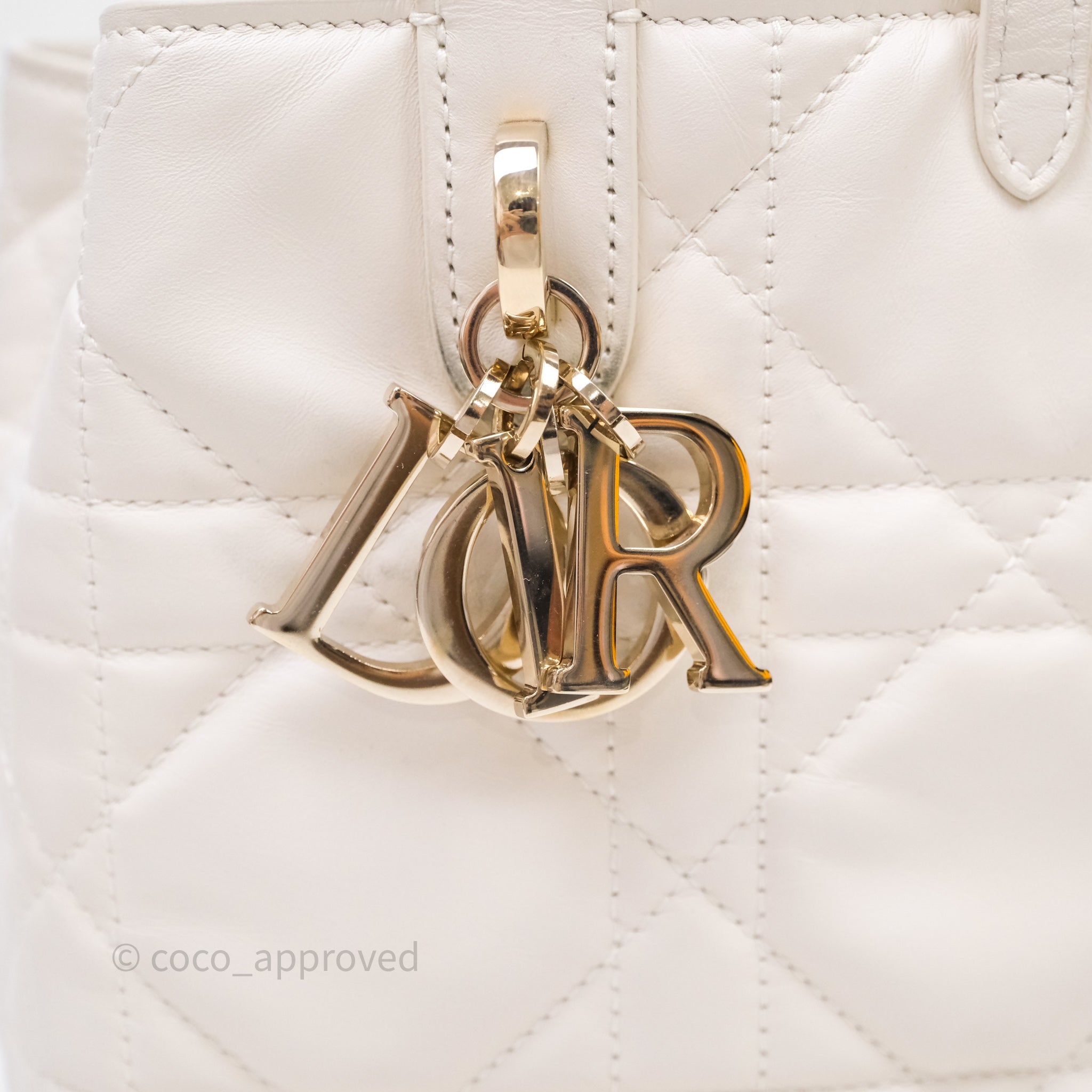 Christian Dior Small Toujours Vertical Tote Bag Latte Macrocannage Calfskin Gold Hardware