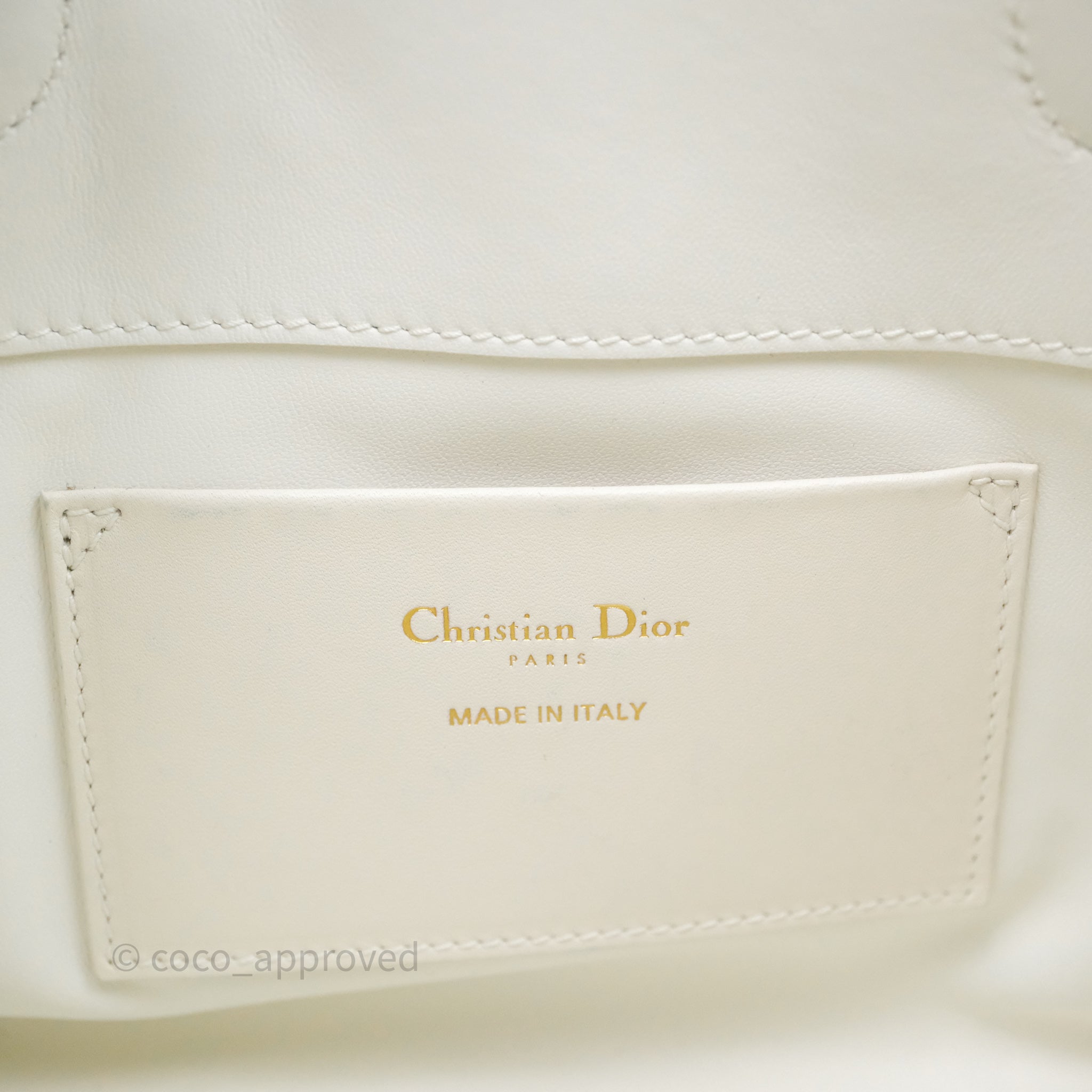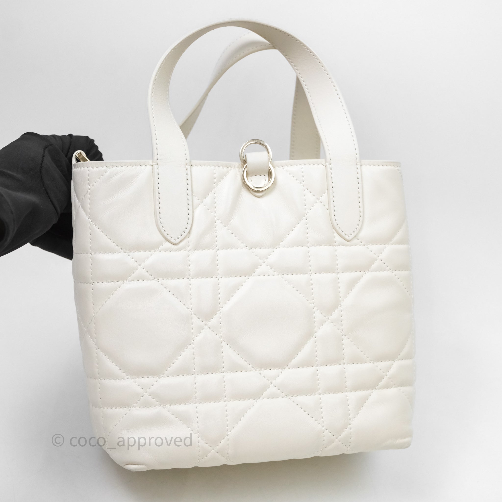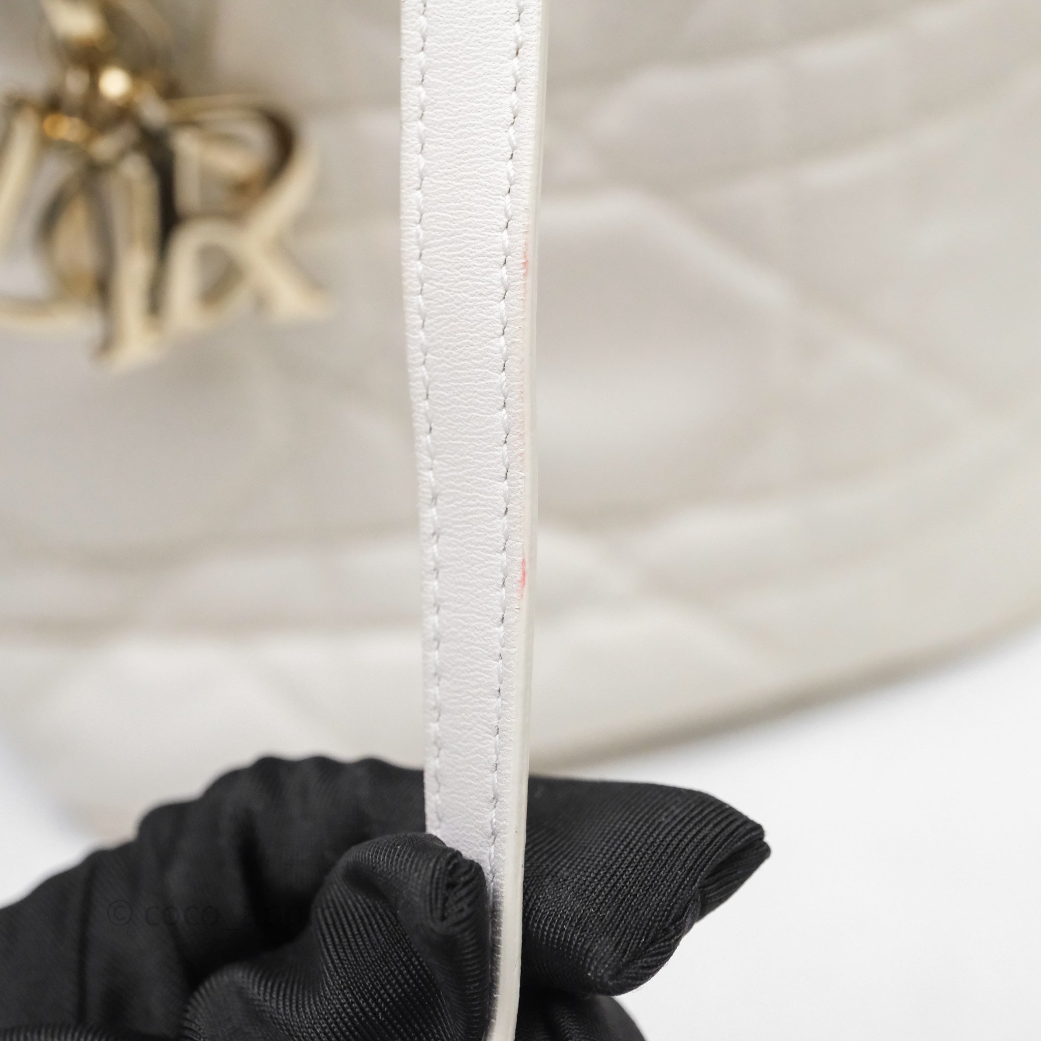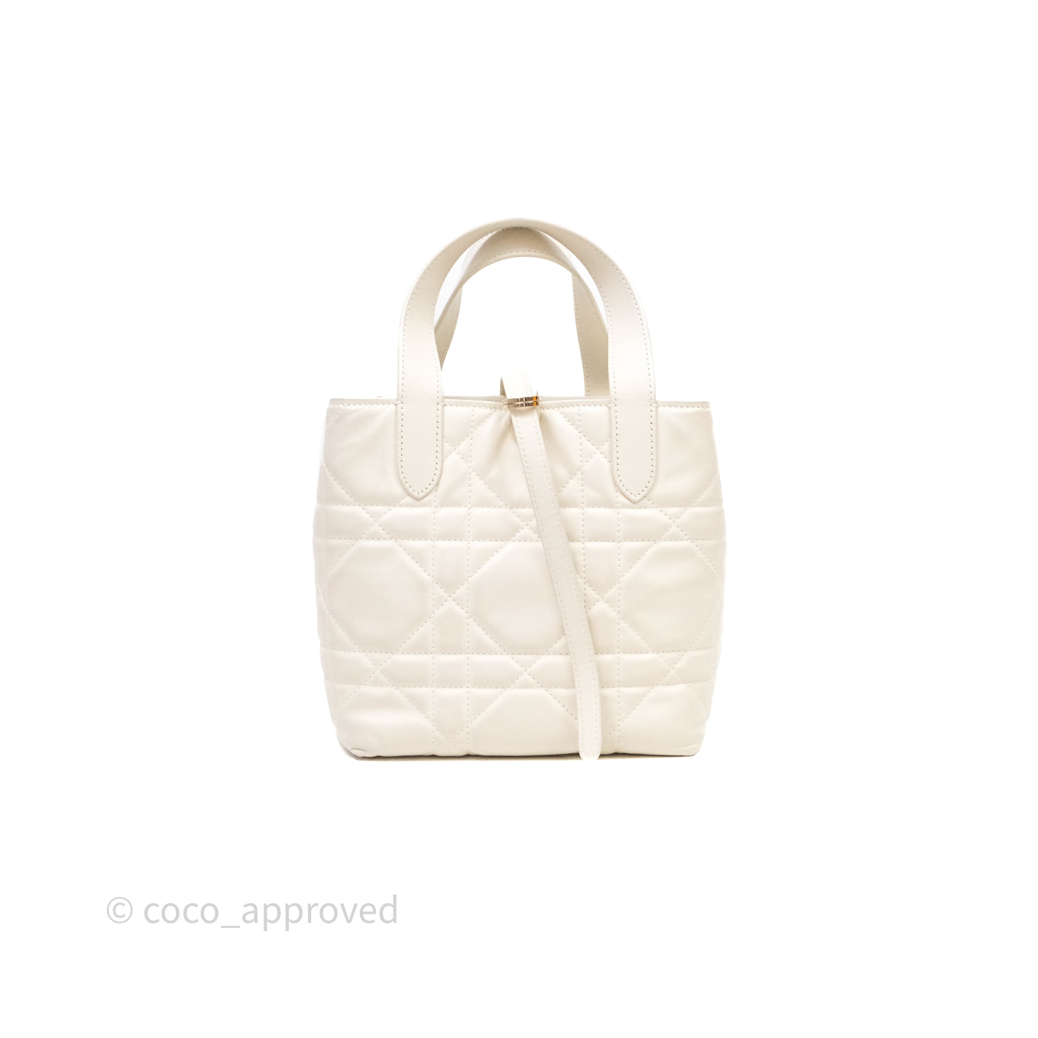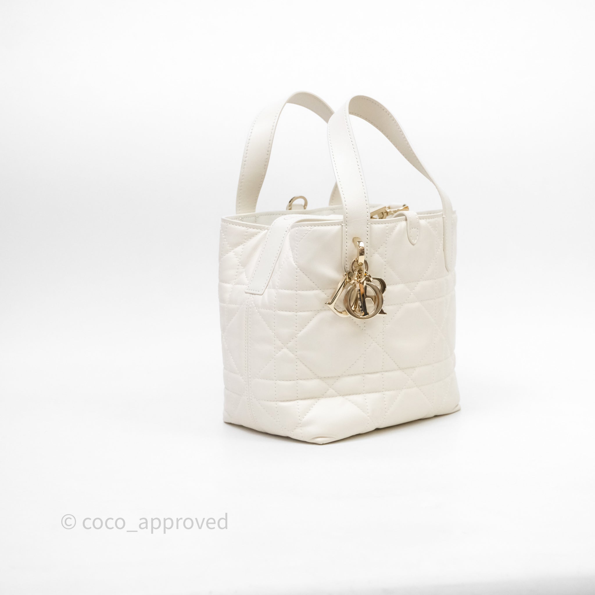 Christian Dior Small Toujours Vertical Tote Bag Latte Macrocannage Calfskin Gold Hardware