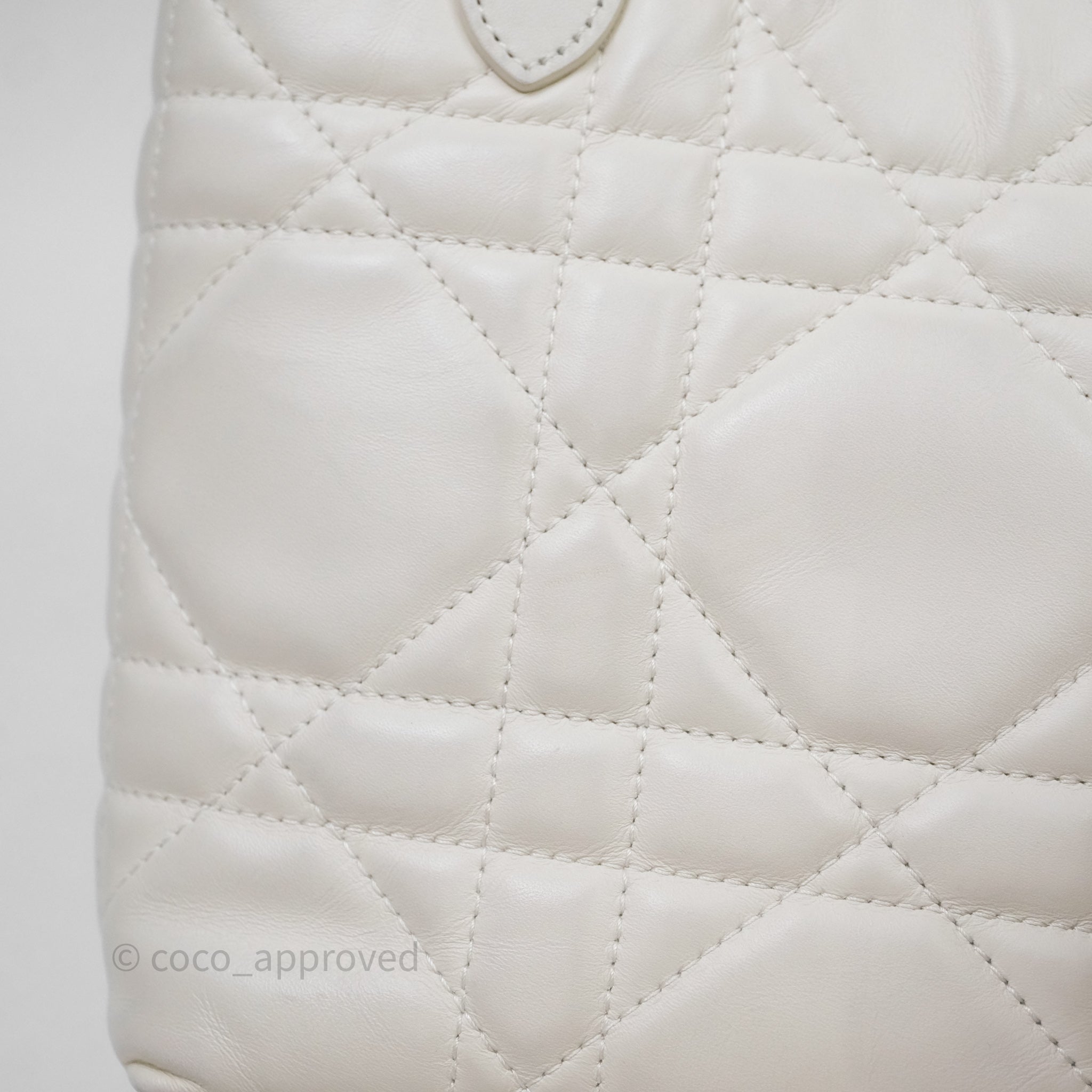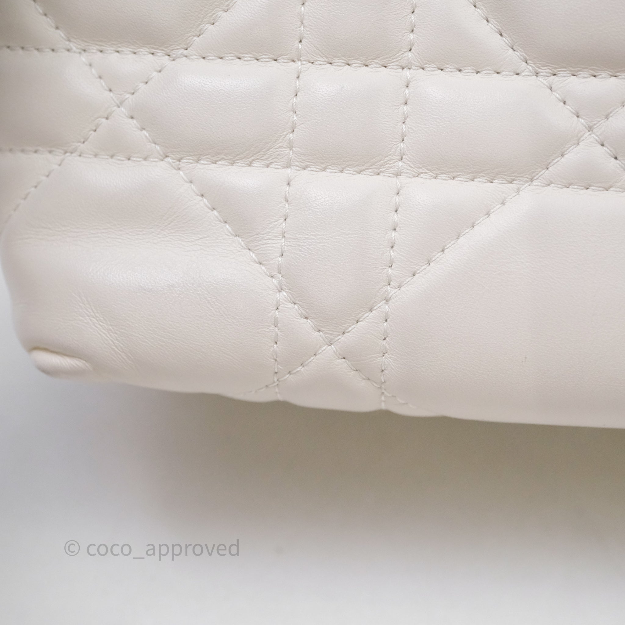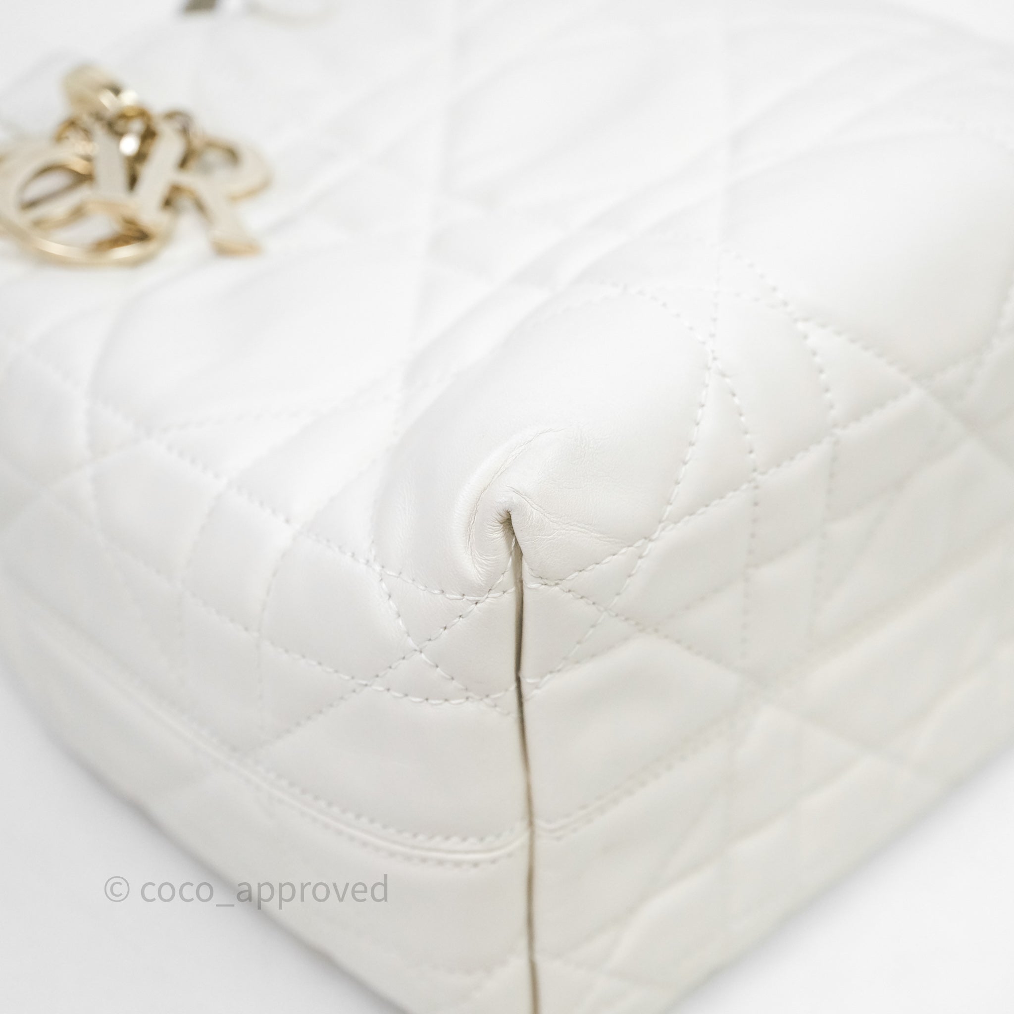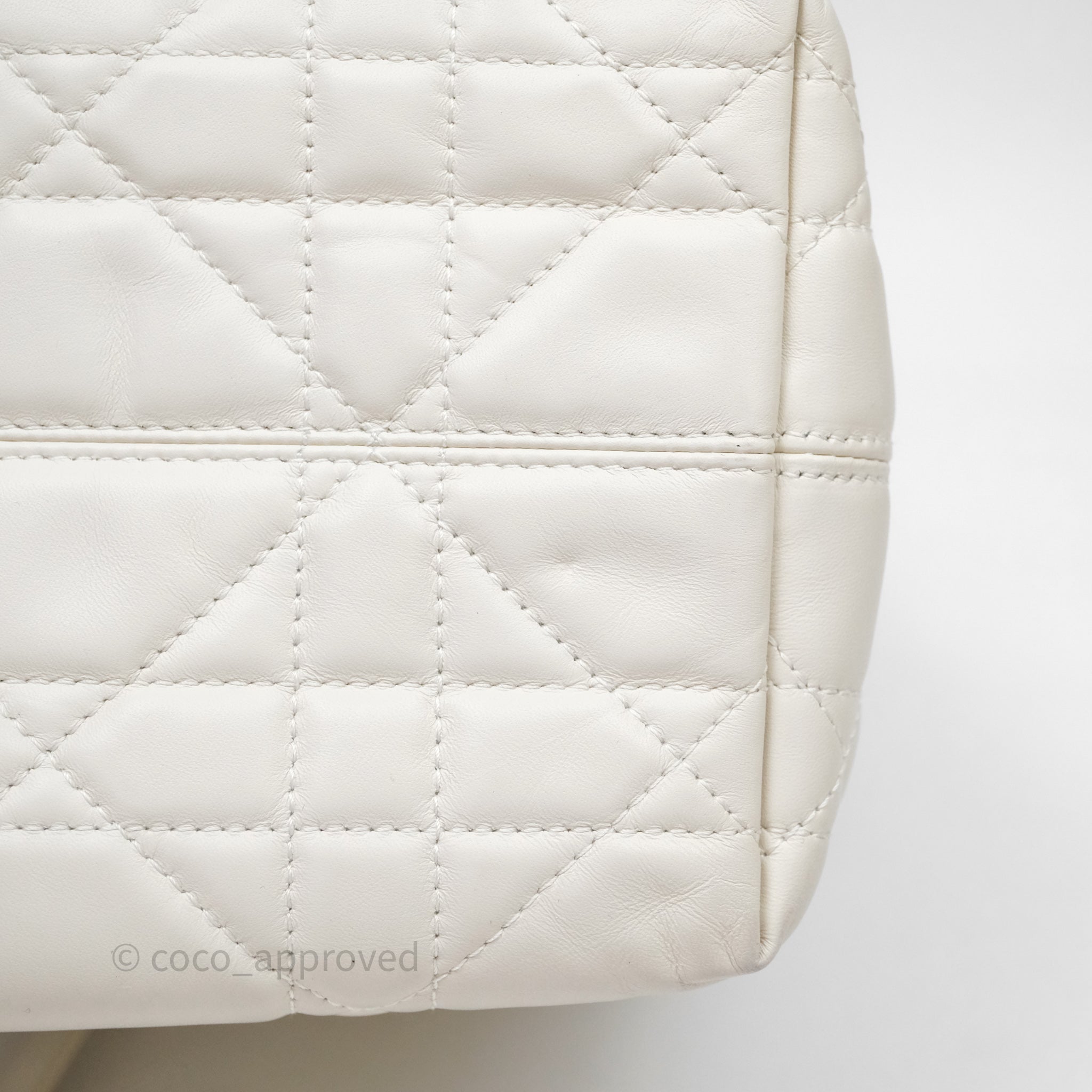 Christian Dior Small Toujours Vertical Tote Bag Latte Macrocannage Calfskin Gold Hardware