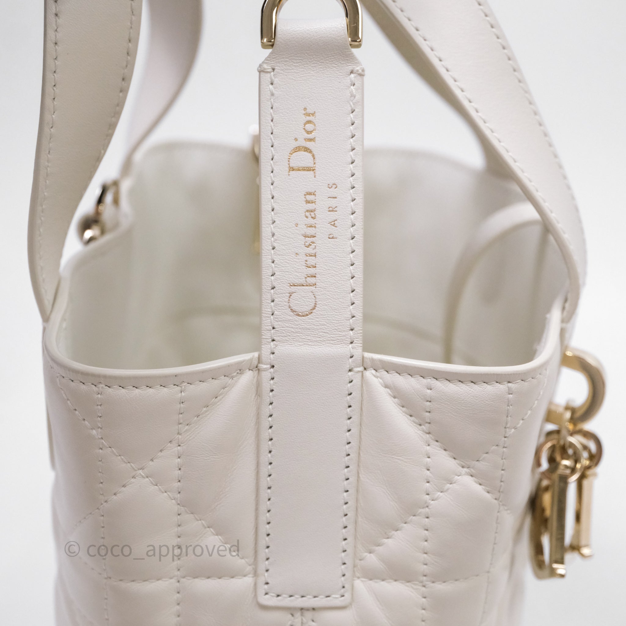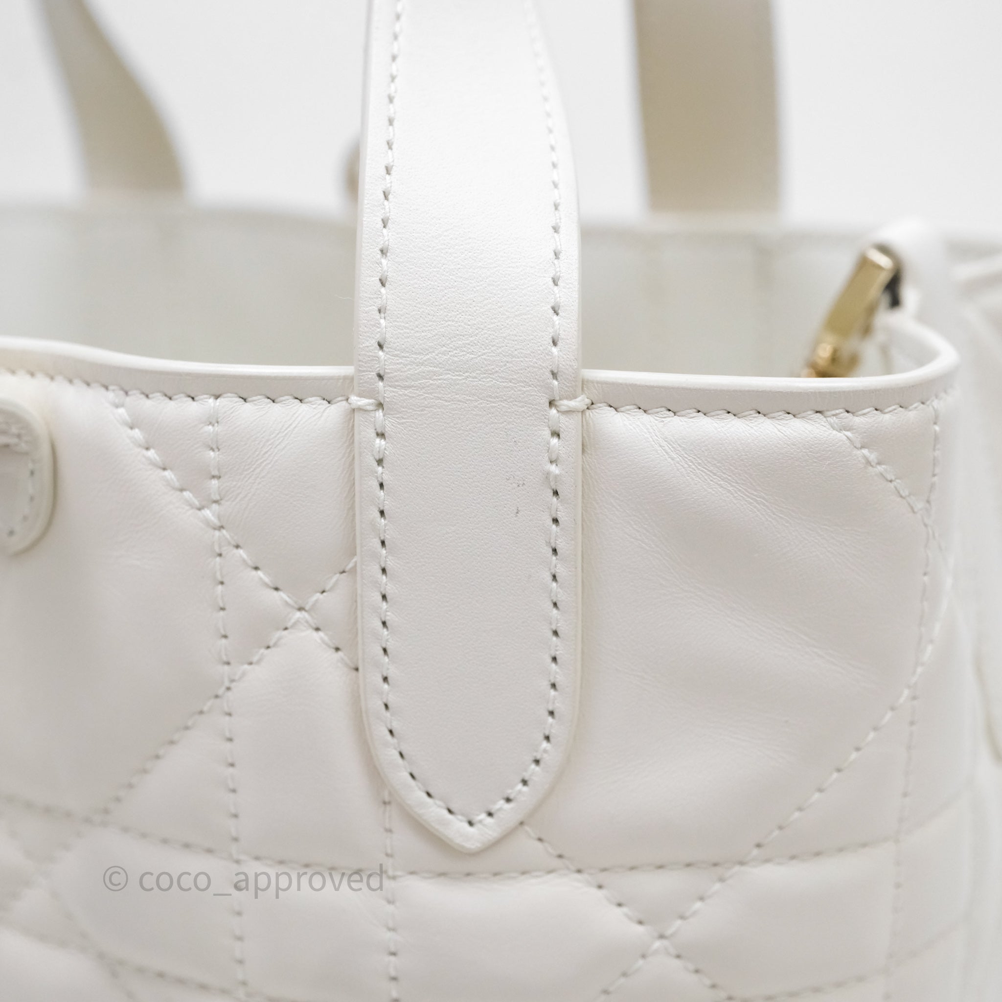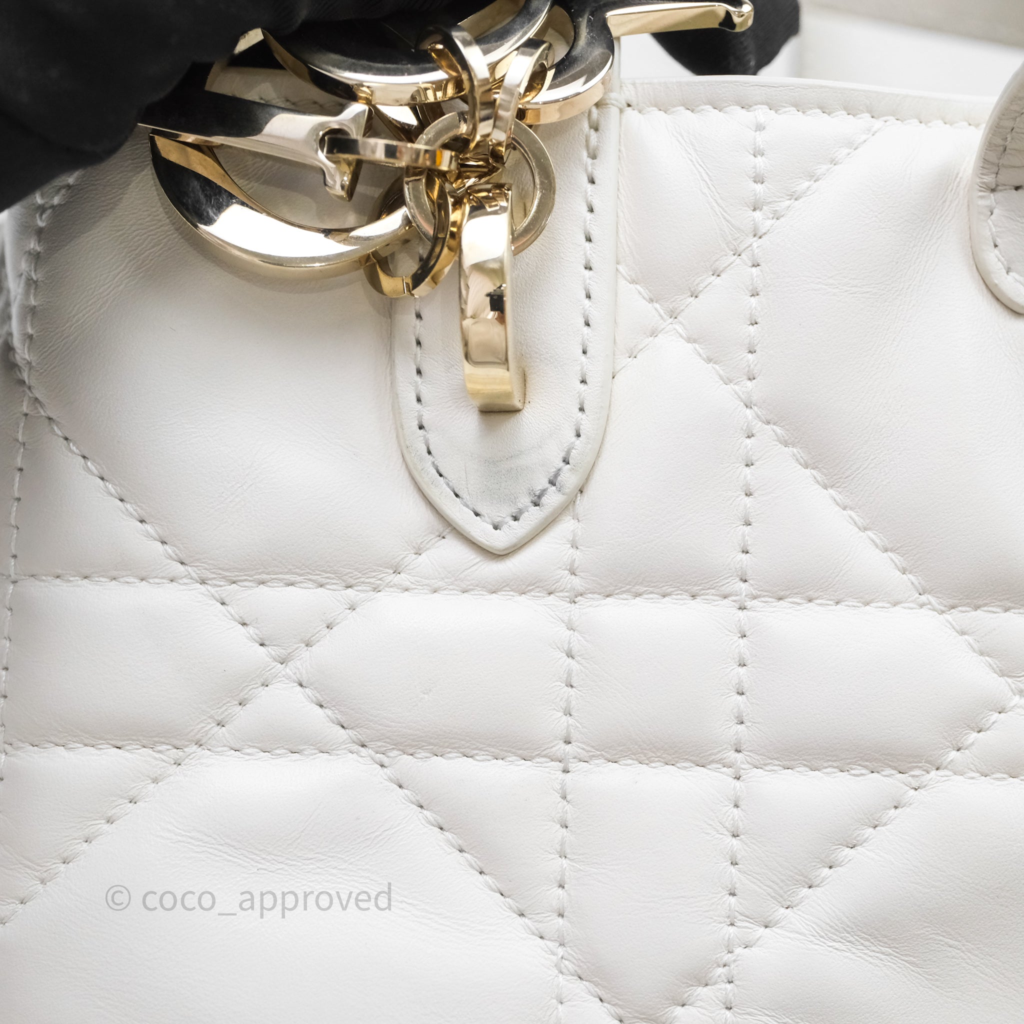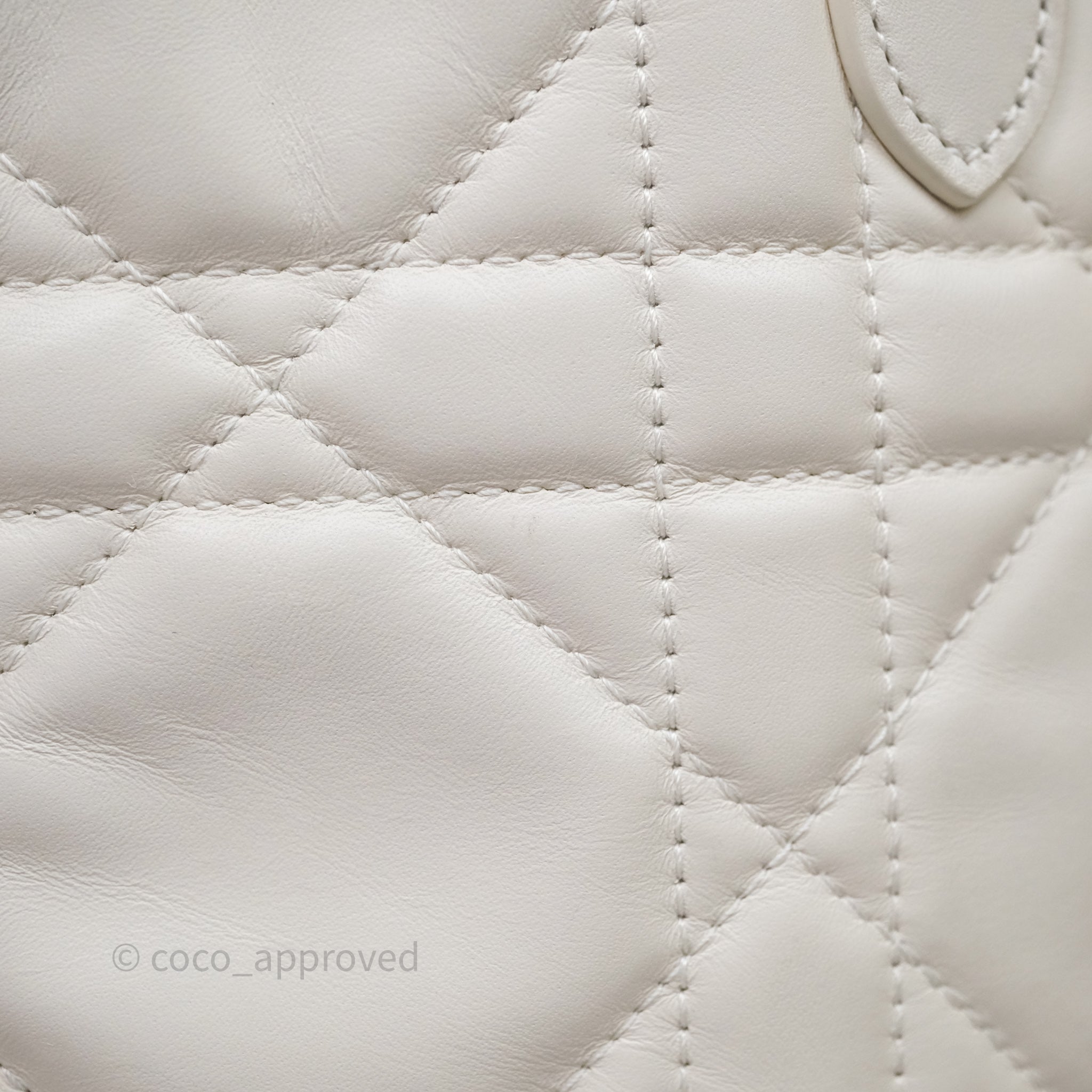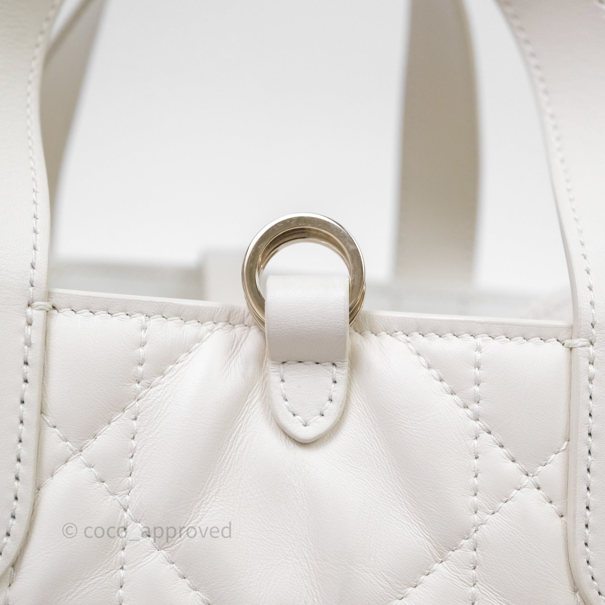 Christian Dior Small Toujours Vertical Tote Bag Latte Macrocannage Calfskin Gold Hardware