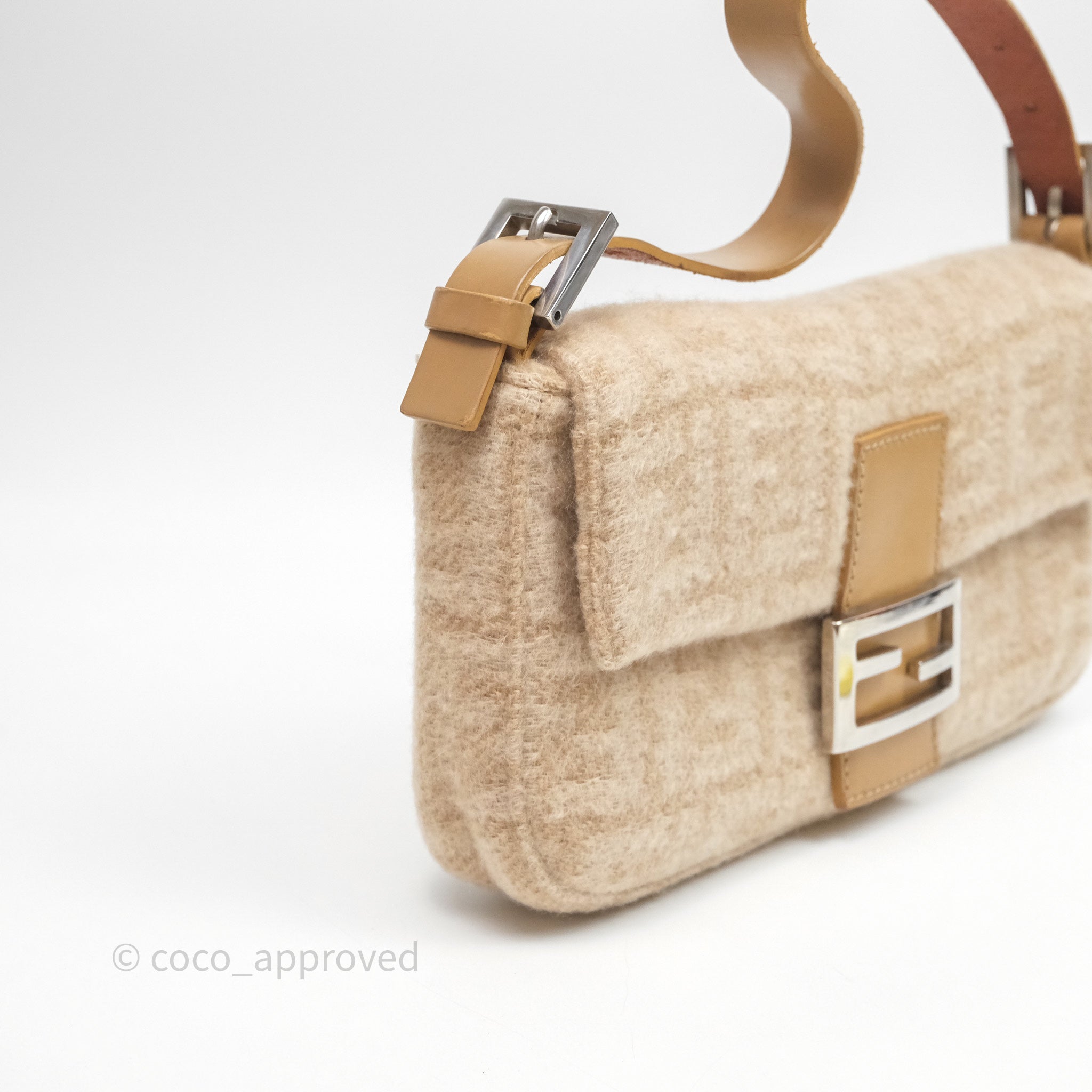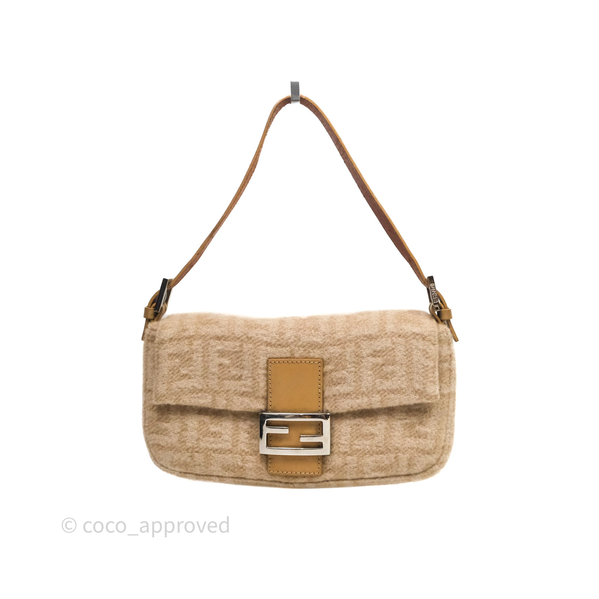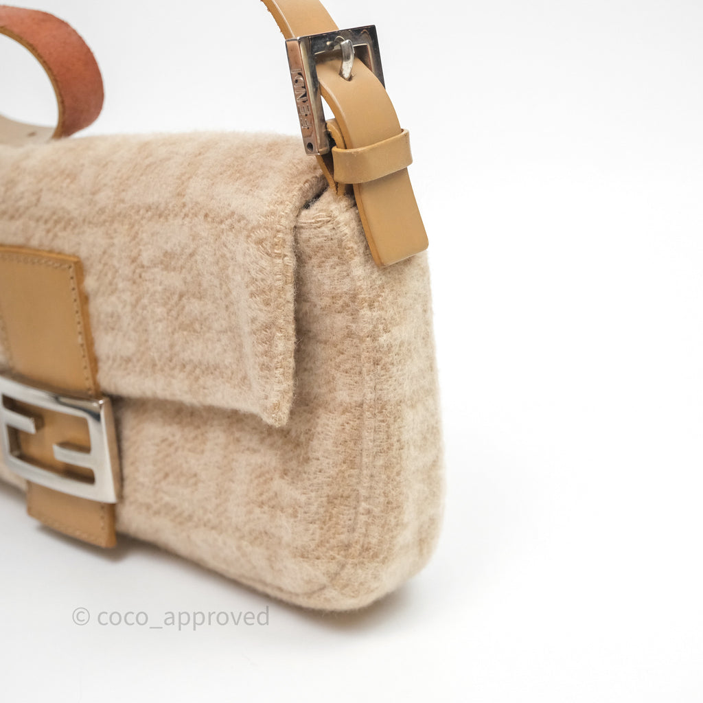 Fendi Vintage Baguette Shoulder Bag Wool Beige