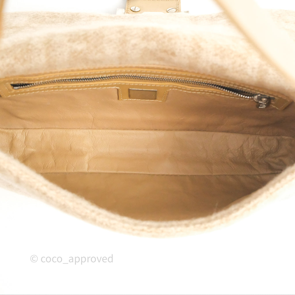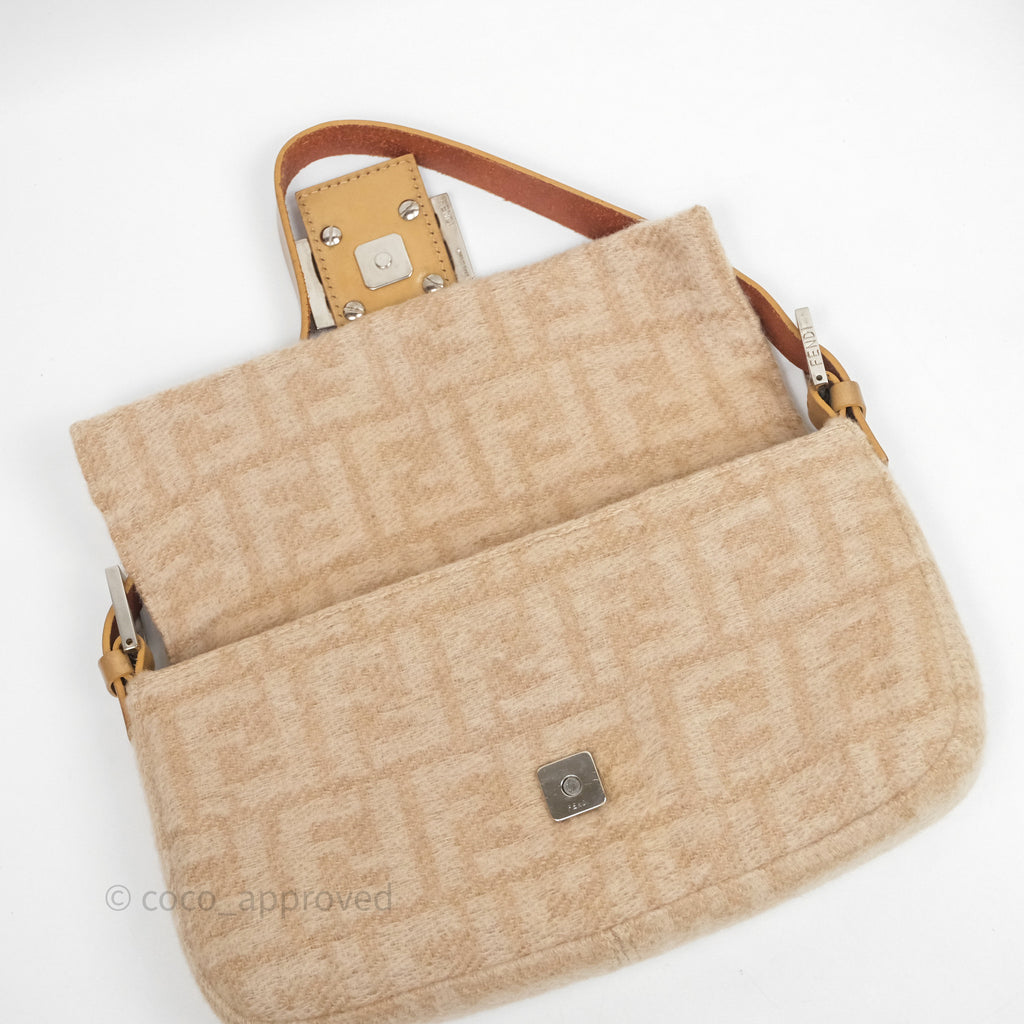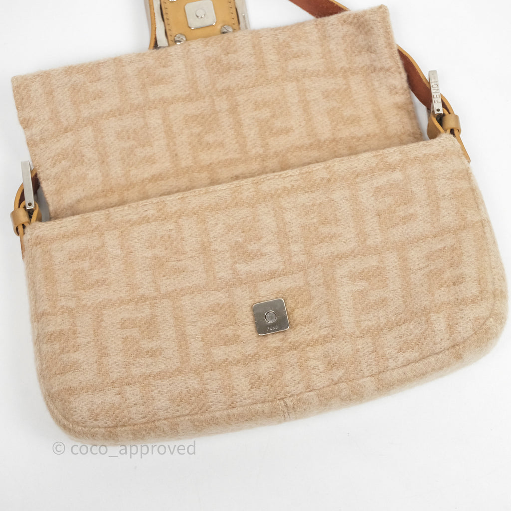 Fendi Vintage Baguette Shoulder Bag Wool Beige