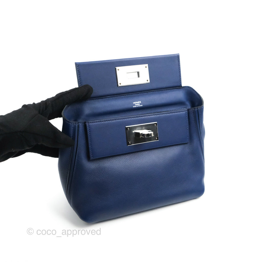 Hermès 24/24 21 Mini Bleu Saphir Evercolor/Swift Palladium Hardware