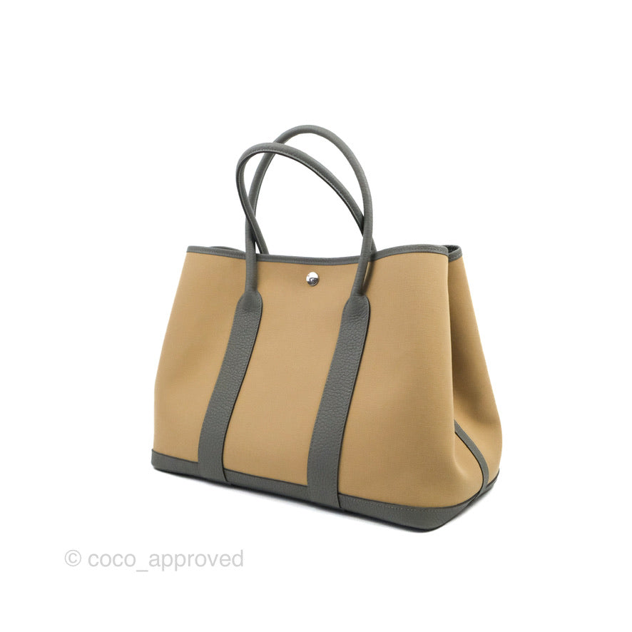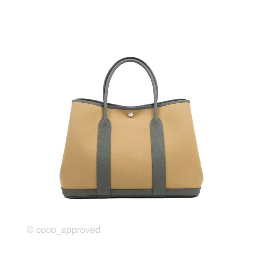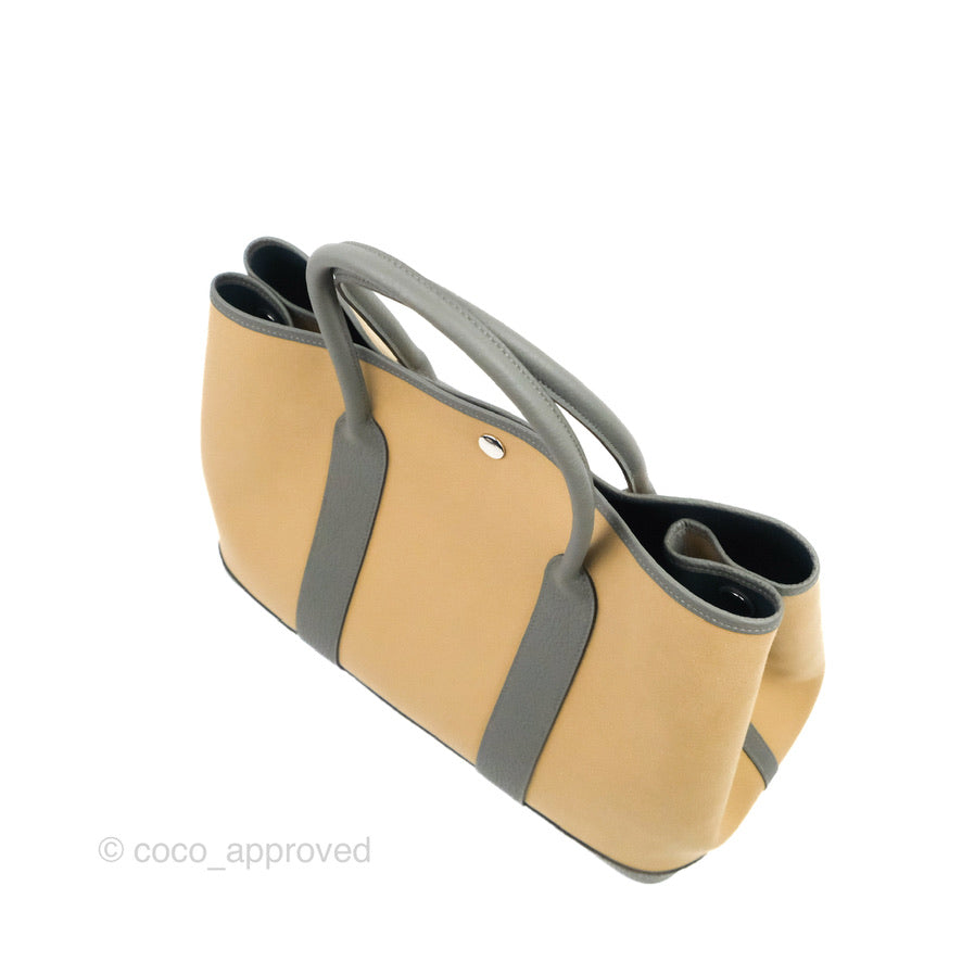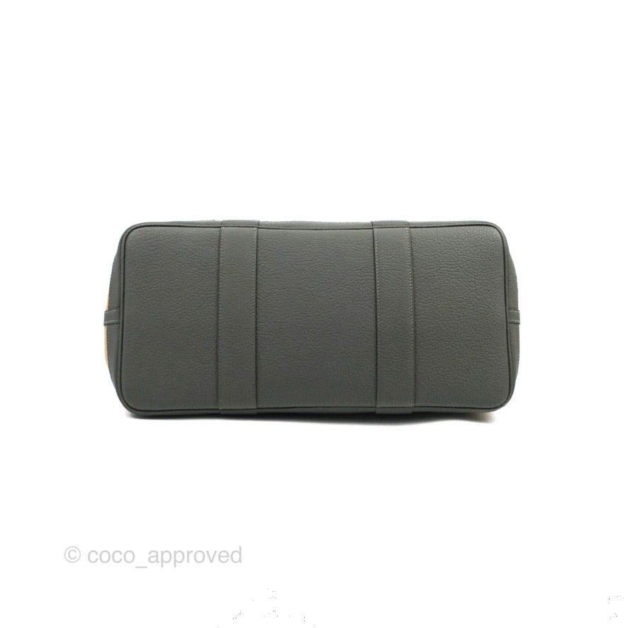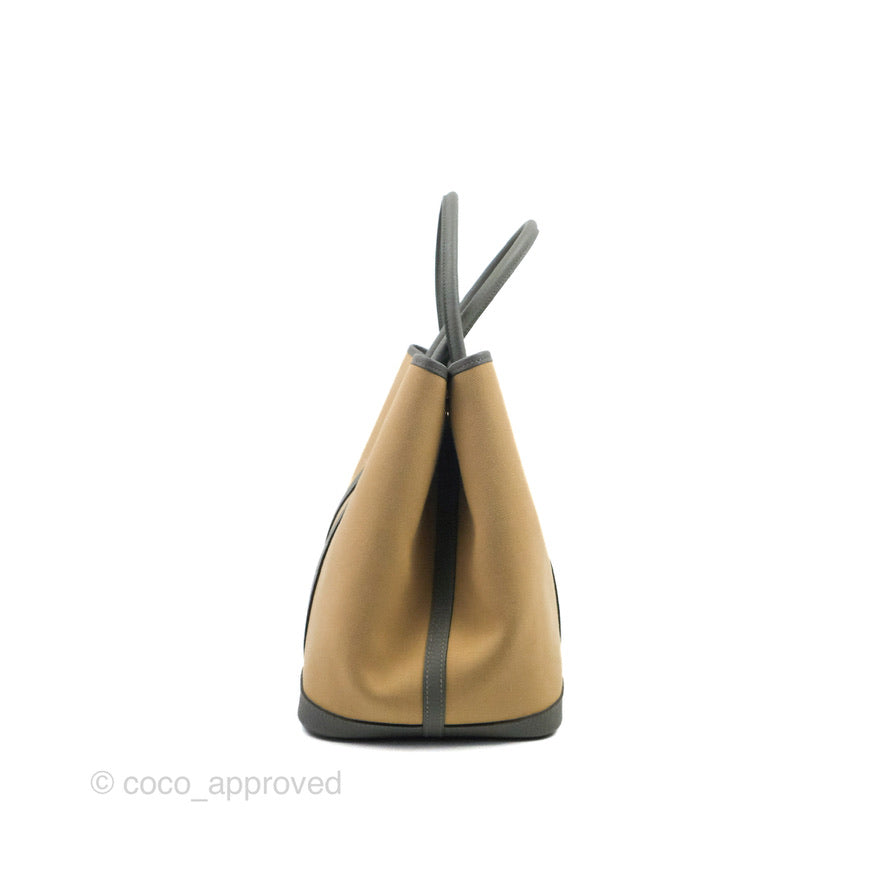 Hermès Garden Party 36 Toile Officier Trench S2-Bleu Tempete N7 Canvas/Gris Meyer 0L