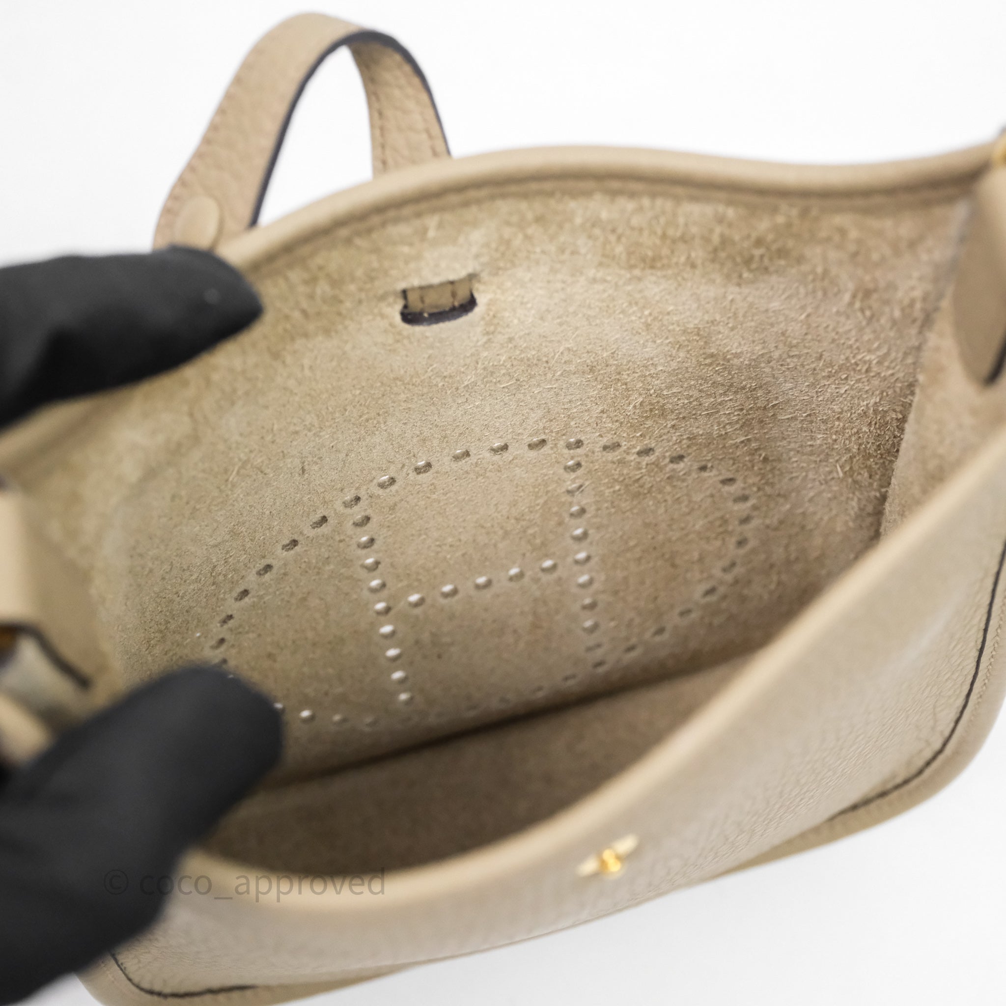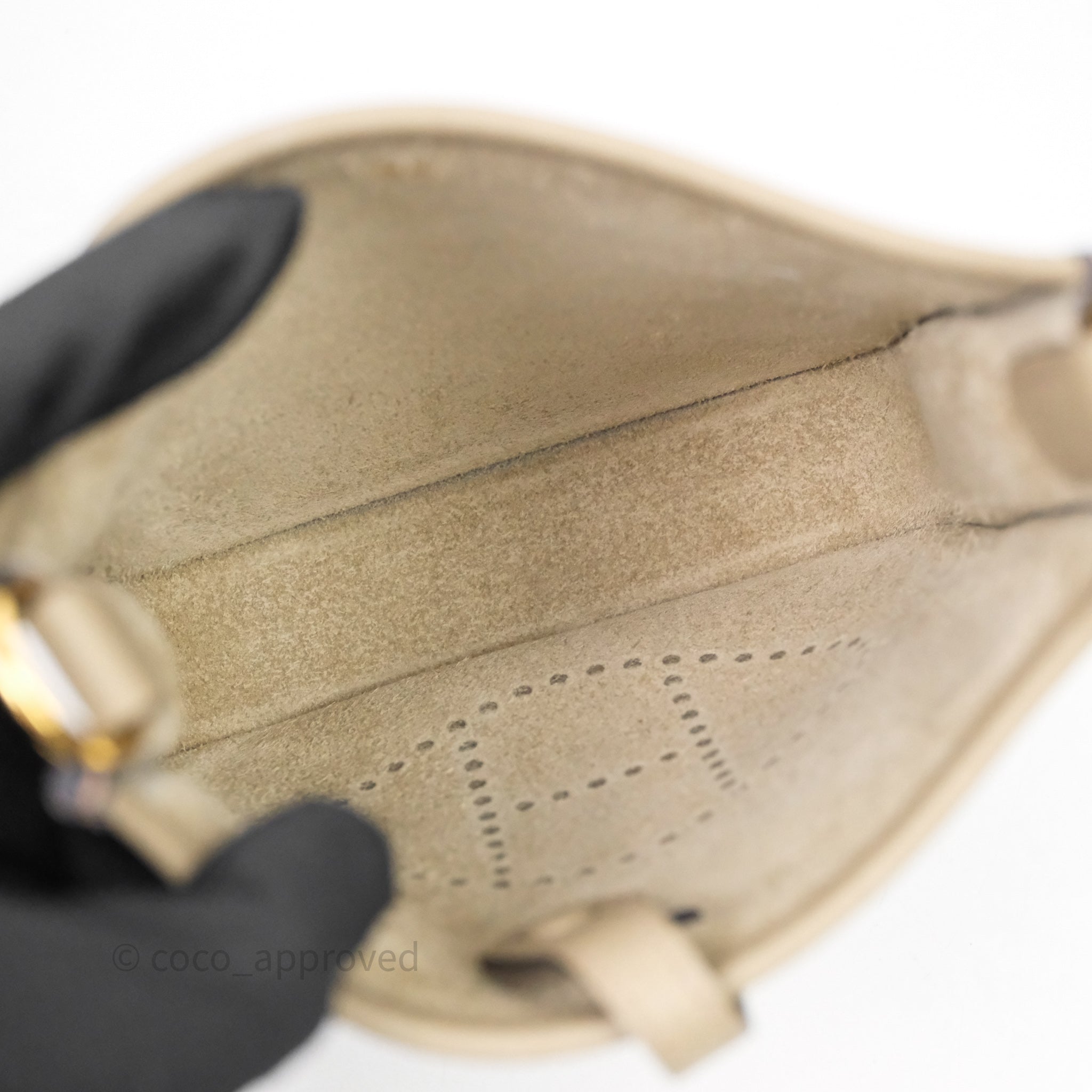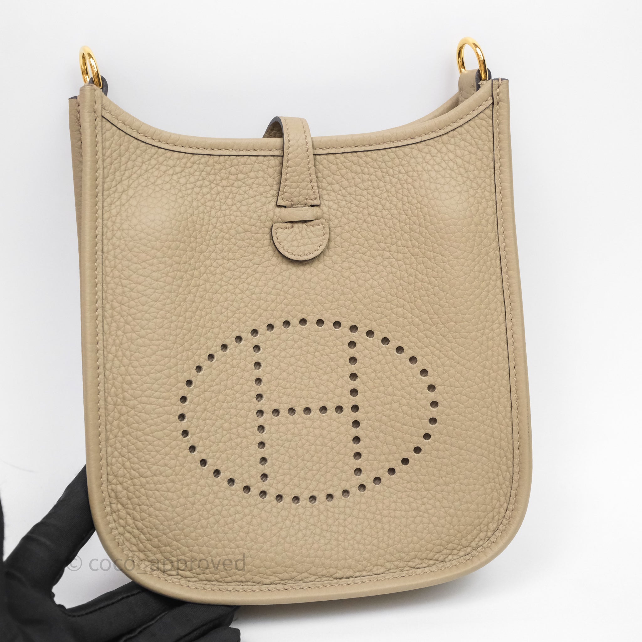 Hermès Mini Evelyne 16 Beige Marfa 8Q Clemence Gold Hardware