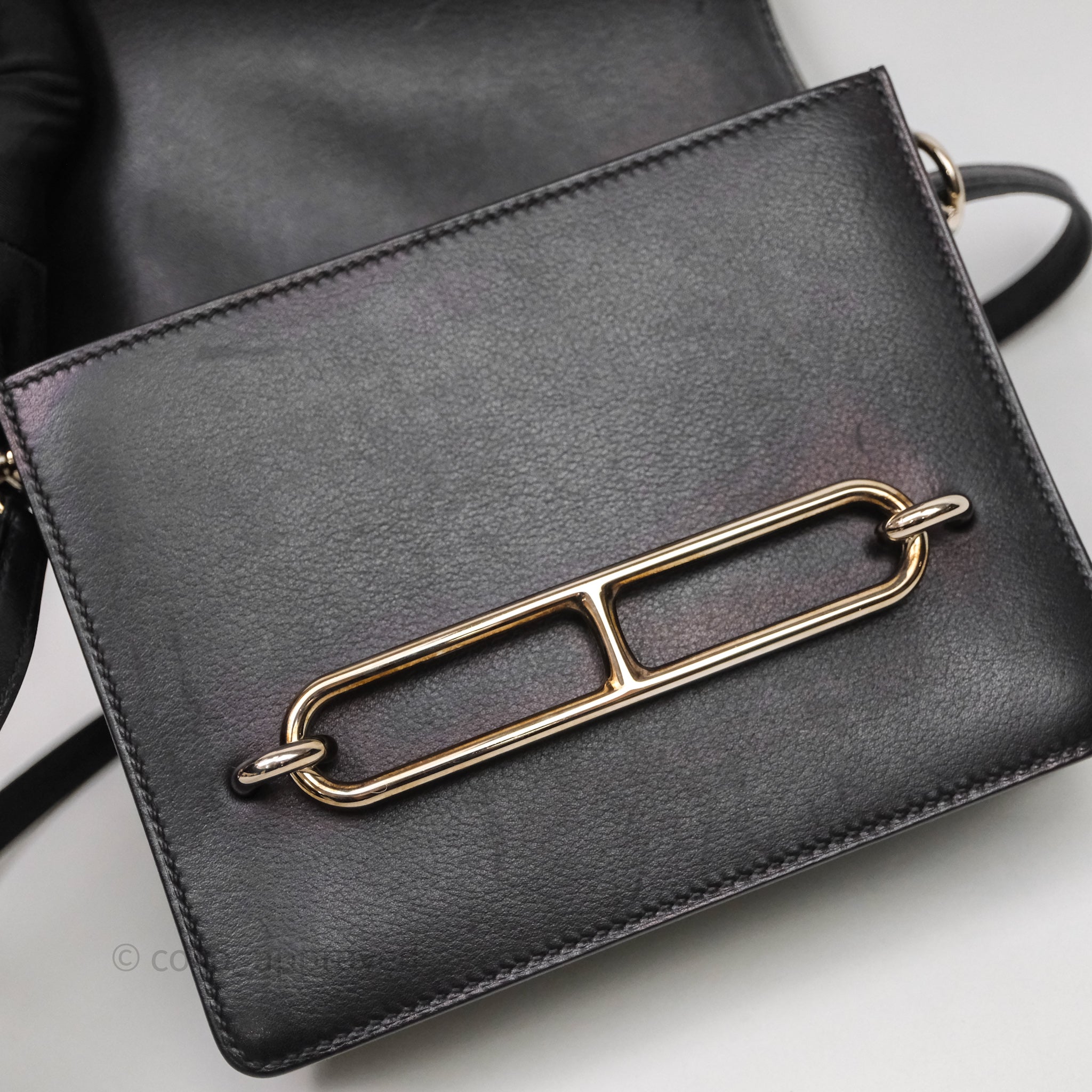 Hermès Roulis Mini 18 Black Noir 89 Light Gold Hardware