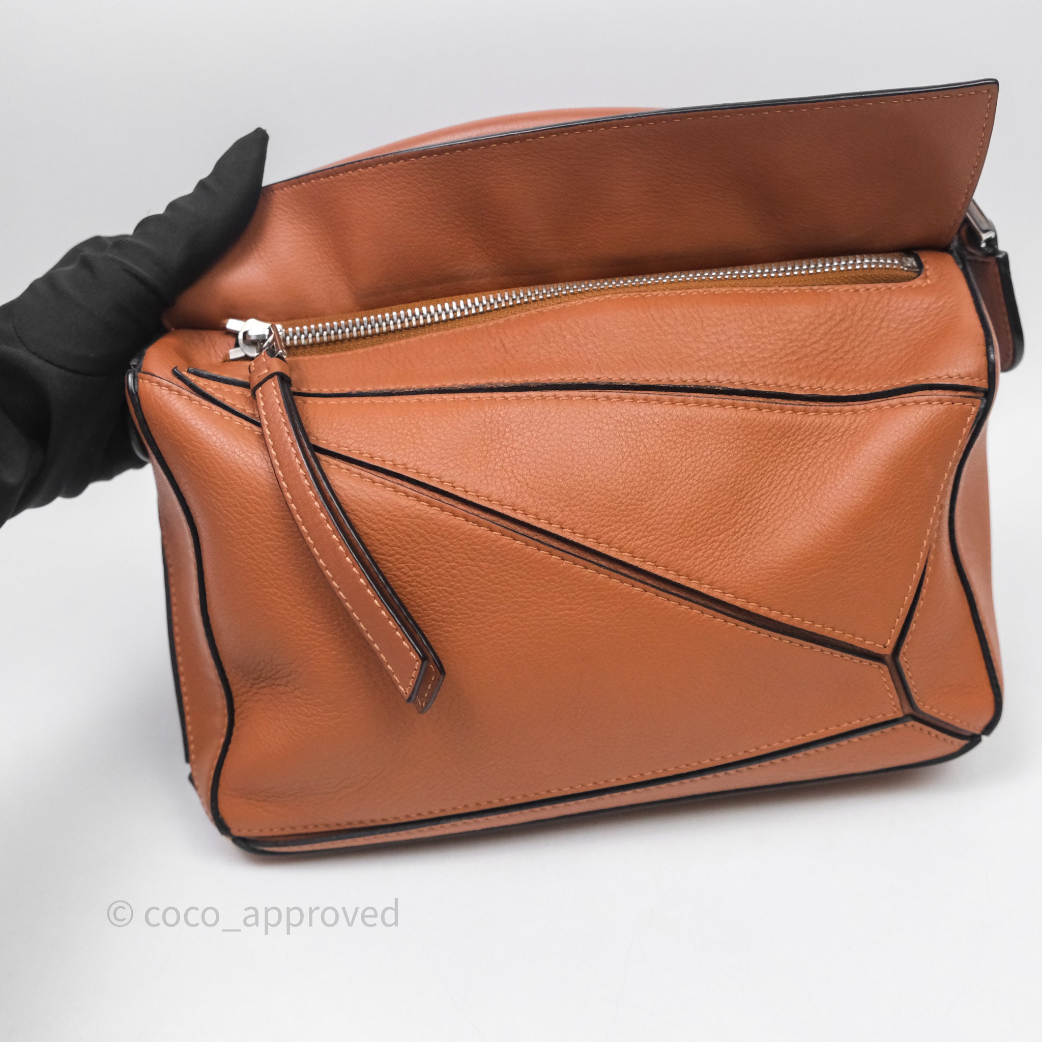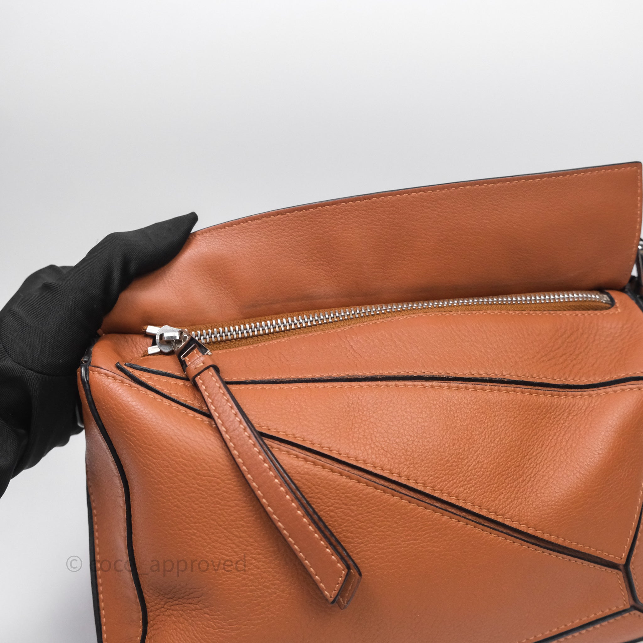 Loewe Small Puzzle Bag Tan Calfskin Silver Hardware