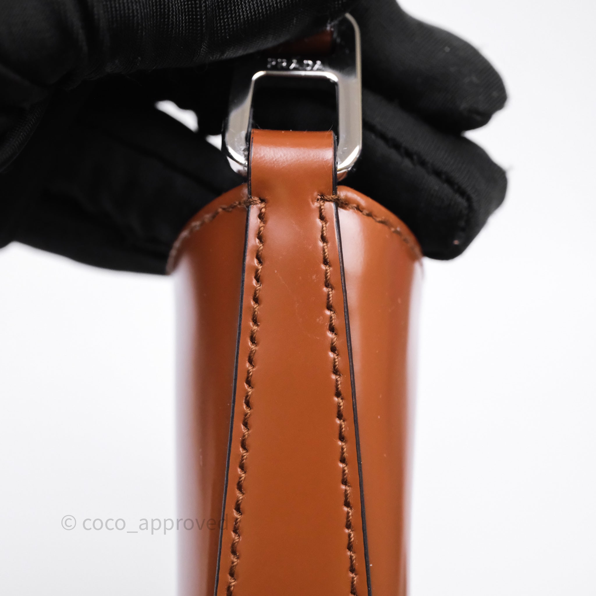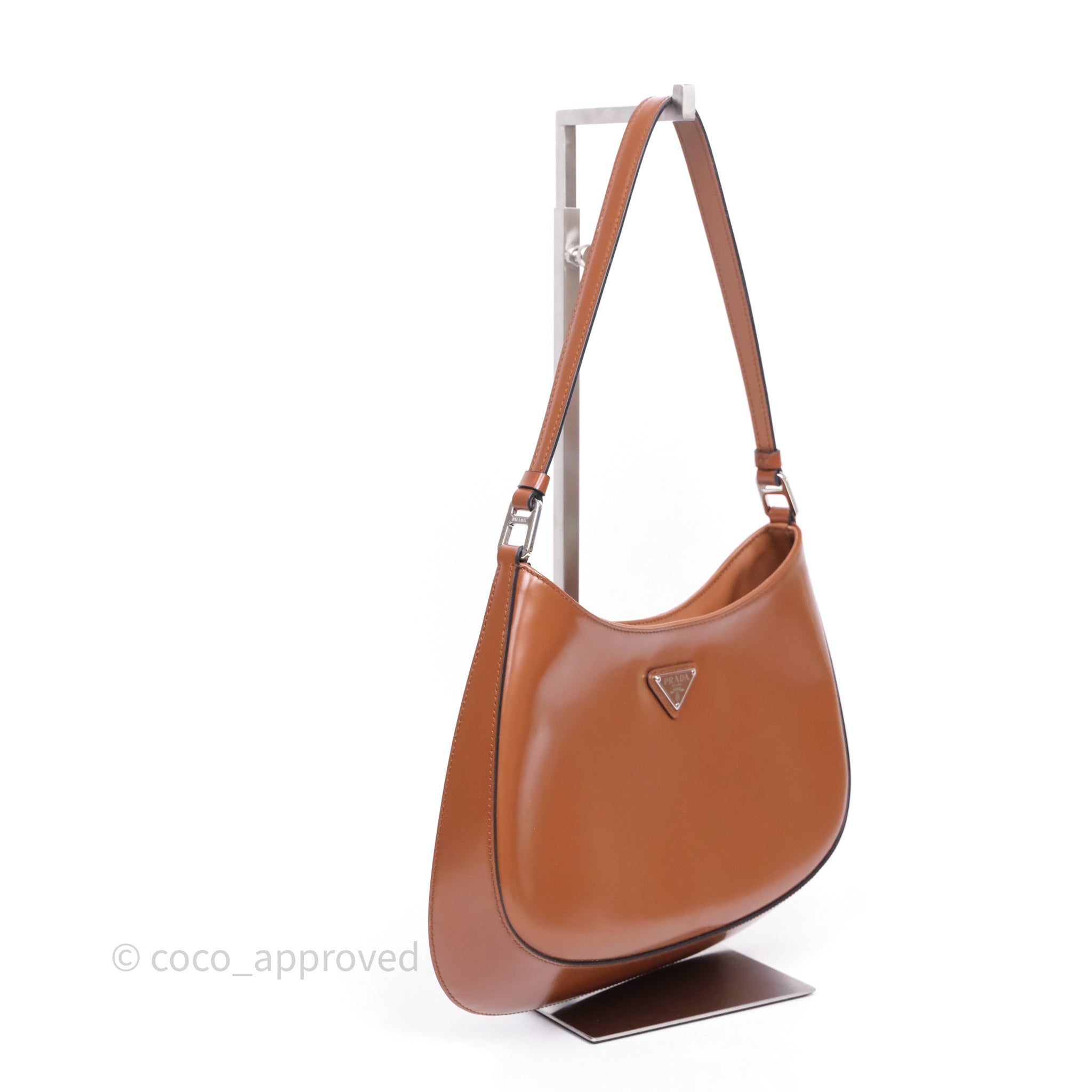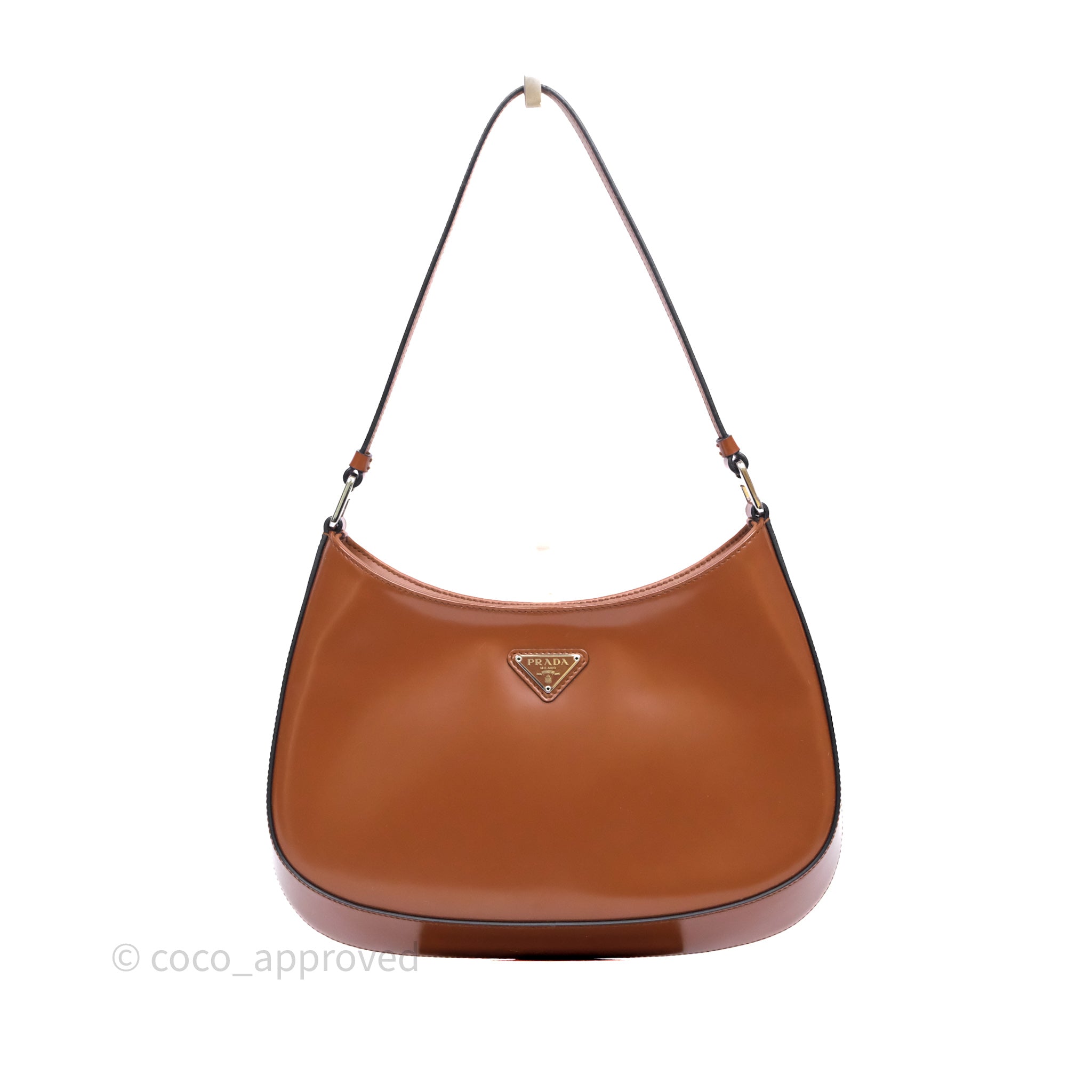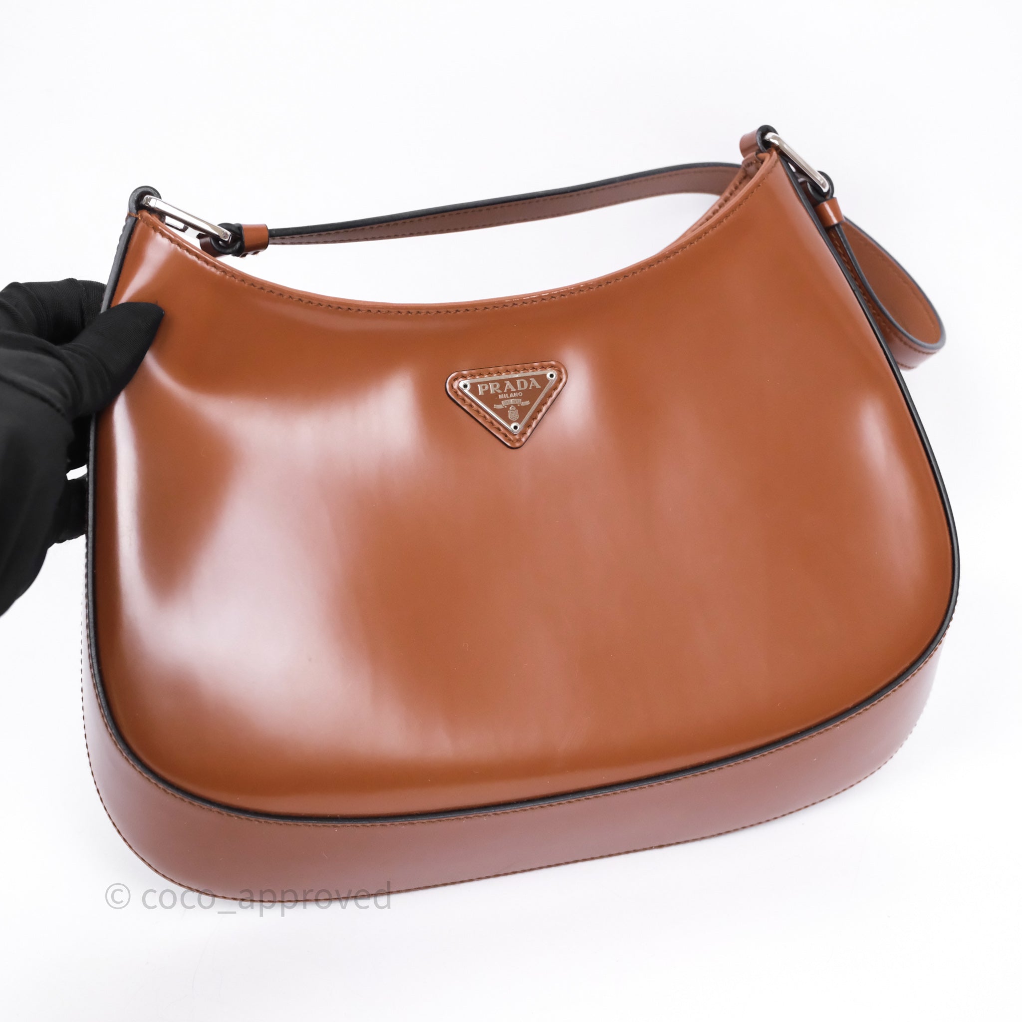 Prada Cleo Brushed Leather Shoulder Bag Brown