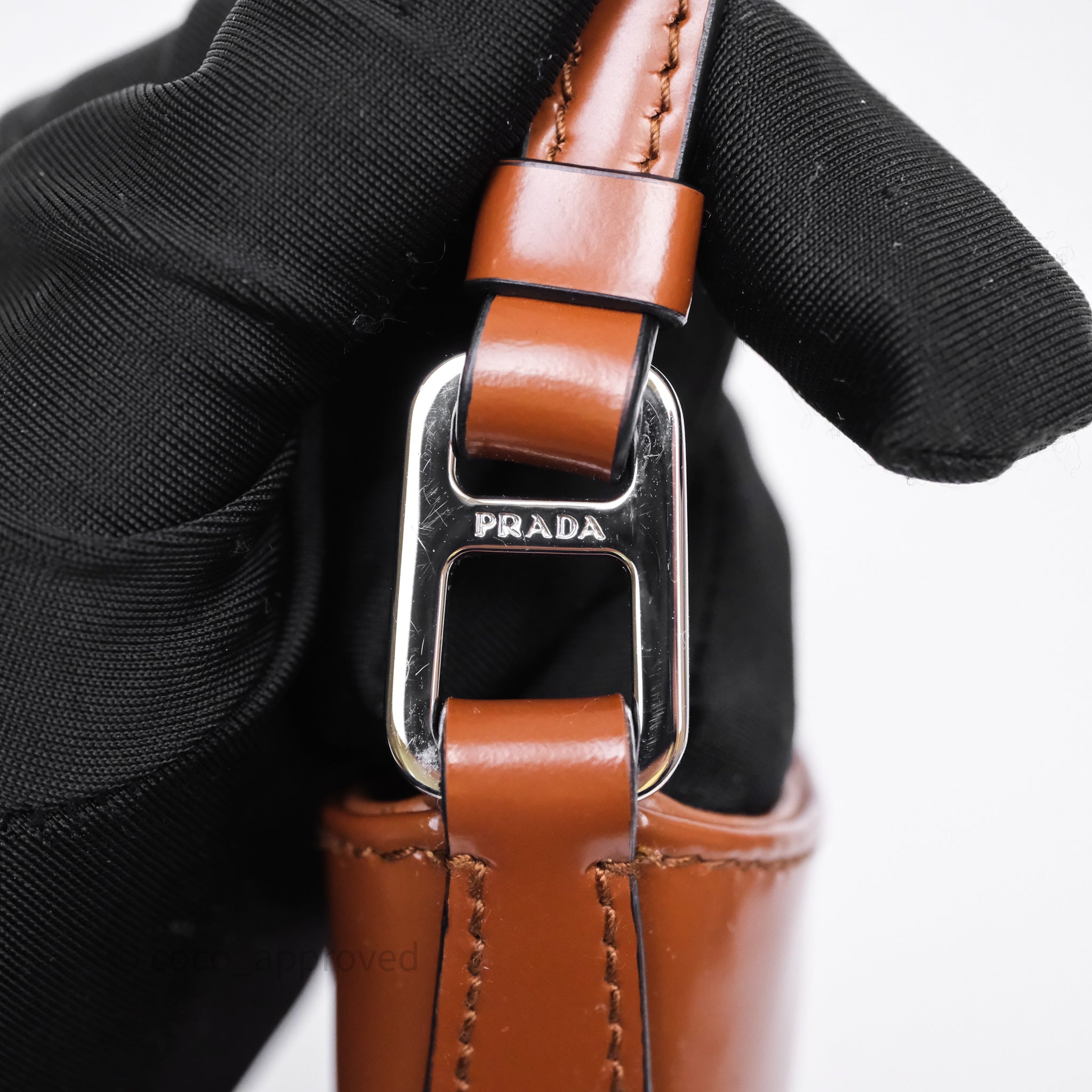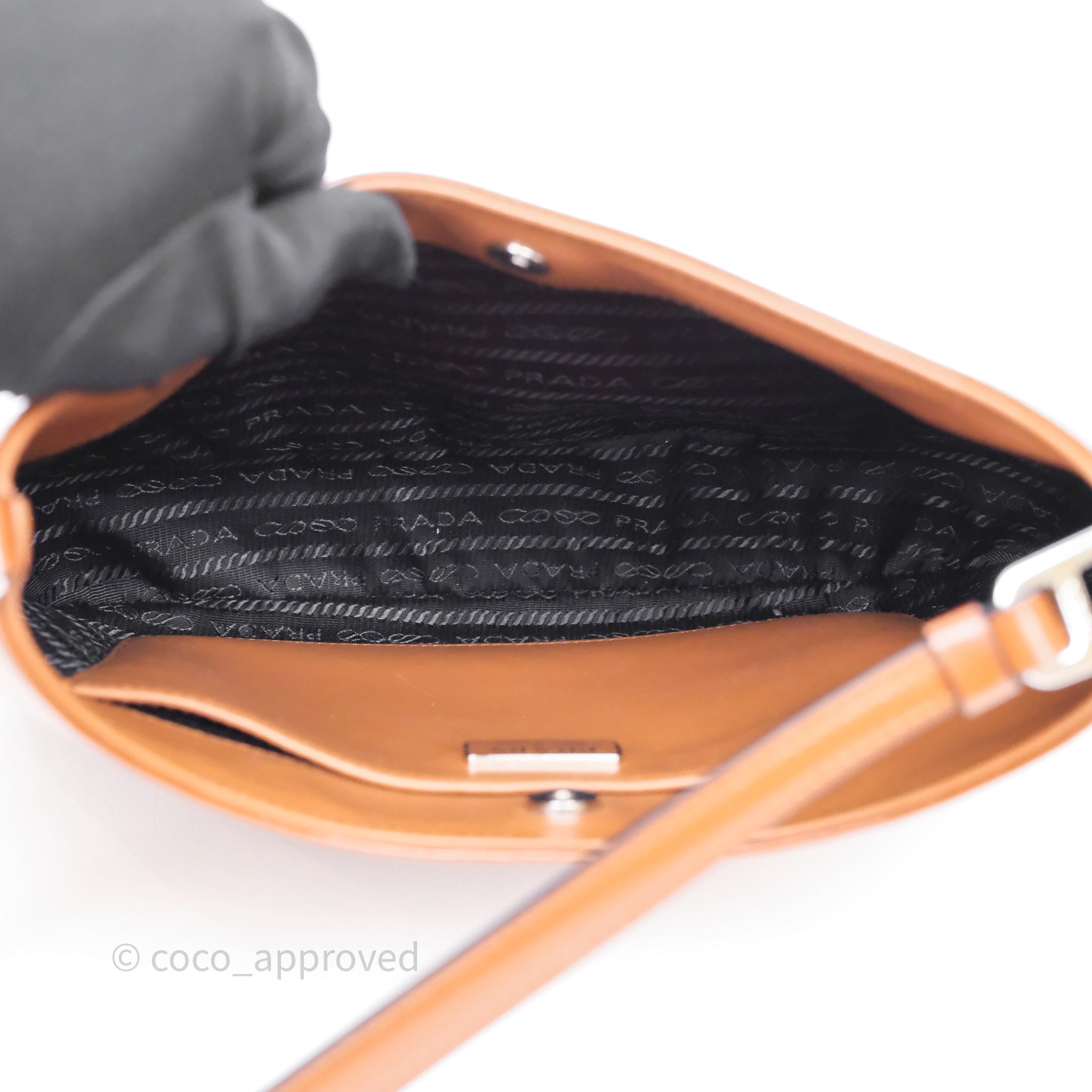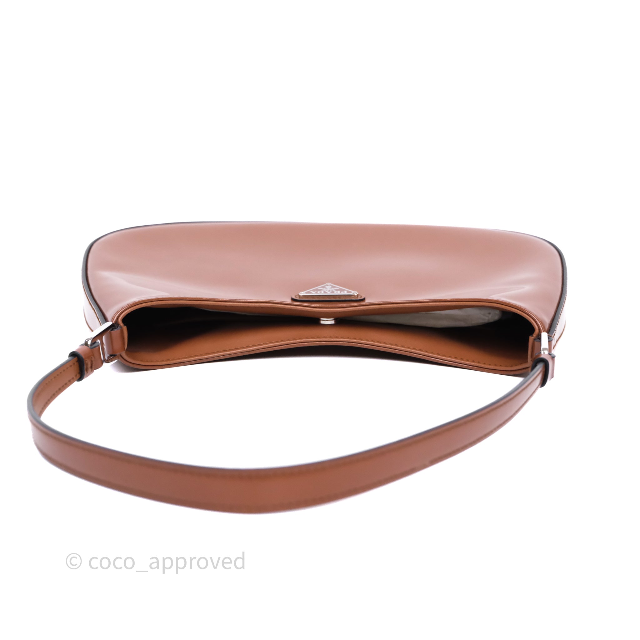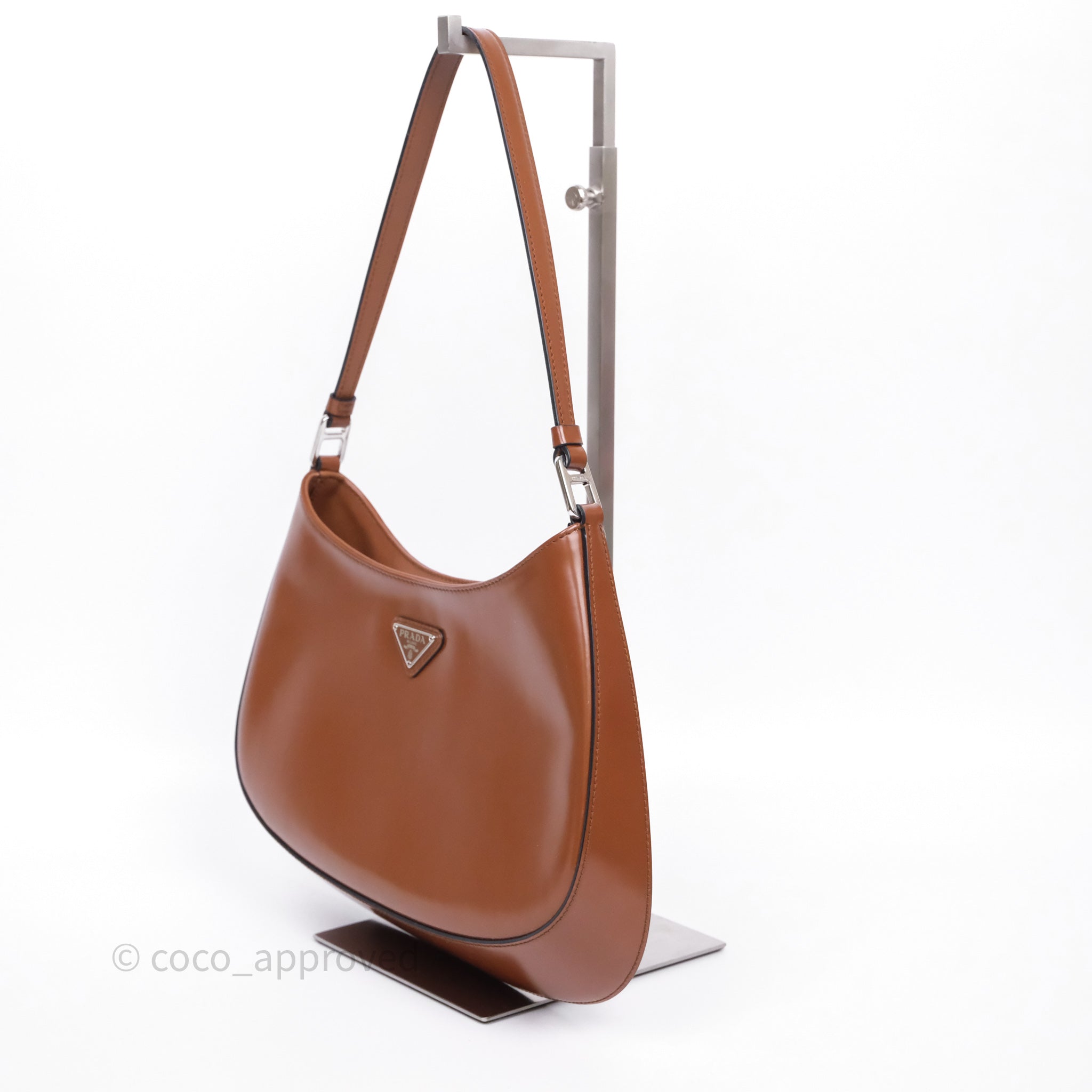Prada Cleo Brushed Leather Shoulder Bag Brown