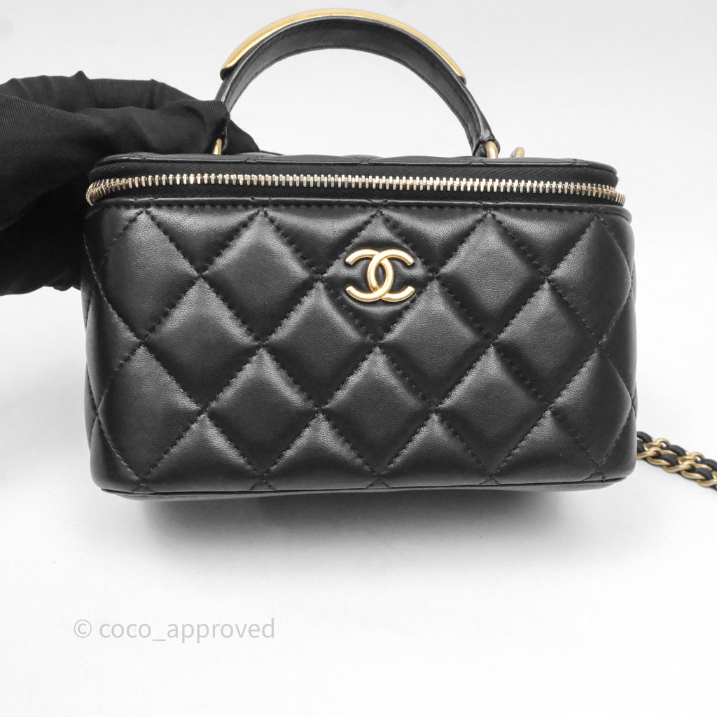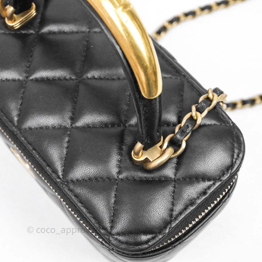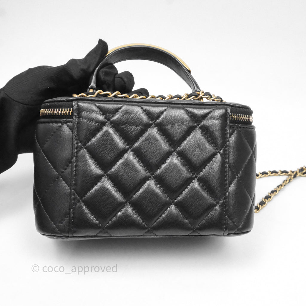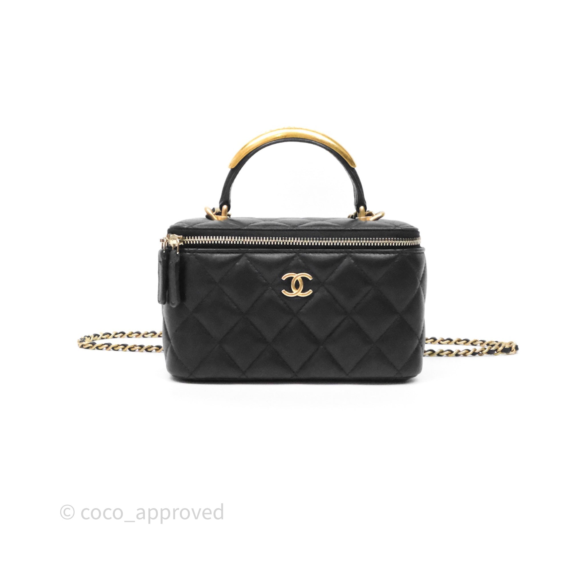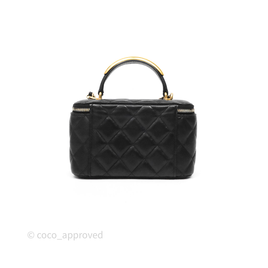 Chanel Vanity Rectangular Metal Top Handle Black Lambskin Aged Gold Hardware