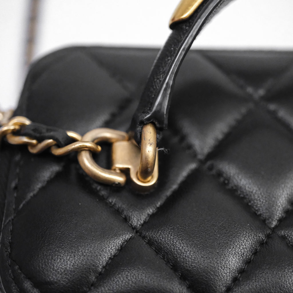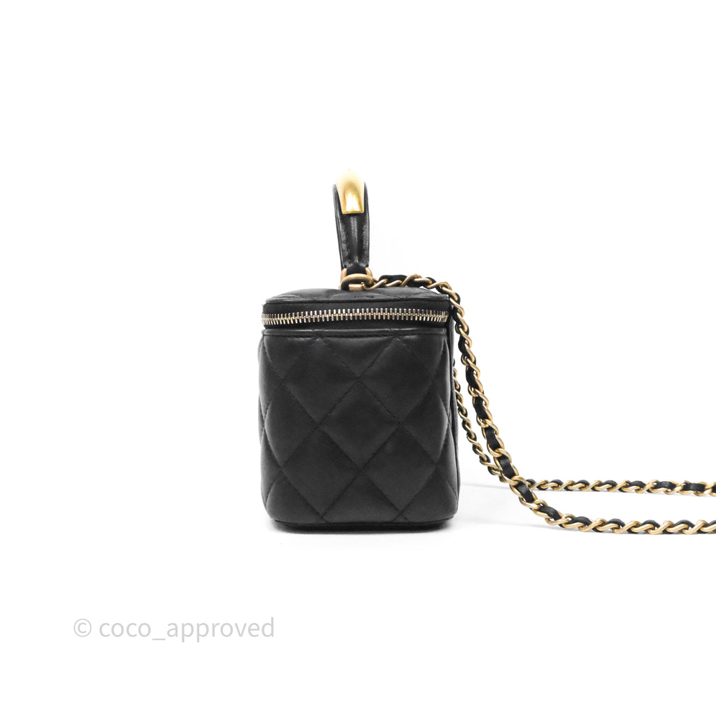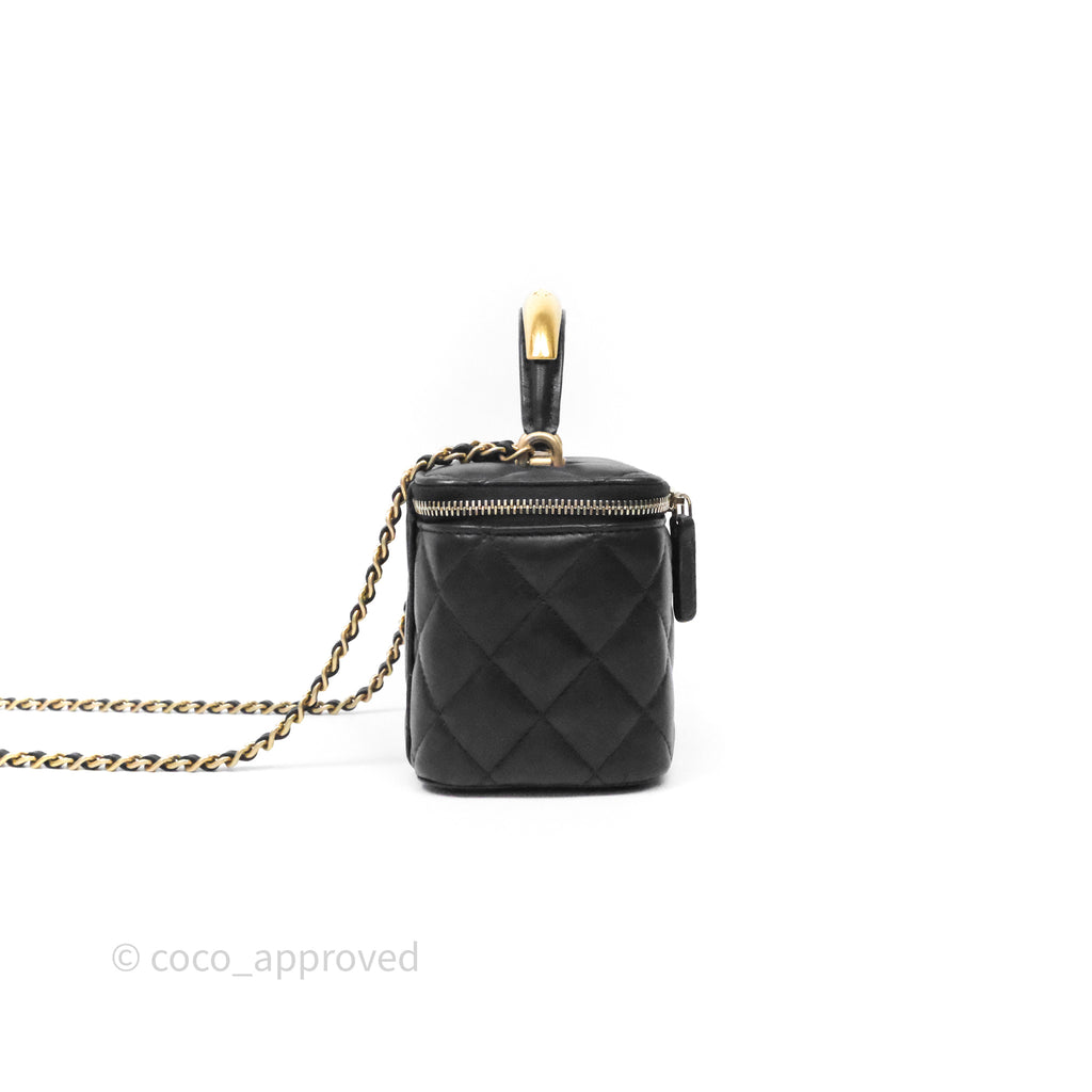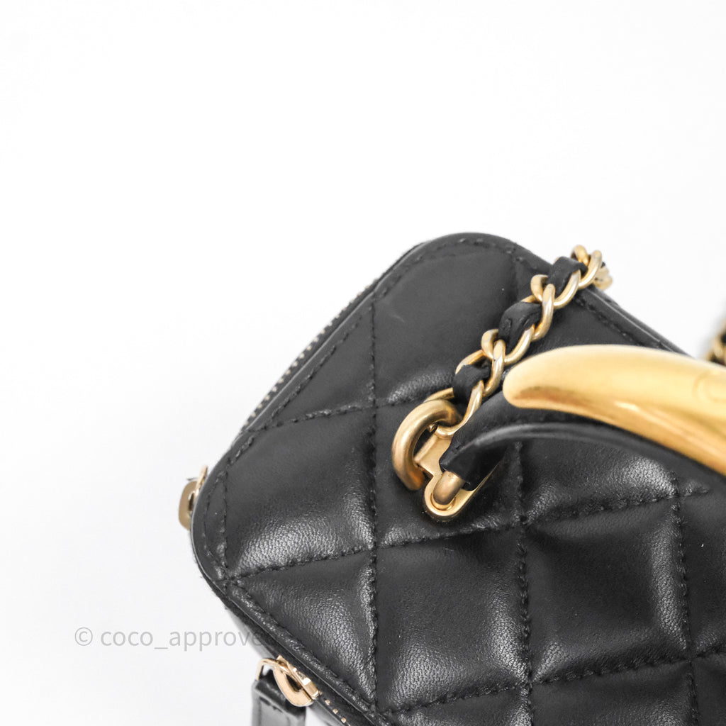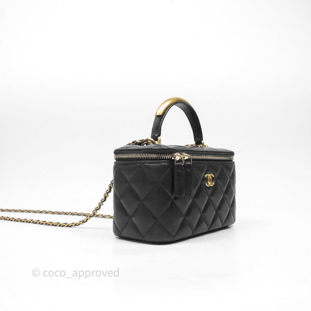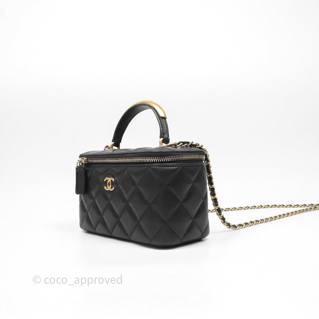 Chanel Vanity Rectangular Metal Top Handle Black Lambskin Aged Gold Hardware