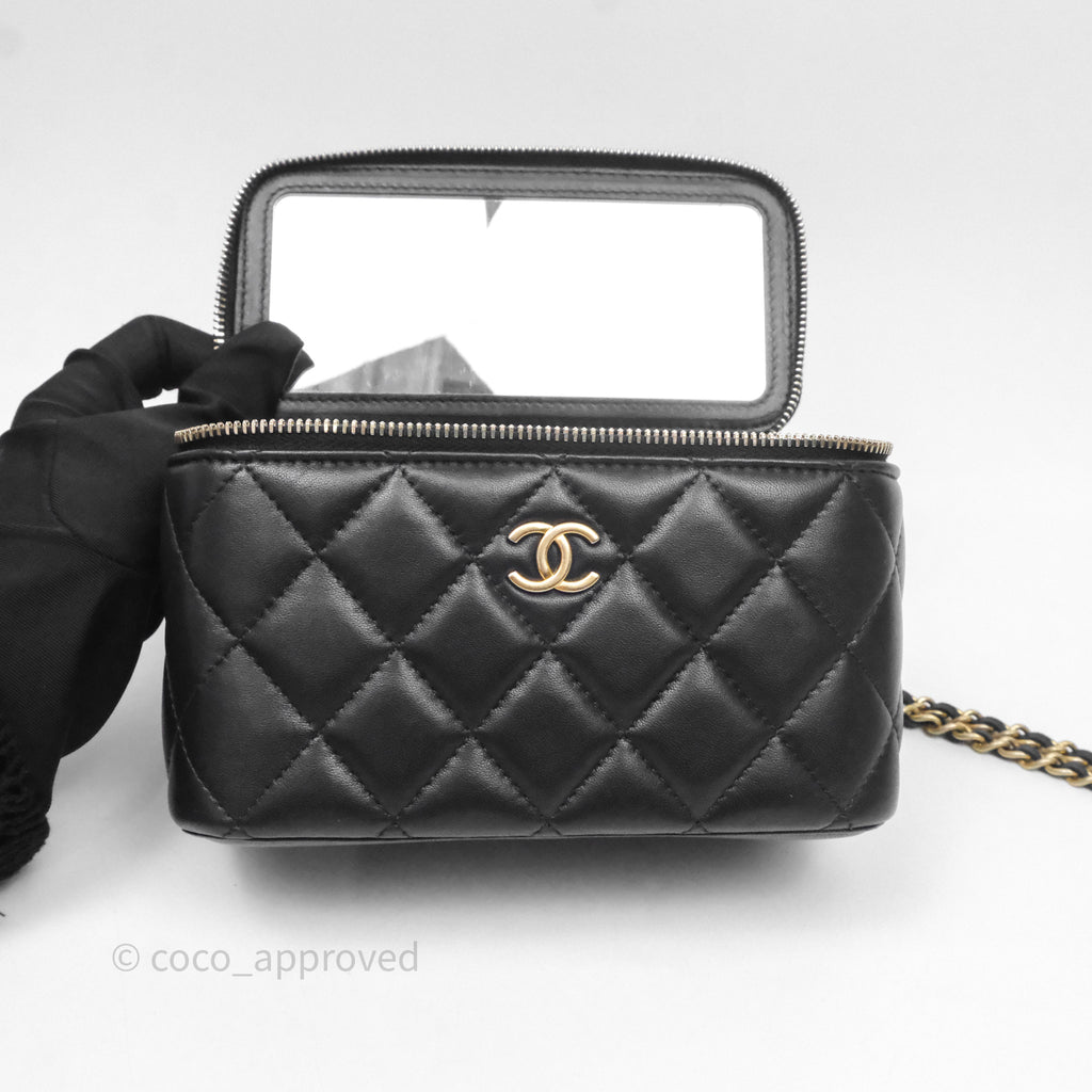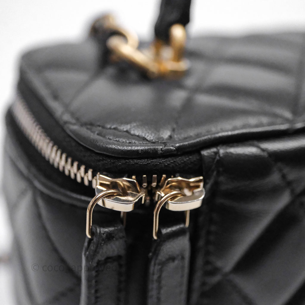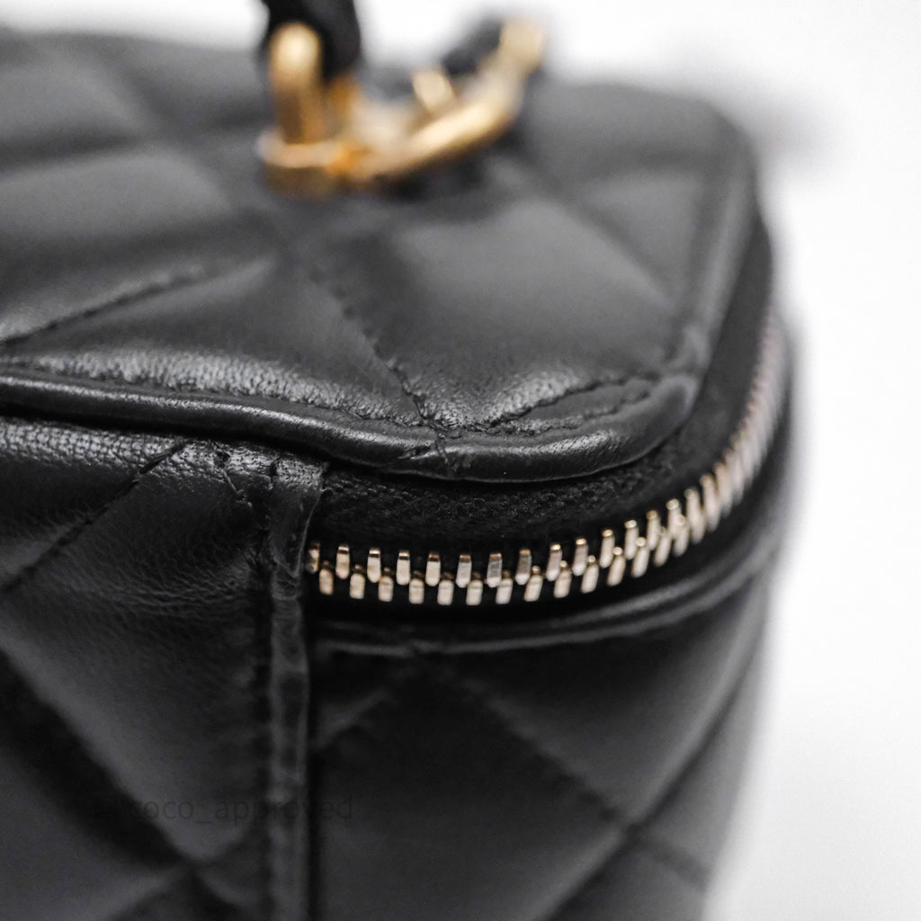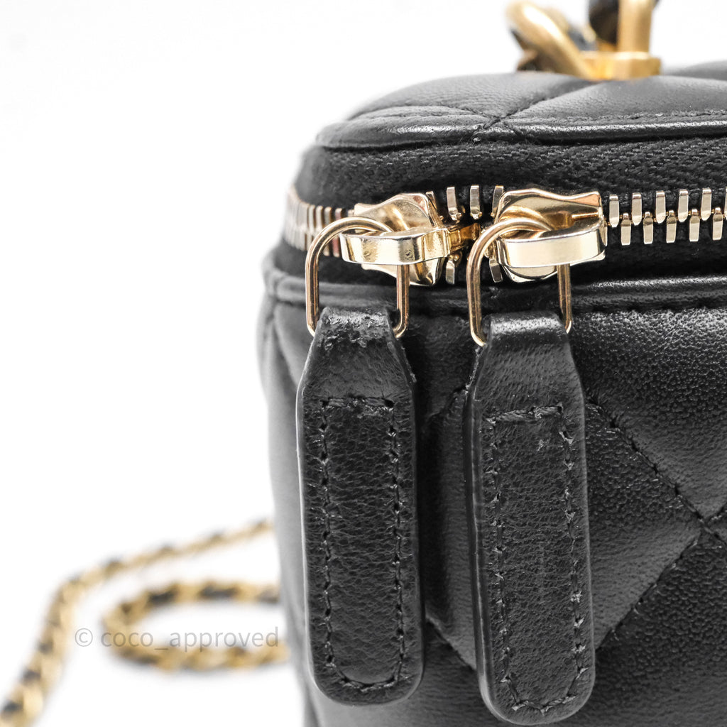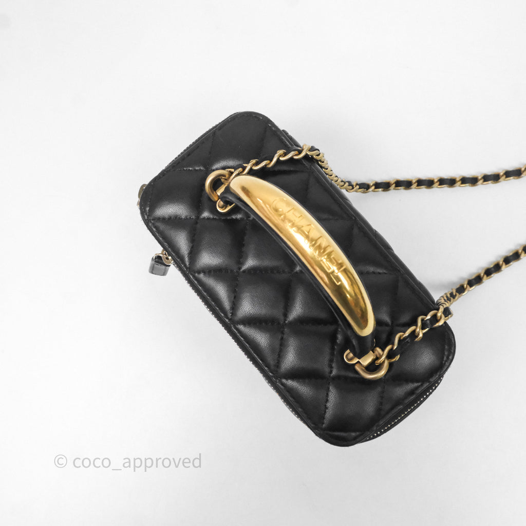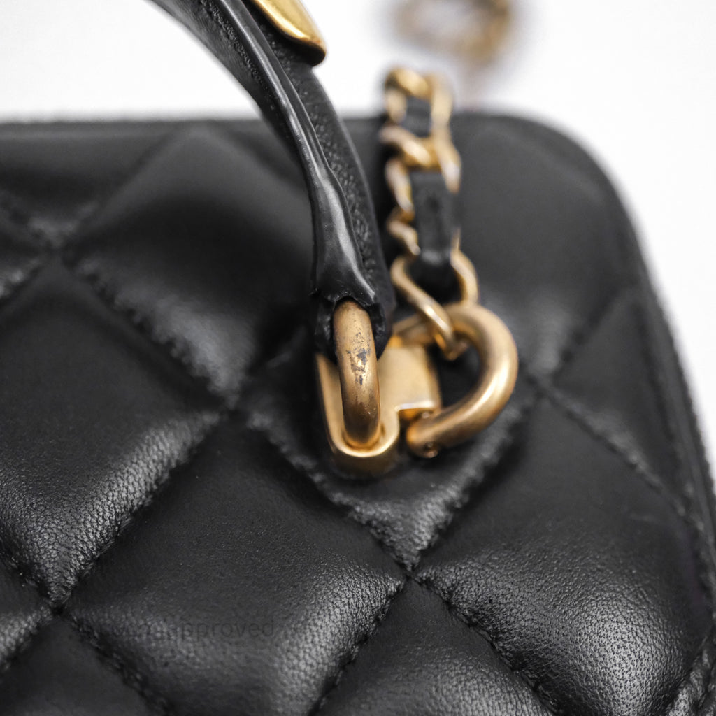 Chanel Vanity Rectangular Metal Top Handle Black Lambskin Aged Gold Hardware