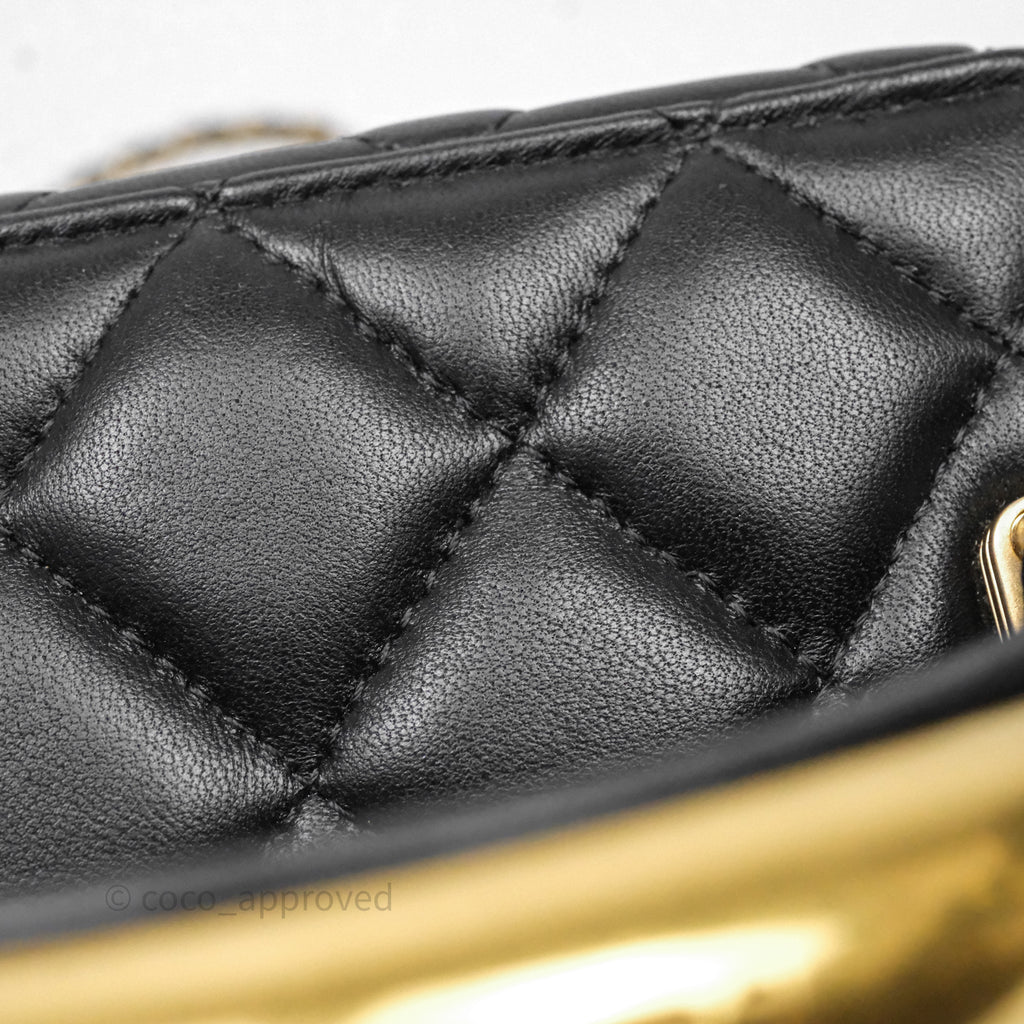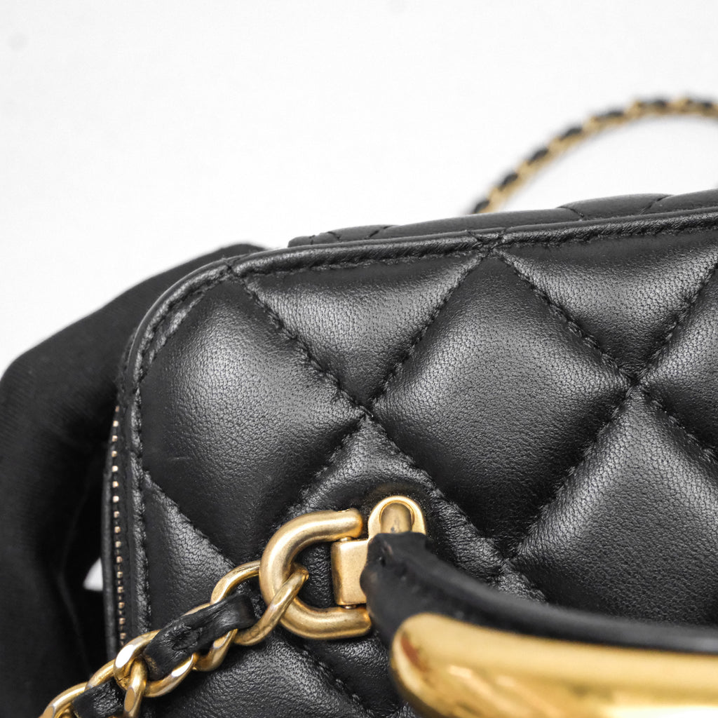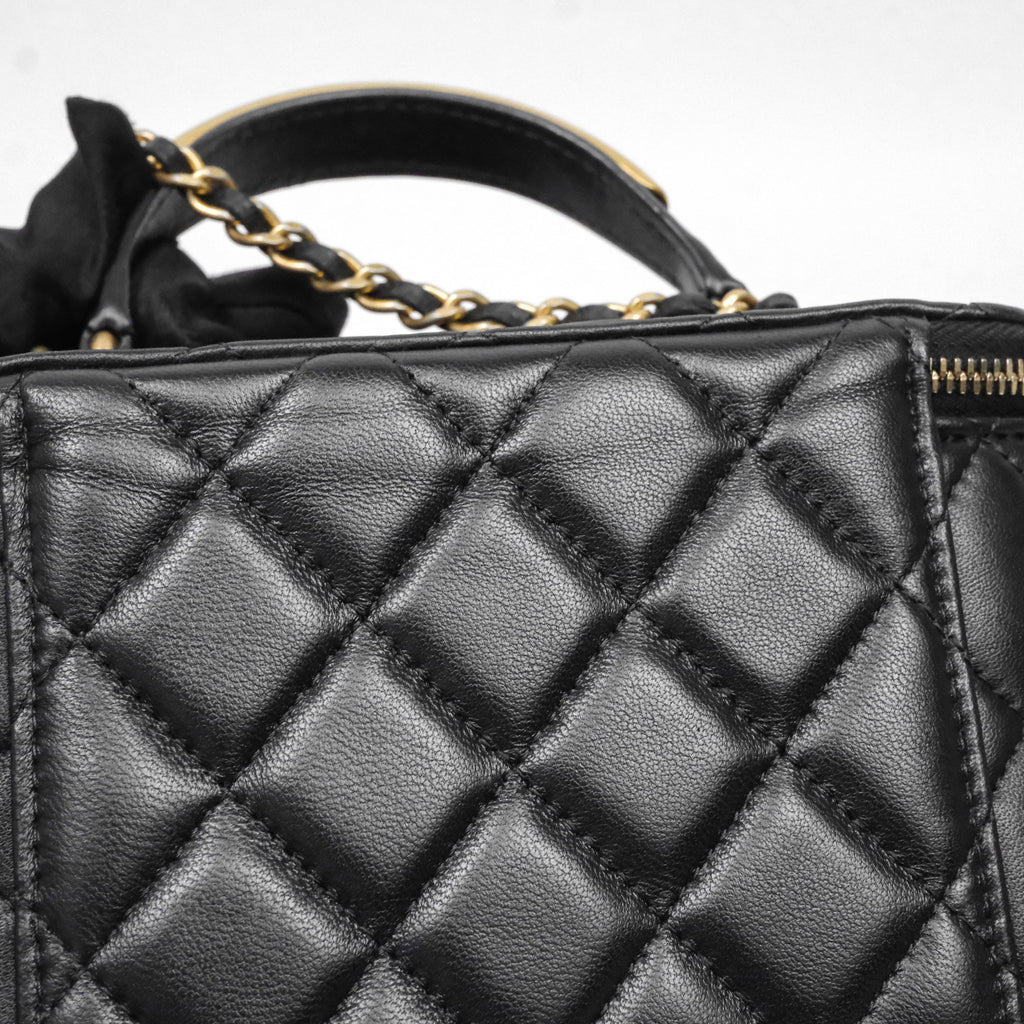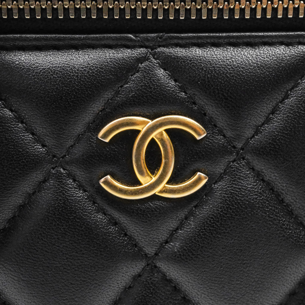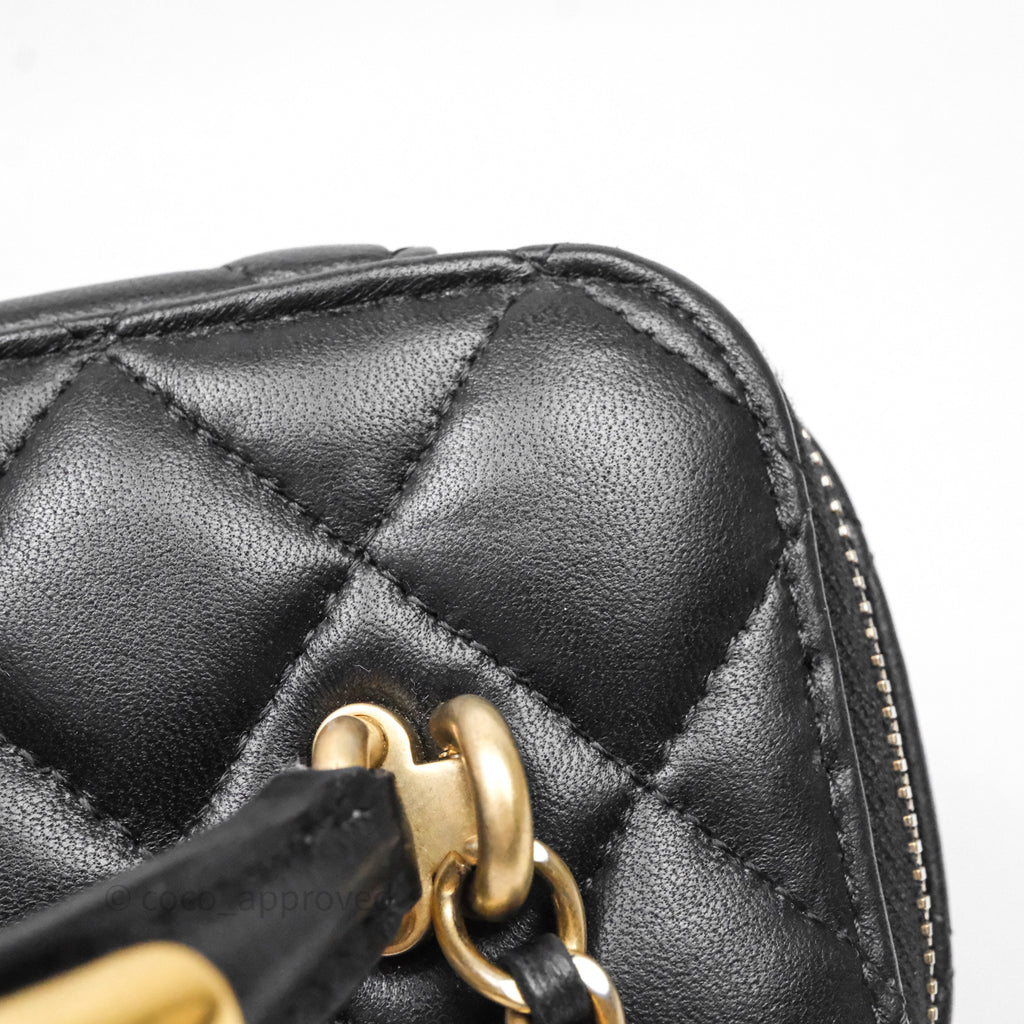Chanel Vanity Rectangular Metal Top Handle Black Lambskin Aged Gold Hardware
