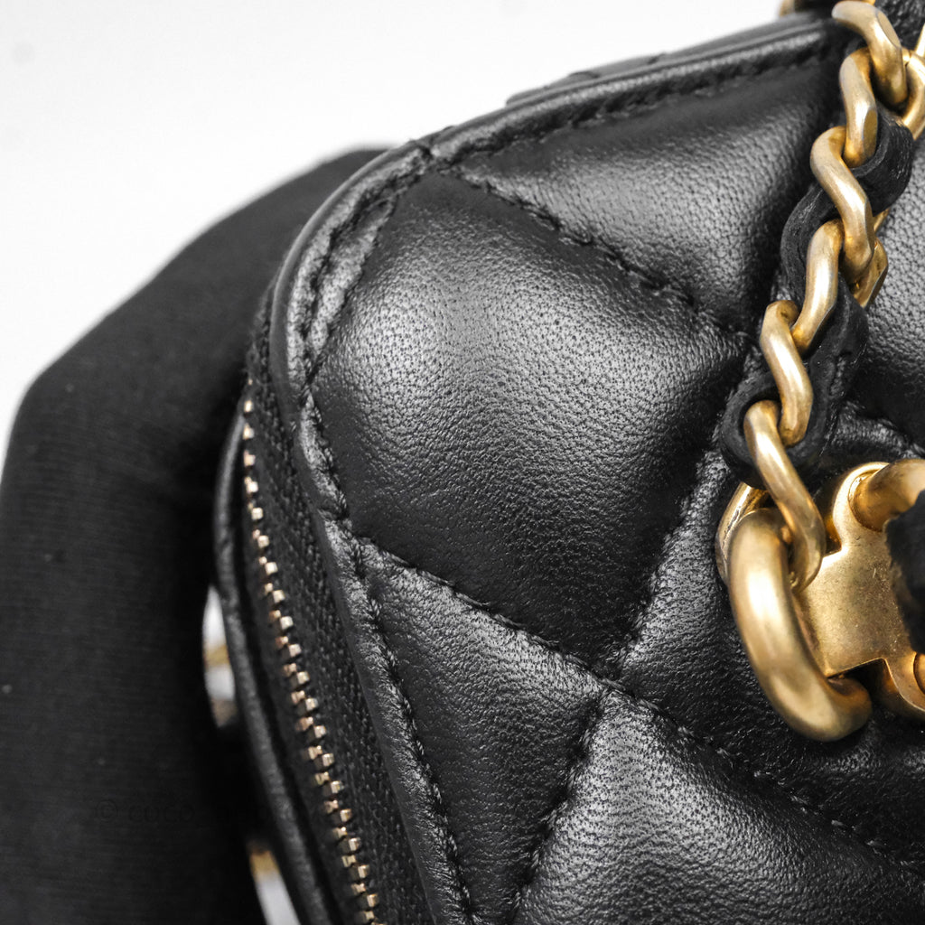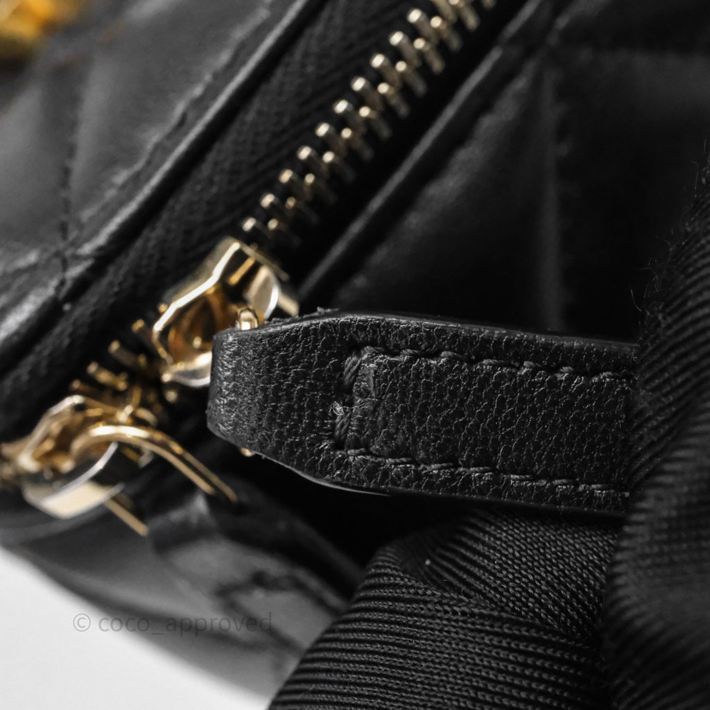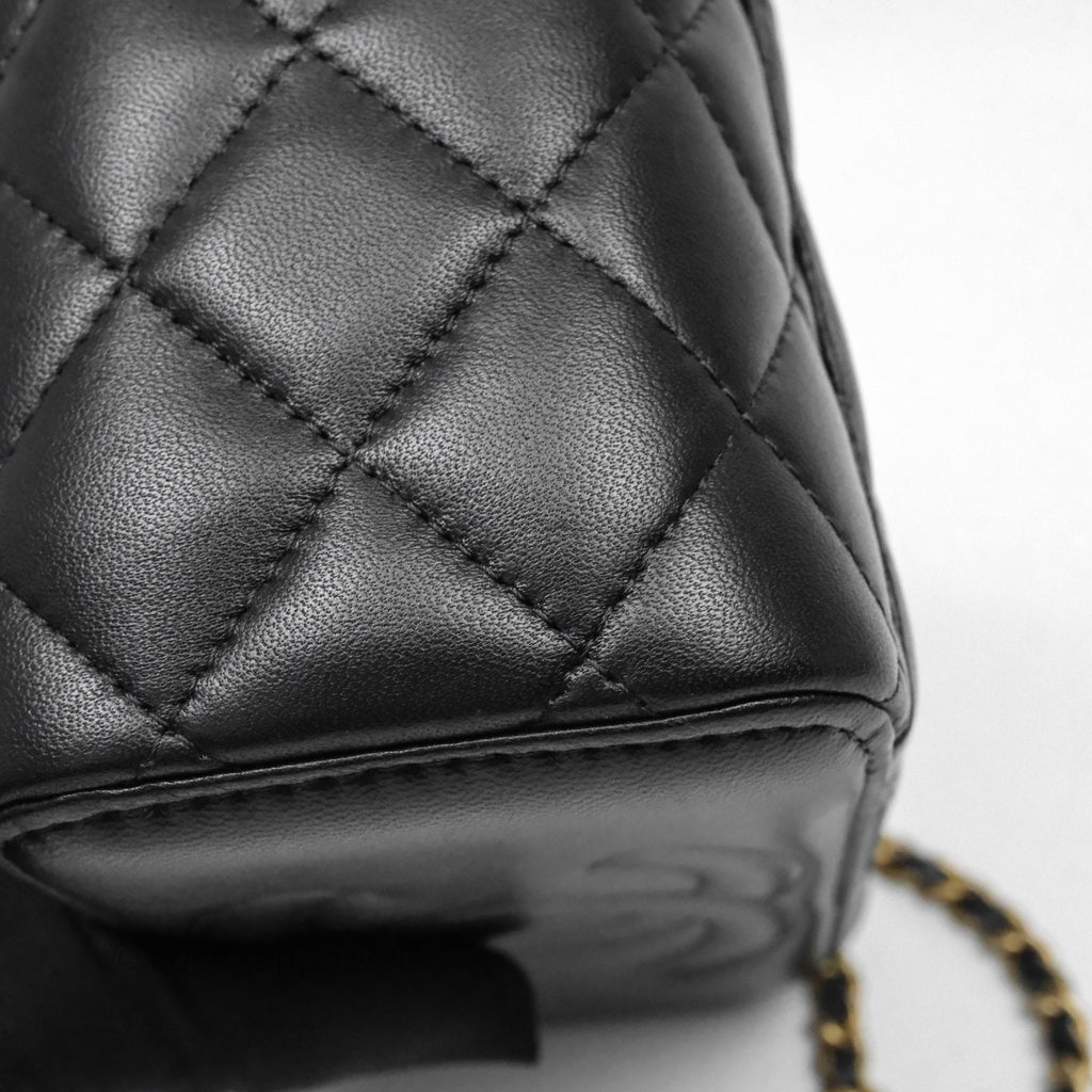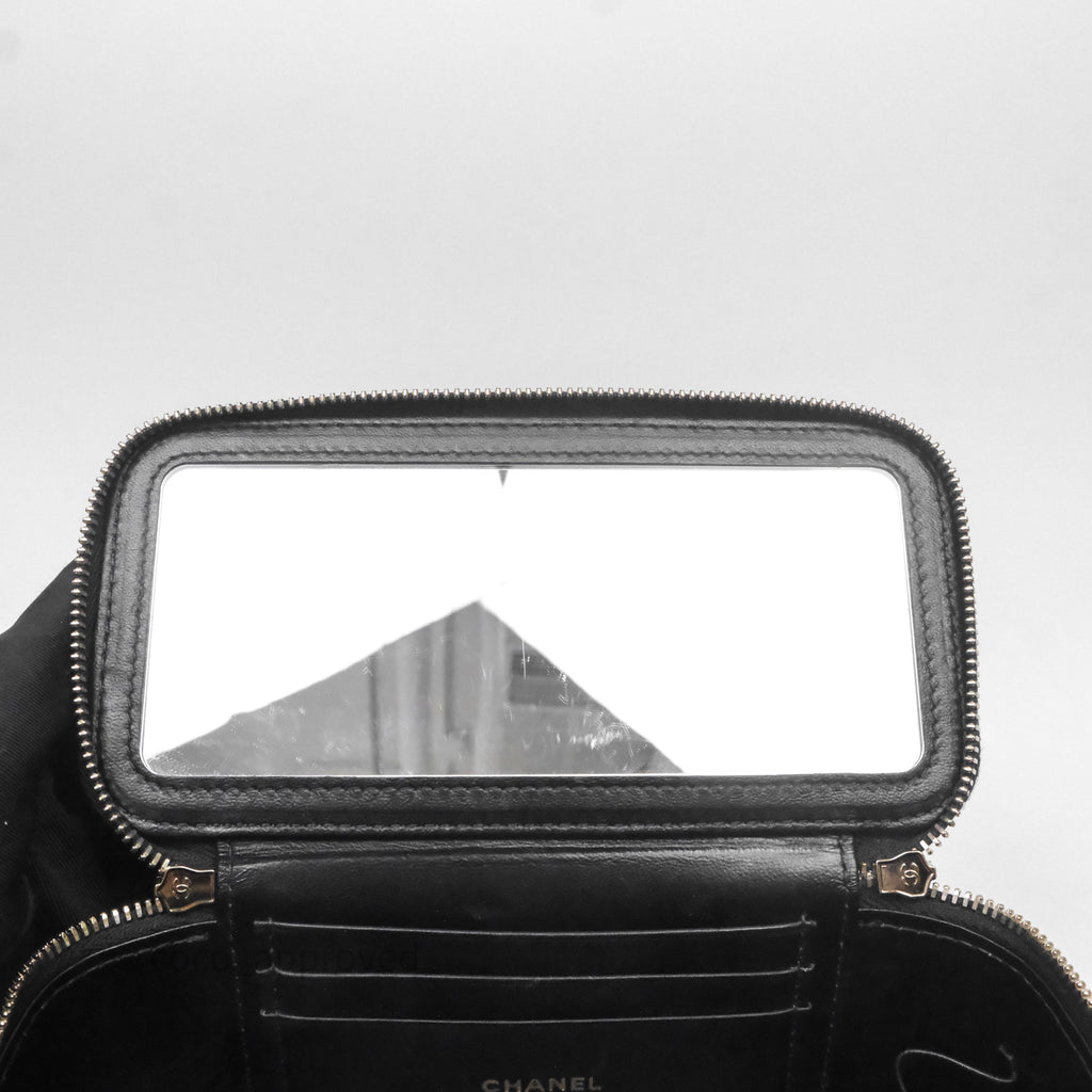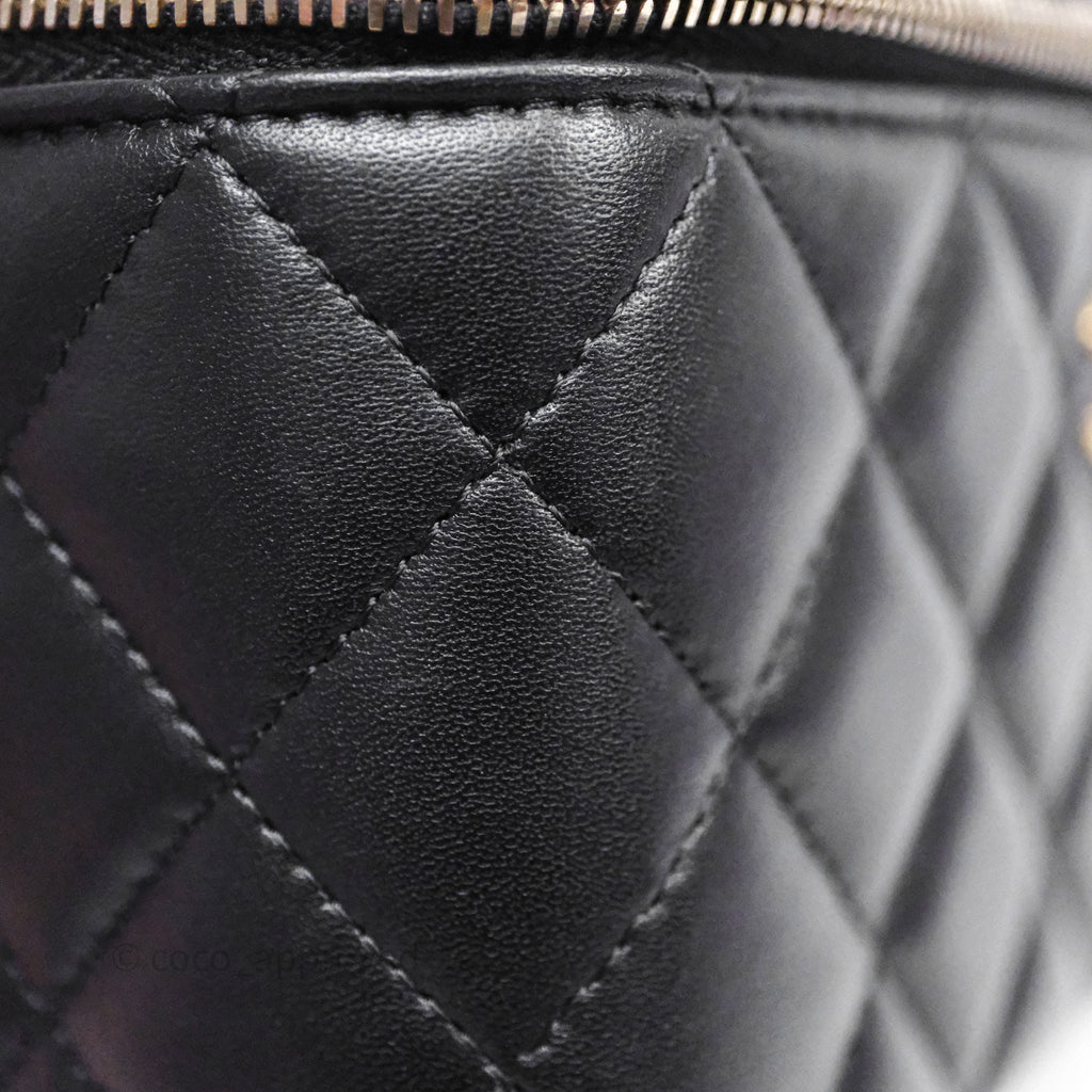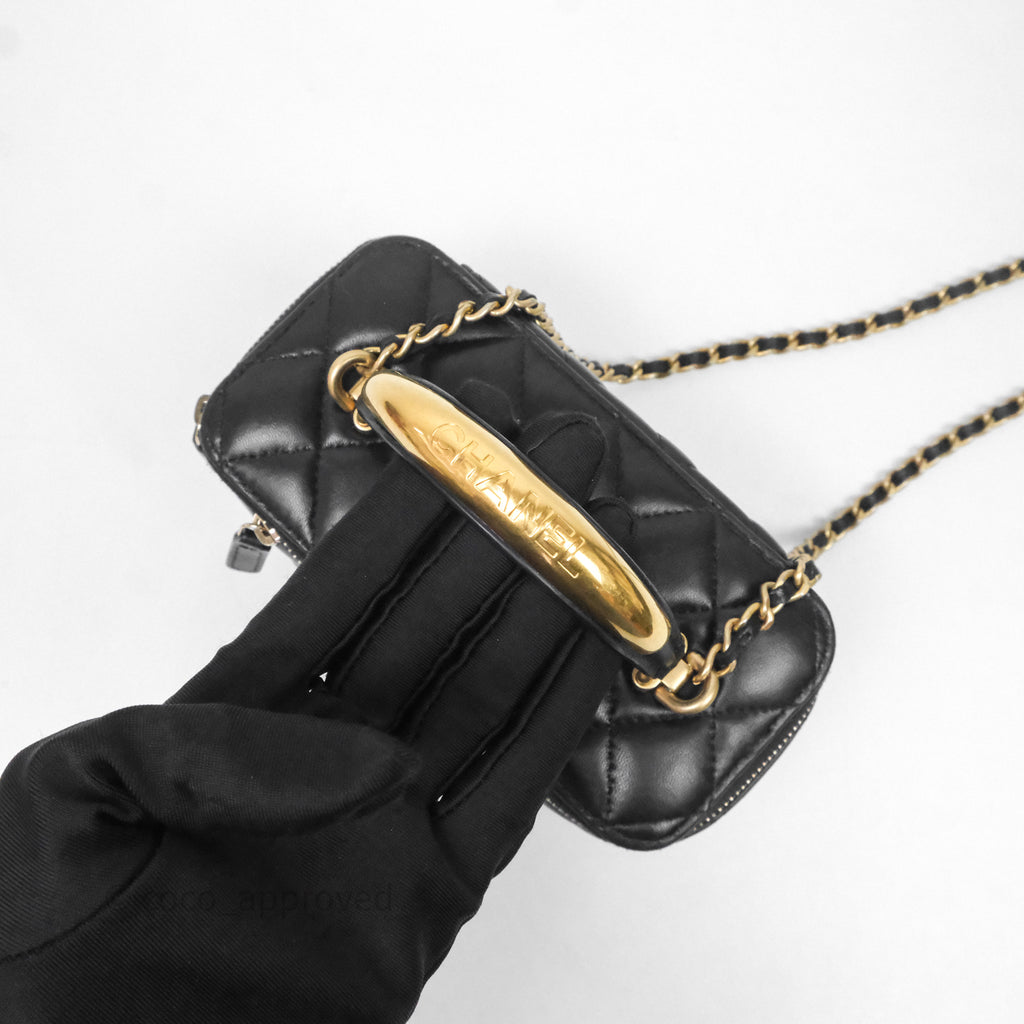 Chanel Vanity Rectangular Metal Top Handle Black Lambskin Aged Gold Hardware