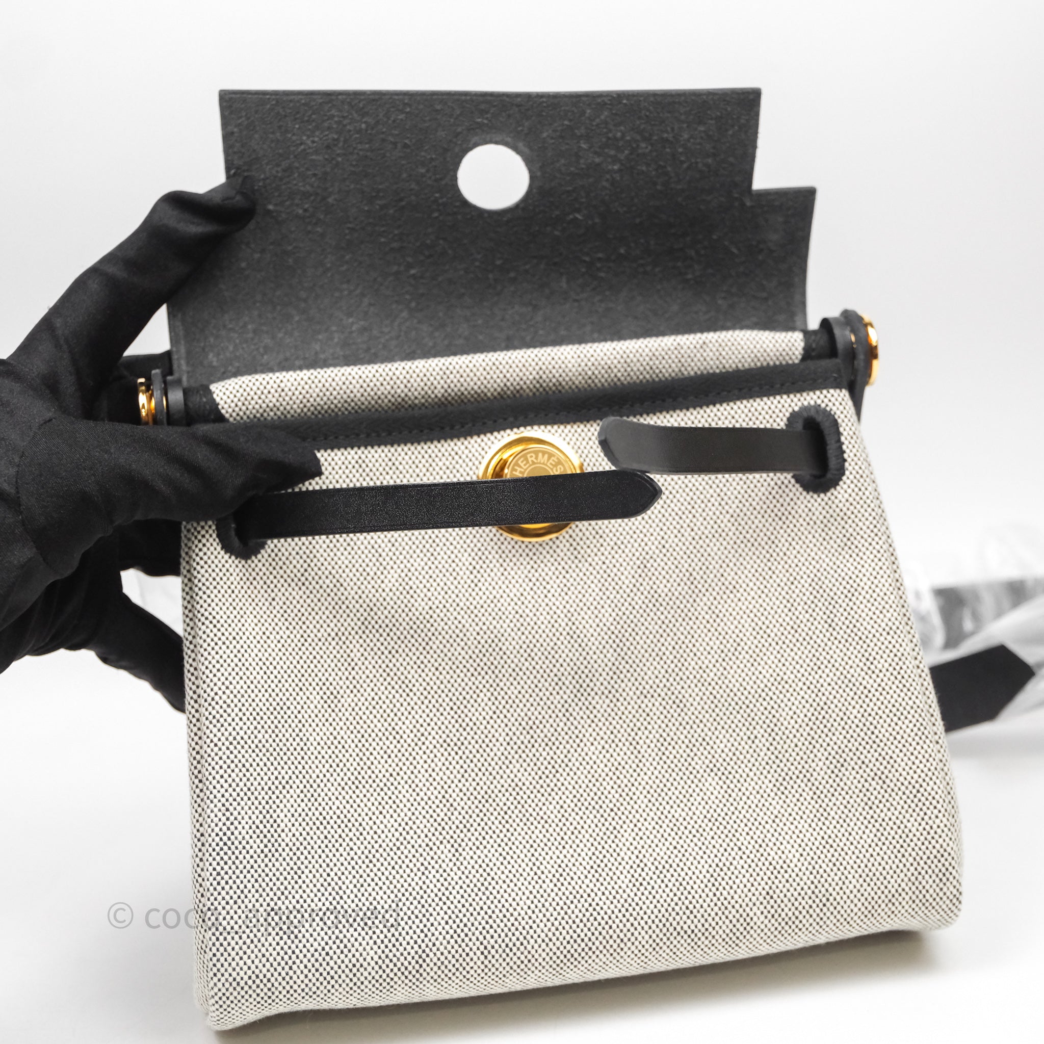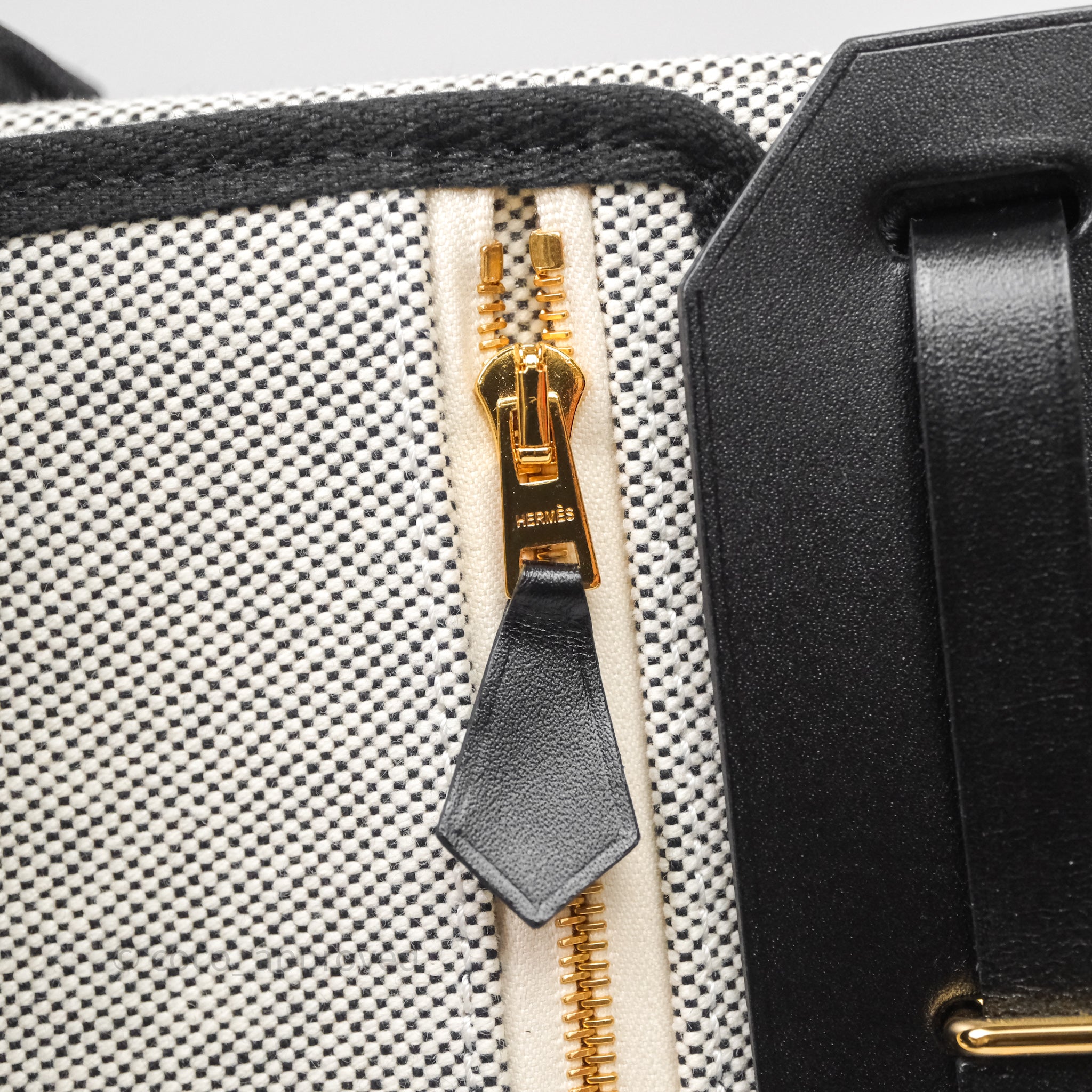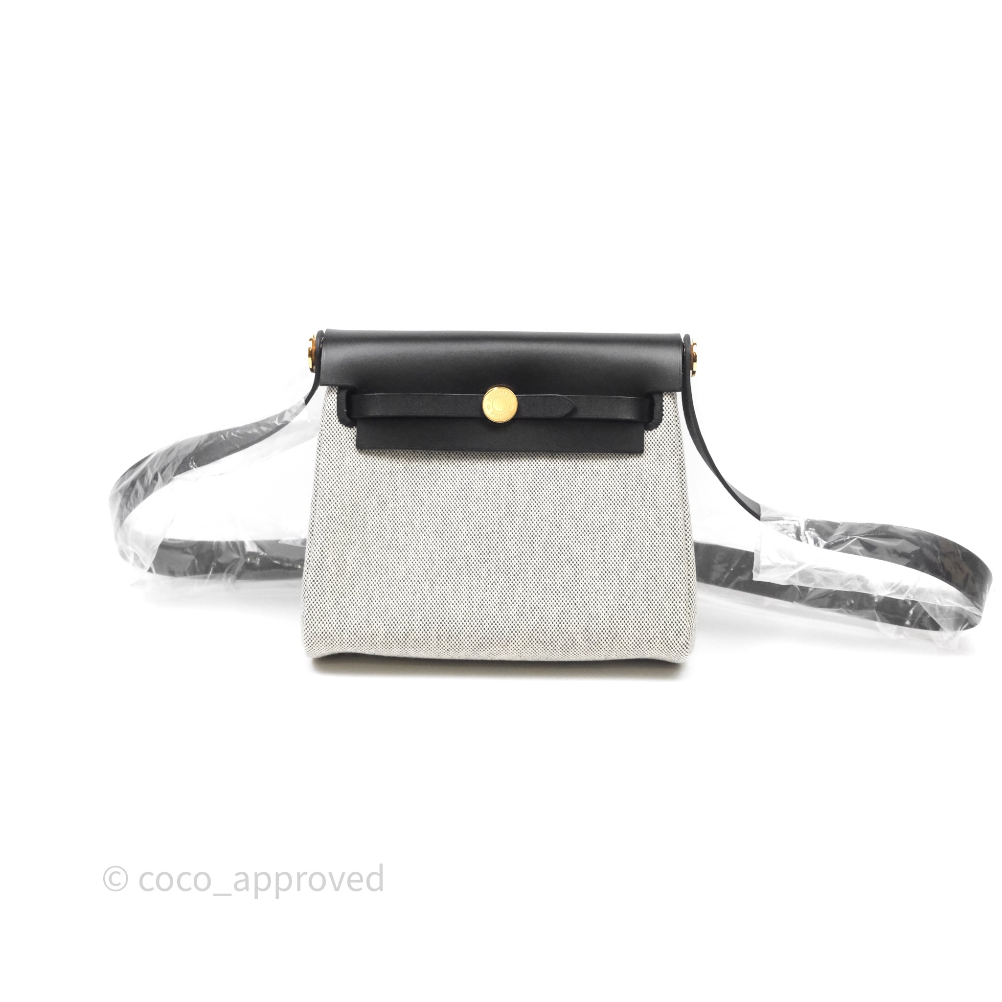 Hermès Herbag Zip 20 Mini Ecru-Noir Canvas Gold Hardware