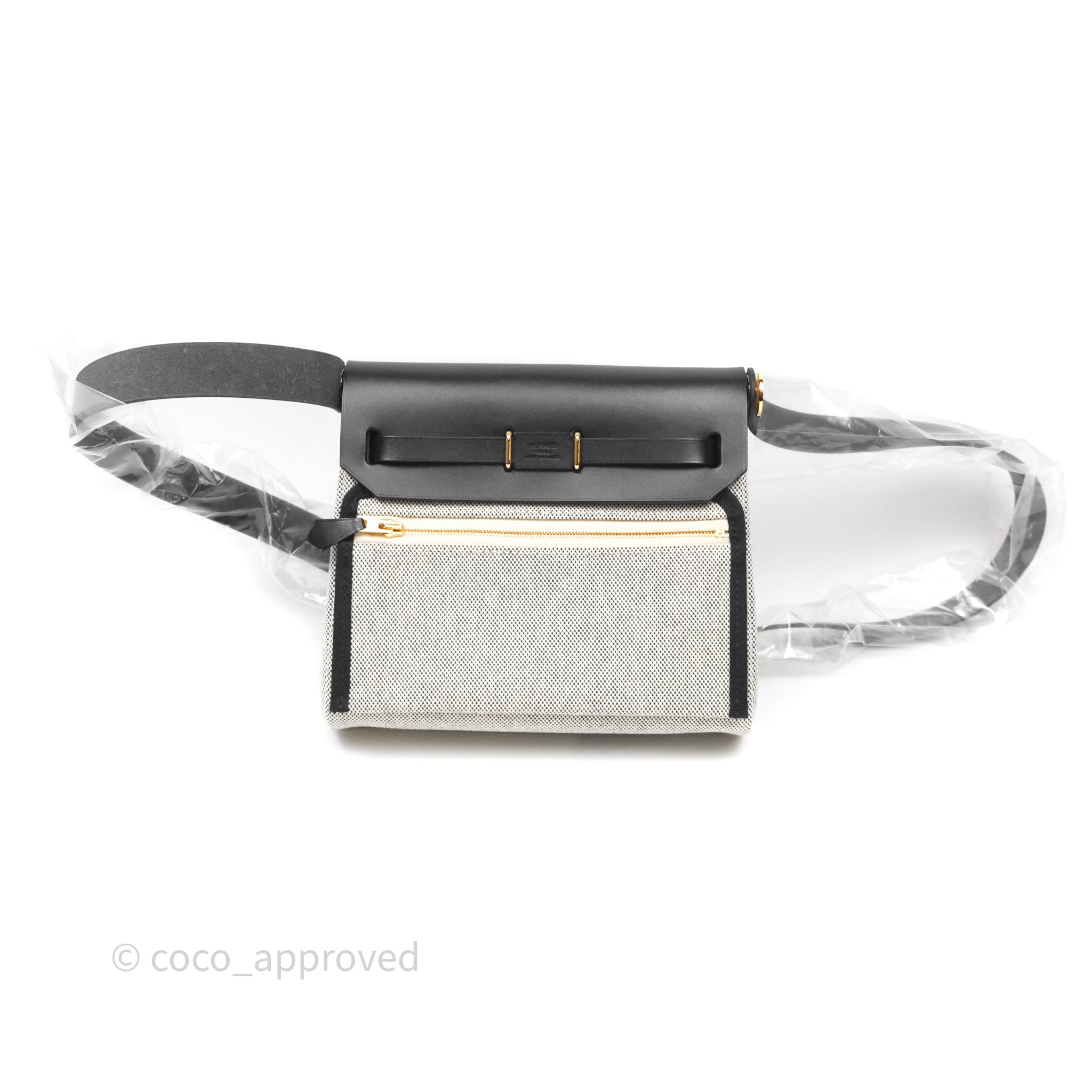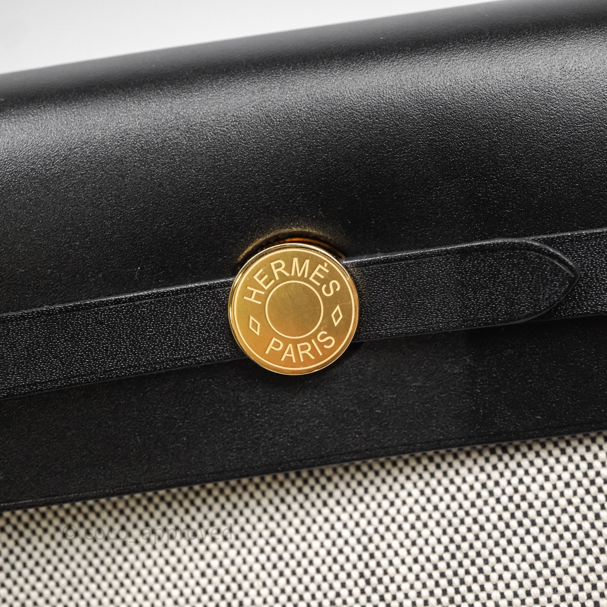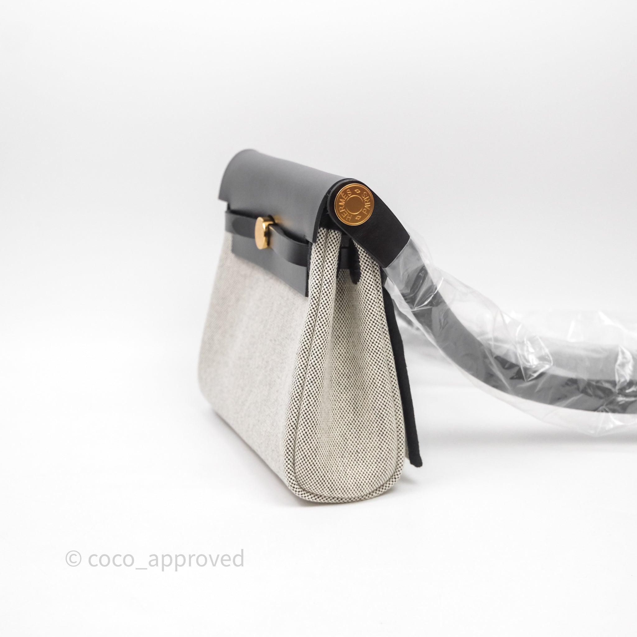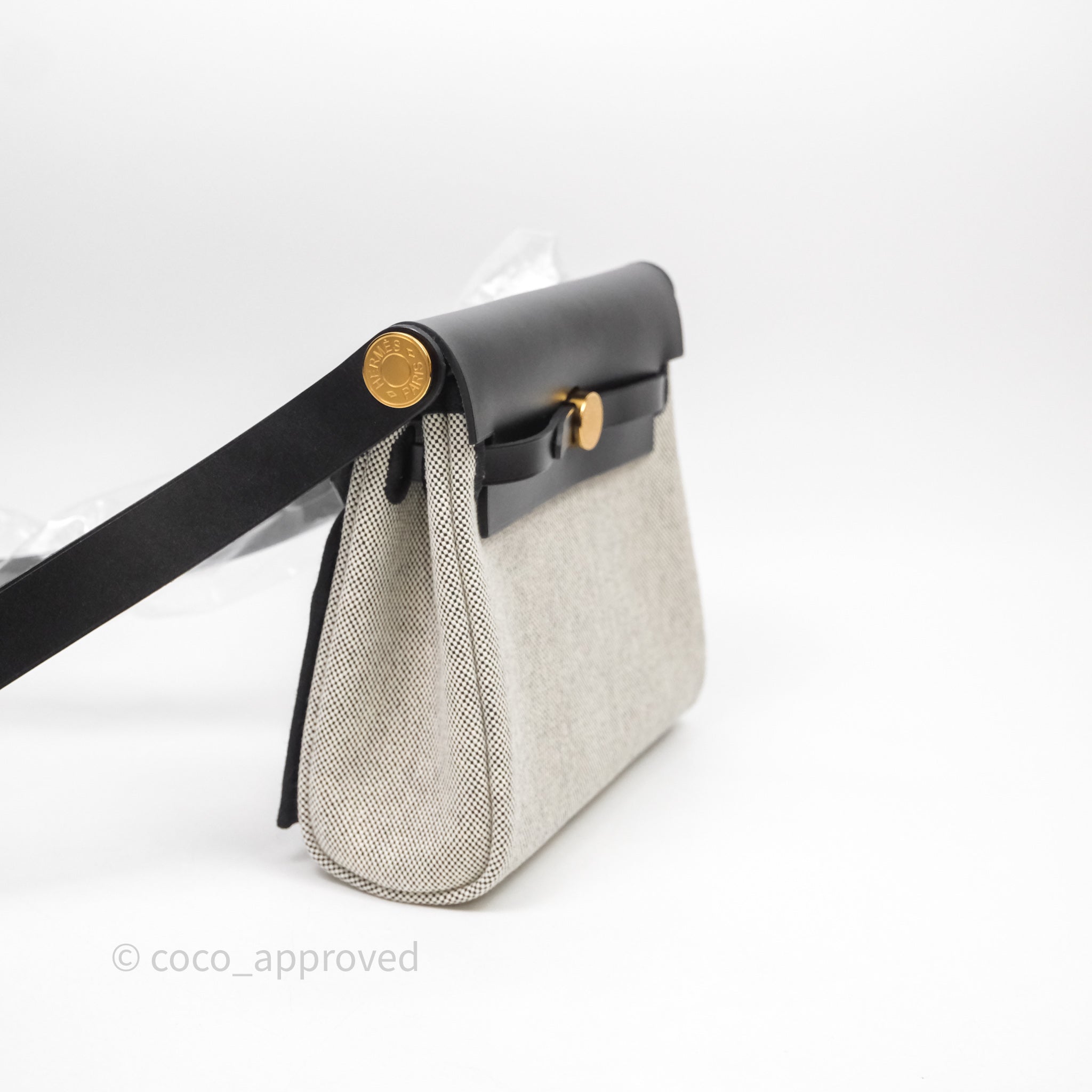 Hermès Herbag Zip 20 Mini Ecru-Noir Canvas Gold Hardware