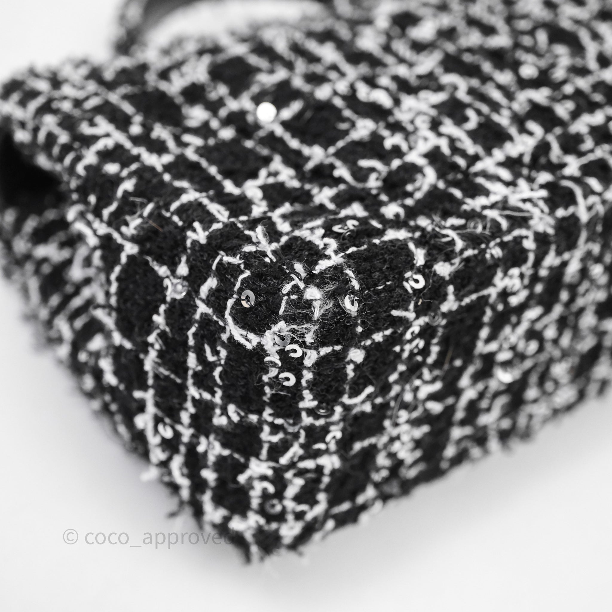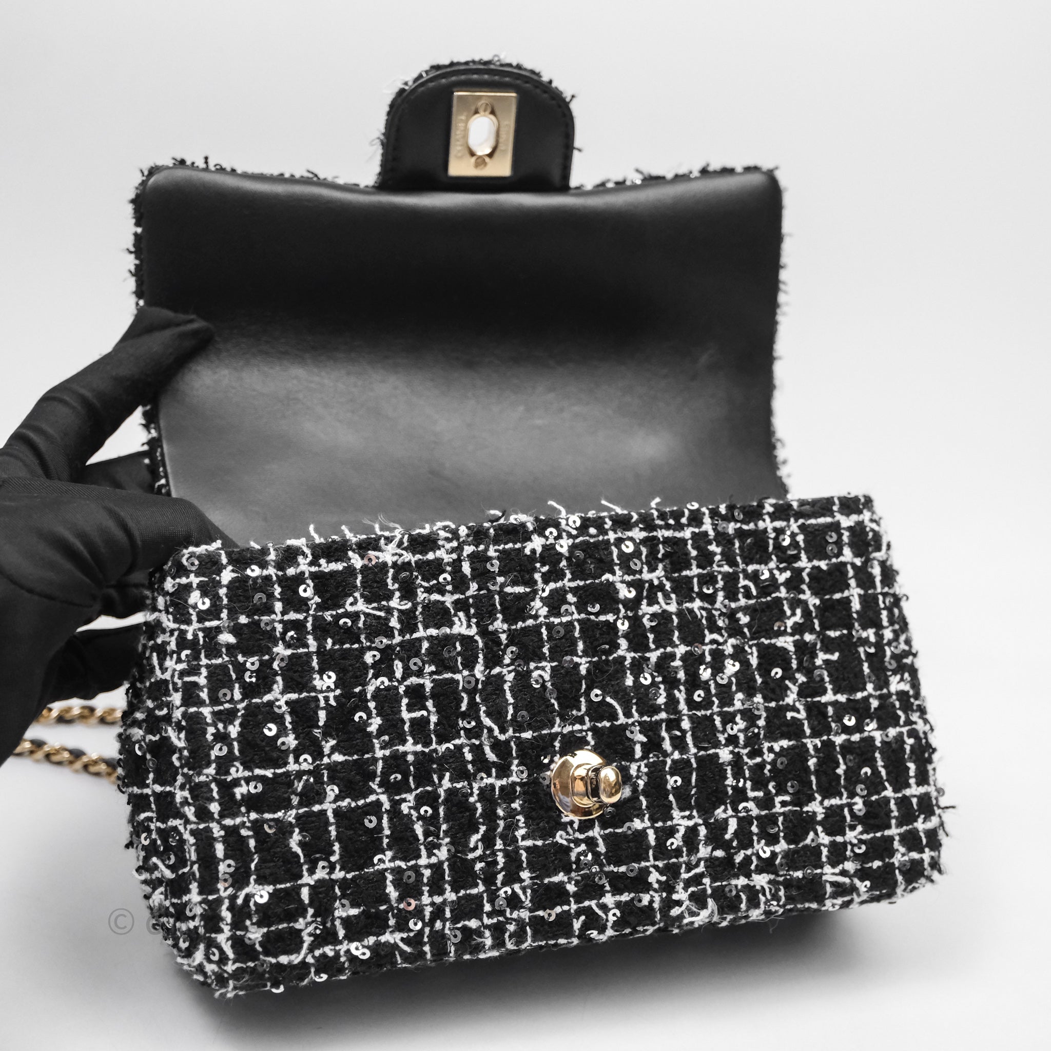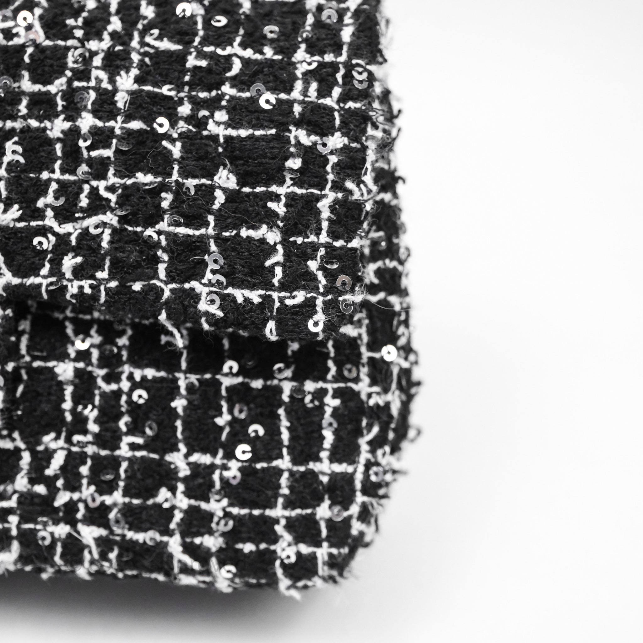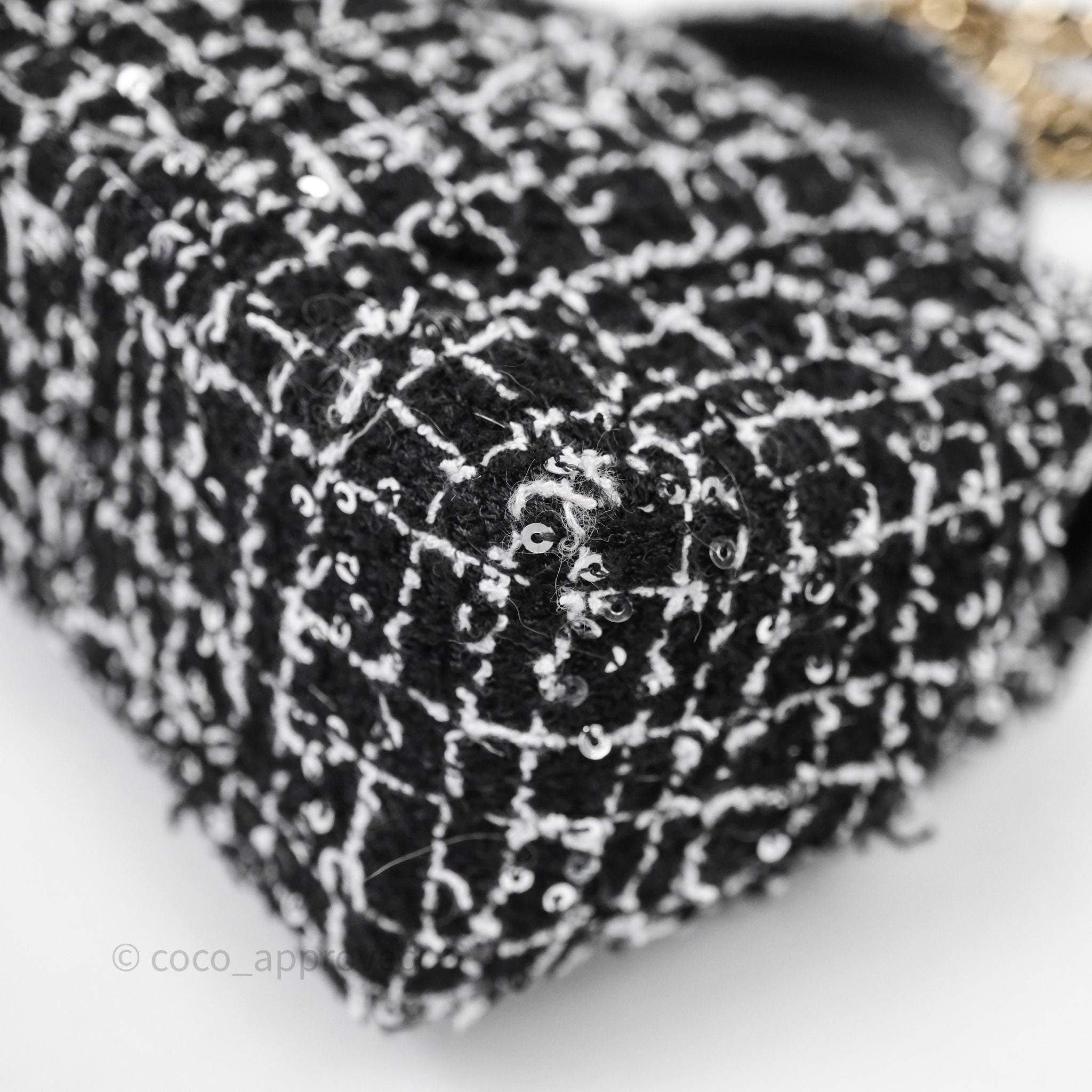 Chanel Top Handle Mini Rectangular Flap Black/ White Sequin Tweed Gold Hardware