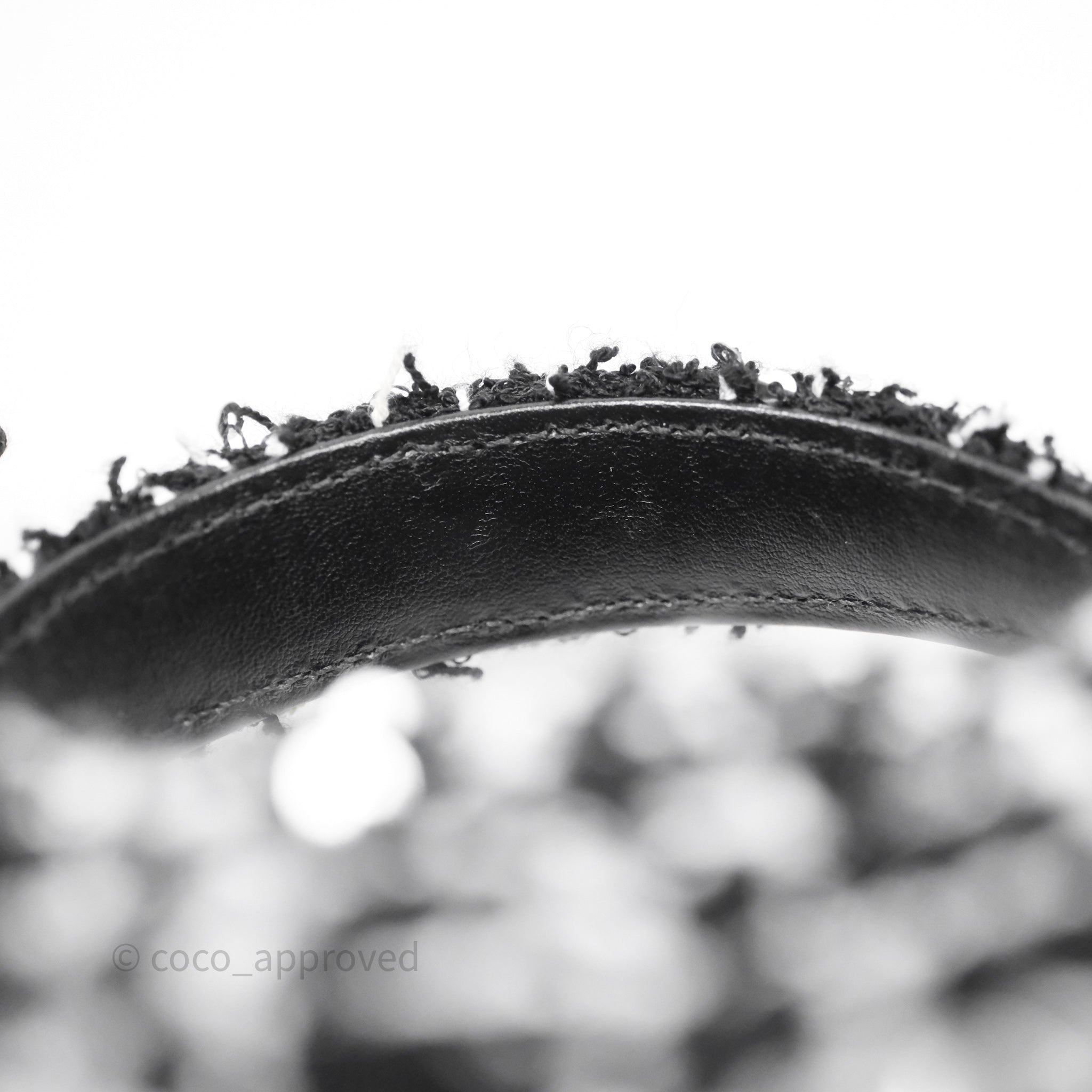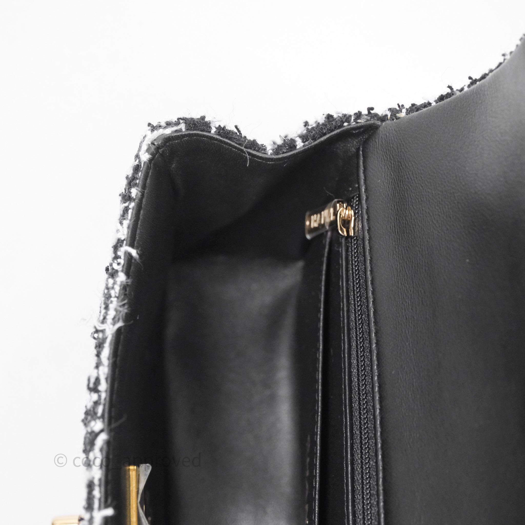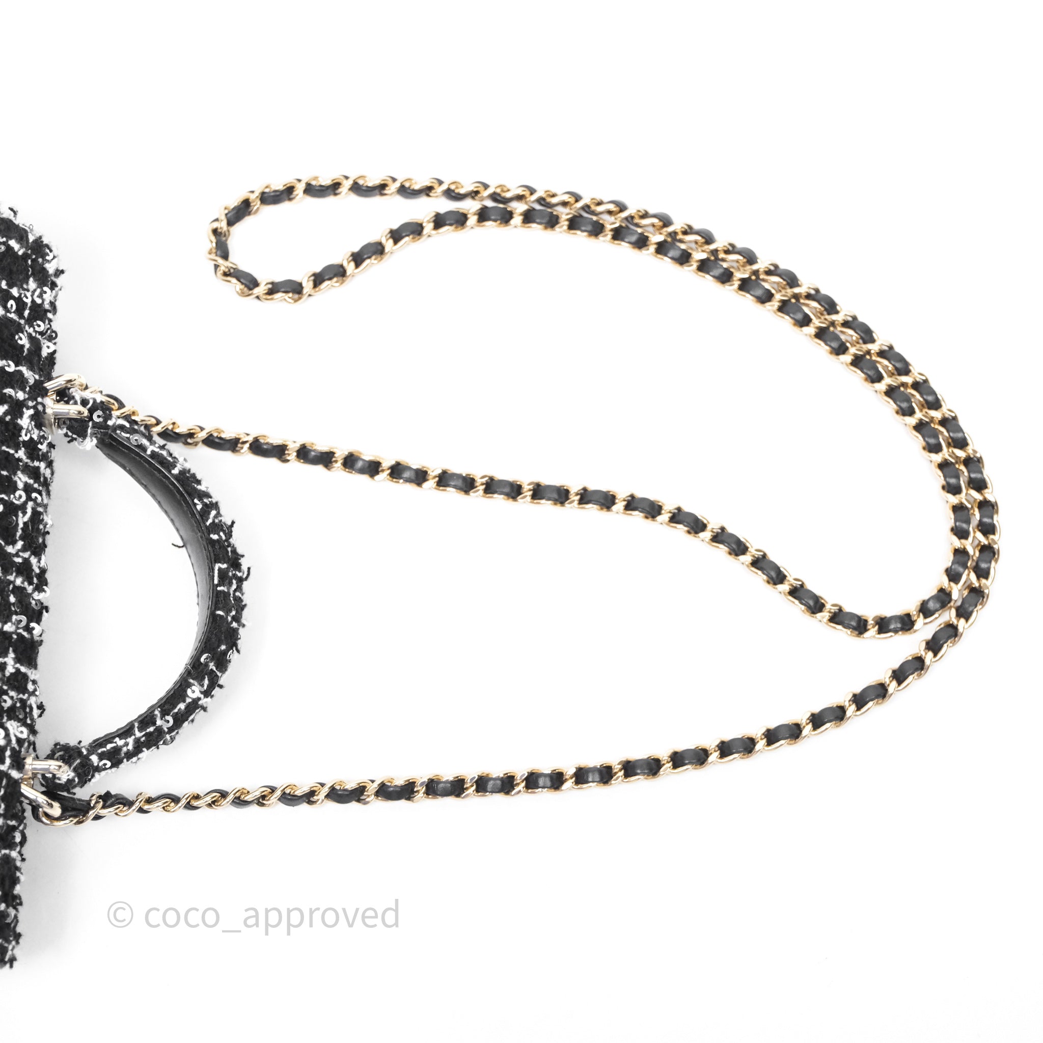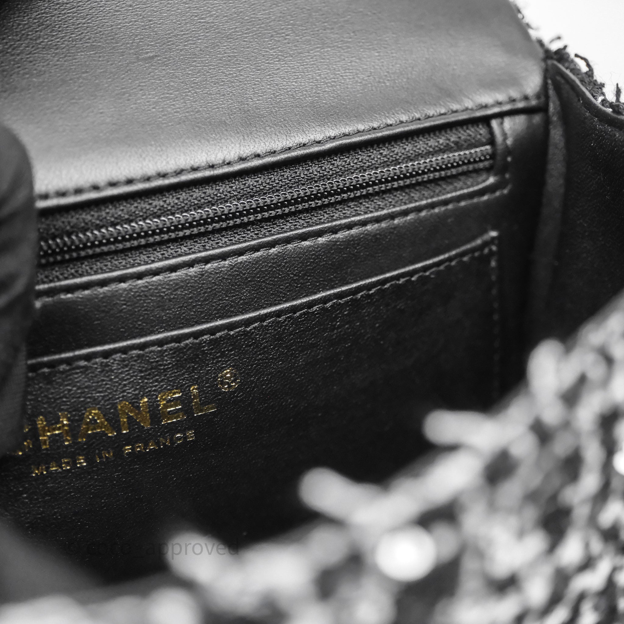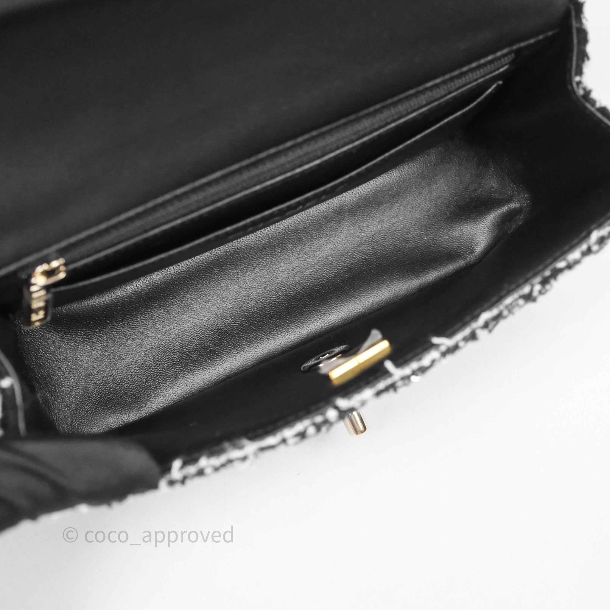 Chanel Top Handle Mini Rectangular Flap Black/ White Sequin Tweed Gold Hardware