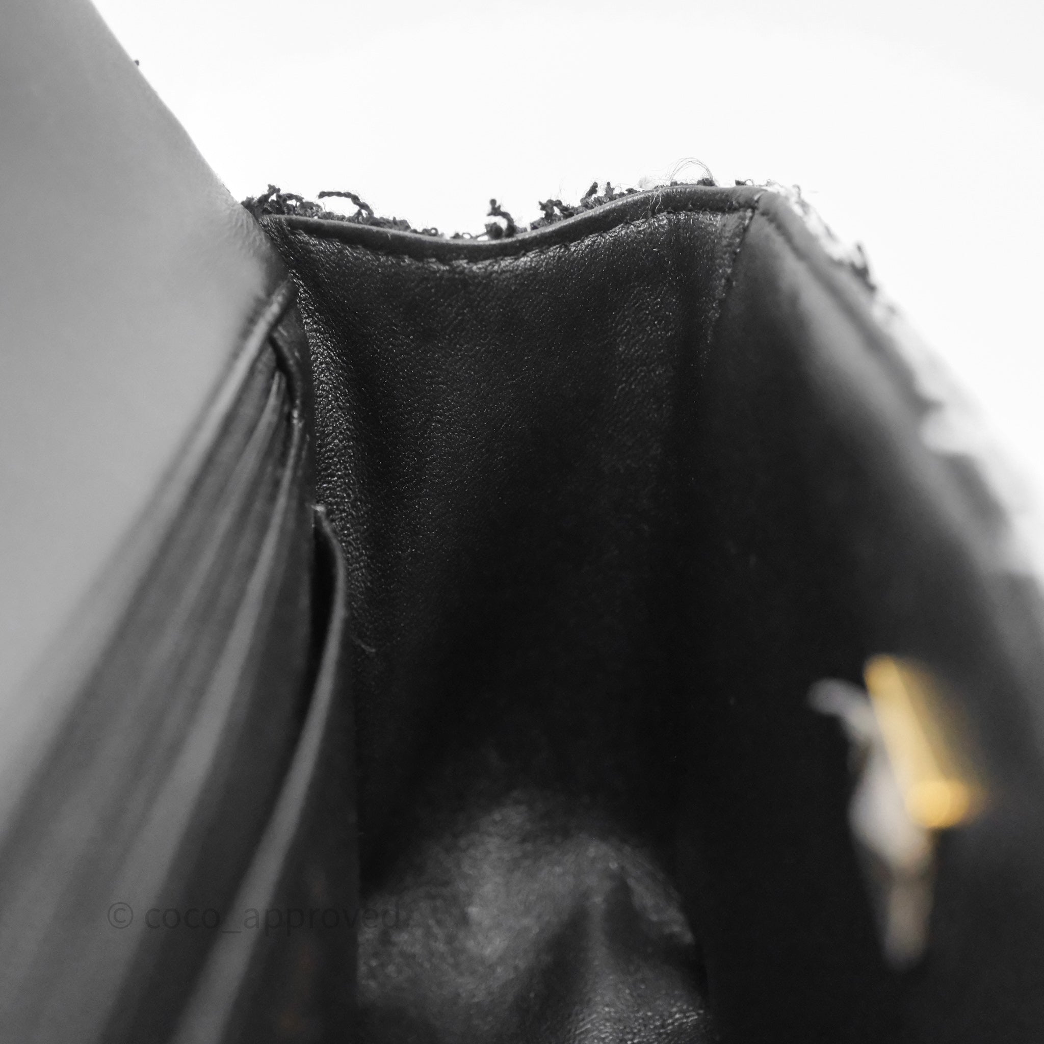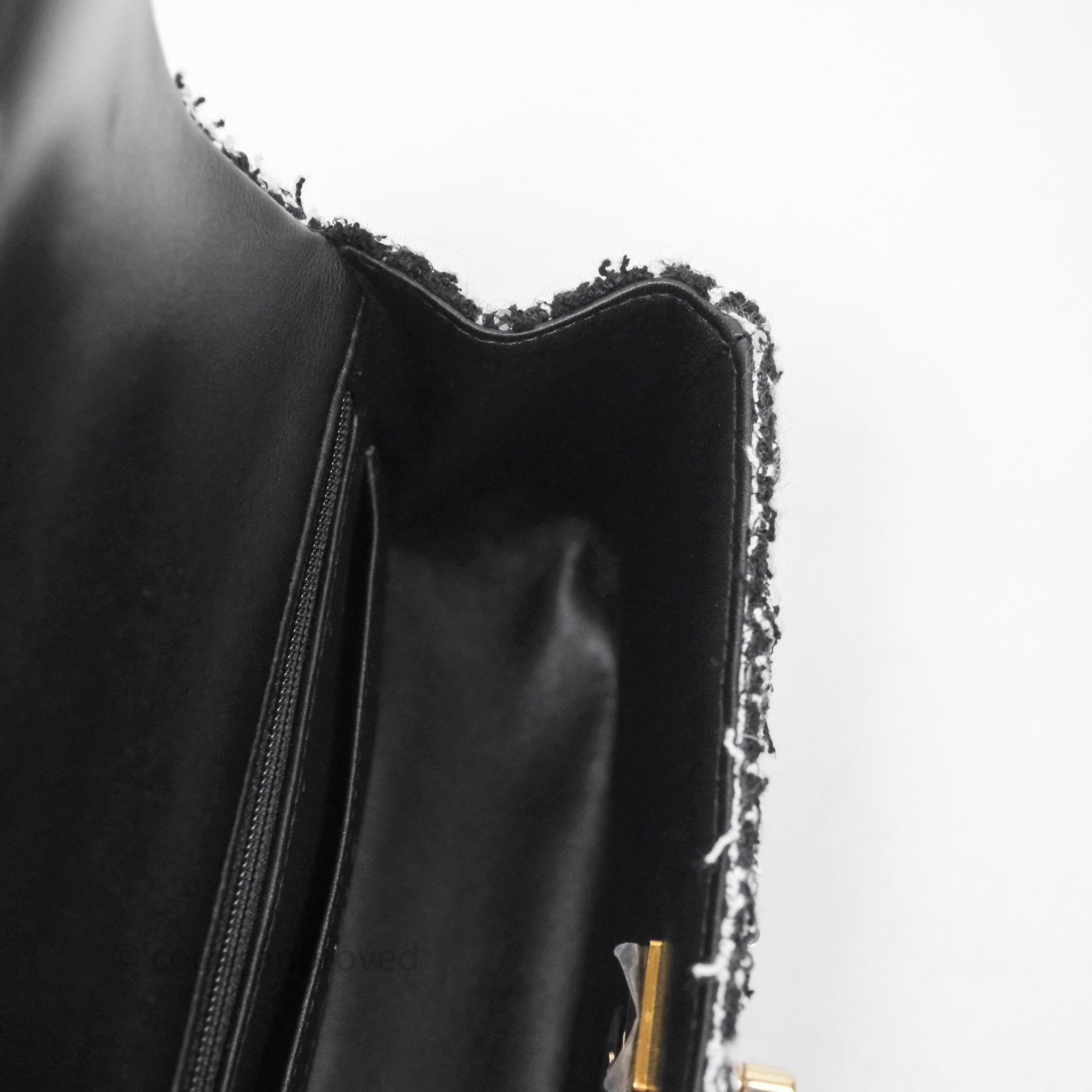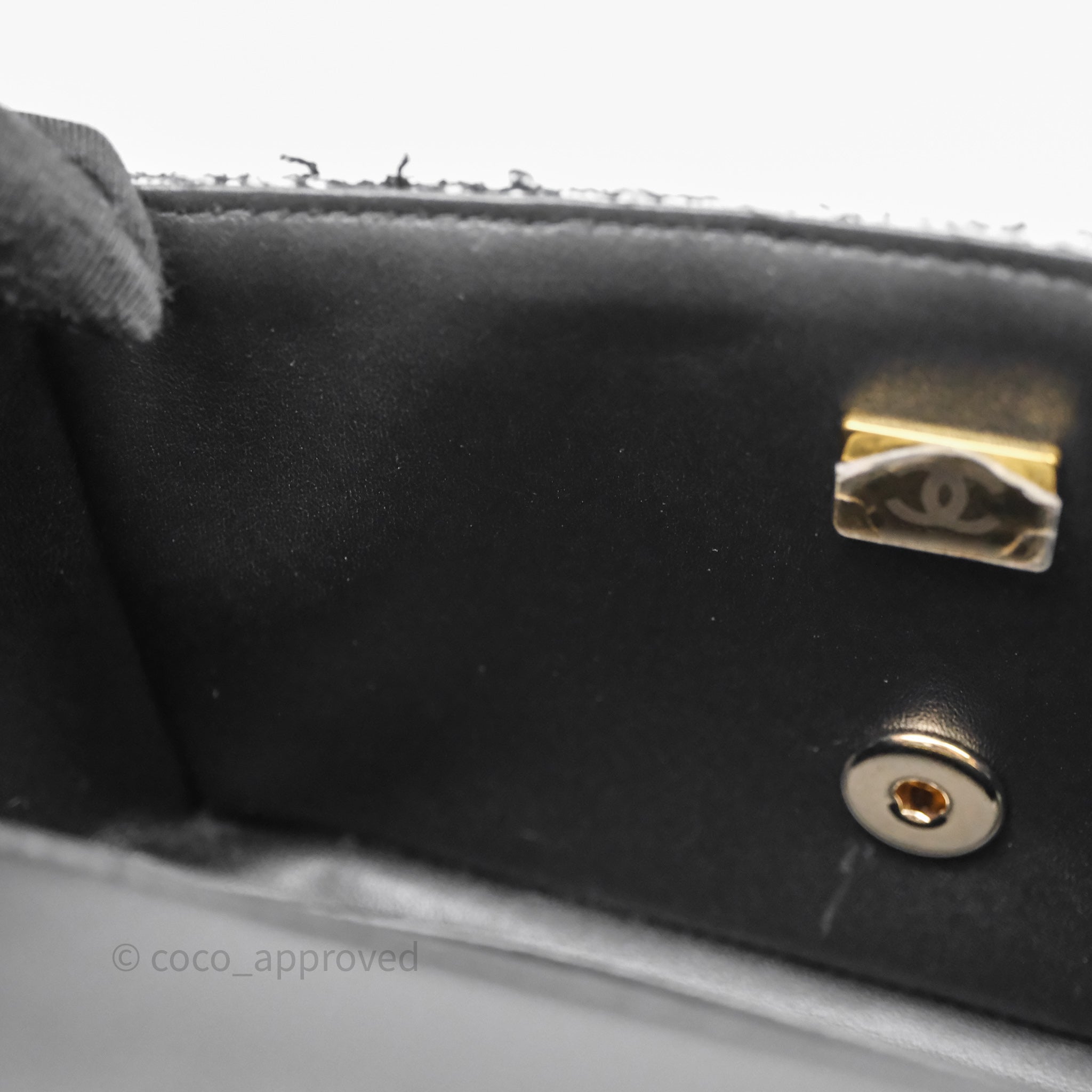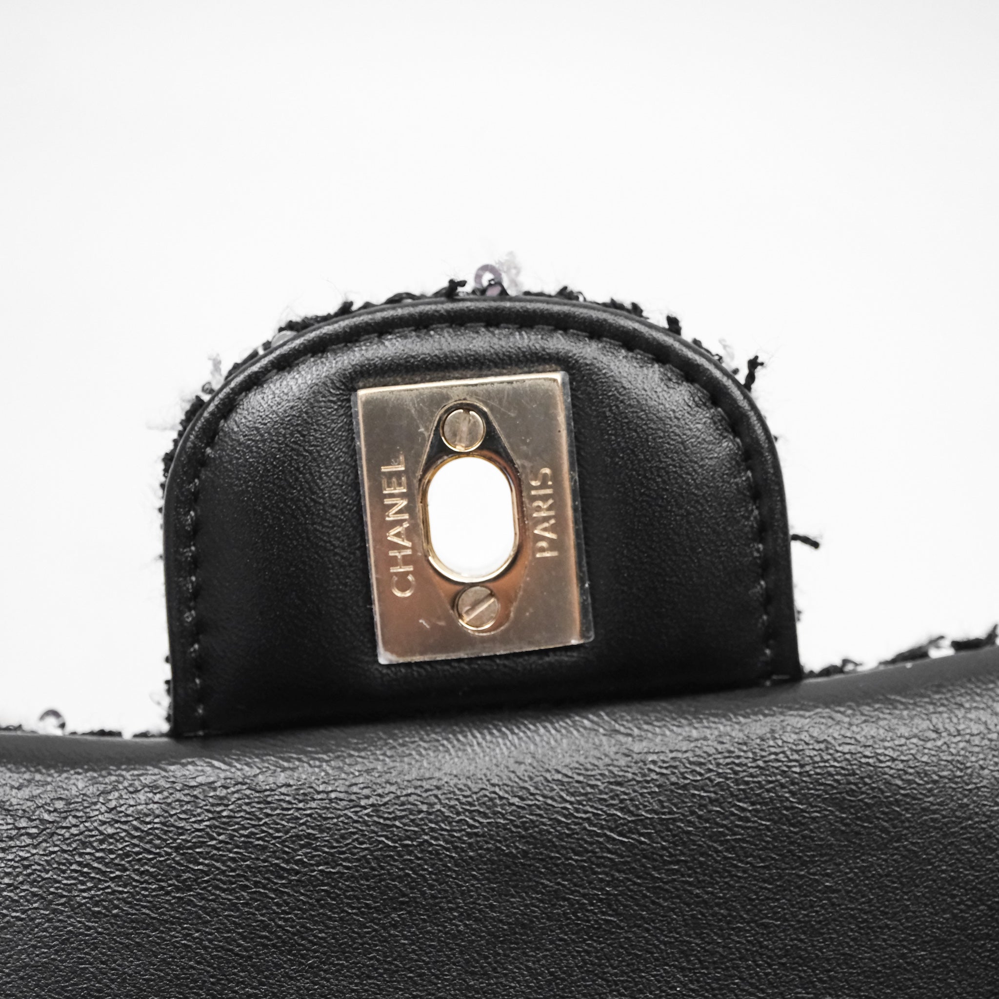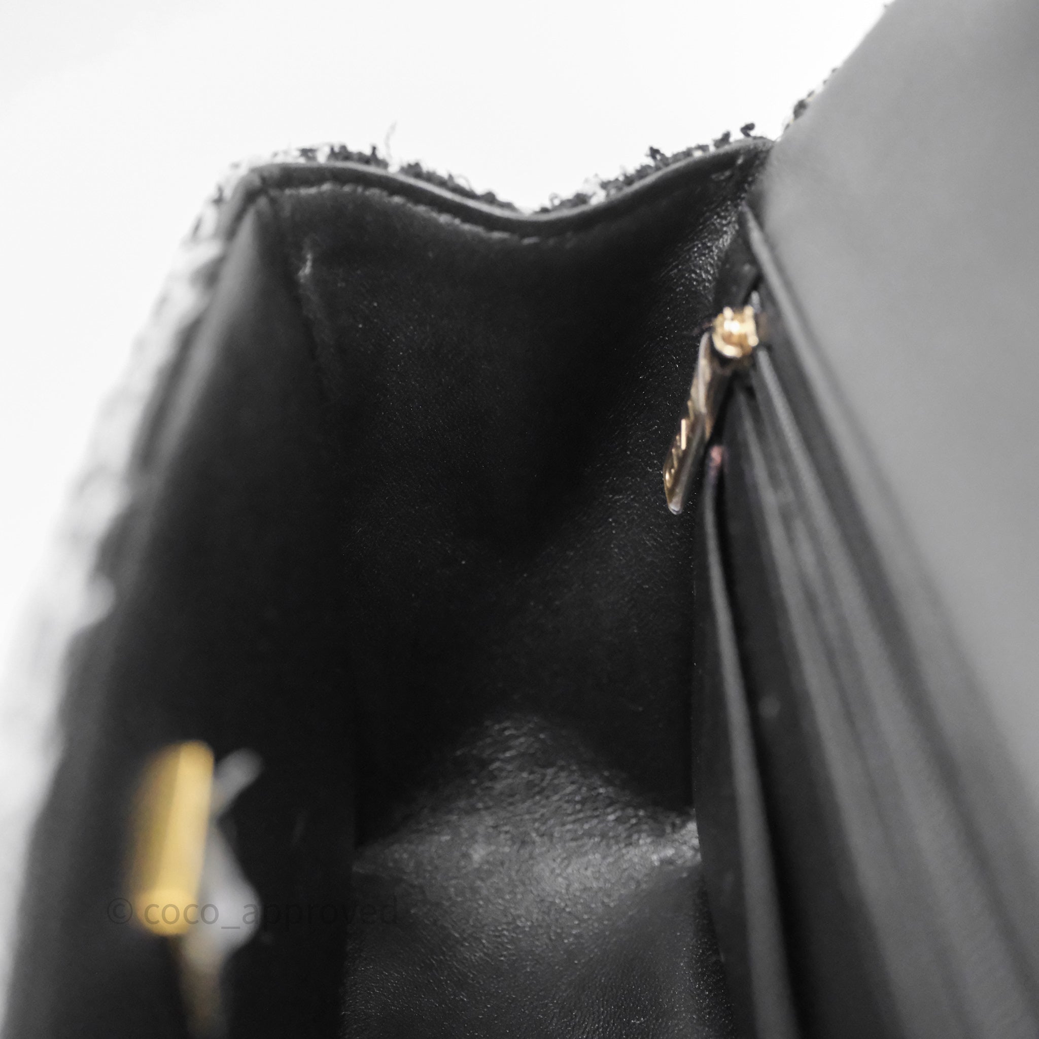 Chanel Top Handle Mini Rectangular Flap Black/ White Sequin Tweed Gold Hardware