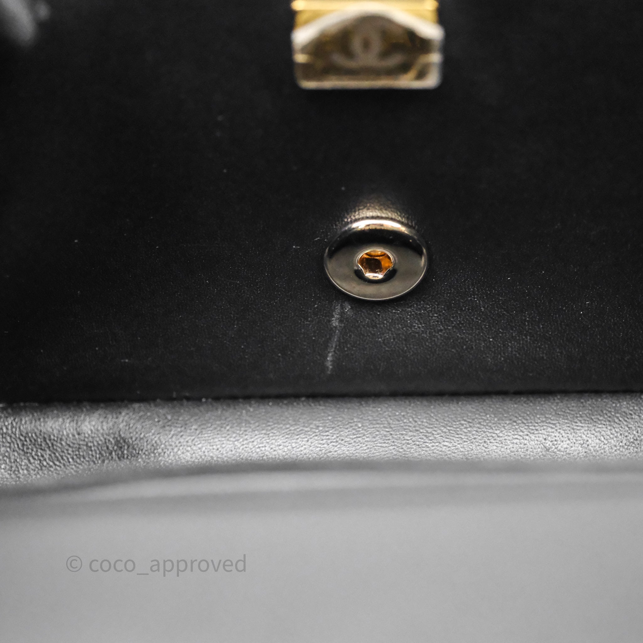 9.4/10 excellent to mint condition. Scratches on hardware, under flap and interior. Dent on under flap. Light marks on interior.