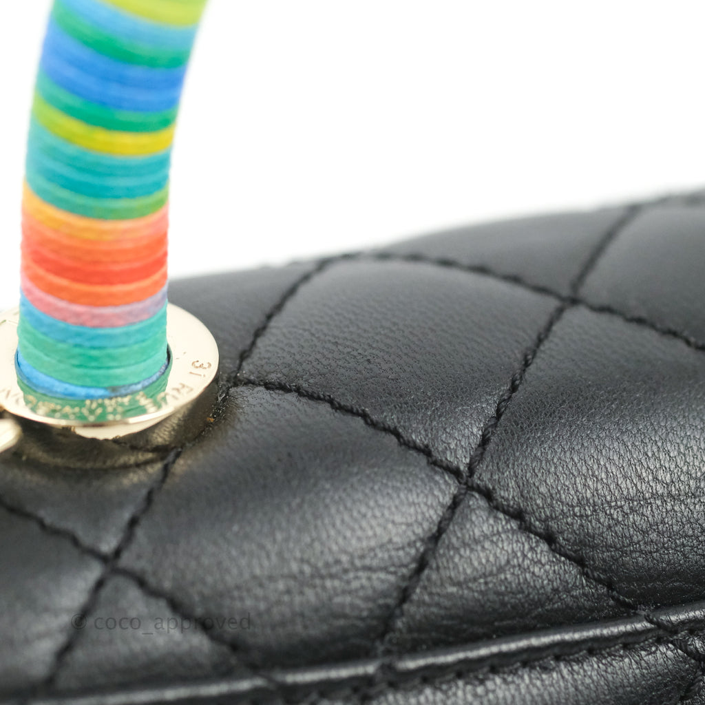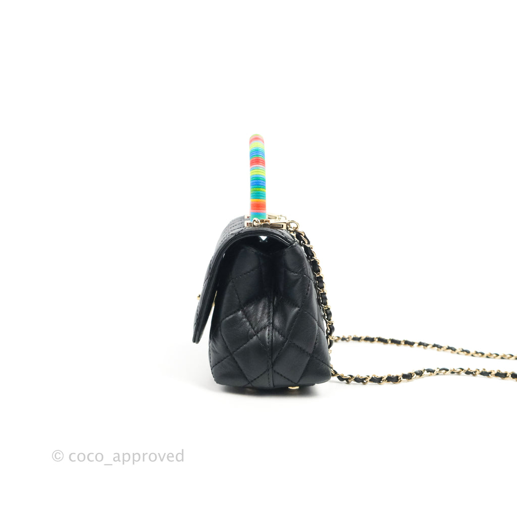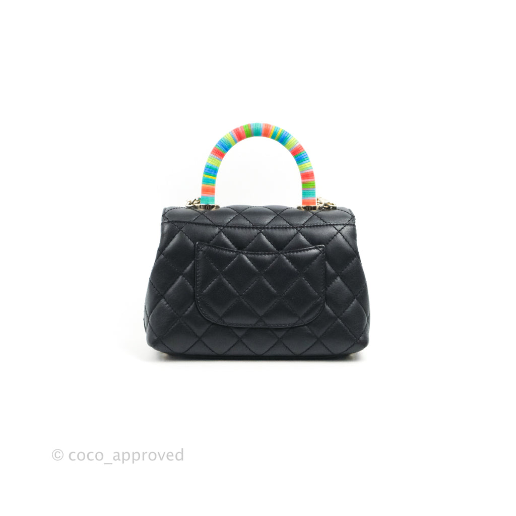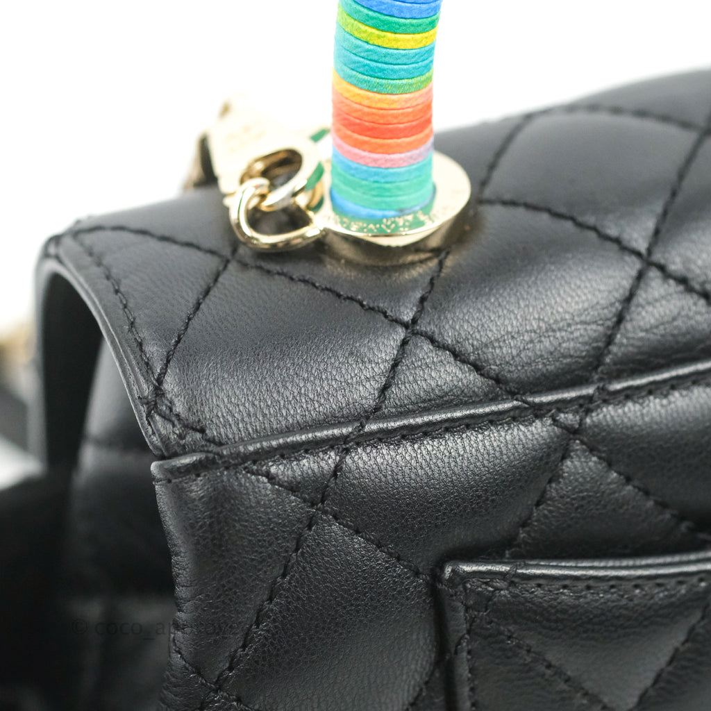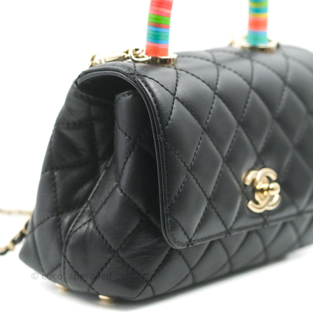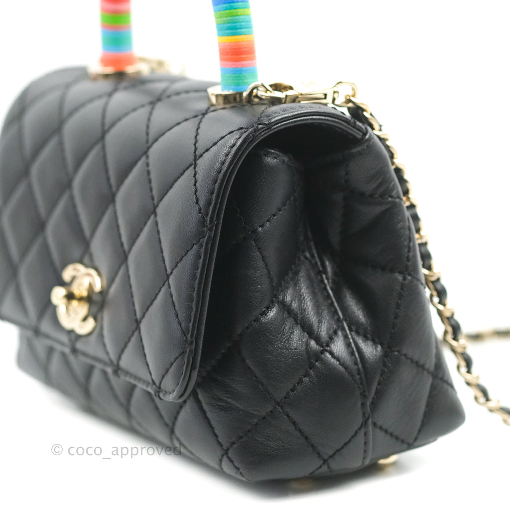 Chanel Quilted Mini Rainbow Coco Handle Bag Lambskin Black Gold Hardware