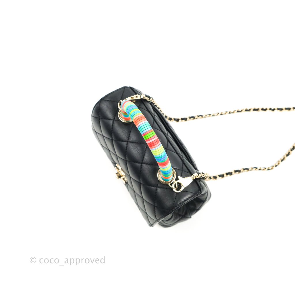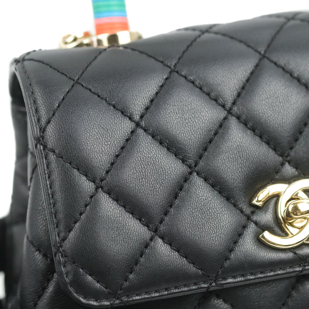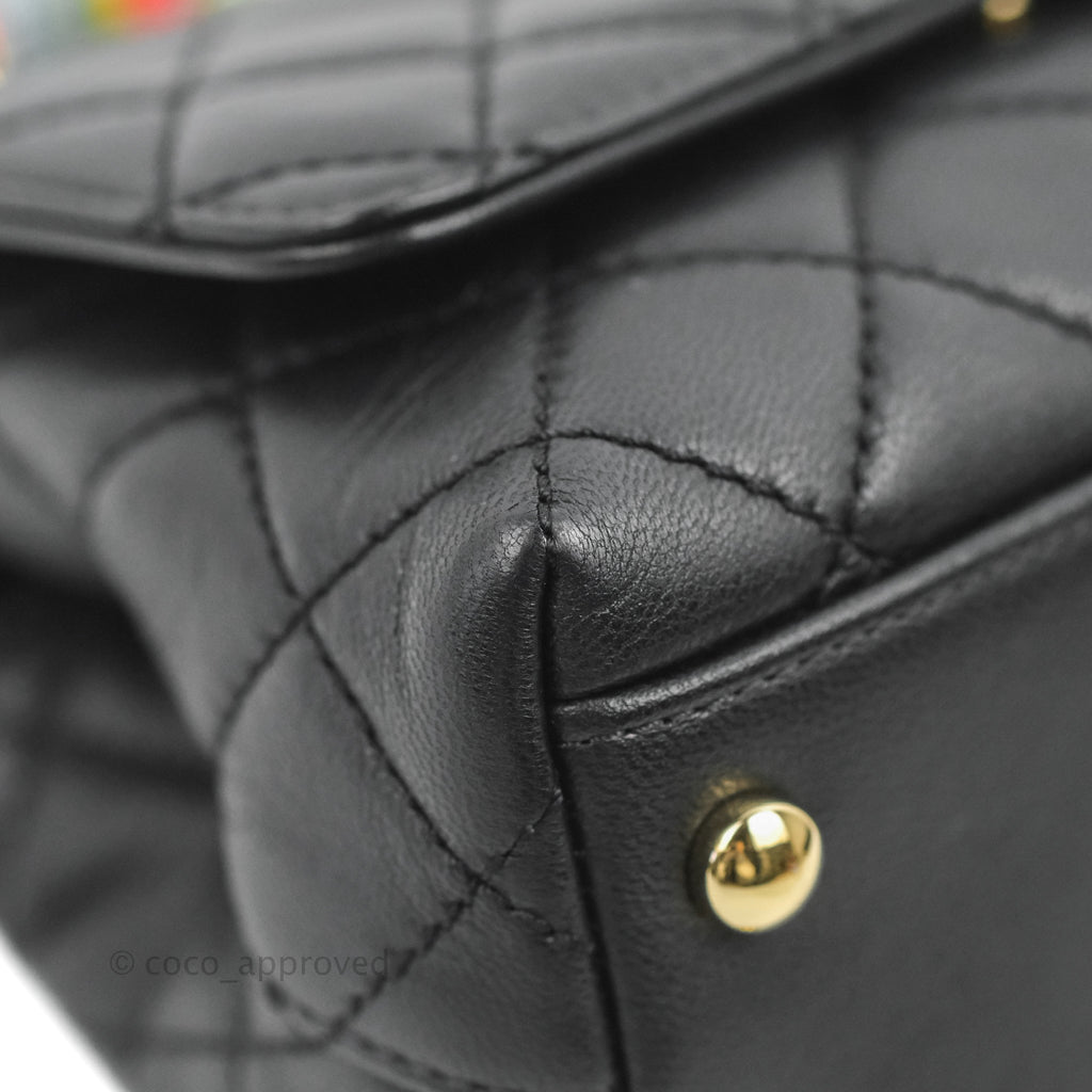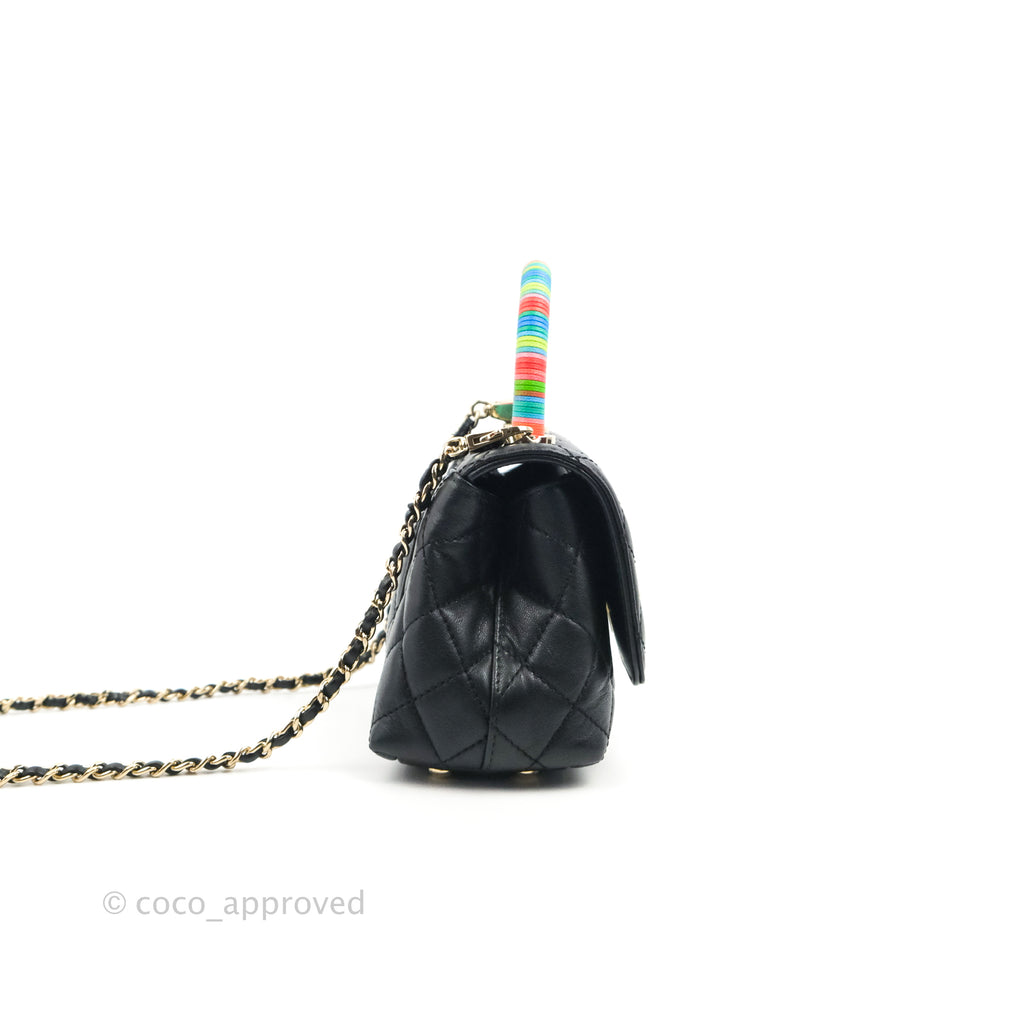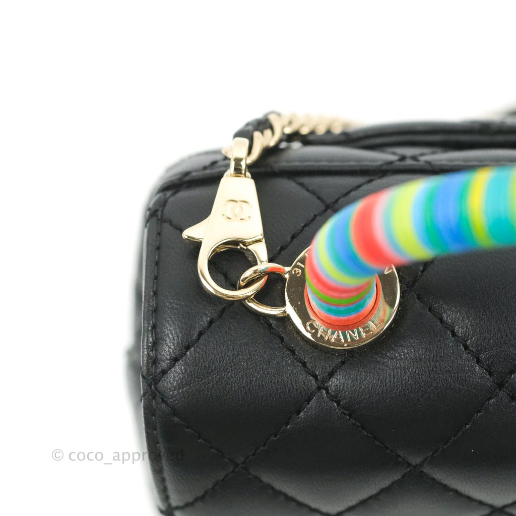 Chanel Quilted Mini Rainbow Coco Handle Bag Lambskin Black Gold Hardware