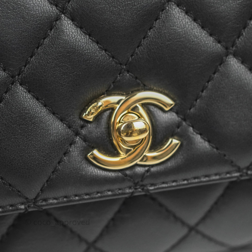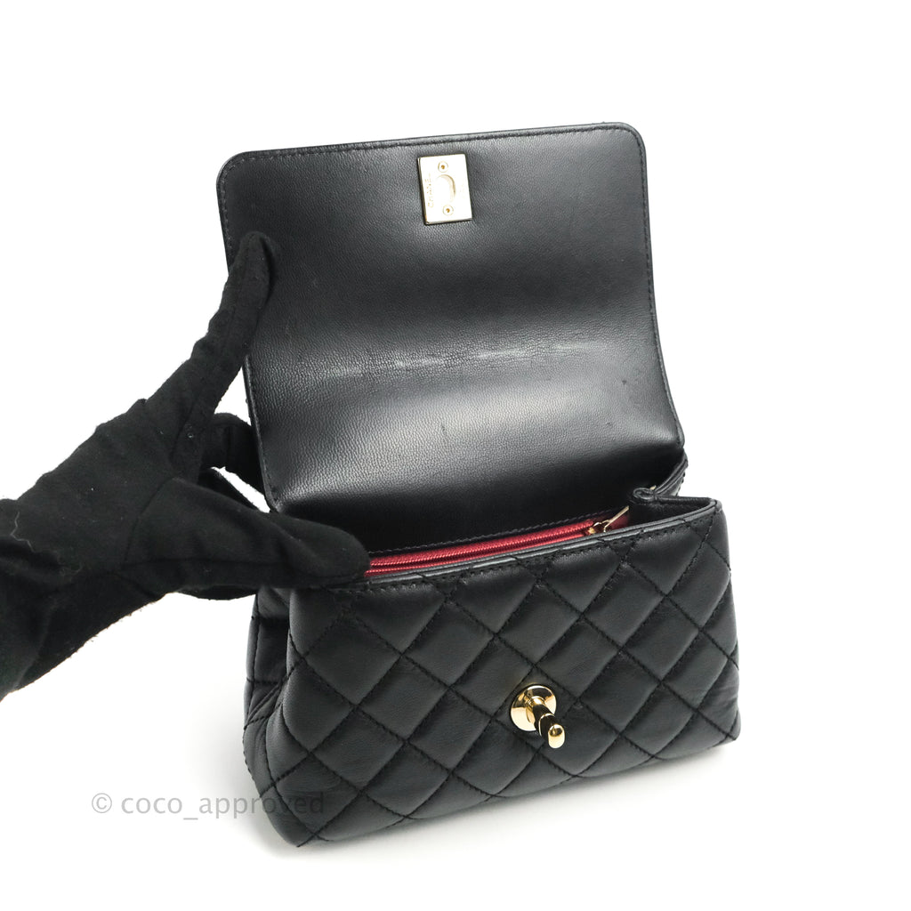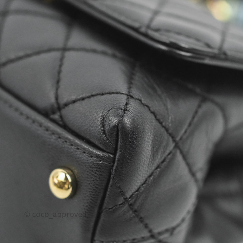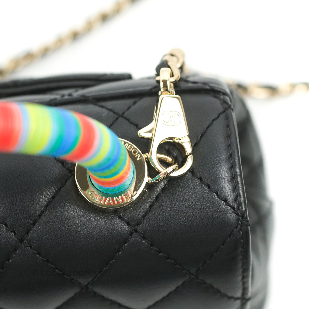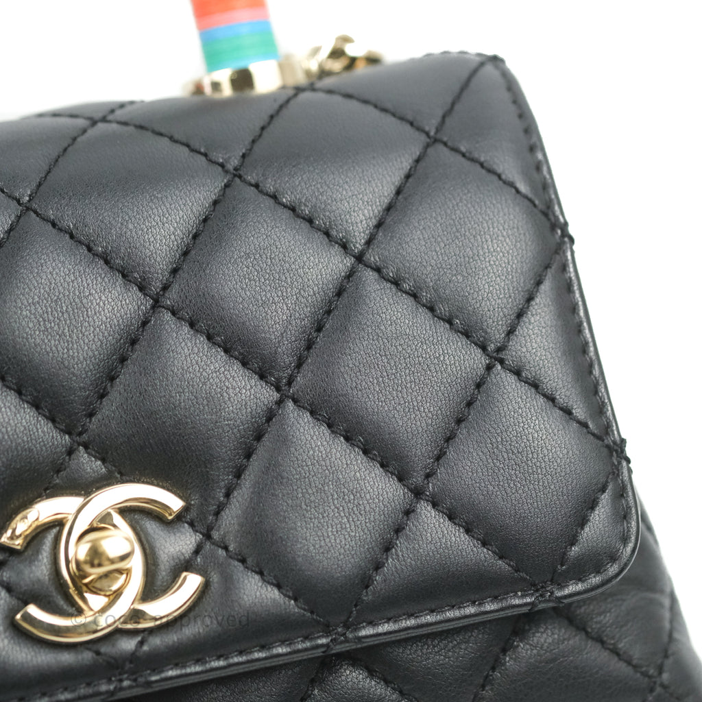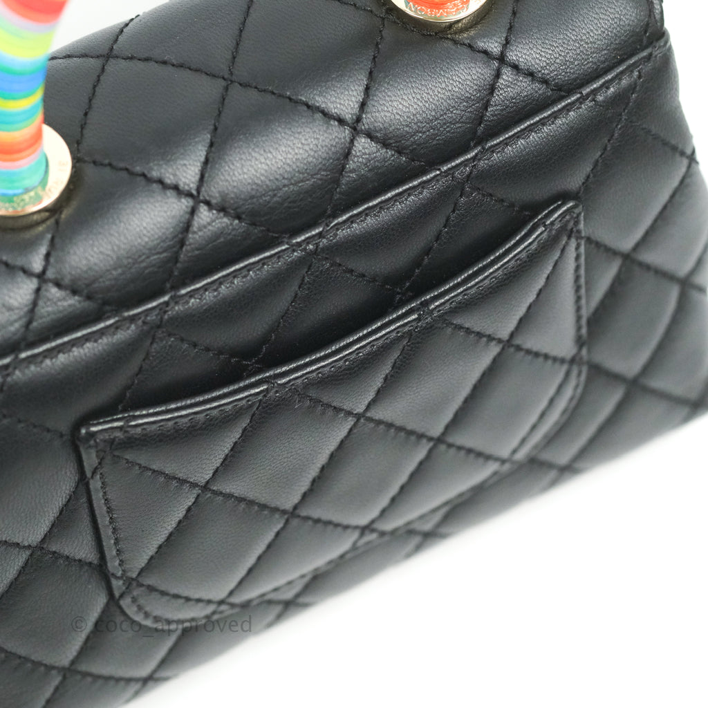 Chanel Quilted Mini Rainbow Coco Handle Bag Lambskin Black Gold Hardware