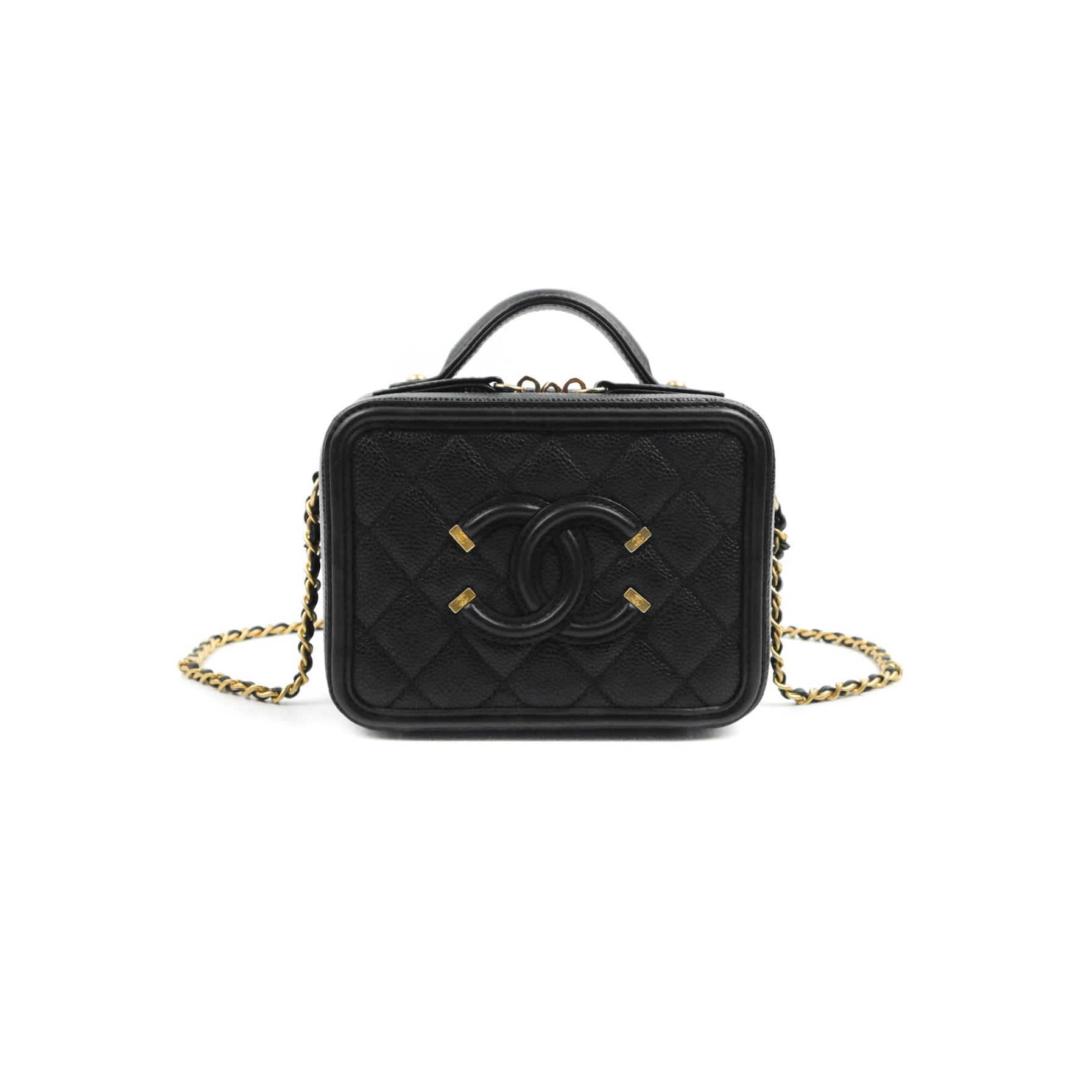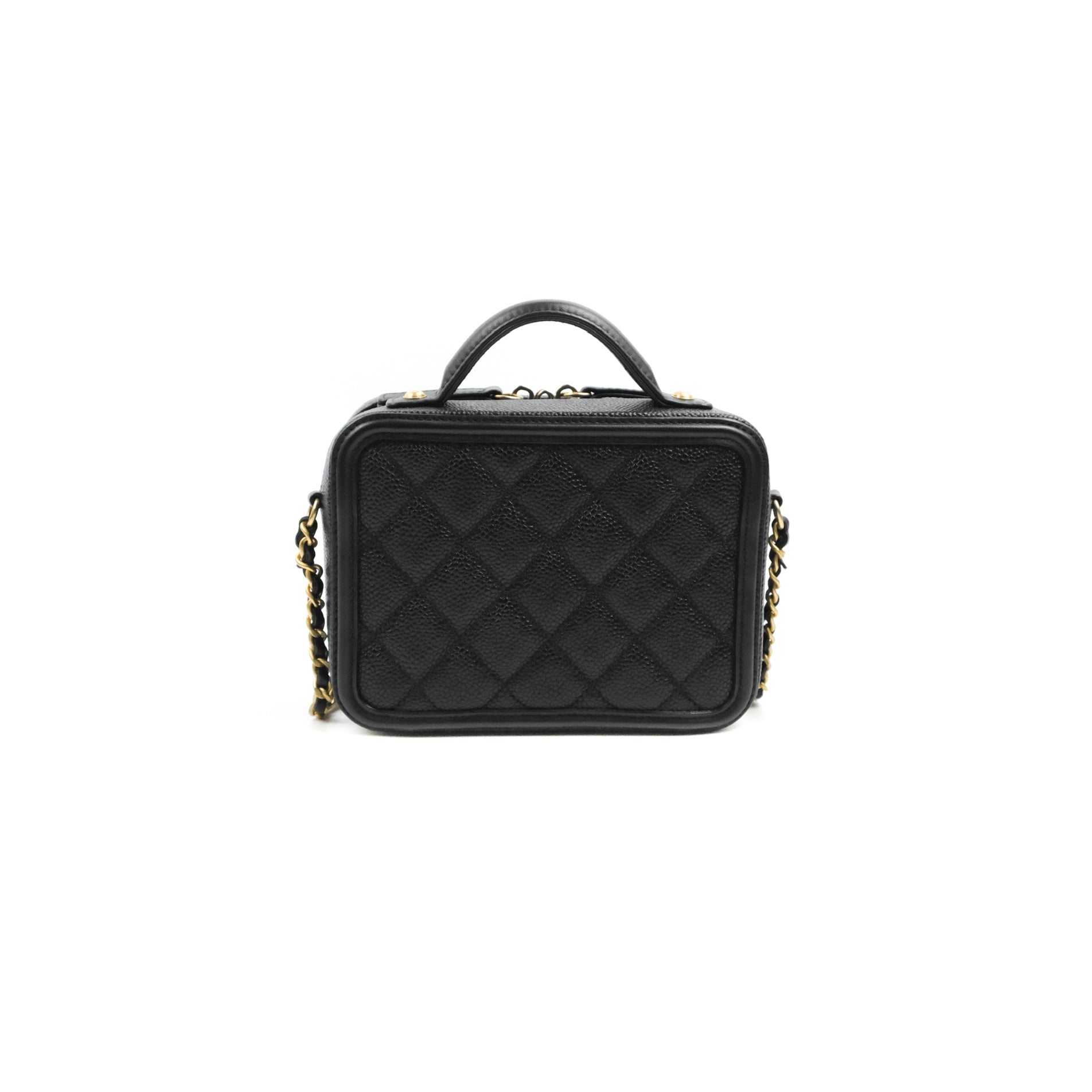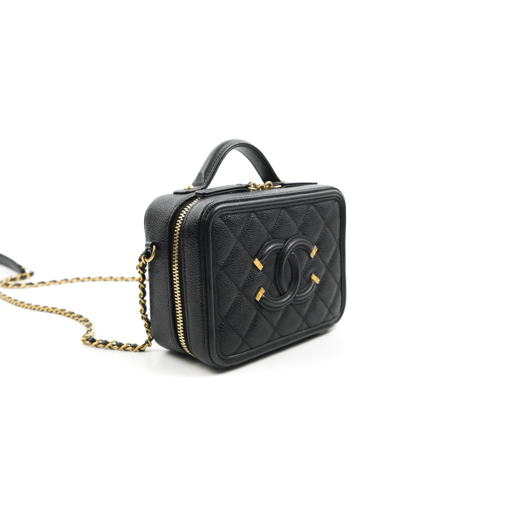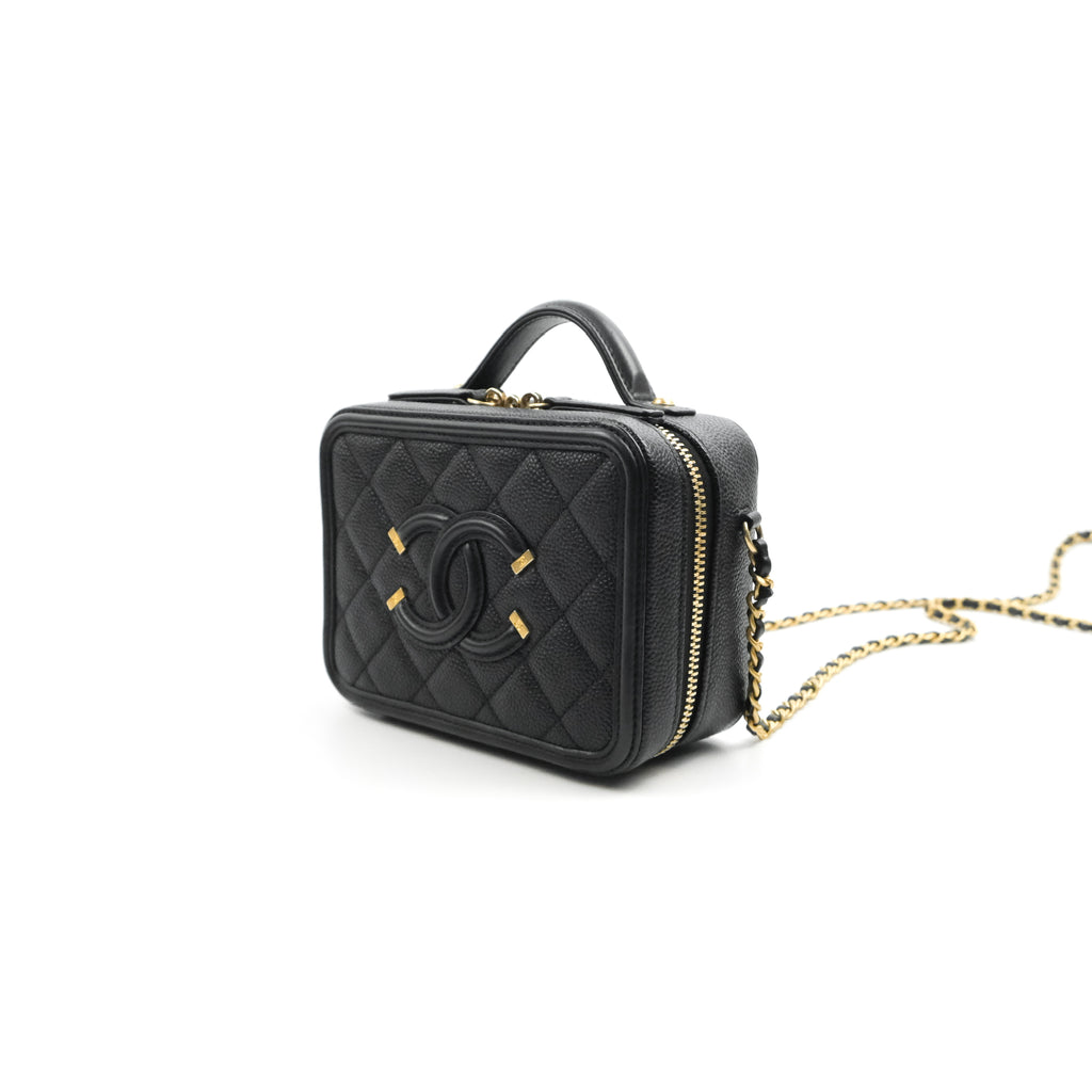 Chanel Quilted Small CC Filigree Vanity Case Black Caviar