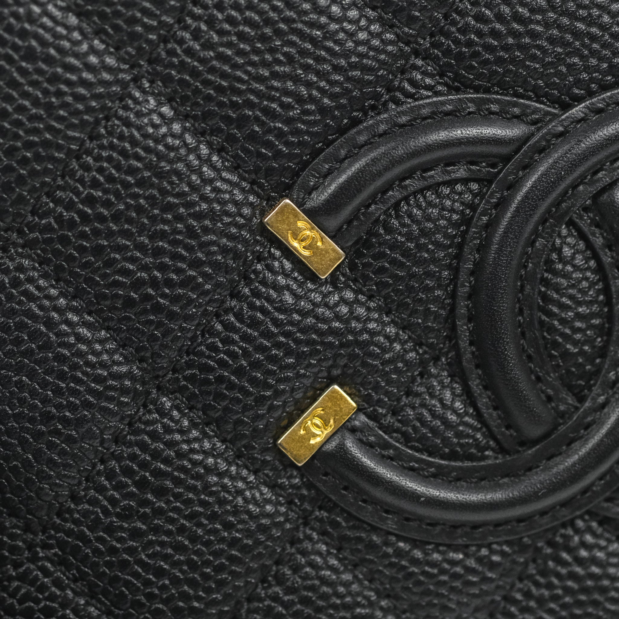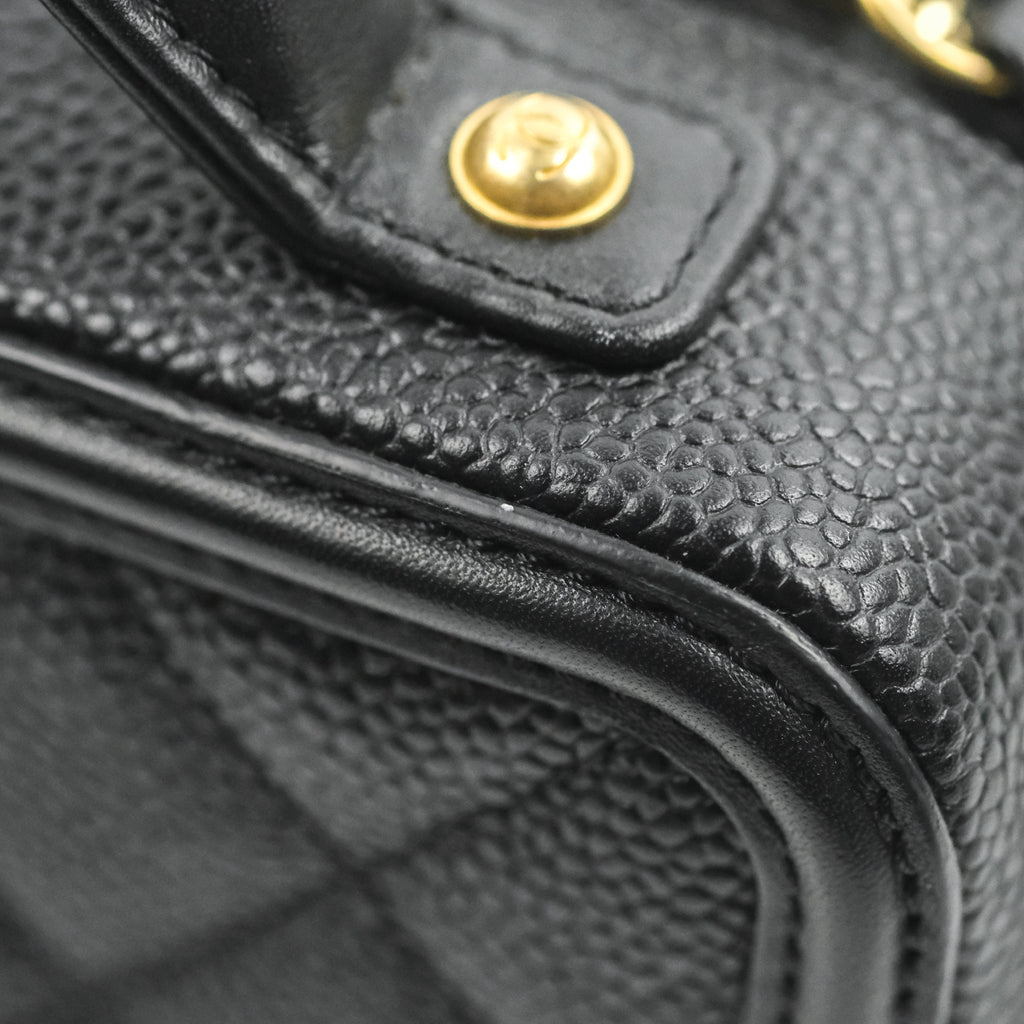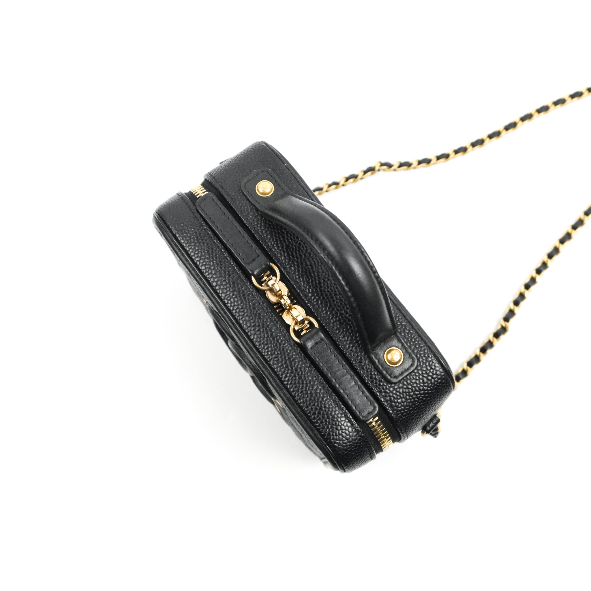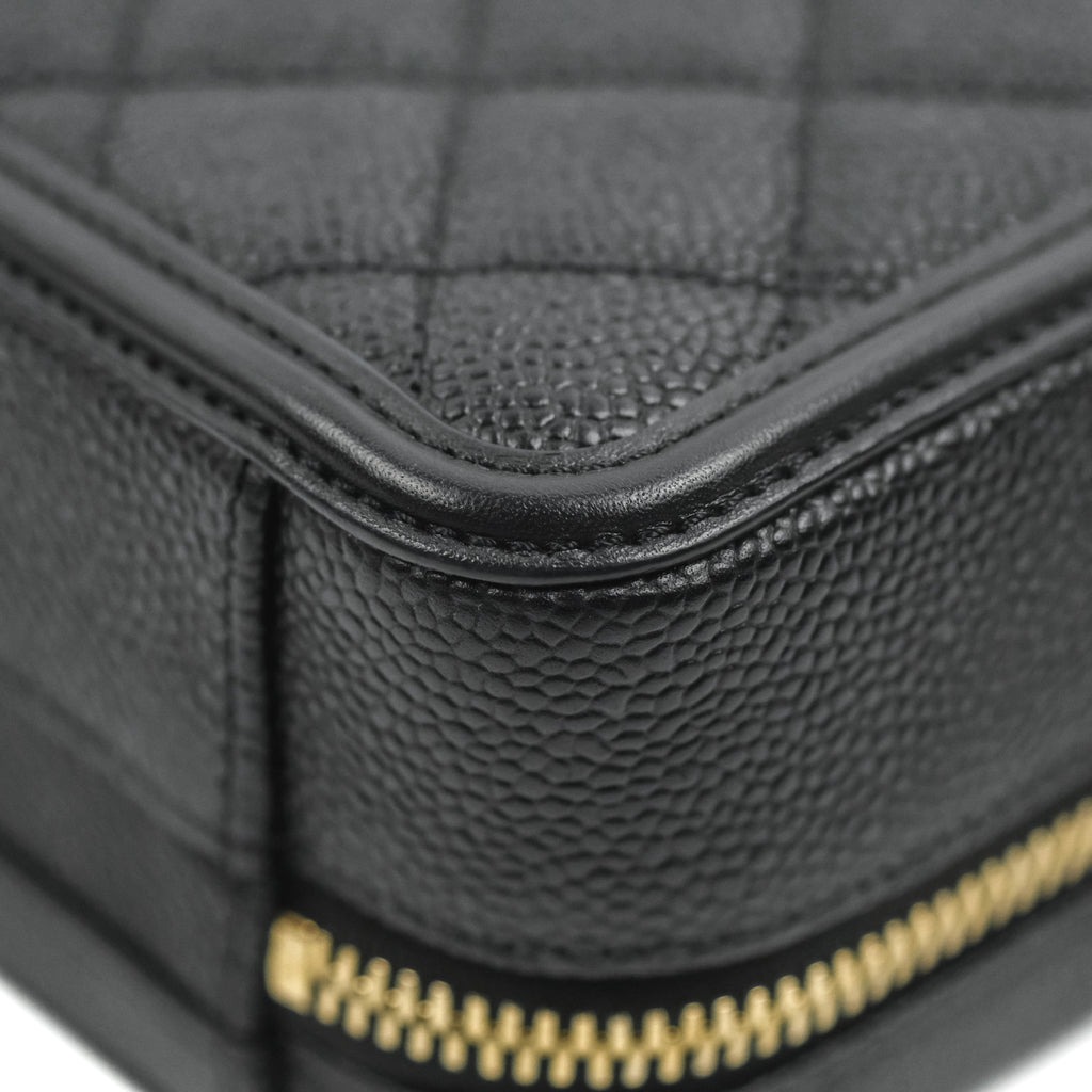 Chanel Quilted Small CC Filigree Vanity Case Black Caviar