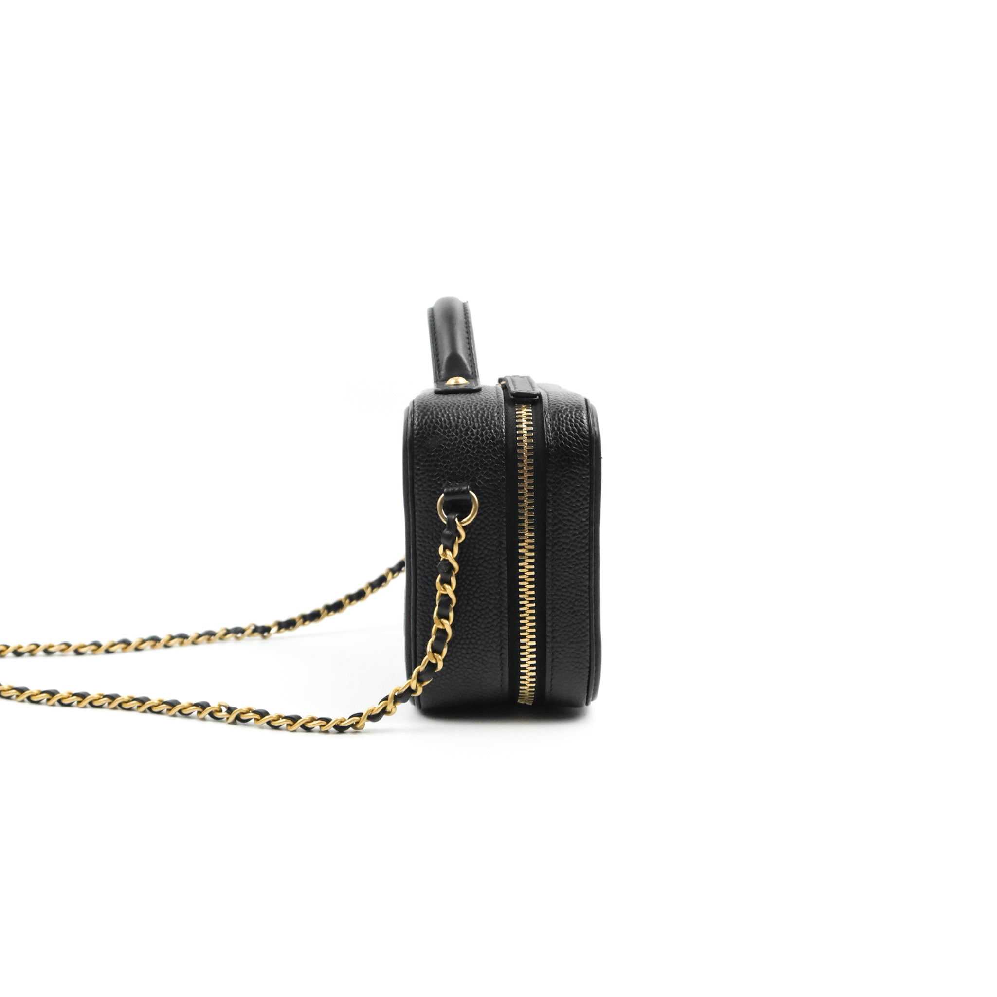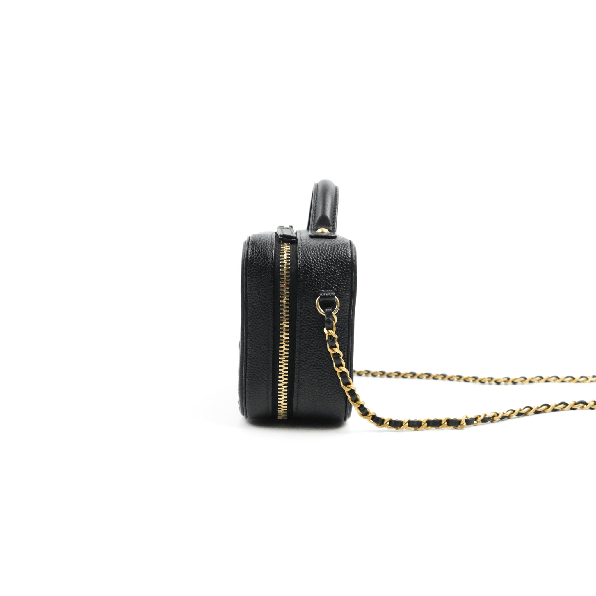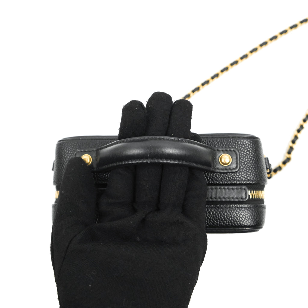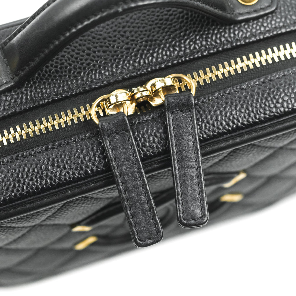Chanel Quilted Small CC Filigree Vanity Case Black Caviar